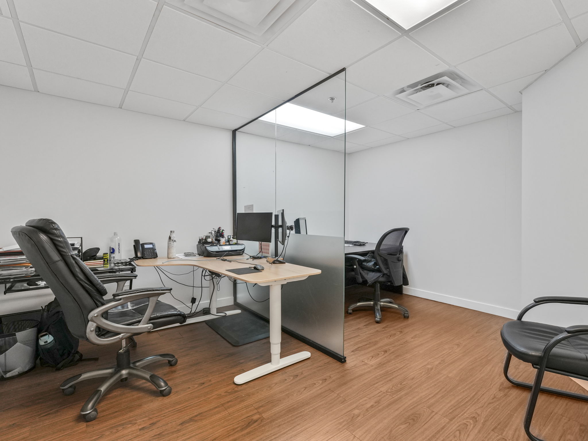 This exceptional two-level commercial condo offers over 2200 sq. ft. of beautifully built-out space in a high-visibility location on a busy, high-traffic street, providing excellent exposure for your business. Located very close to South Edmonton Common. The main floor features a welcoming reception area, creating a professional first impression for clients and visitors. A private boardroom offers an ideal setting for meetings and presentations. The layout also includes a functional shop area with a 14' overhead door, providing convenient access for deliveries, equipment, or vehicles. The second floor adds additional well-finished workspace, ideal use for professional offices, workstations, or administrative use, maximizing flexibility while maintaining a polished and professional environment. Currently, three beautiful built-out offices exist, large enough for two work spaces in each. Combining professional office space with practical shop functionality, this versatile unit is well suited for a wide rang