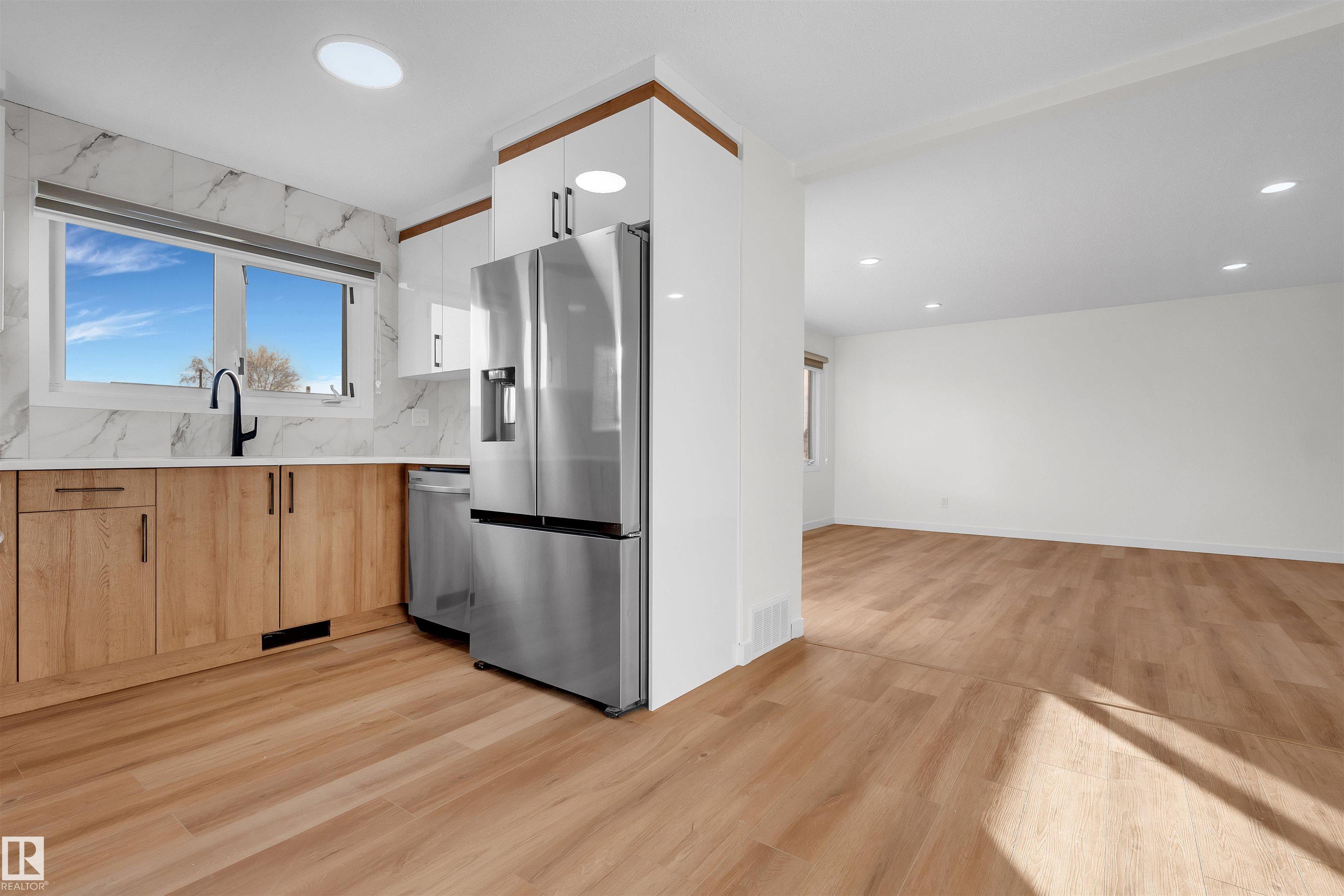 Welcome to this stunning detached bungalow in Fraser over 2100 sqf living space, North Edmonton! Fully renovated, this home boasts new windows, doors, appliances, flooring, paint, and a newly developed basement, making it move-in ready. The main floor features three spacious bedrooms and two full bathrooms, along with a stylish kitchen outfitted with granite countertops and new appliances. The basement, accessible via a separate entrance, includes two additional bedrooms, a full bathroom, a second kitchen, and laundry facilities, ideal for multi-generational families or a home-based business. Additionally, the property has a spacious backyard deck and a double oversized detached garage 24'*24'. Located in a prime community, this bungalow is a fantastic living space and a smart investment. Don't miss your chance to make it your new home!