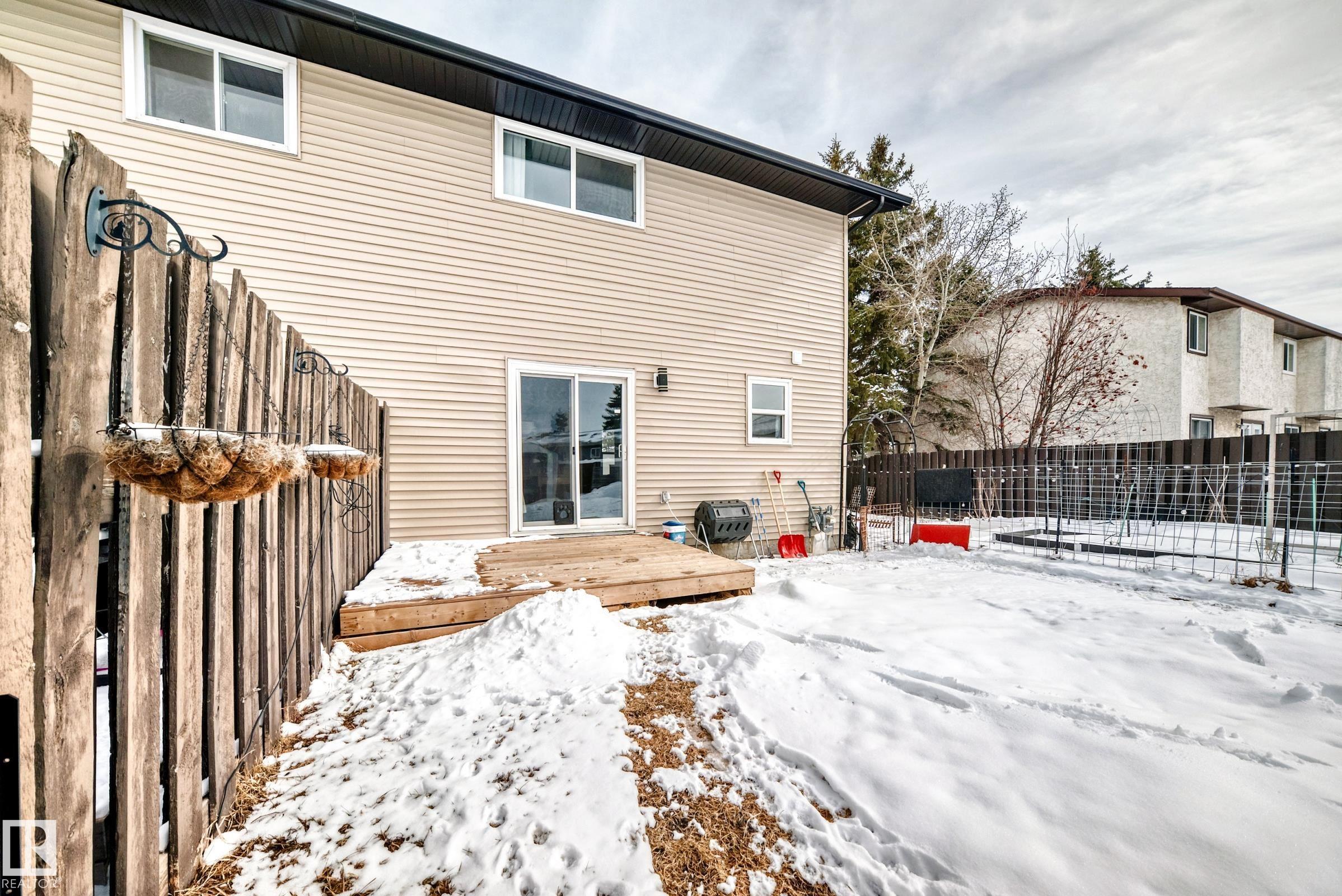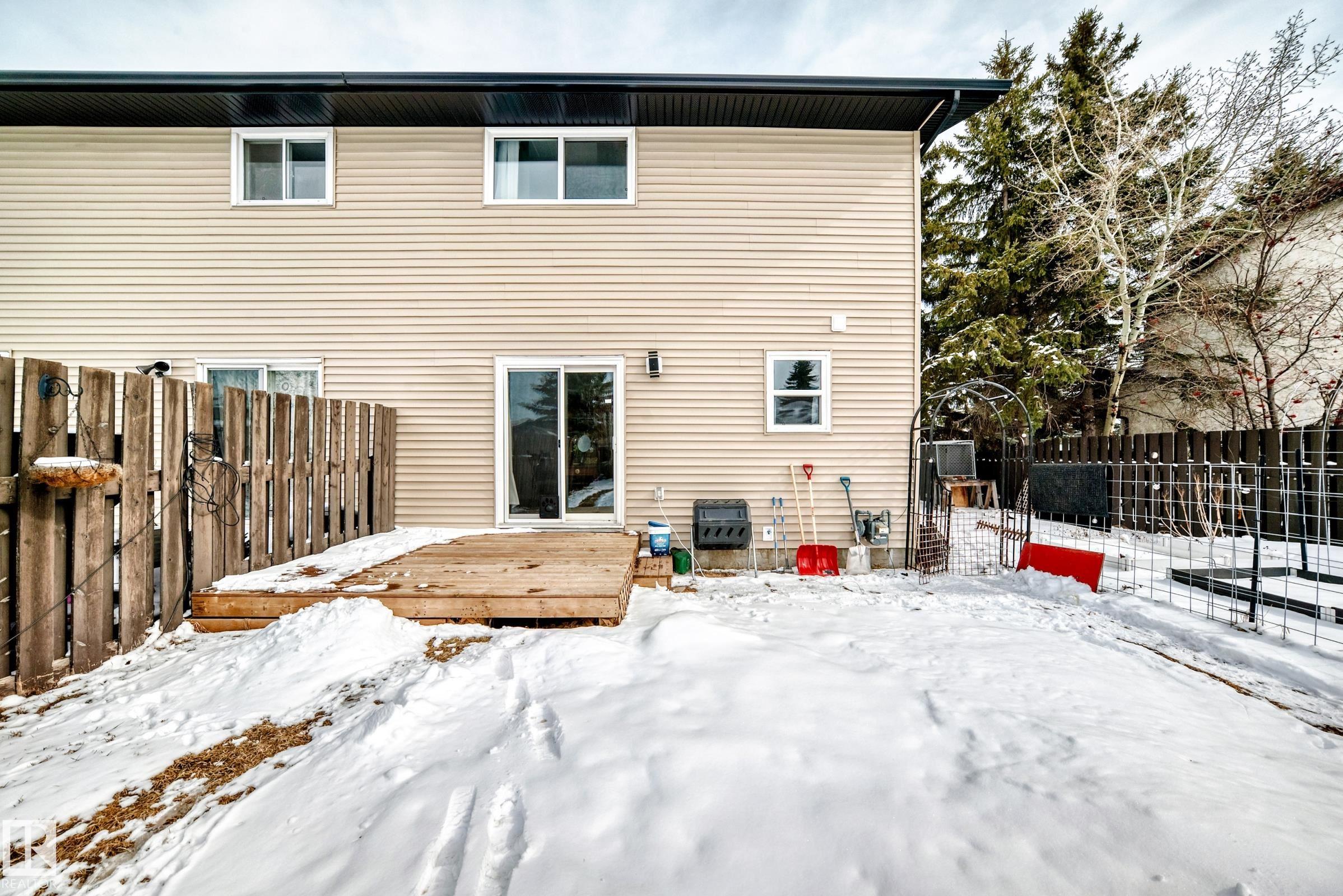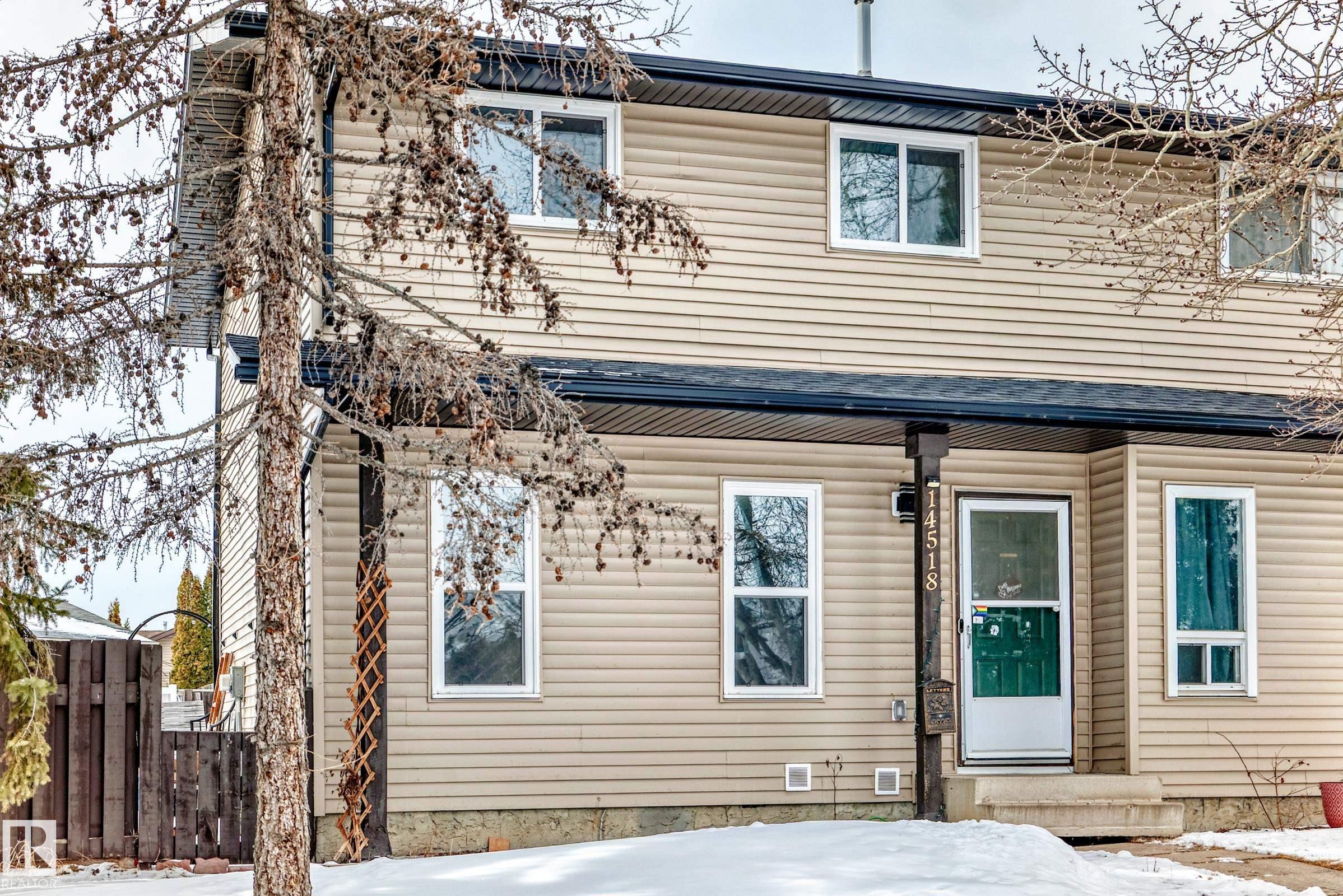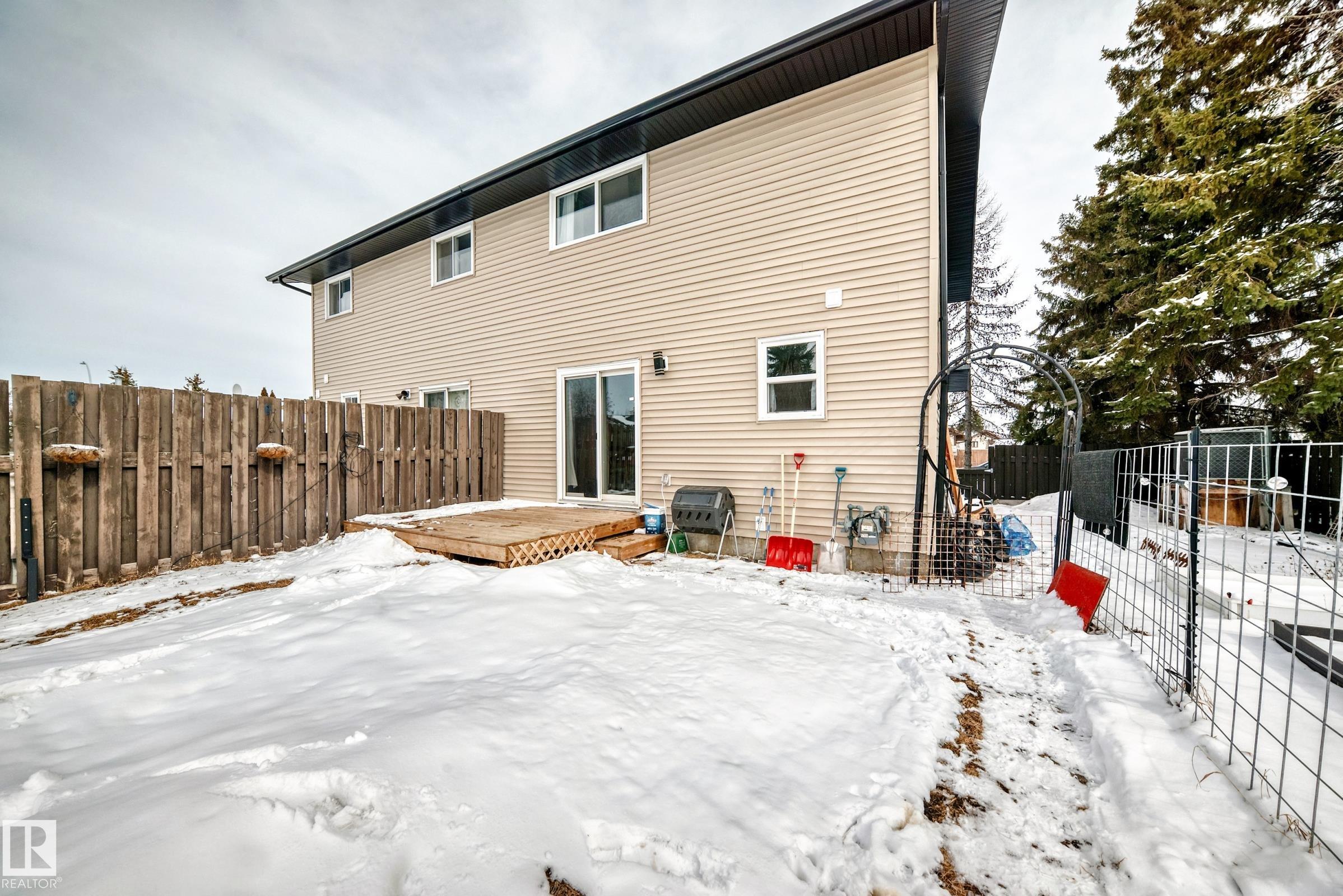 UPDATED HALF DUPLEX IN FRASER WITH NO CONDO FEES Located steps to a Fraser School and park, this updated 3-bedroom half duplex offers great value with major updates already complete. The main floor features a bright, inviting living room, laminate flooring, and big, updated windows. The functional U-shaped kitchen has plenty of storage with a pantry, painted cabinetry, and is open to the dining room and back deck area. The main floor also has a 2pc bath. Upstairs are three comfortable bedrooms, including an oversized primary with a spacious walk-in closet and feature wall. Key updates include siding and roof (2022) and above-grade windows (2020). Outside, the huge fully fenced yard has space to relax, garden, or entertain, plus plenty of space for off-street parking. Close to schools, parks, walking paths, and everyday amenities, with easy access to Manning Town Centre and the Henday. A solid option for first-time buyers or investors. Welcome home!