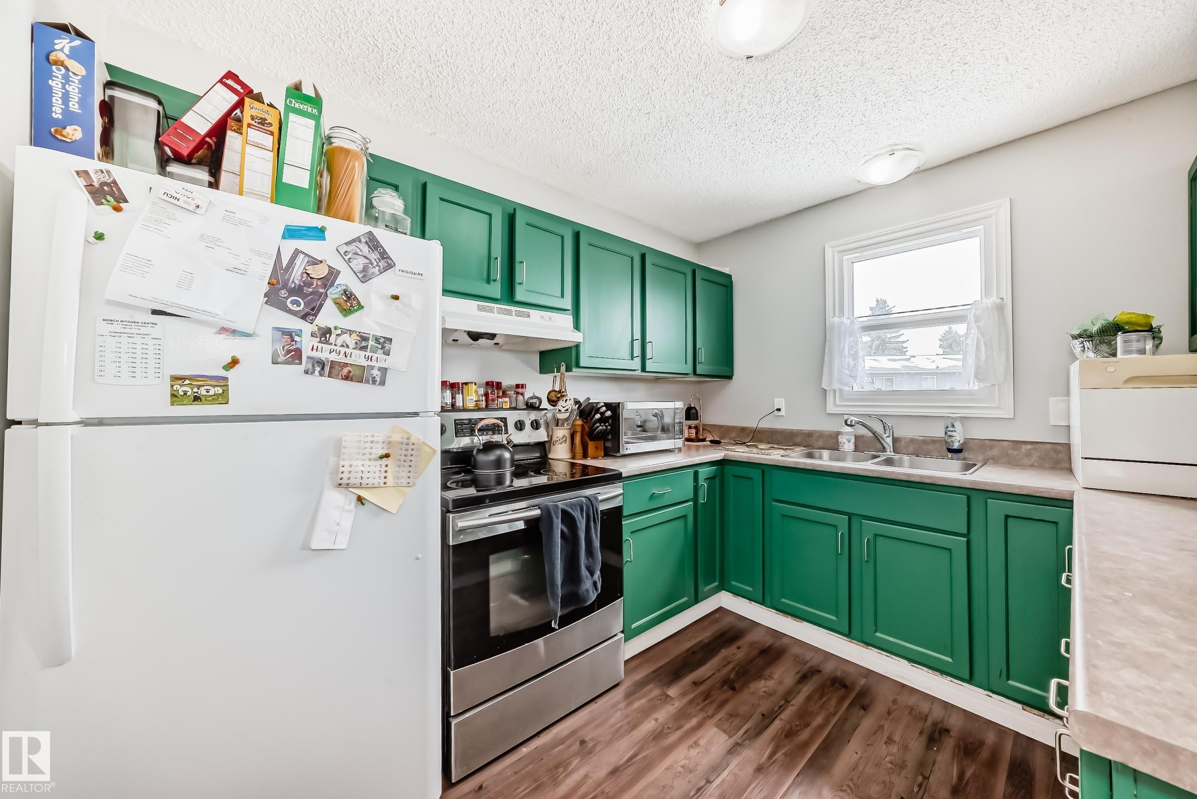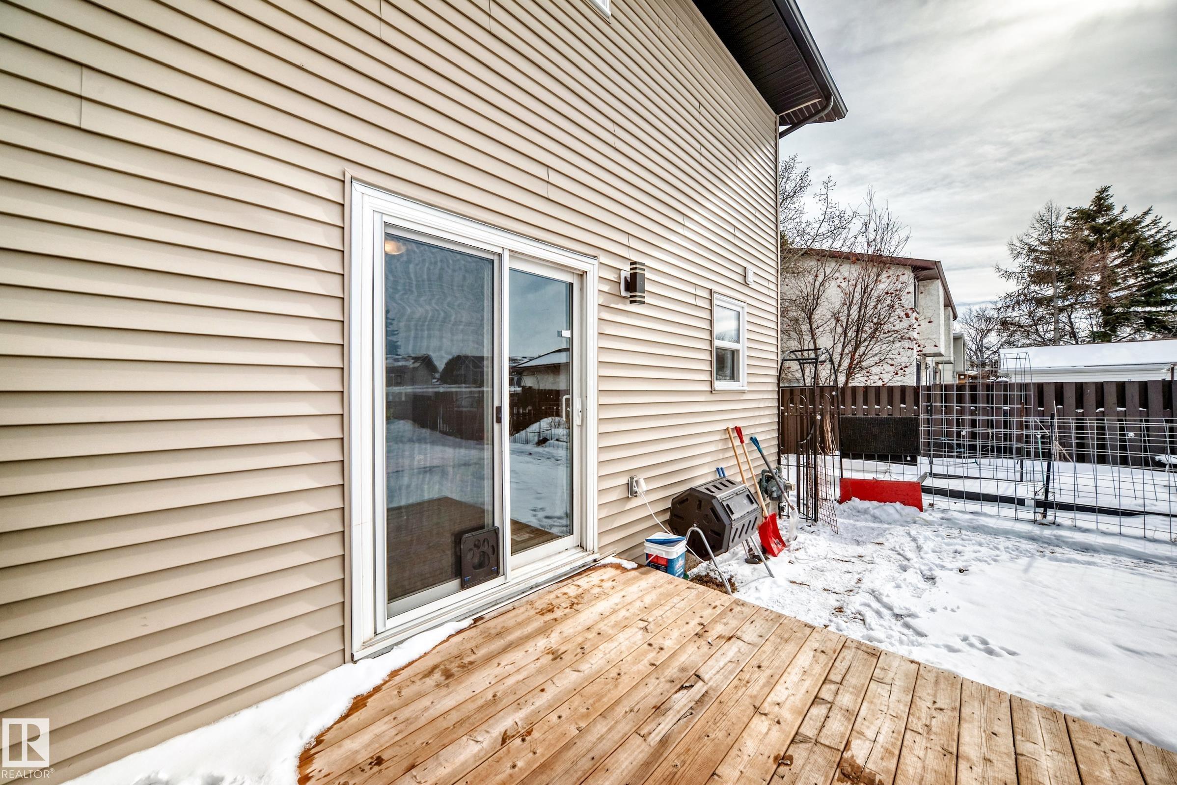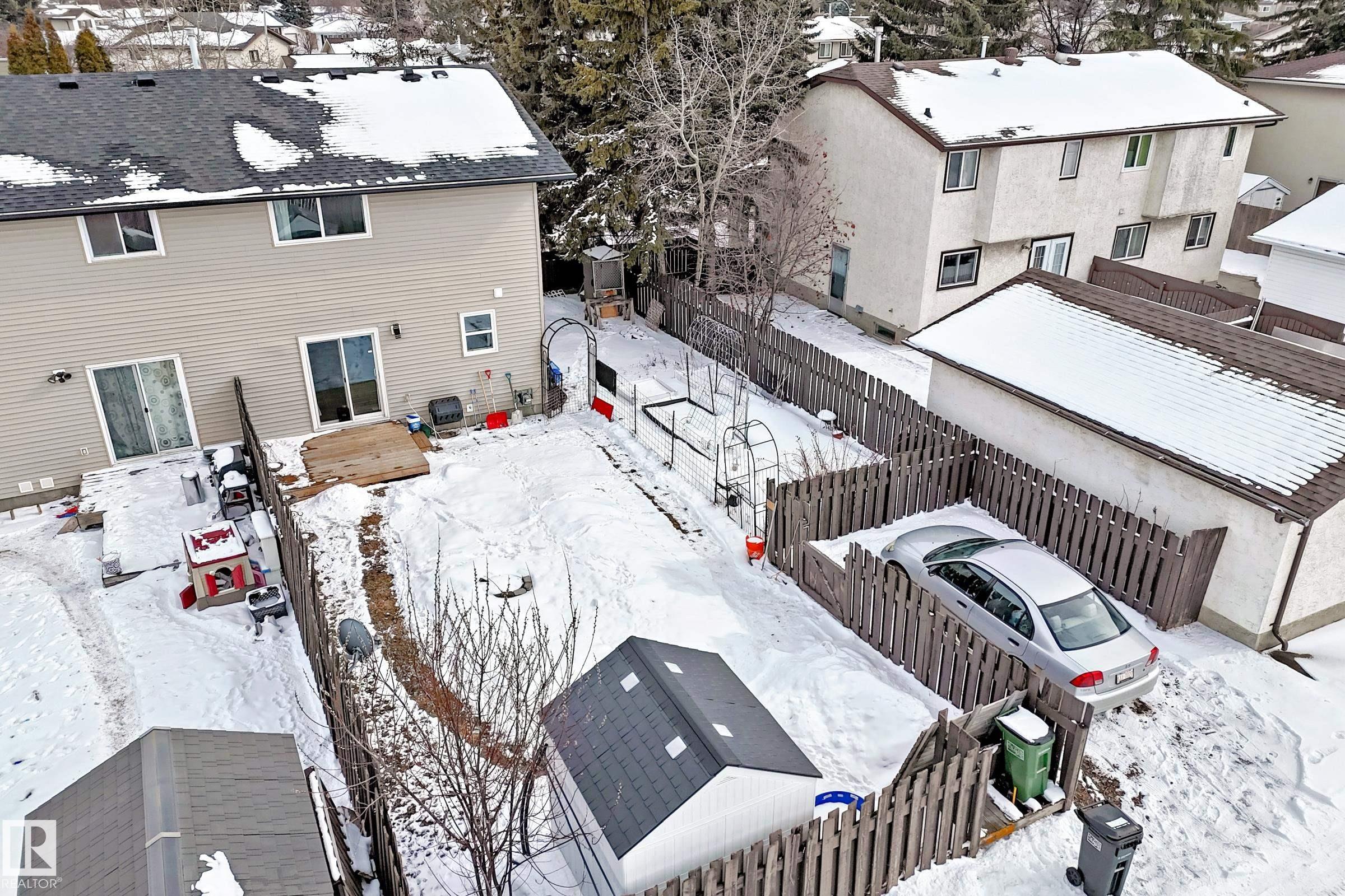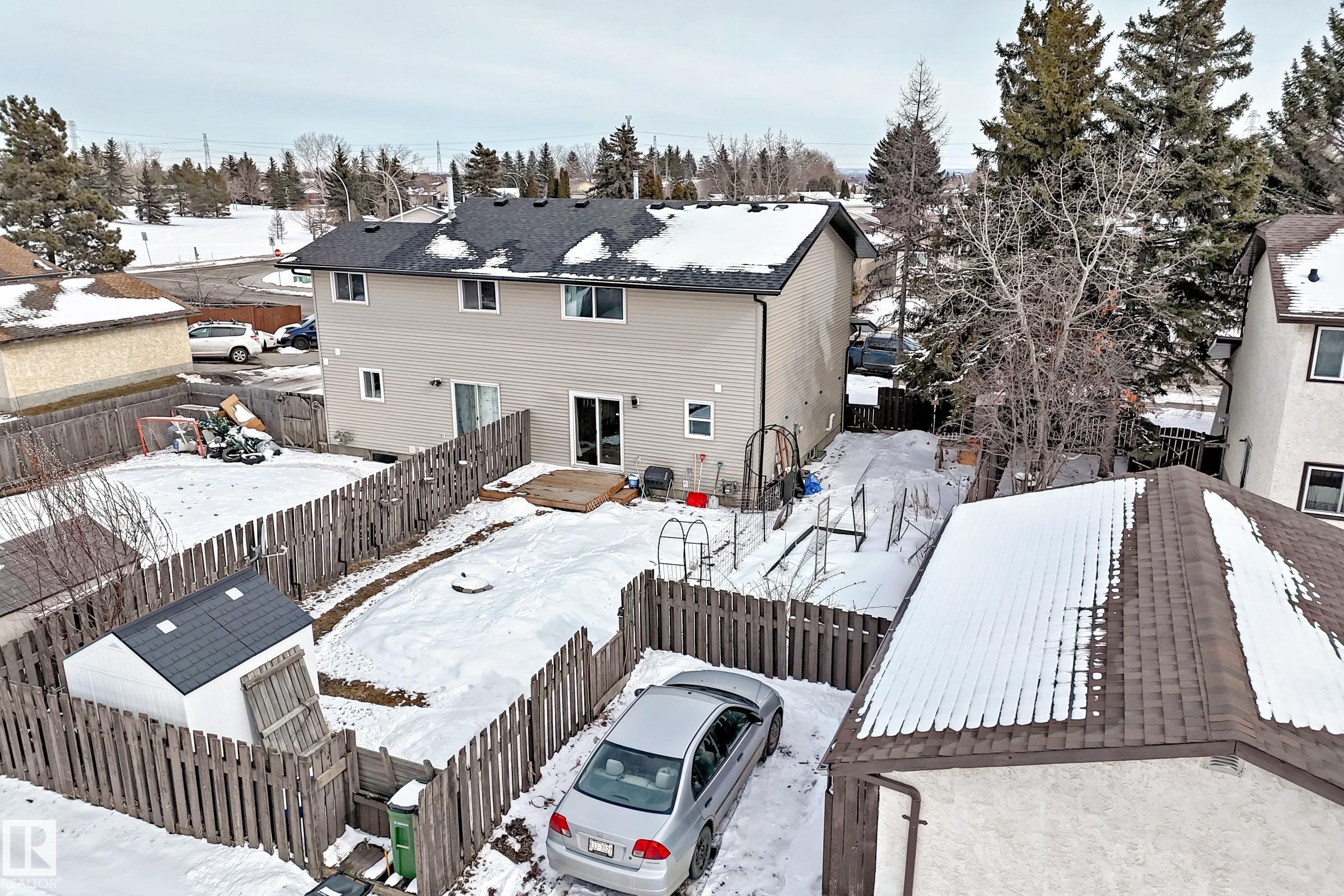 UPDATED HALF DUPLEX IN FRASER WITH NO CONDO FEES Located steps to a Fraser School and park, this updated 3-bedroom half duplex offers great value with major updates already complete. The main floor features a bright, inviting living room, laminate flooring, and big, updated windows. The functional U-shaped kitchen has plenty of storage with a pantry, painted cabinetry, and is open to the dining room and back deck area. The main floor also has a 2pc bath. Upstairs are three comfortable bedrooms, including an oversized primary with a spacious walk-in closet and feature wall. Key updates include siding and roof (2022) and above-grade windows (2020). Outside, the huge fully fenced yard has space to relax, garden, or entertain, plus plenty of space for off-street parking. Close to schools, parks, walking paths, and everyday amenities, with easy access to Manning Town Centre and the Henday. A solid option for first-time buyers or investors. Welcome home!