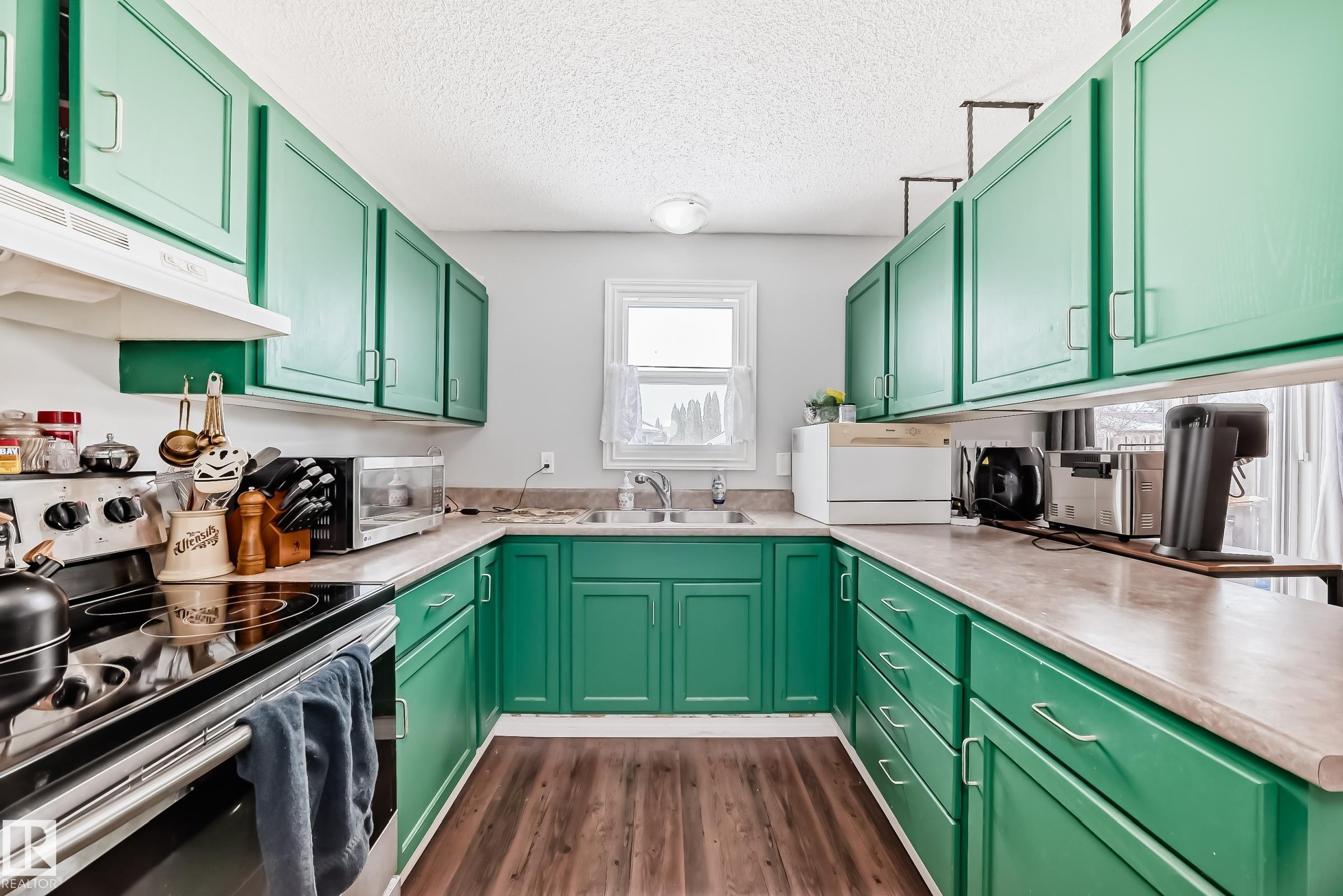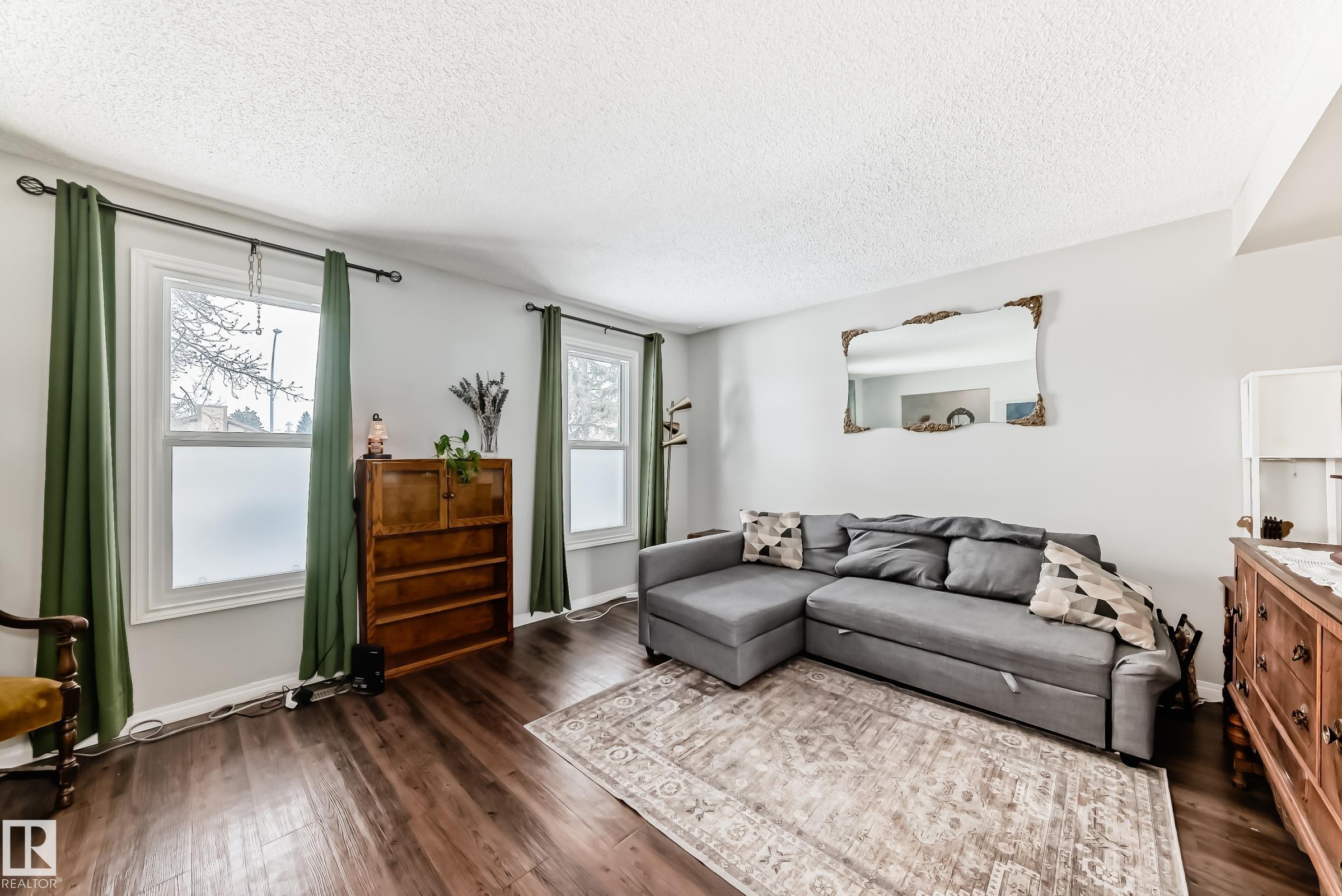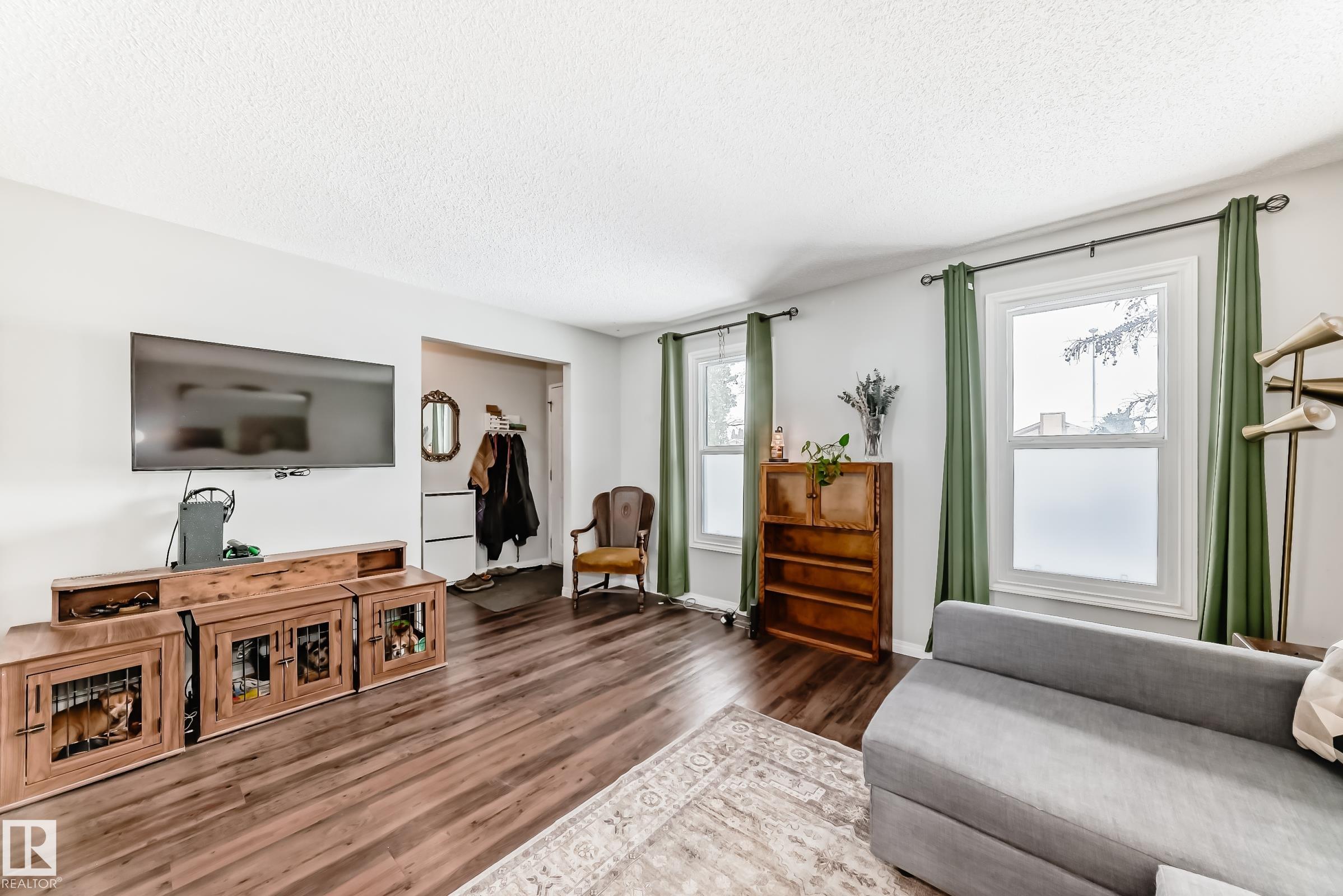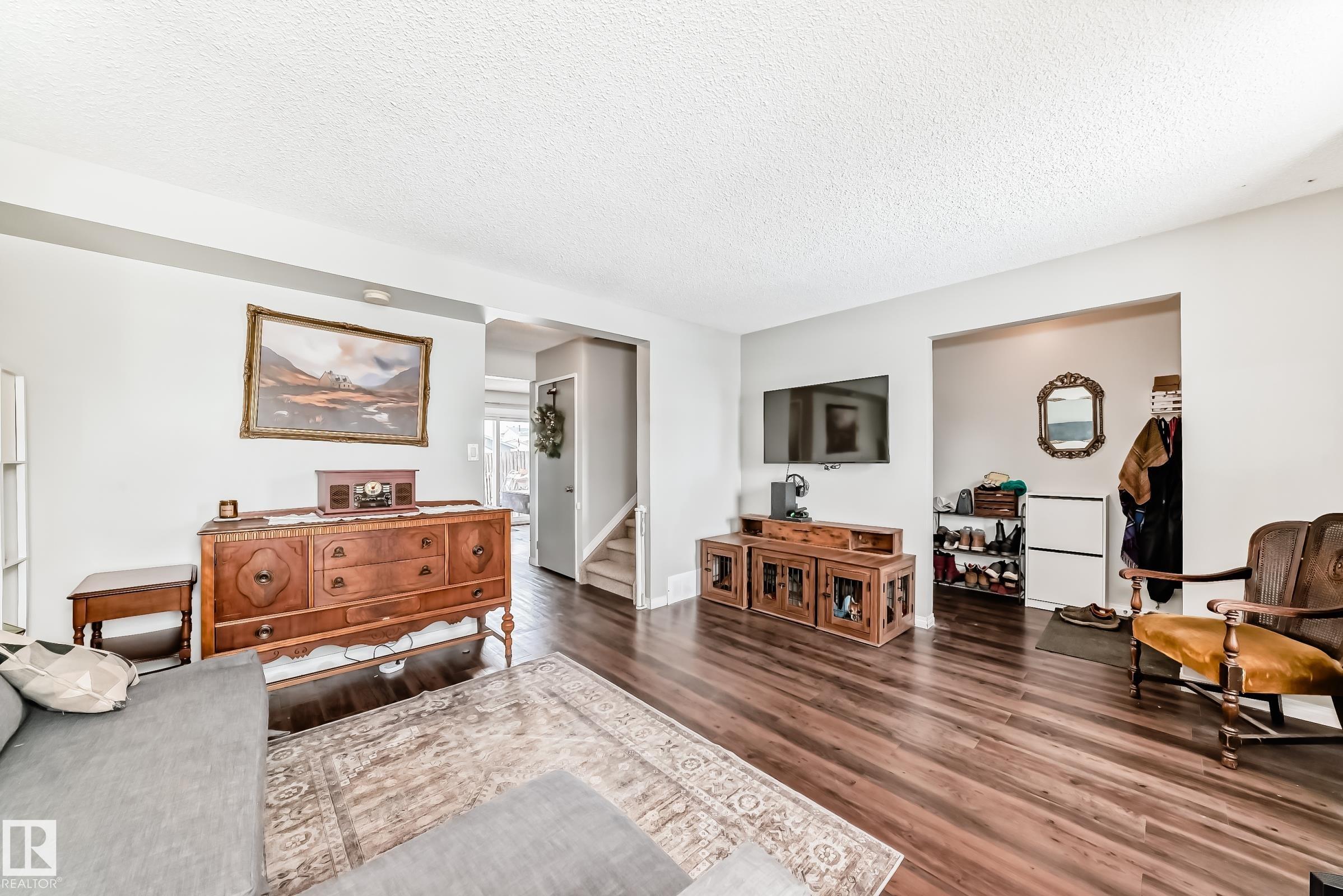 UPDATED HALF DUPLEX IN FRASER WITH NO CONDO FEES Located steps to a Fraser School and park, this updated 3-bedroom half duplex offers great value with major updates already complete. The main floor features a bright, inviting living room, laminate flooring, and big, updated windows. The functional U-shaped kitchen has plenty of storage with a pantry, painted cabinetry, and is open to the dining room and back deck area. The main floor also has a 2pc bath. Upstairs are three comfortable bedrooms, including an oversized primary with a spacious walk-in closet and feature wall. Key updates include siding and roof (2022) and above-grade windows (2020). Outside, the huge fully fenced yard has space to relax, garden, or entertain, plus plenty of space for off-street parking. Close to schools, parks, walking paths, and everyday amenities, with easy access to Manning Town Centre and the Henday. A solid option for first-time buyers or investors. Welcome home!