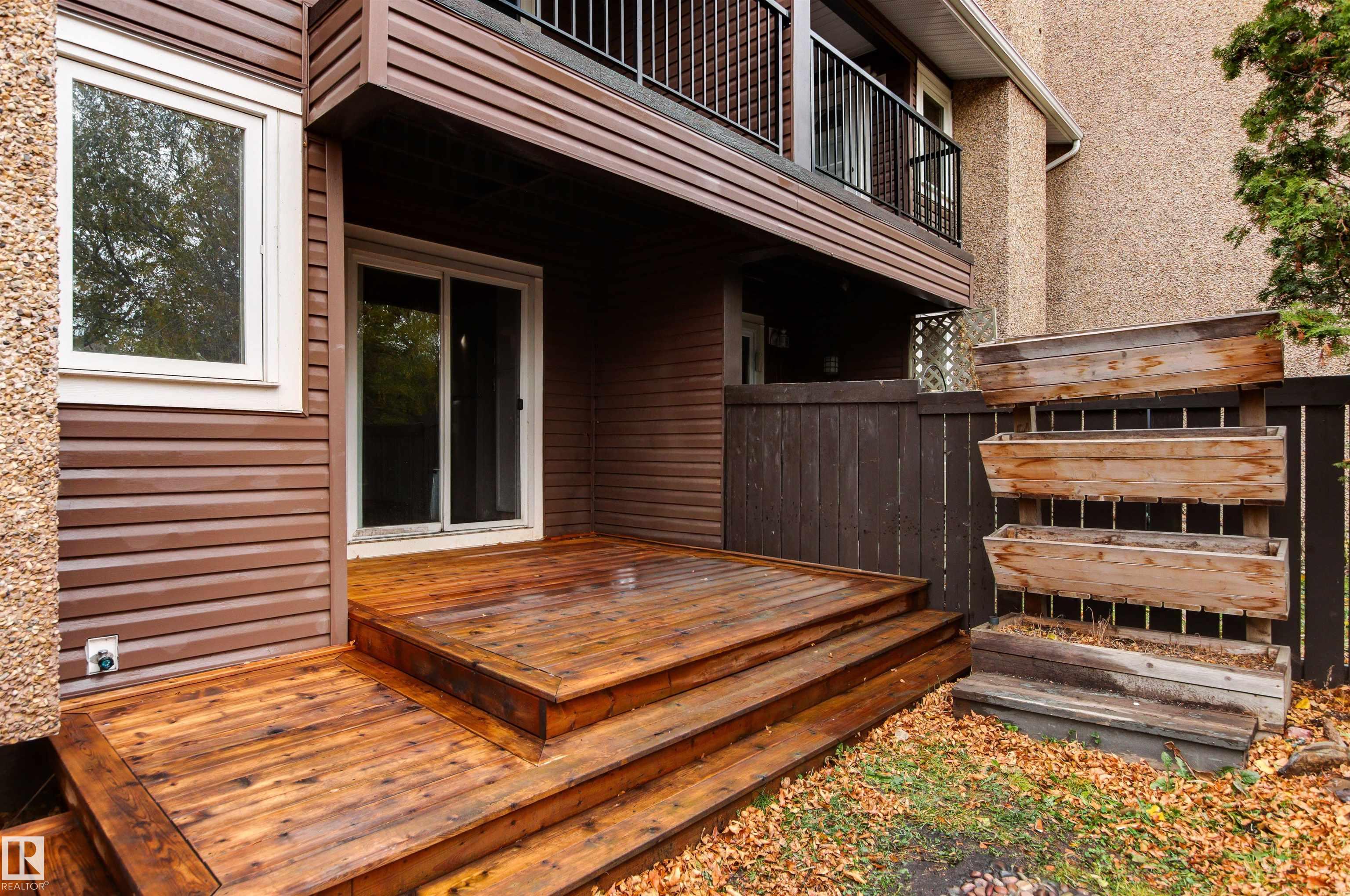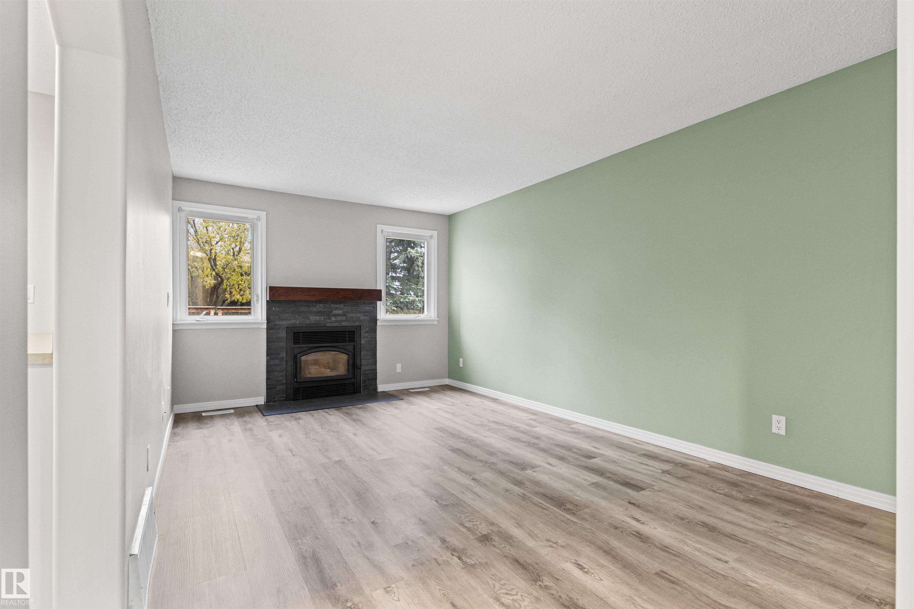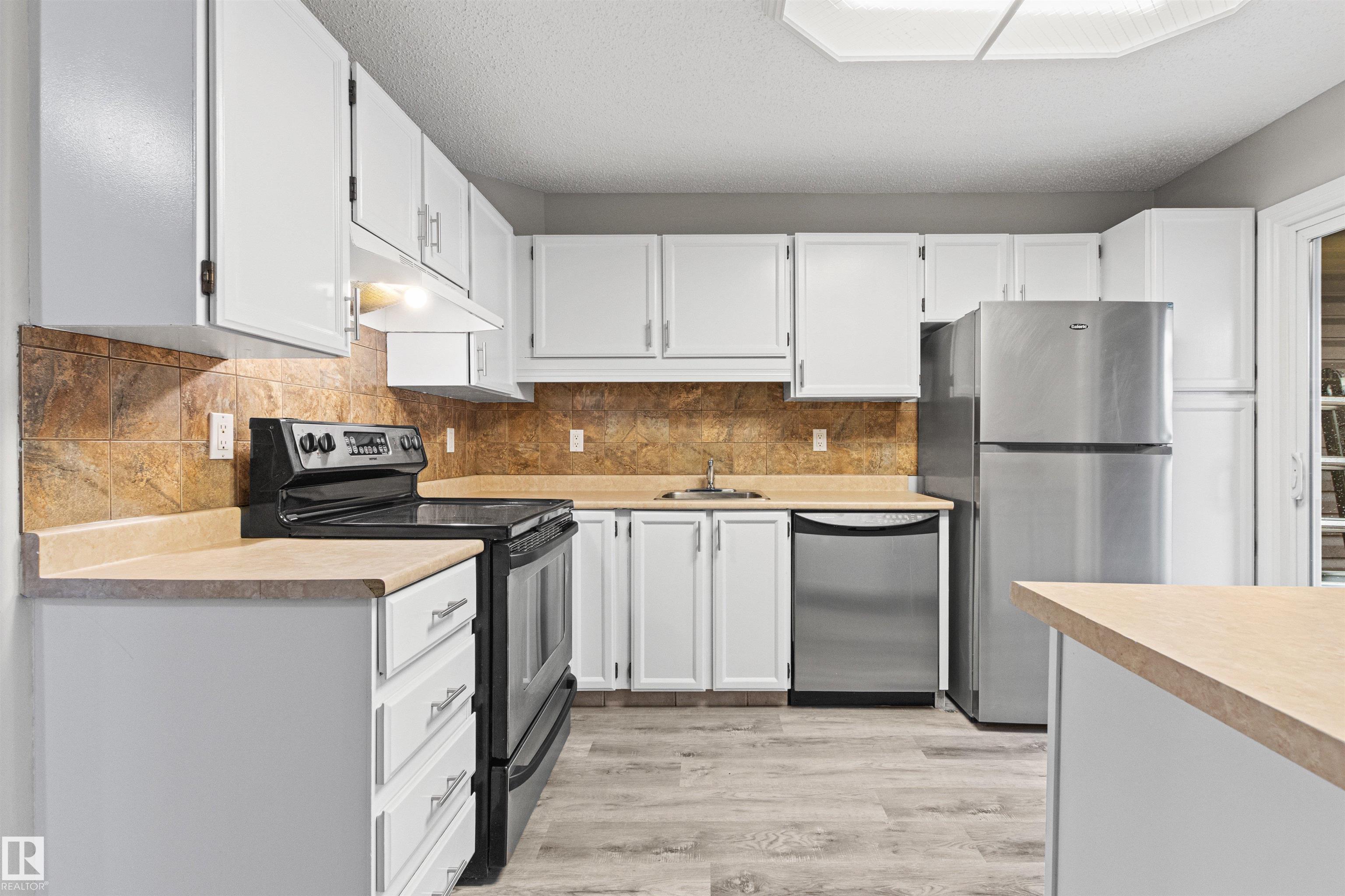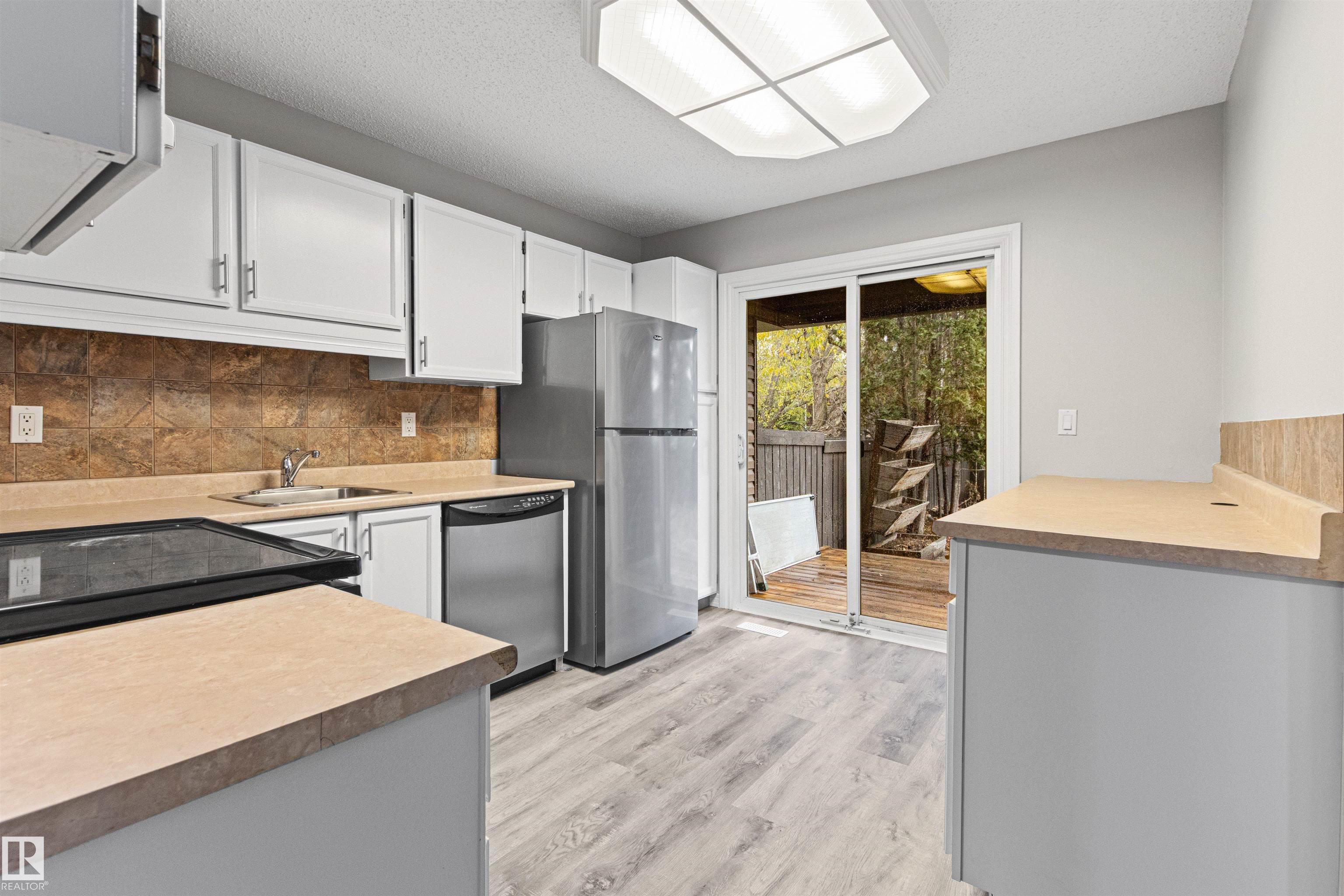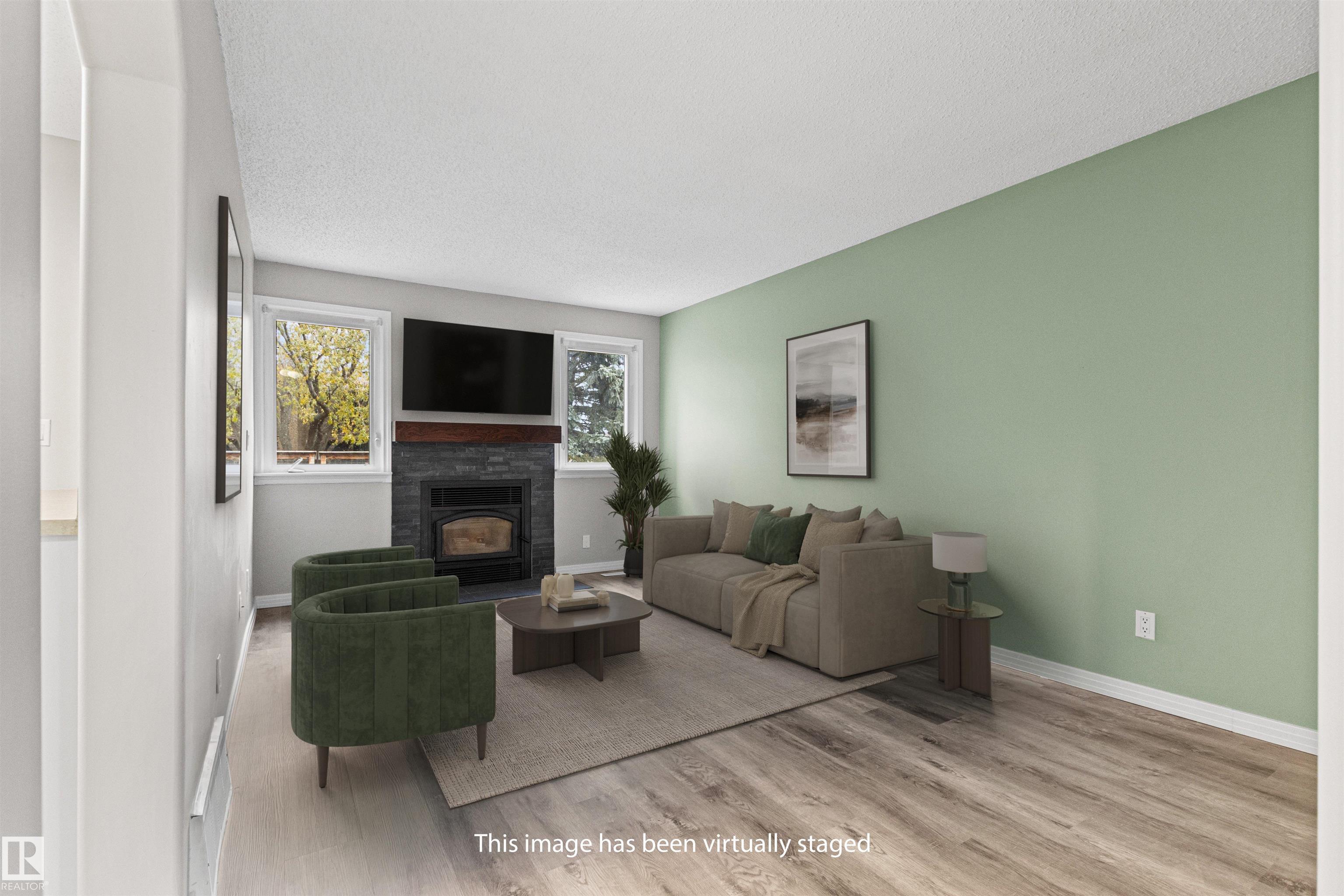 Move in and get cozy by Christmas! This beautifully updated 3-bedroom, 1.5-bath, 2-storey condo in La Perle offers 1,200 sq ft of comfort and the largest private yard in the entire complex! Brand-new luxury vinyl plank flooring and fresh paint set a modern tone. Enjoy easy winter living with a covered parking stall leading to your front patio. Inside, the wood-burning fireplace invites you to stay warm and cozy this holiday season. The bright kitchen features ample cabinets, great counter space, and a view of your private yard, while the dining area is perfect for family or guests. Upstairs, the spacious primary bedroom offers a Juliette balcony and private bath access, with two more bedrooms completing the level. The finished basement adds three versatile spaces for relaxing or hobbies. In the well-run Parklane West complex with condo fees of $419/month, this home is move-in ready -- just in time for Christmas by the fire!