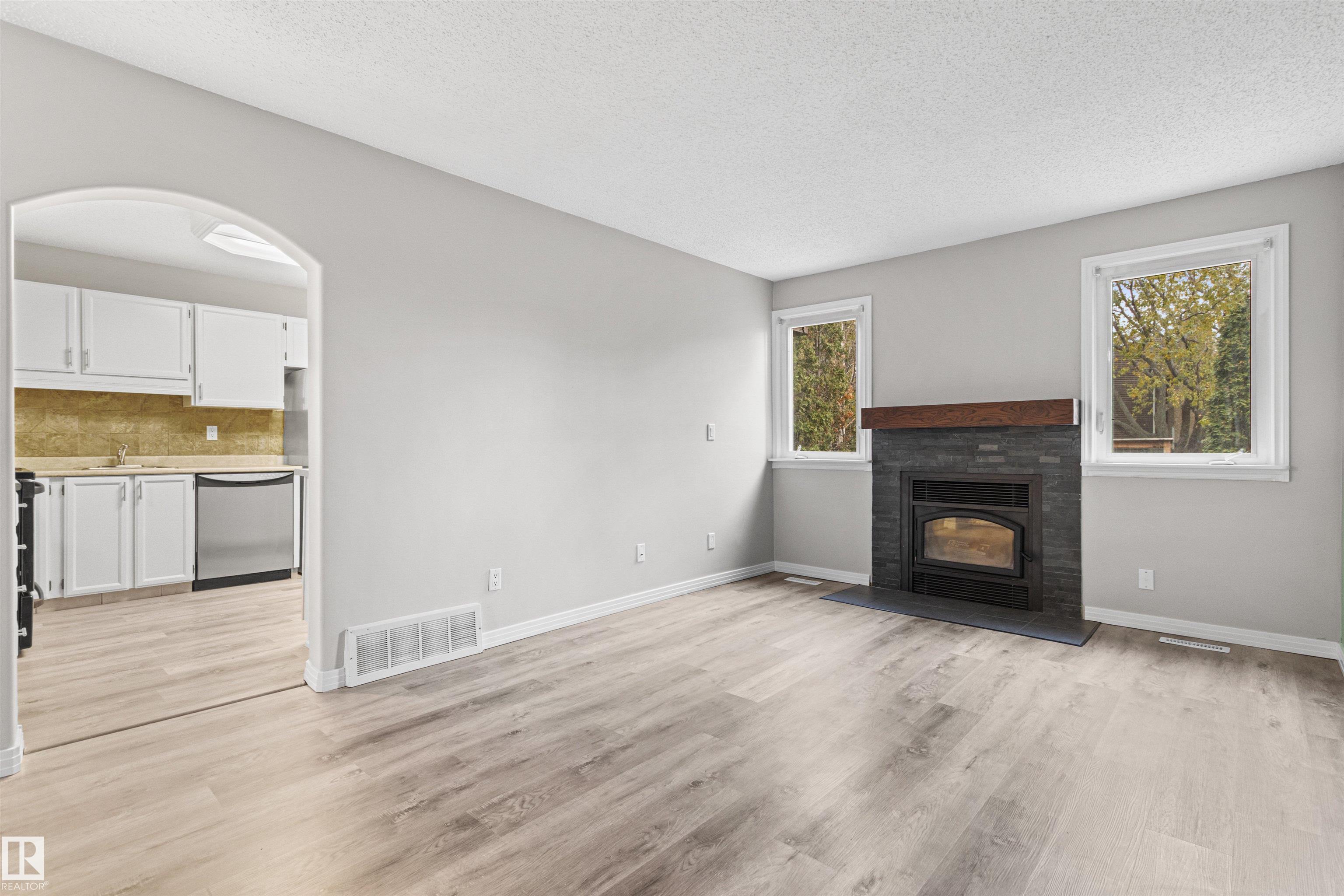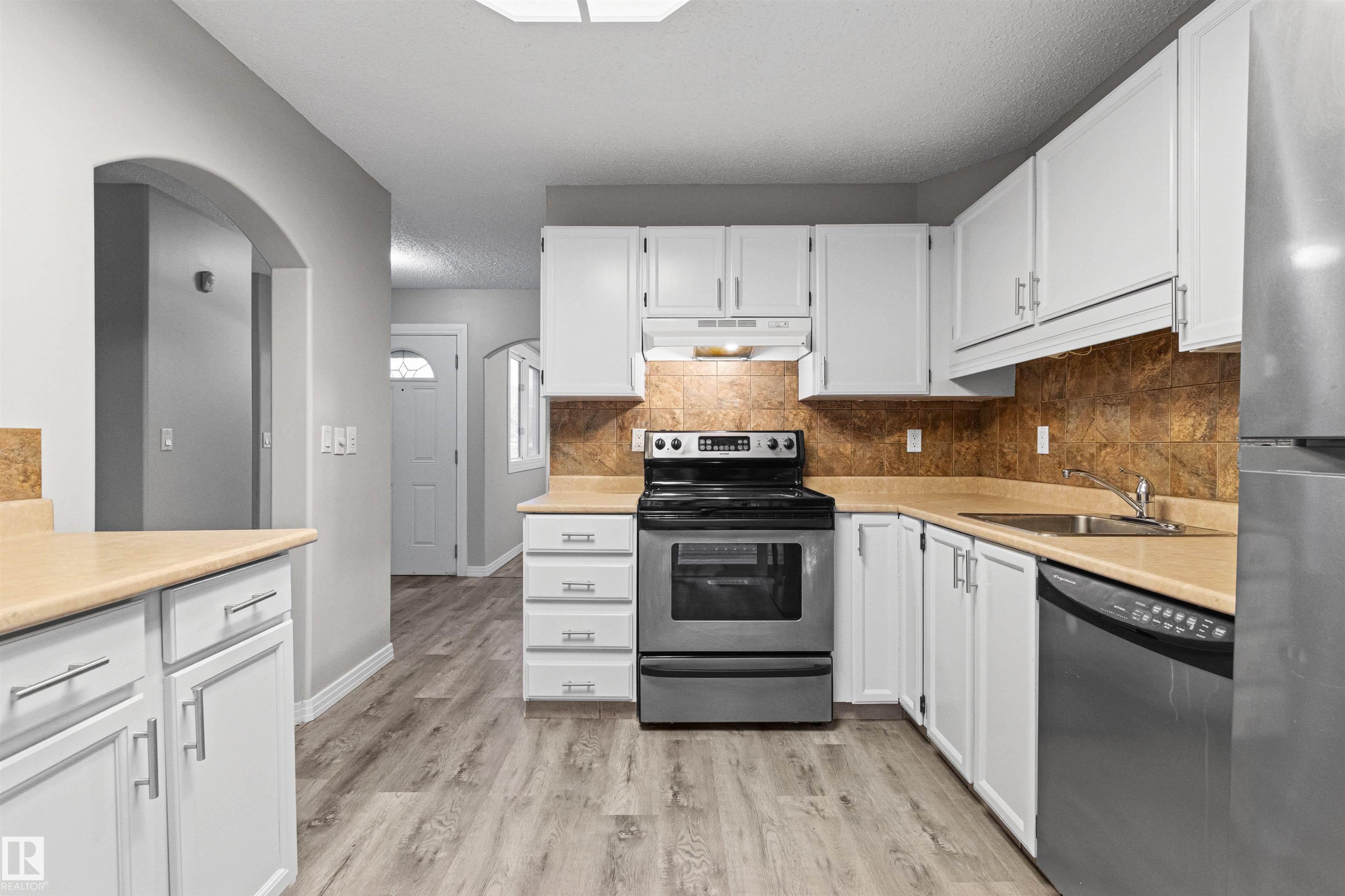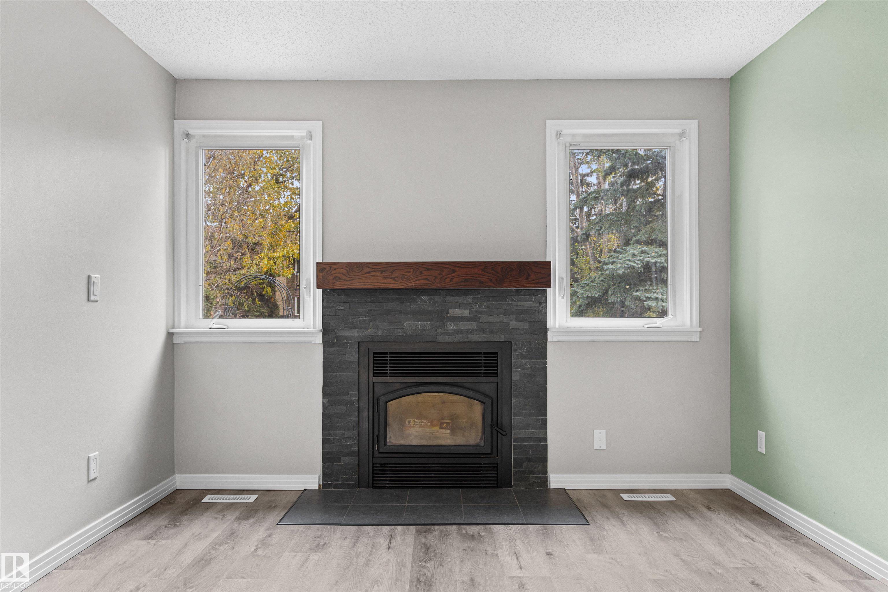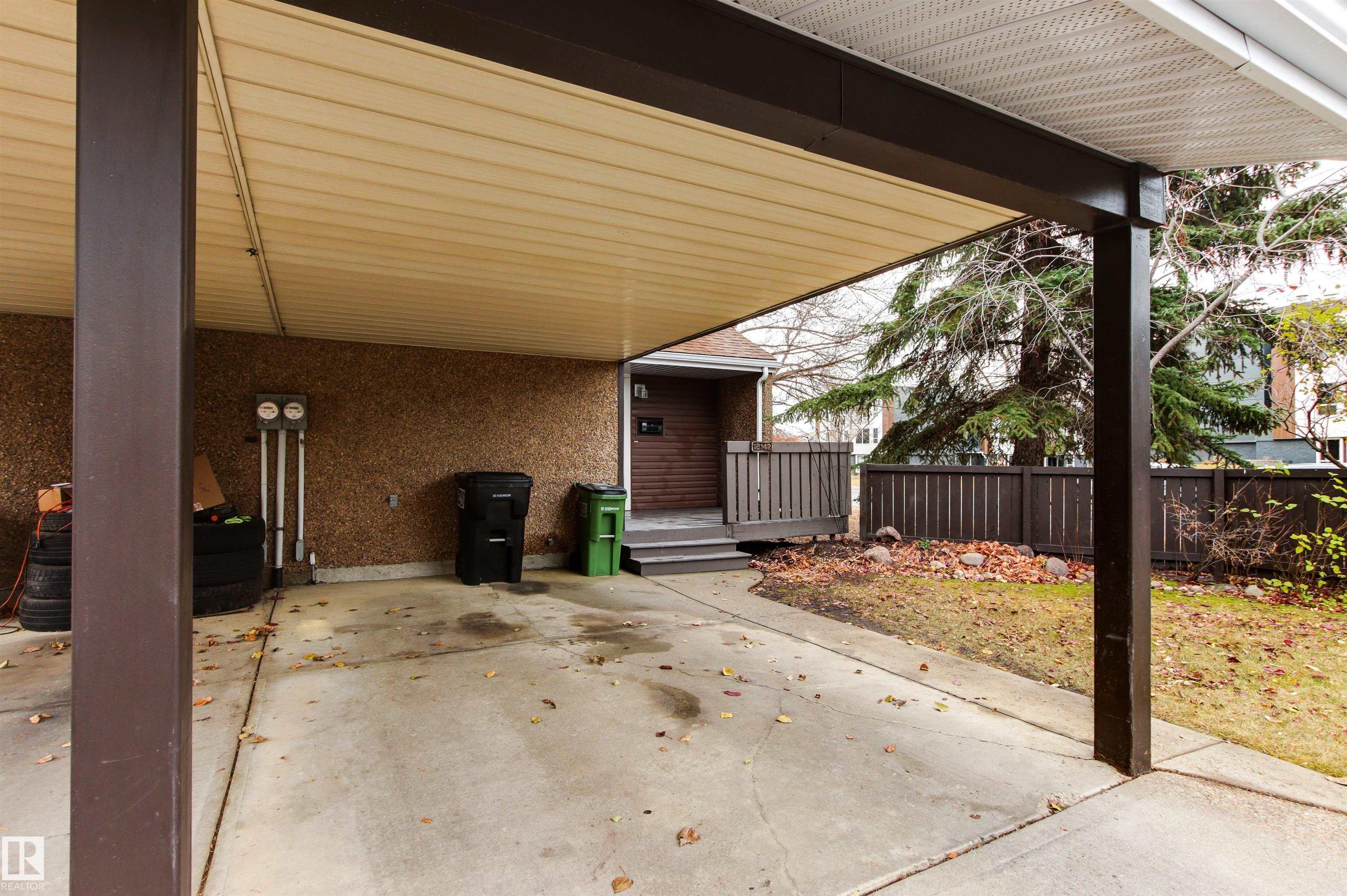 Move in and get cozy by Christmas! This beautifully updated 3-bedroom, 1.5-bath, 2-storey condo in La Perle offers 1,200 sq ft of comfort and the largest private yard in the entire complex! Brand-new luxury vinyl plank flooring and fresh paint set a modern tone. Enjoy easy winter living with a covered parking stall leading to your front patio. Inside, the wood-burning fireplace invites you to stay warm and cozy this holiday season. The bright kitchen features ample cabinets, great counter space, and a view of your private yard, while the dining area is perfect for family or guests. Upstairs, the spacious primary bedroom offers a Juliette balcony and private bath access, with two more bedrooms completing the level. The finished basement adds three versatile spaces for relaxing or hobbies. In the well-run Parklane West complex with condo fees of $419/month, this home is move-in ready -- just in time for Christmas by the fire!