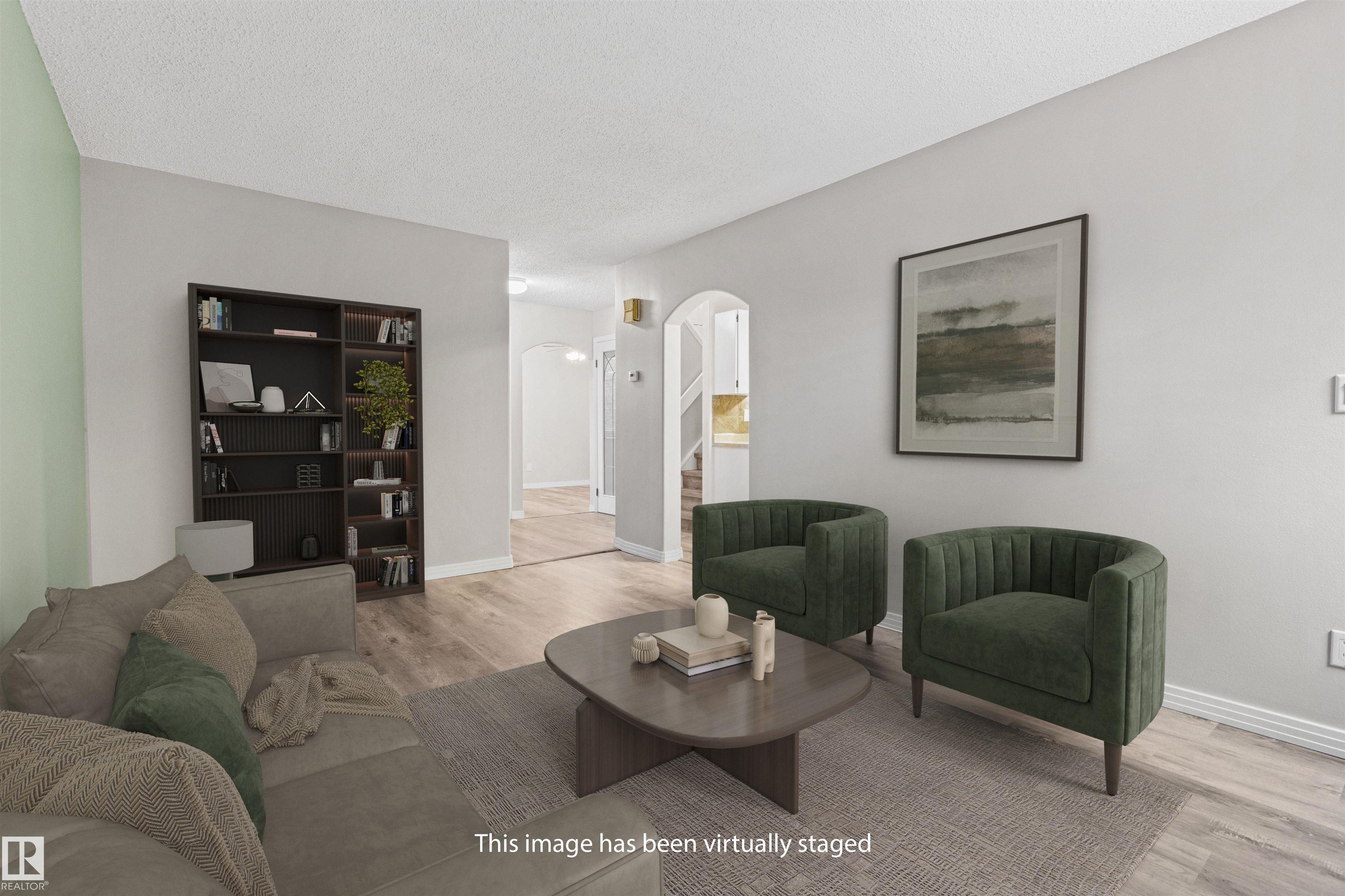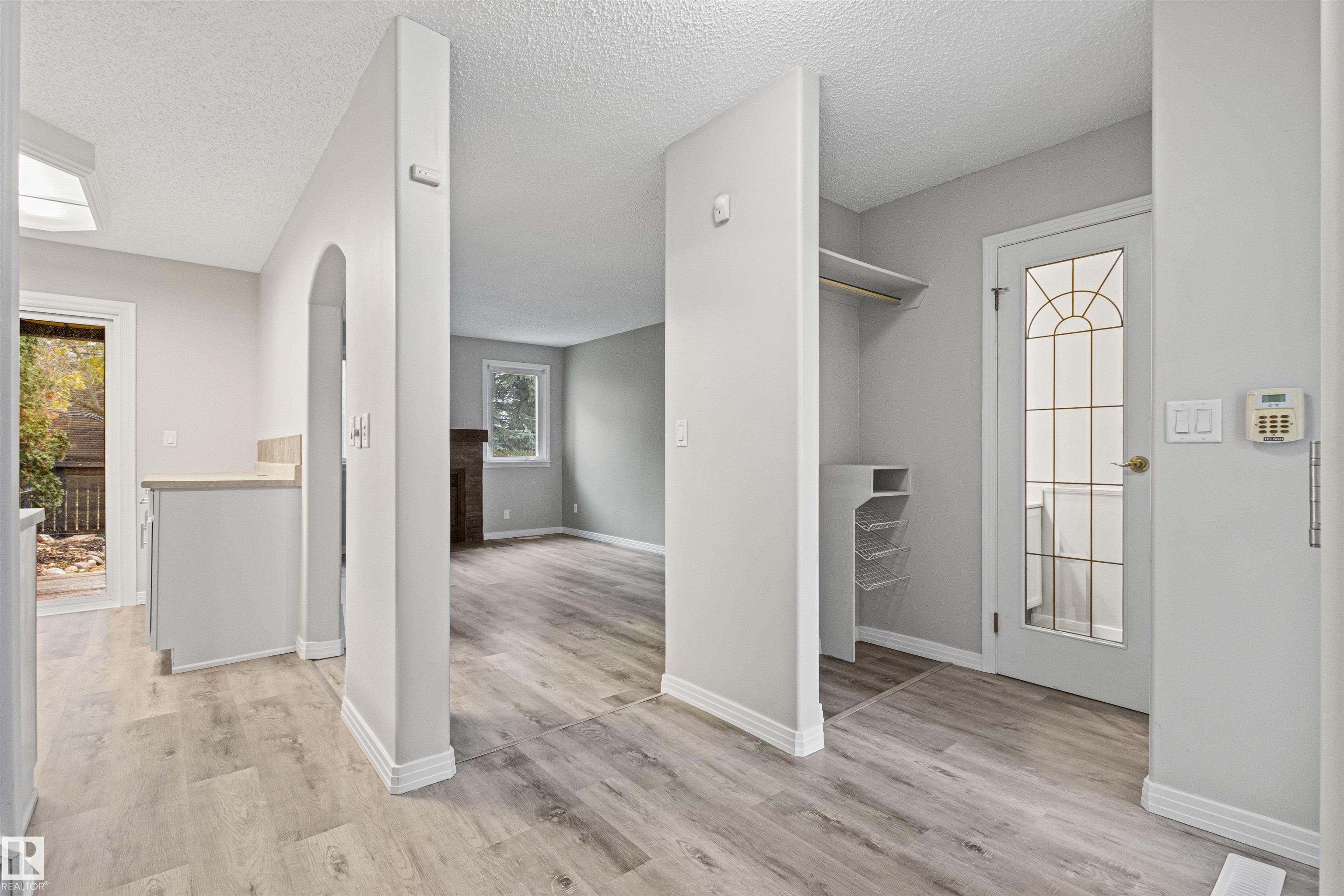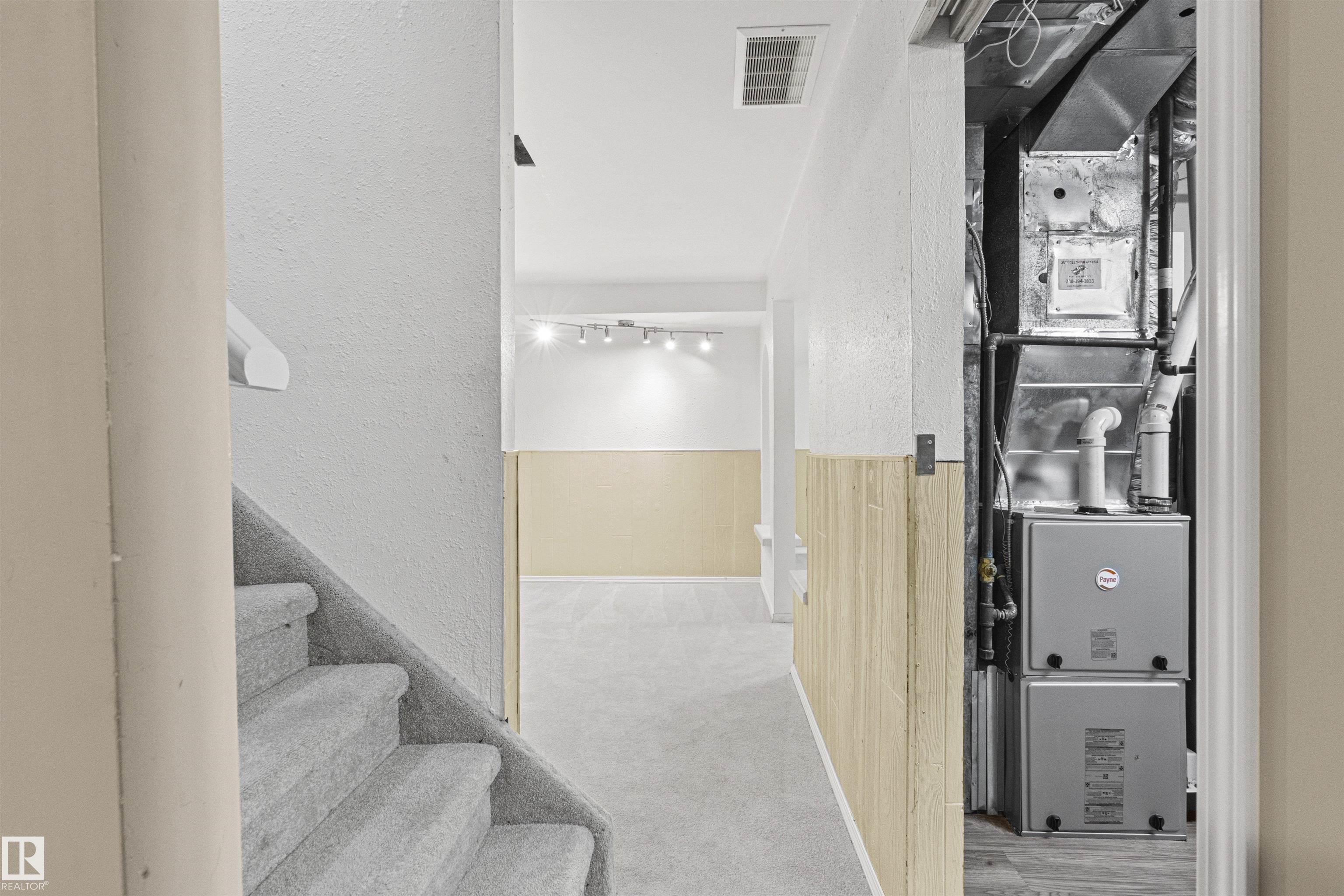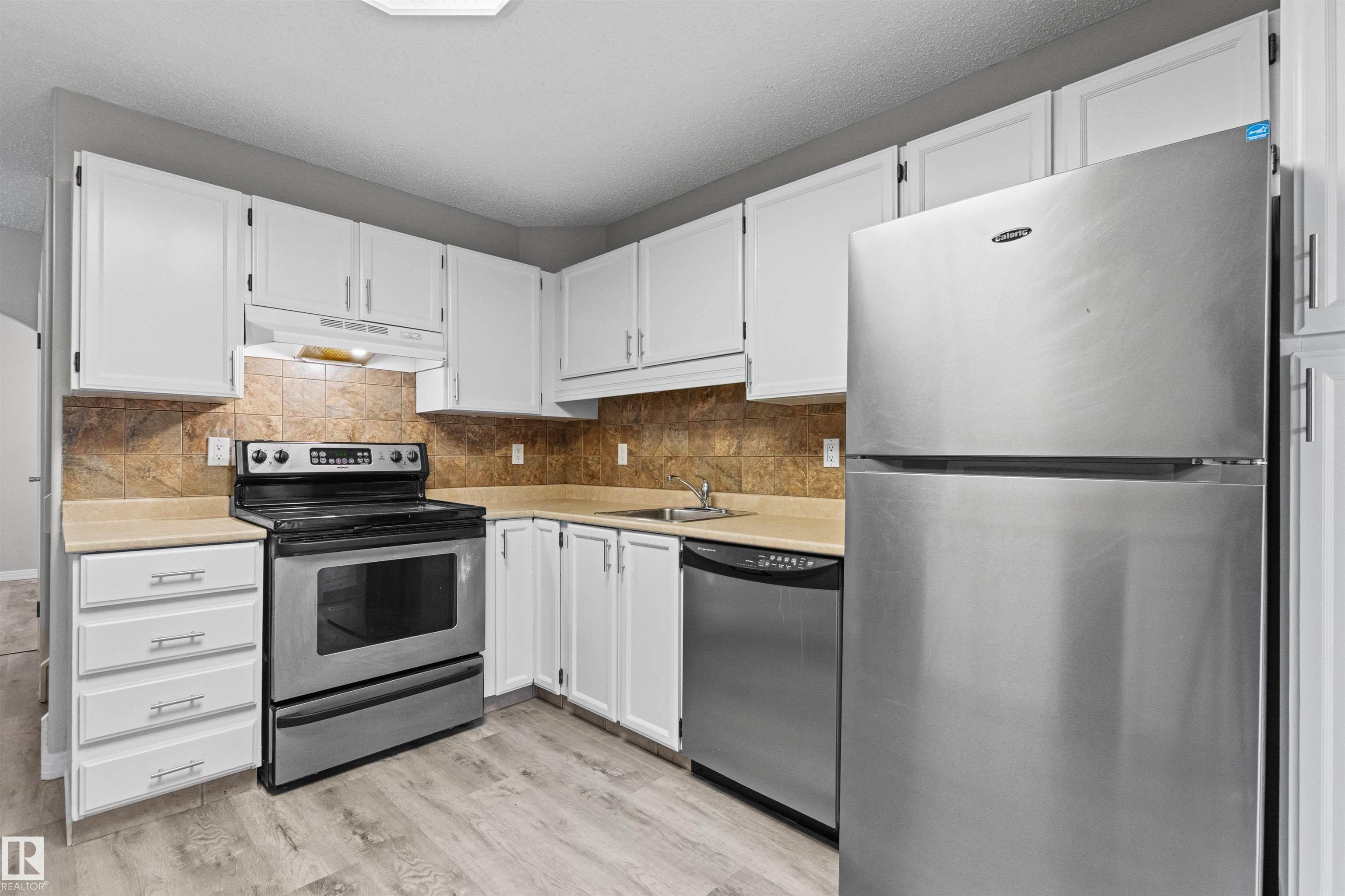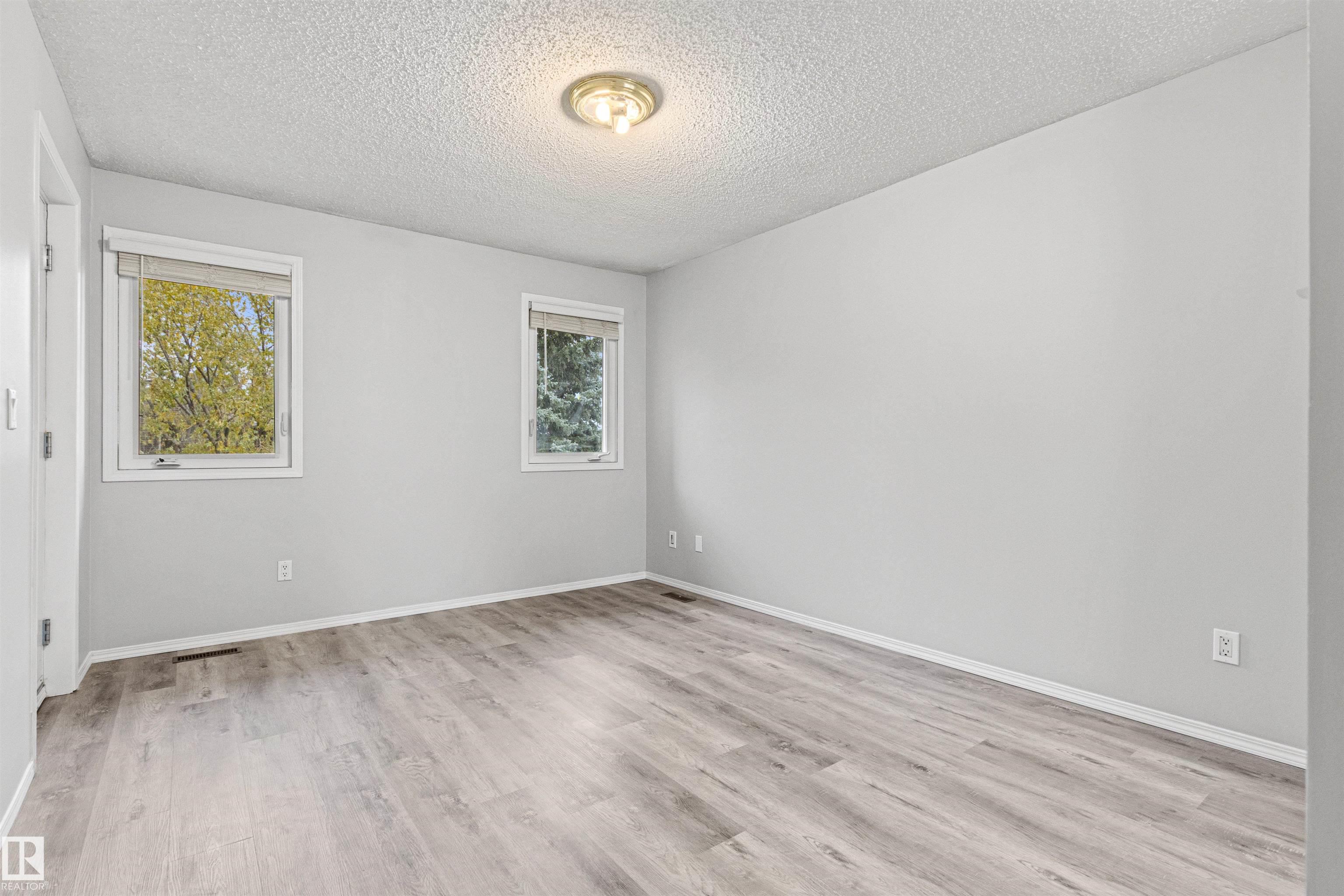 Move in and get cozy by Christmas! This beautifully updated 3-bedroom, 1.5-bath, 2-storey condo in La Perle offers 1,200 sq ft of comfort and the largest private yard in the entire complex! Brand-new luxury vinyl plank flooring and fresh paint set a modern tone. Enjoy easy winter living with a covered parking stall leading to your front patio. Inside, the wood-burning fireplace invites you to stay warm and cozy this holiday season. The bright kitchen features ample cabinets, great counter space, and a view of your private yard, while the dining area is perfect for family or guests. Upstairs, the spacious primary bedroom offers a Juliette balcony and private bath access, with two more bedrooms completing the level. The finished basement adds three versatile spaces for relaxing or hobbies. In the well-run Parklane West complex with condo fees of $419/month, this home is move-in ready -- just in time for Christmas by the fire!