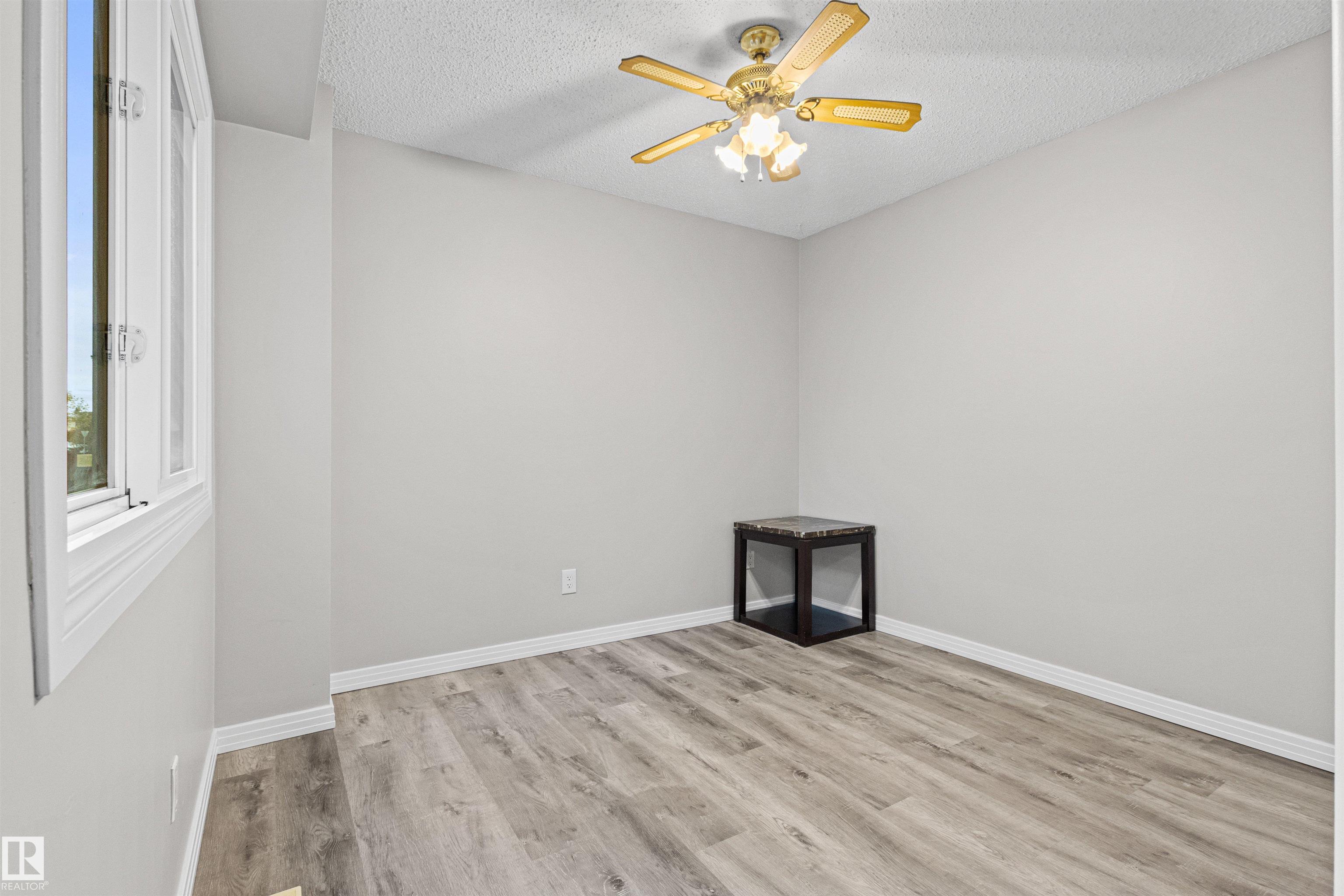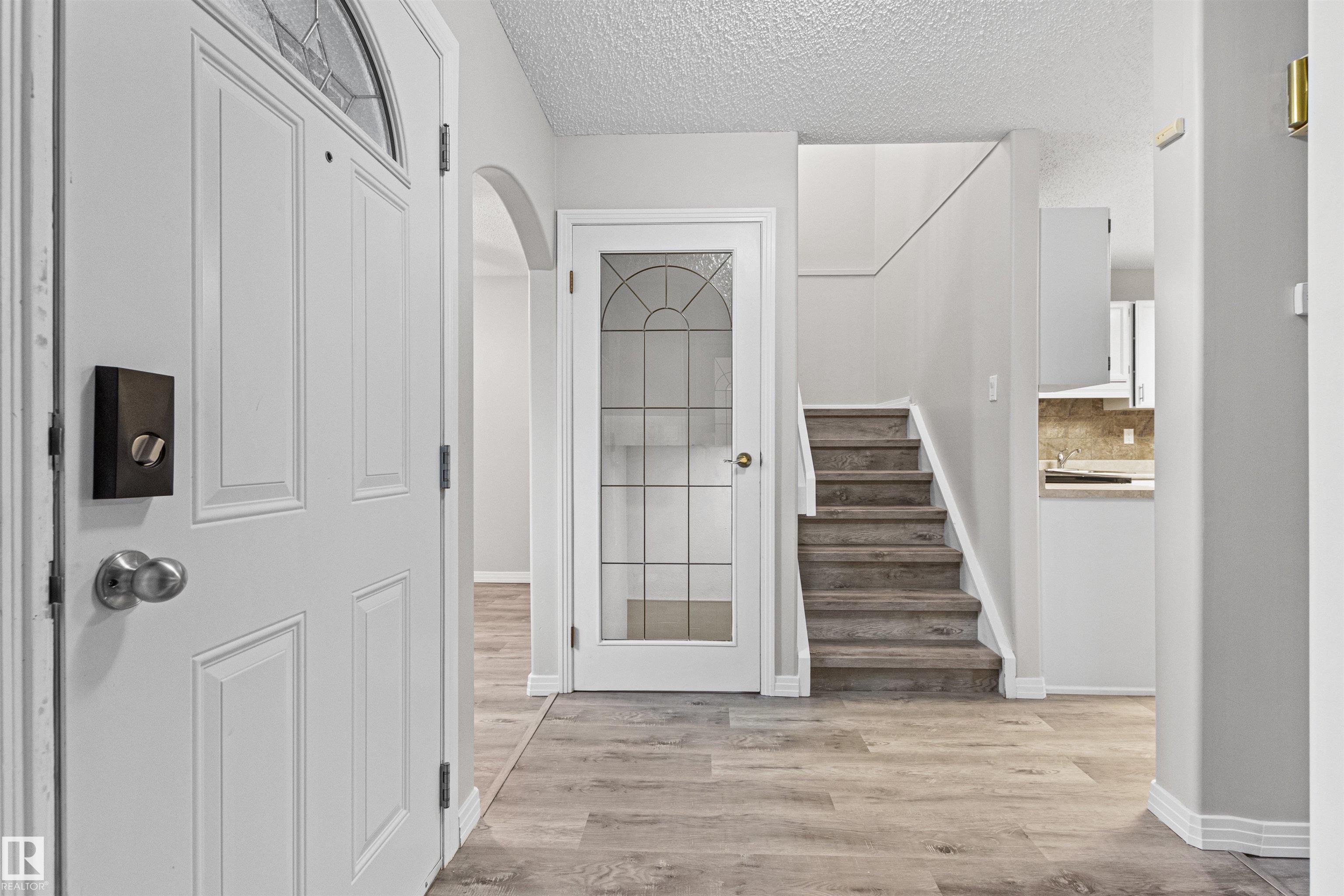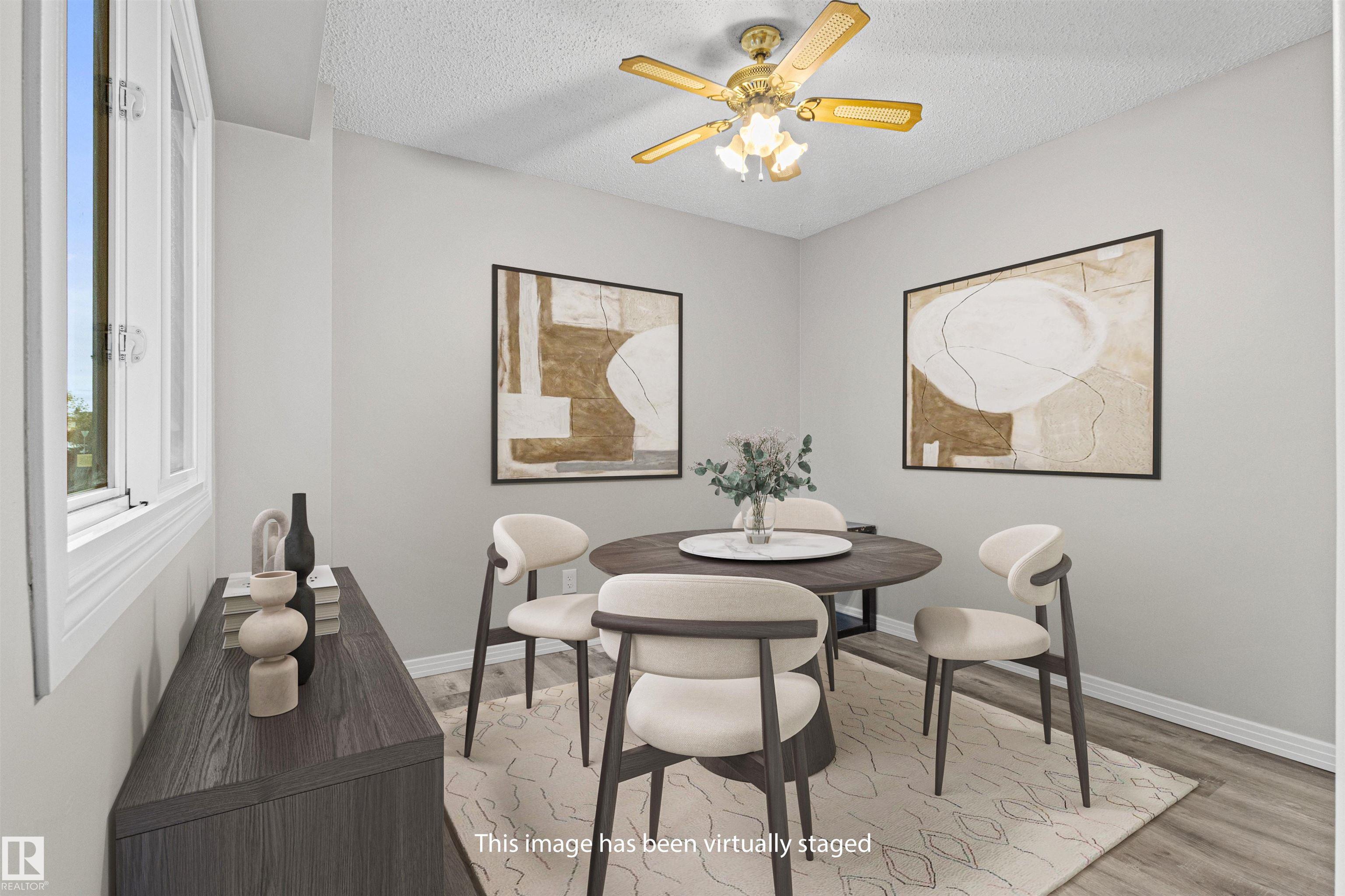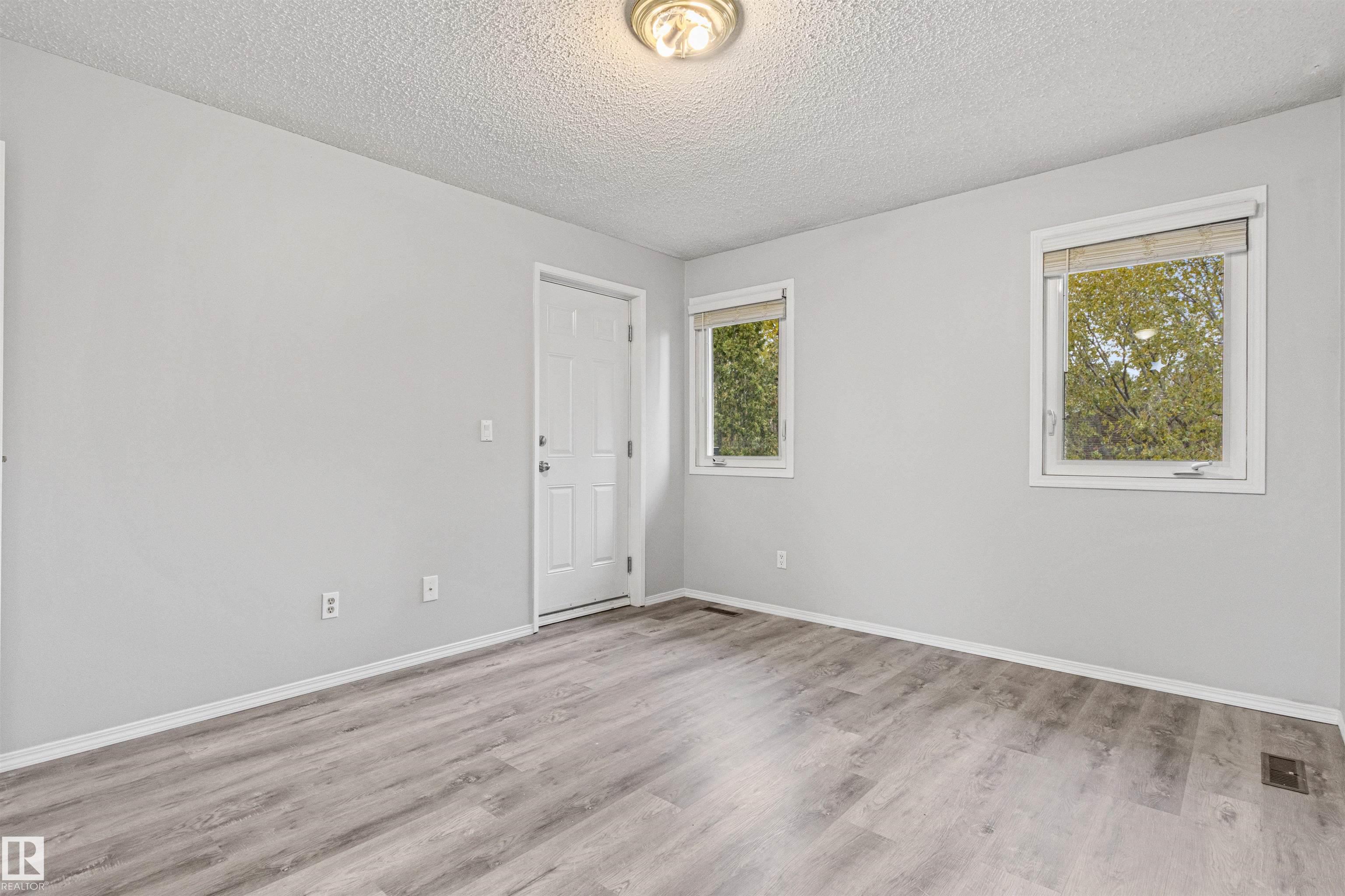 Move in and get cozy by Christmas! This beautifully updated 3-bedroom, 1.5-bath, 2-storey condo in La Perle offers 1,200 sq ft of comfort and the largest private yard in the entire complex! Brand-new luxury vinyl plank flooring and fresh paint set a modern tone. Enjoy easy winter living with a covered parking stall leading to your front patio. Inside, the wood-burning fireplace invites you to stay warm and cozy this holiday season. The bright kitchen features ample cabinets, great counter space, and a view of your private yard, while the dining area is perfect for family or guests. Upstairs, the spacious primary bedroom offers a Juliette balcony and private bath access, with two more bedrooms completing the level. The finished basement adds three versatile spaces for relaxing or hobbies. In the well-run Parklane West complex with condo fees of $419/month, this home is move-in ready -- just in time for Christmas by the fire!