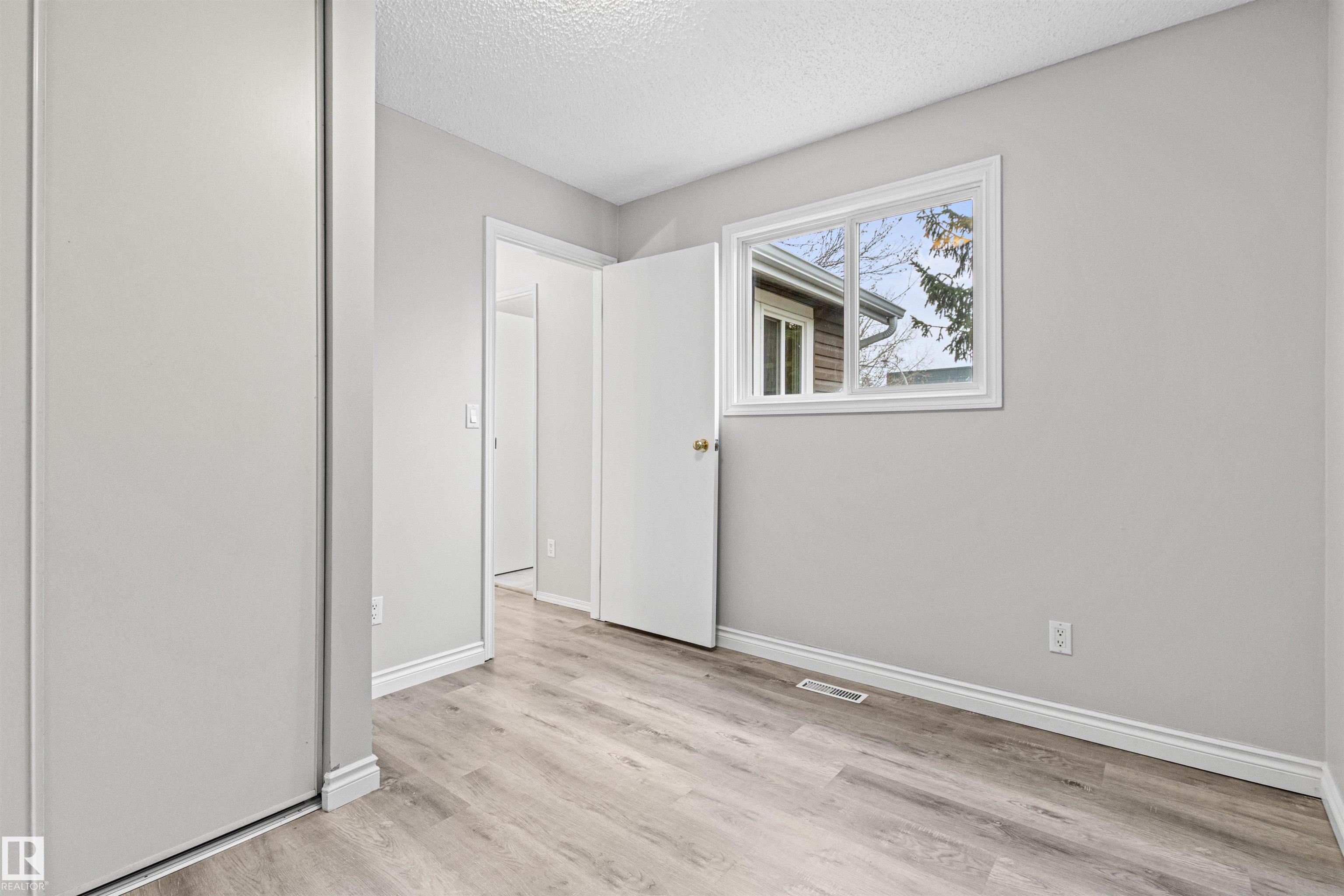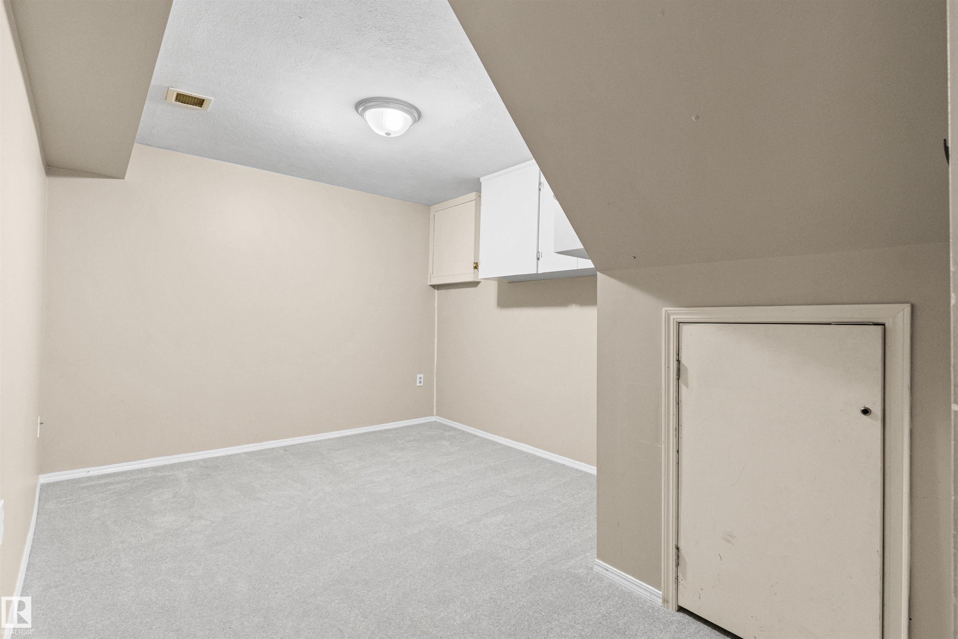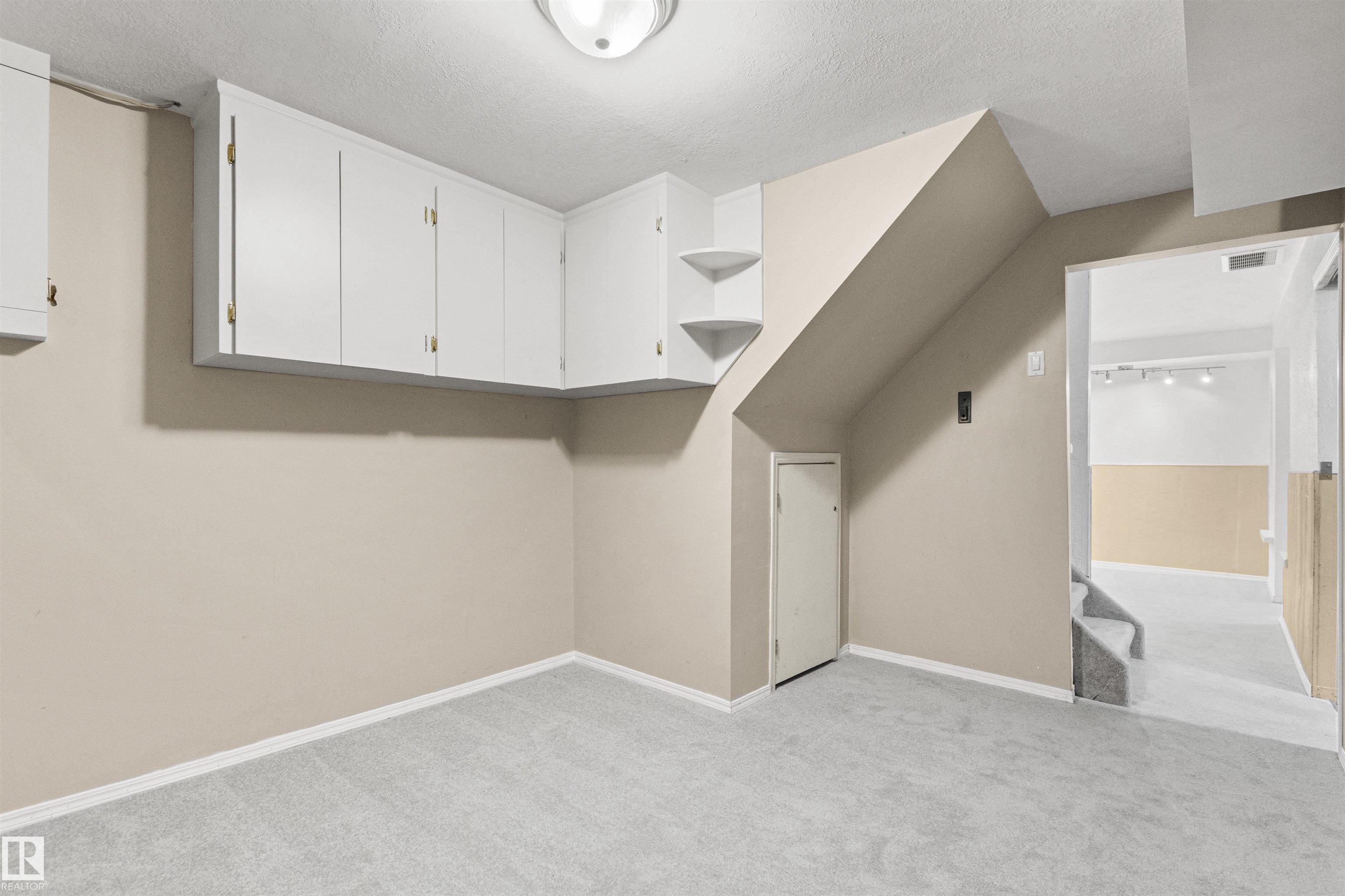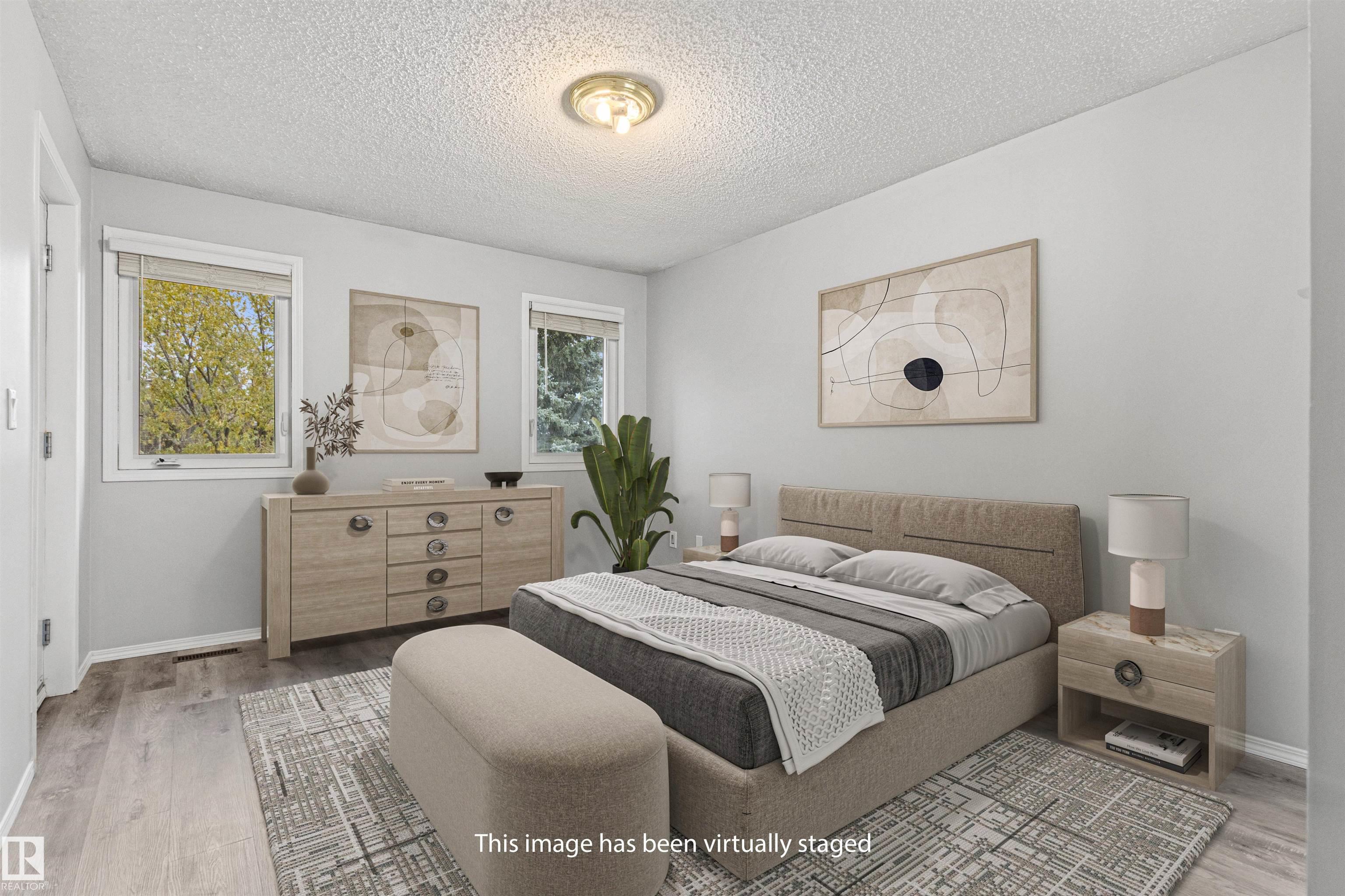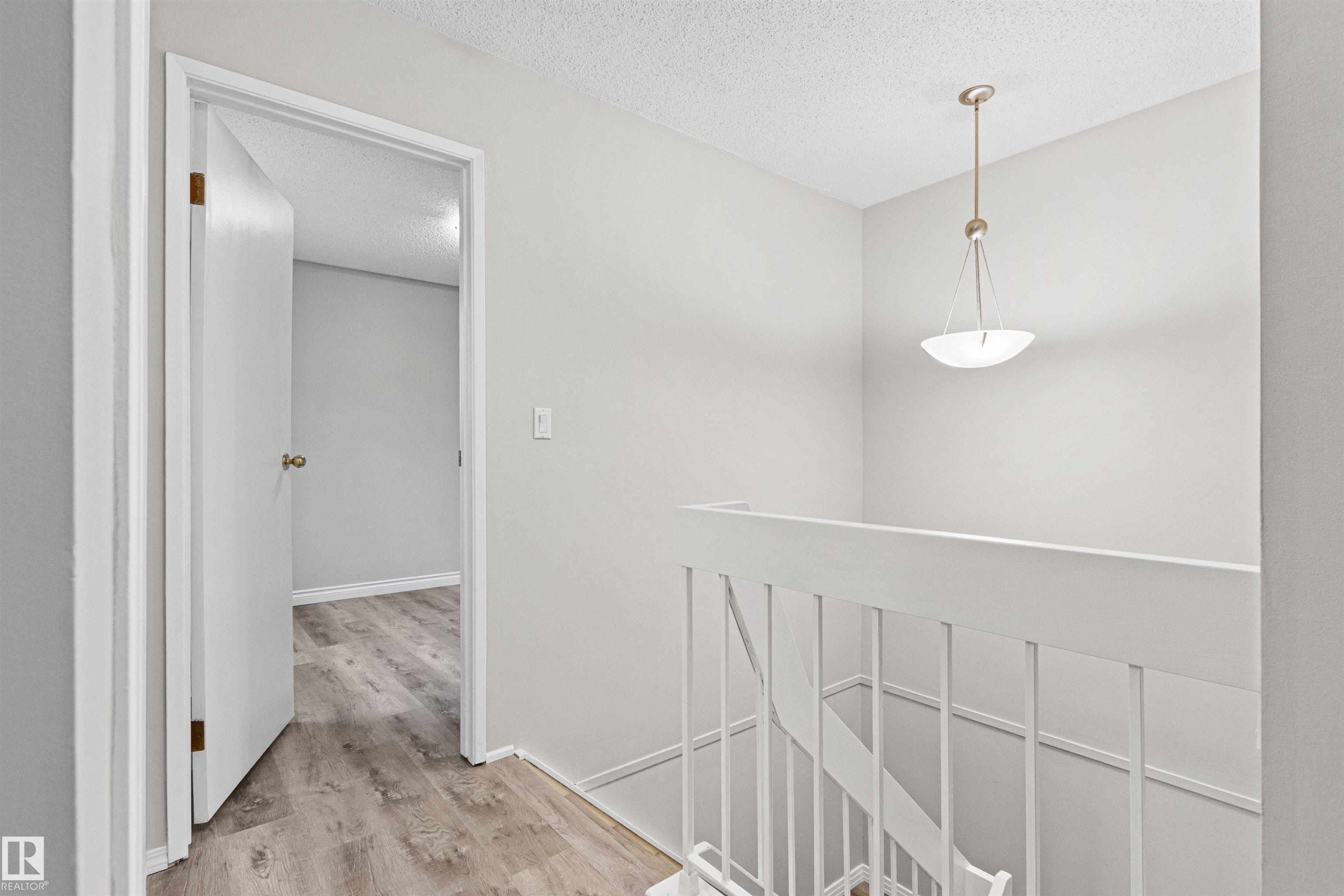 Move in and get cozy by Christmas! This beautifully updated 3-bedroom, 1.5-bath, 2-storey condo in La Perle offers 1,200 sq ft of comfort and the largest private yard in the entire complex! Brand-new luxury vinyl plank flooring and fresh paint set a modern tone. Enjoy easy winter living with a covered parking stall leading to your front patio. Inside, the wood-burning fireplace invites you to stay warm and cozy this holiday season. The bright kitchen features ample cabinets, great counter space, and a view of your private yard, while the dining area is perfect for family or guests. Upstairs, the spacious primary bedroom offers a Juliette balcony and private bath access, with two more bedrooms completing the level. The finished basement adds three versatile spaces for relaxing or hobbies. In the well-run Parklane West complex with condo fees of $419/month, this home is move-in ready -- just in time for Christmas by the fire!