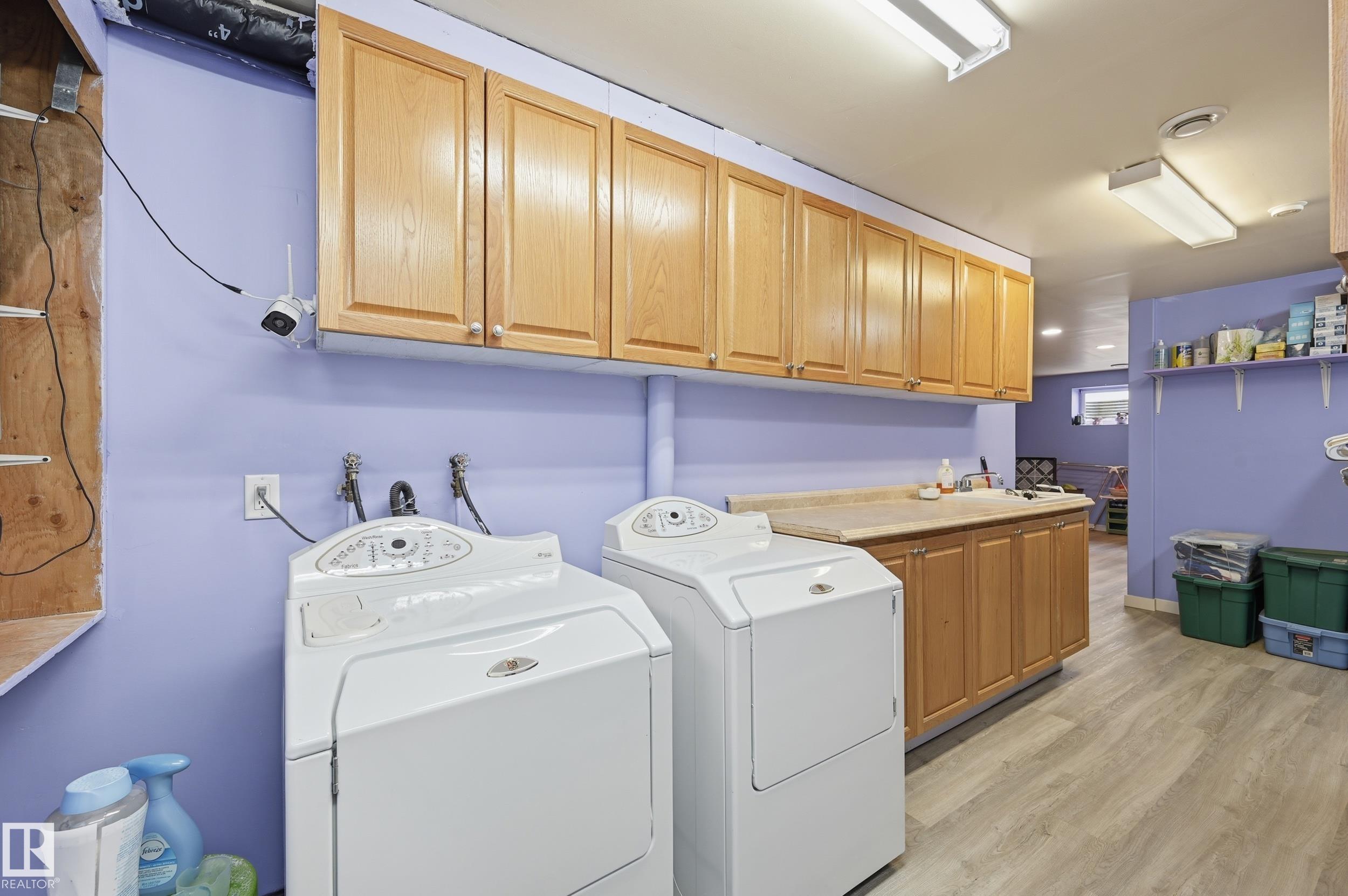 PRISTINE CONDITION by the ORIGINAL OWNERS, this Montorio Homes 2-storey with 2000 sf+. Showcasing PRIDE OF OWNERSHIP & quality from a reputable EUROPEAN BUILDER. Main floor offers a bright living & dining rm with vaulted ceilings, HARDWOOD flooring, & ceramic tile finishes, plus functional kitchen with peninsula & eating nook, a comfortable family room with gas Fireplace & MAIN FL BEDROOM--ideal for elder parent/home office or play room. You will appreciate the large deck, fenced yard and Oversized attached garage for the entire Family. Upstairs includes a LARGE primary suite featuring a walk-in closet, ensuite with Jacuzzi & 2 additional bdrms (one with walk-in closet) with a full bath. The basement includes a craft/sewing area, a huge recreation room currently used as a dance studio with mirrored walls, bright laundry room, generous storage, & room to develop 5th bdrm. Ideally located close to St. John Bosco School, walking distance to parks/lake & offering quick access to shopping, restaurants & Henday.