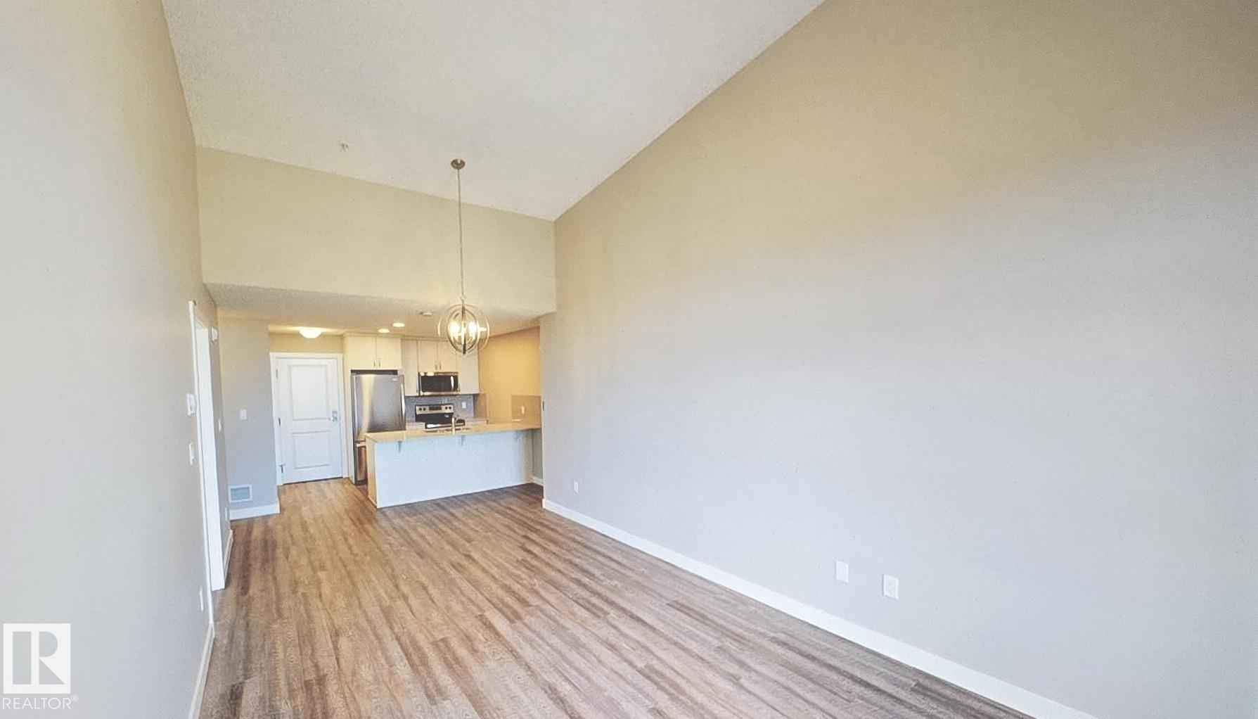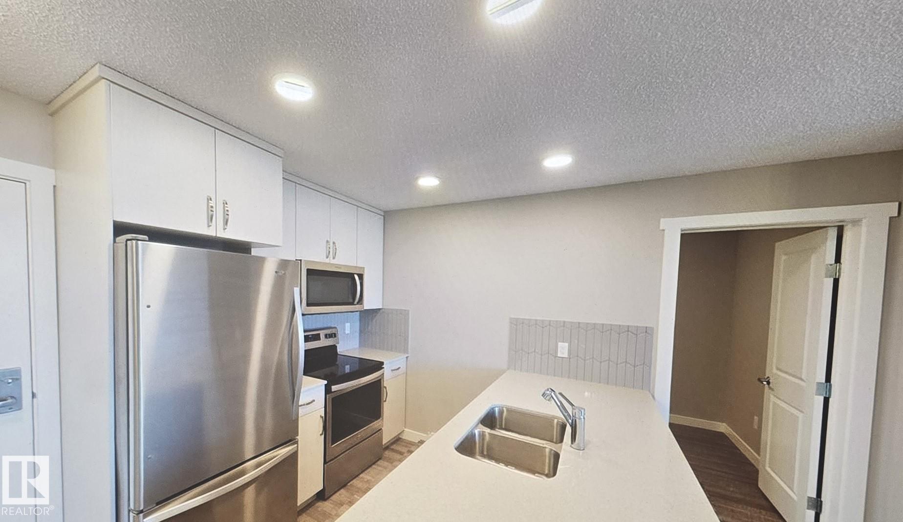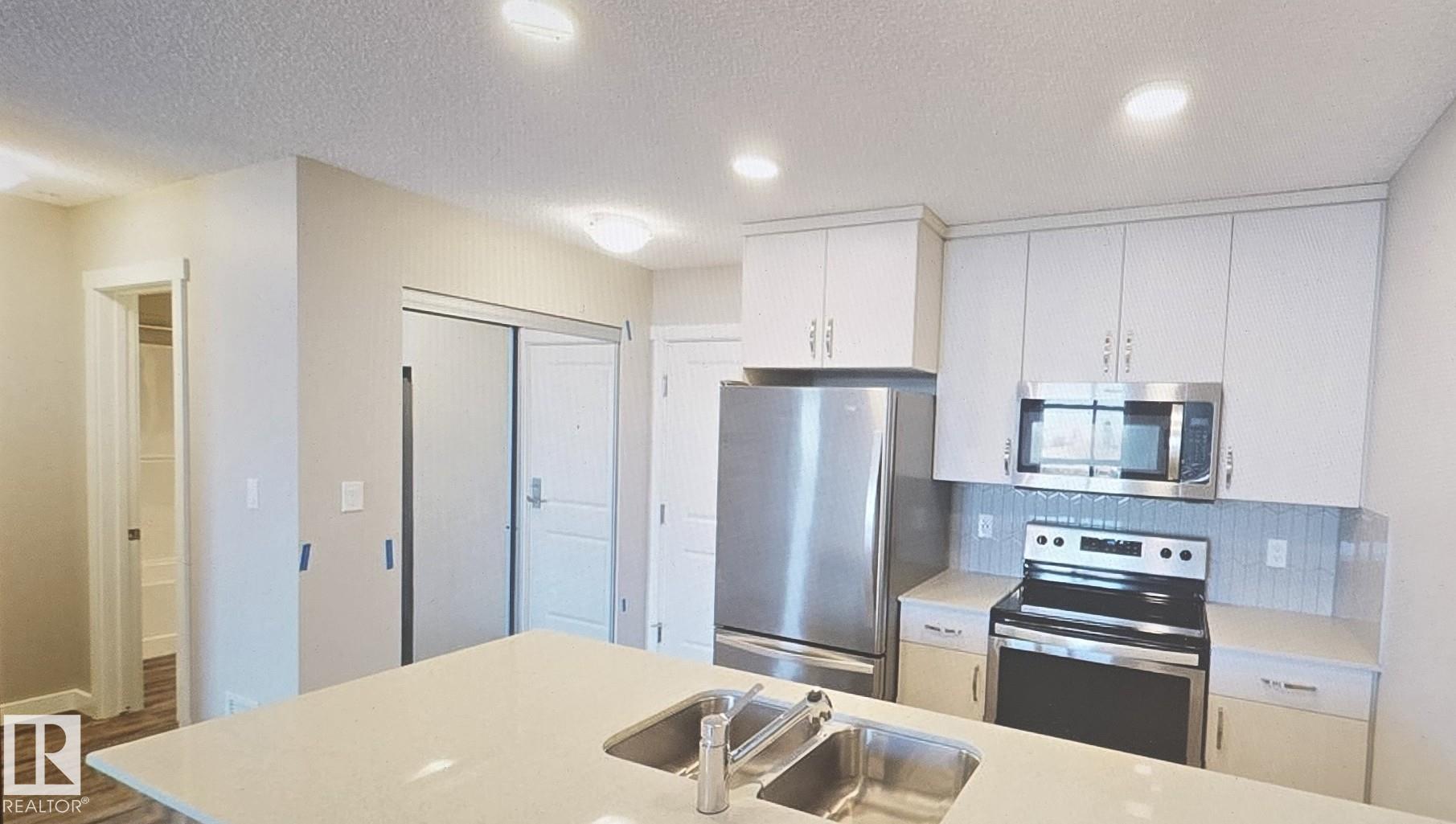 Welcome to this beautiful 1 bedroom, 1 bathroom condo offering approximately 700 sq. ft. of stylish living space. Located on the 4th floor in the desirable community of Tamarack, this home is perfect for first-time buyers, downsizers, or investors. Step inside to find a bright, open-concept layout featuring laminate flooring throughout and a gorgeous white kitchen complete with top-of-the-line appliances. The spacious bedroom offers comfort and privacy, while the full bathroom is sleek and modern. Enjoy the convenience of a prime location close to shopping, dining, schools, parks, and easy access to major roadways and transit. Don't miss the opportunity to own this modern, move-in-ready condo in one of Southeast Edmonton's most sought-after neighborhoods!