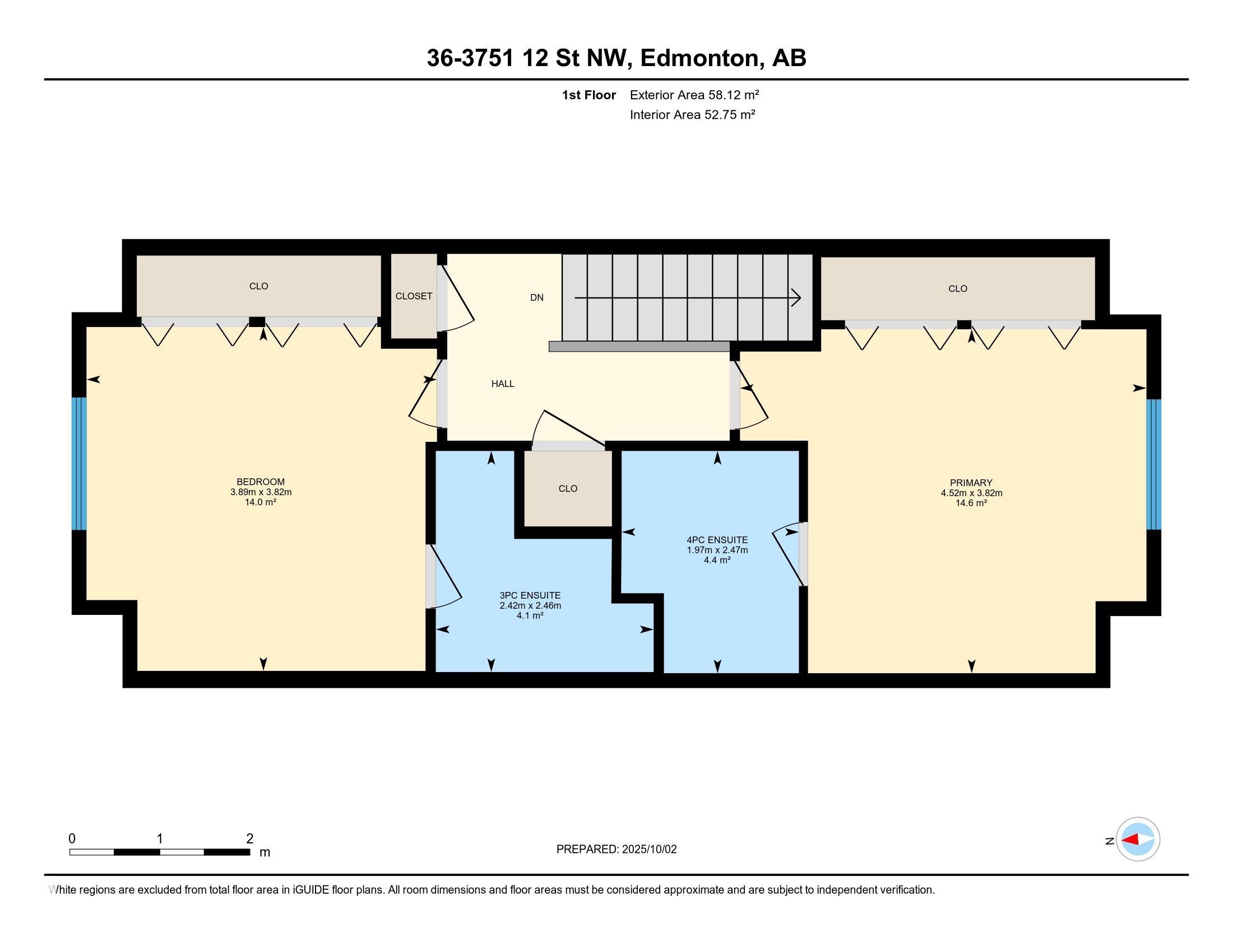 Spacious modern Tamarack townhouse backing onto a peaceful green space. Bright open-concept main floor with a large kitchen, maple cabinets, tile backsplash, and a generous island with eat-up bar, perfect for hosting friends or casual weeknight dinners. The bright living room features patio doors that open onto a sunny balcony. A 2-piece bath and mud room complete this level. Upstairs, you'll find two oversized bedrooms both with their own ensuites, large closets and laundry room. Located in a quiet, well-managed complex, you're just minutes from schools, shopping, parks, and the Meadows Community Rec Centre. Whether you're a first-time buyer or downsizing, this is low-maintenance living in style.