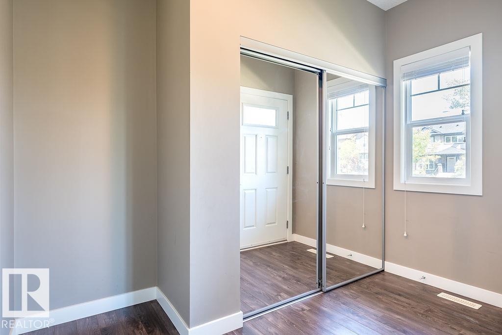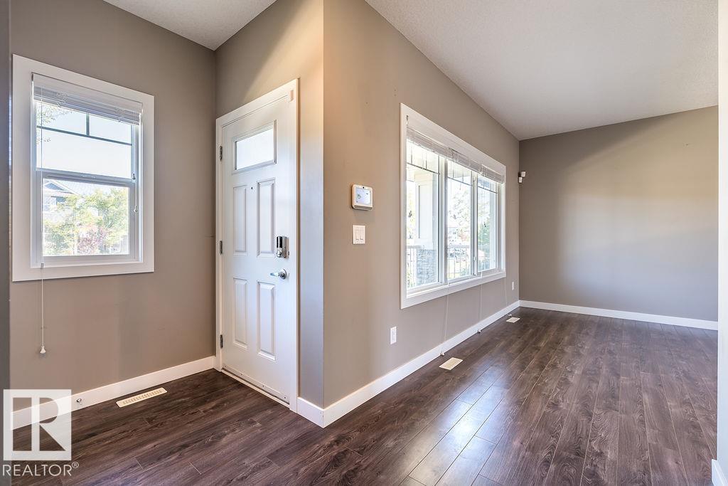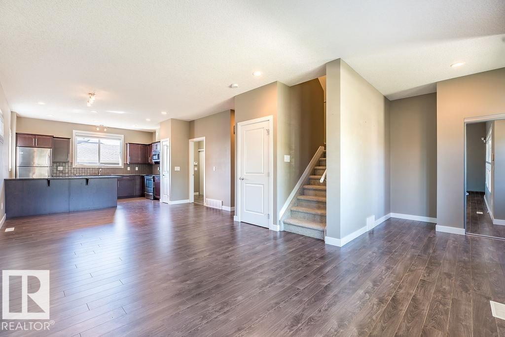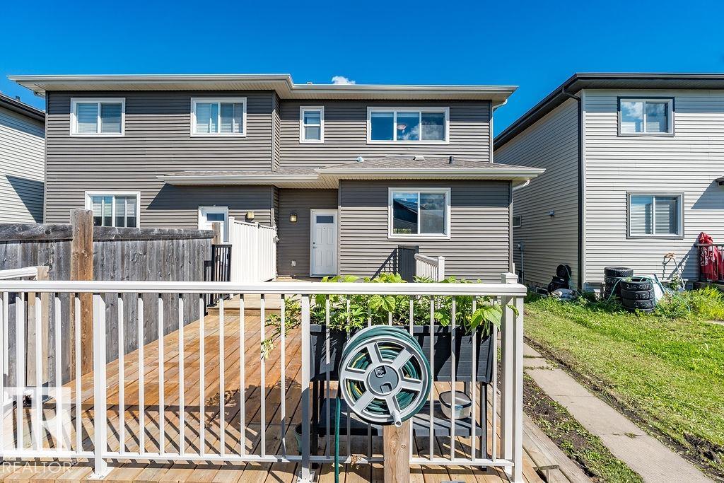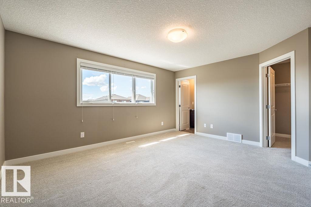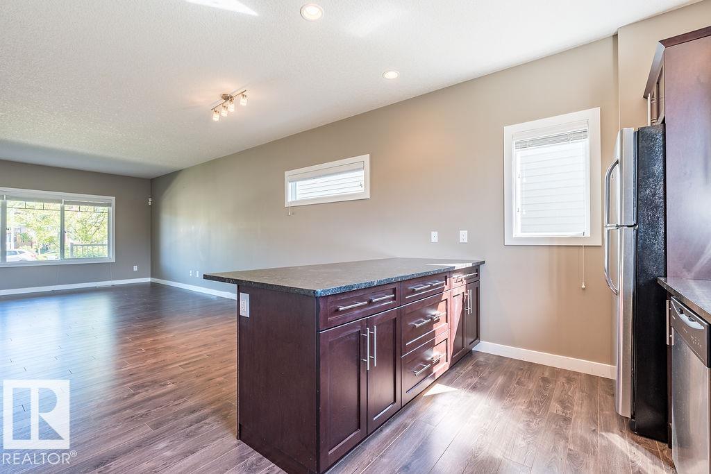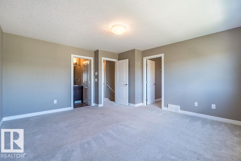 Former show home in the vibrant community of Walker! This stylish and well-maintained half duplex features a functional 2-storey layout with quality finishes throughout. The open-concept main floor includes a modern kitchen with stainless steel appliances, flowing into the bright dining and living areas--perfect for entertaining or everyday living. Main floor laundry adds convenience. Upstairs, you'll find two spacious bedrooms, each with its own ensuite and walk-in closet for added privacy and comfort. Enjoy evenings on the large west-facing deck and the convenience of a double detached garage. The unfinished basement with roughed-in plumbing offers potential for future development. Located close to schools, parks, shopping, and transit, with easy access to Anthony Henday Drive. A perfect blend of style, location, and value--with immediate possession available!