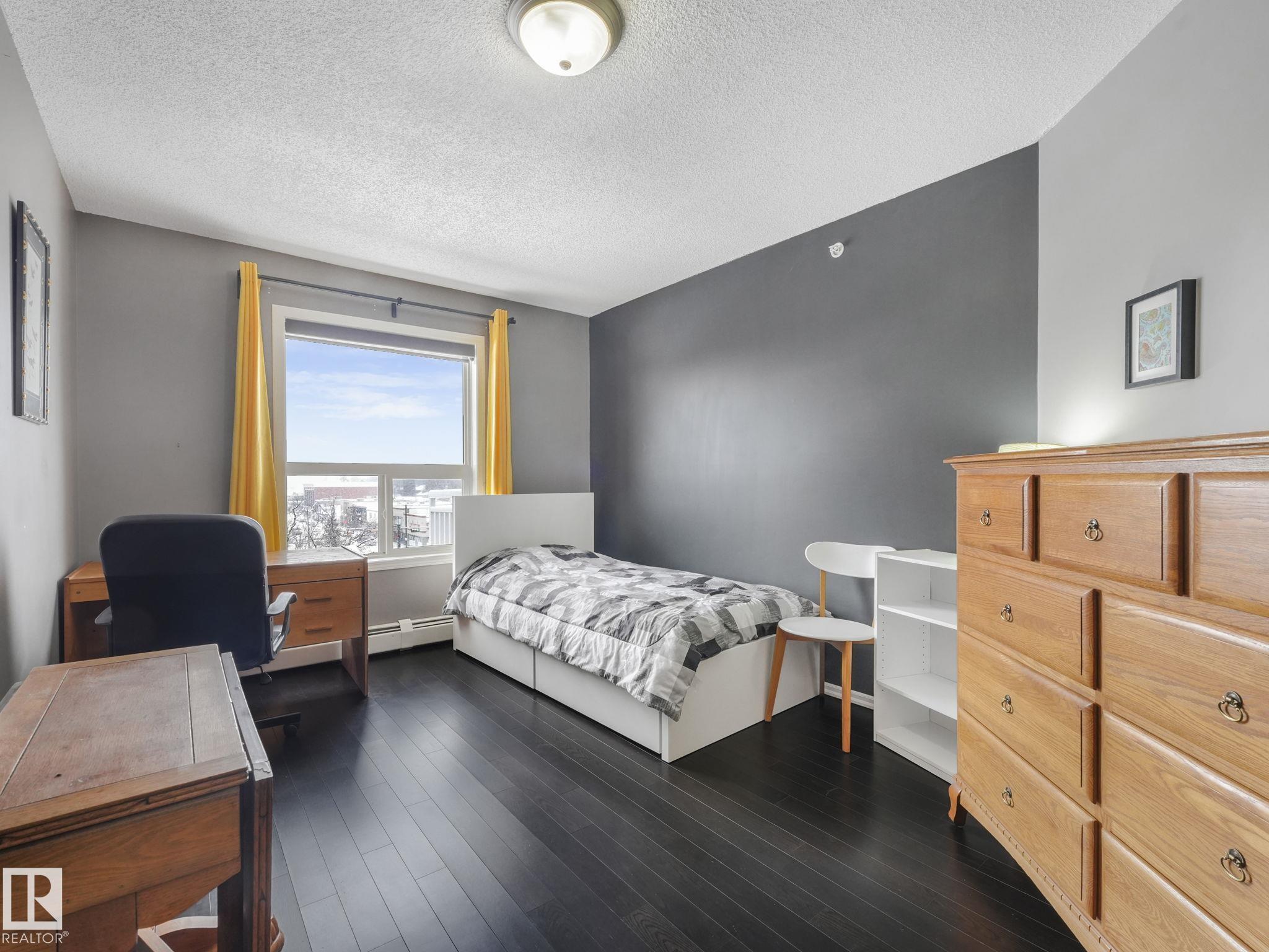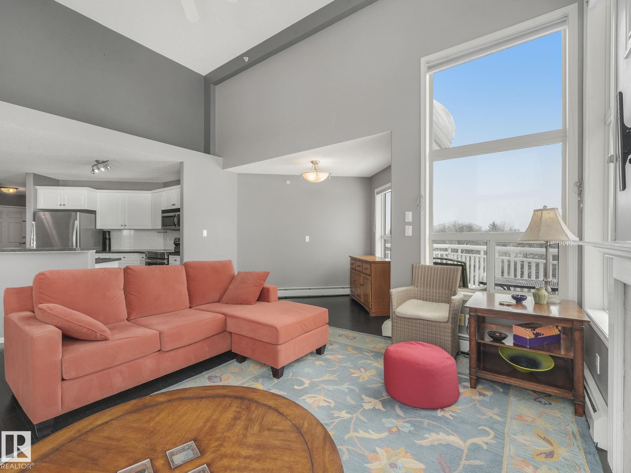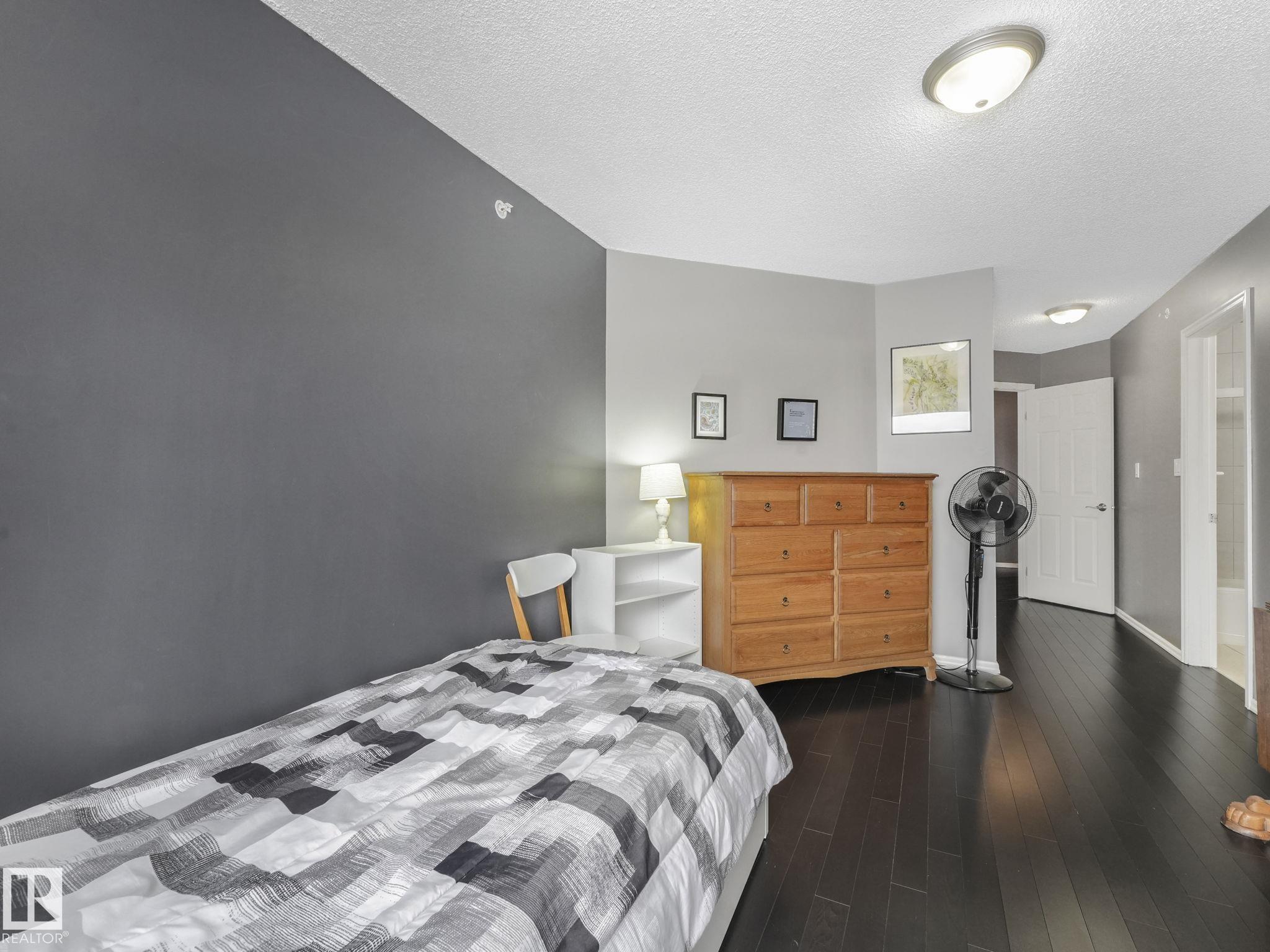 MODERN, BRIGHT, 14' CEILINGS, CORNER PENTHOUSE in St. Lawrence Court in sought-after Westmount. Enjoy over 1000+ square feet in this top floor, 2 bedroom, 2 bathroom condo with open living area, 14' ceilings, great views, gorgeous SW exposure, tons of natural light and air conditioning. Dark floors throughout, mostly NEW stainless steel appliances, fireplace, and in-suite laundry are just a few more features. Take the party outside on the massive wrap around balcony with city views and then relax in one of two spacious bedrooms. The unit also comes with 2 titled underground parking stalls & storage cage. Amenities include the gated, courtyard, social room, fitness rooms & secured underground parking with car wash. Pet friendly building, max 2 animals per unit with board approval. No size limits! Is Centrally located on 124 St, walk to Tiramisu, the Westmount Farmers Market, The Viking, art galleries, right beside Massage, Chiropractor, Physiotherapy, Acupuncture and more! Enjoy an upscale, walkable lifest