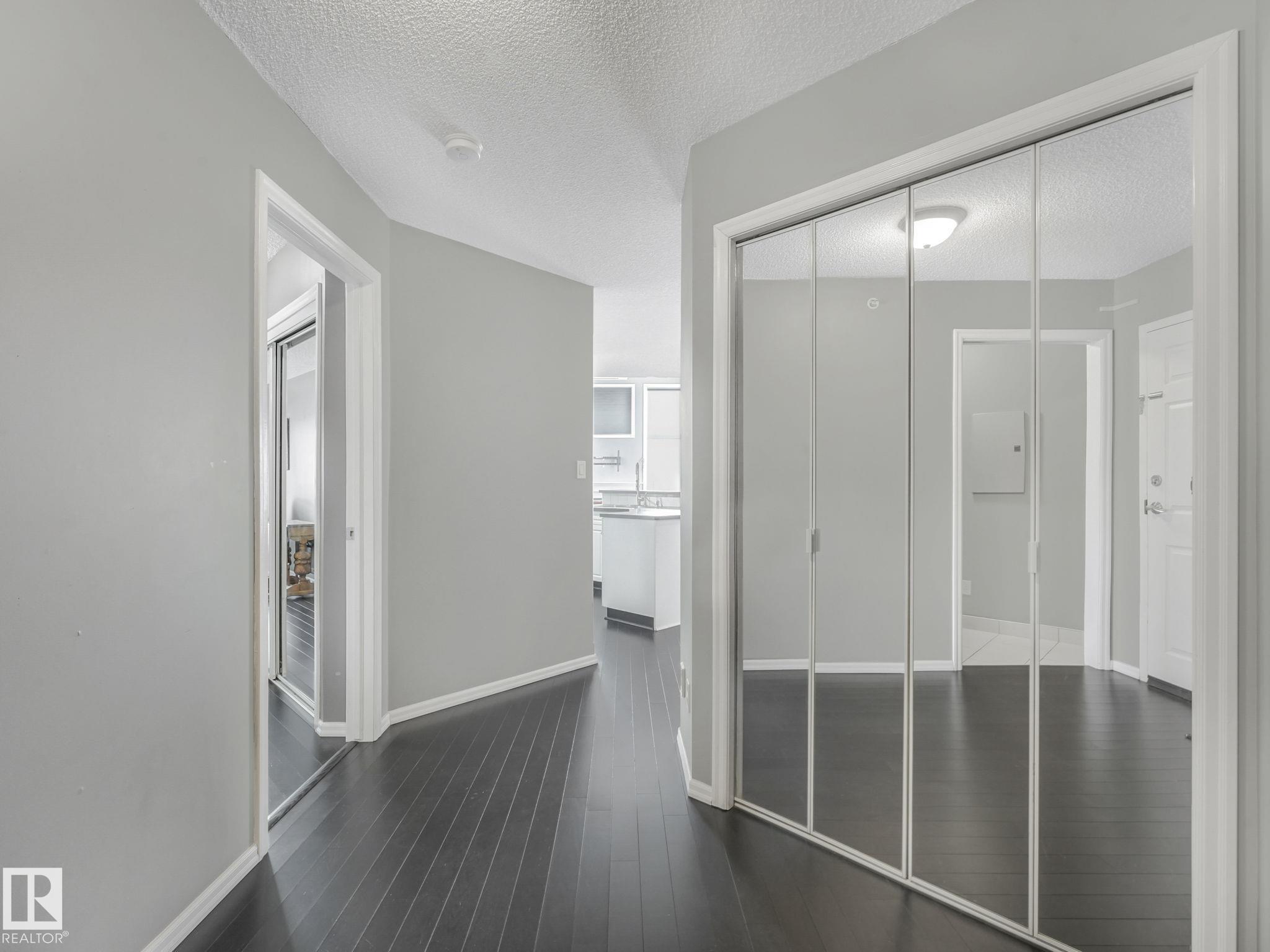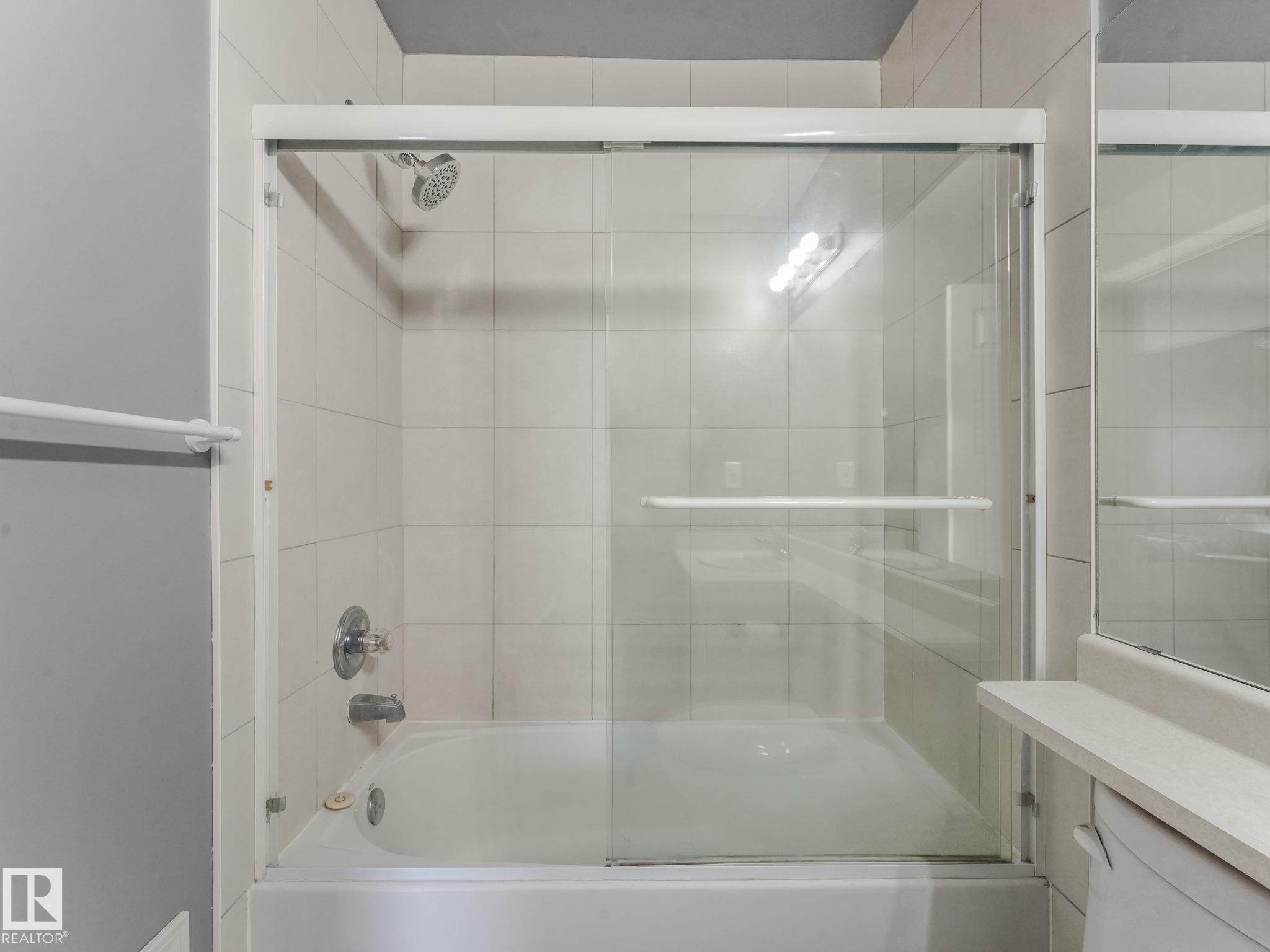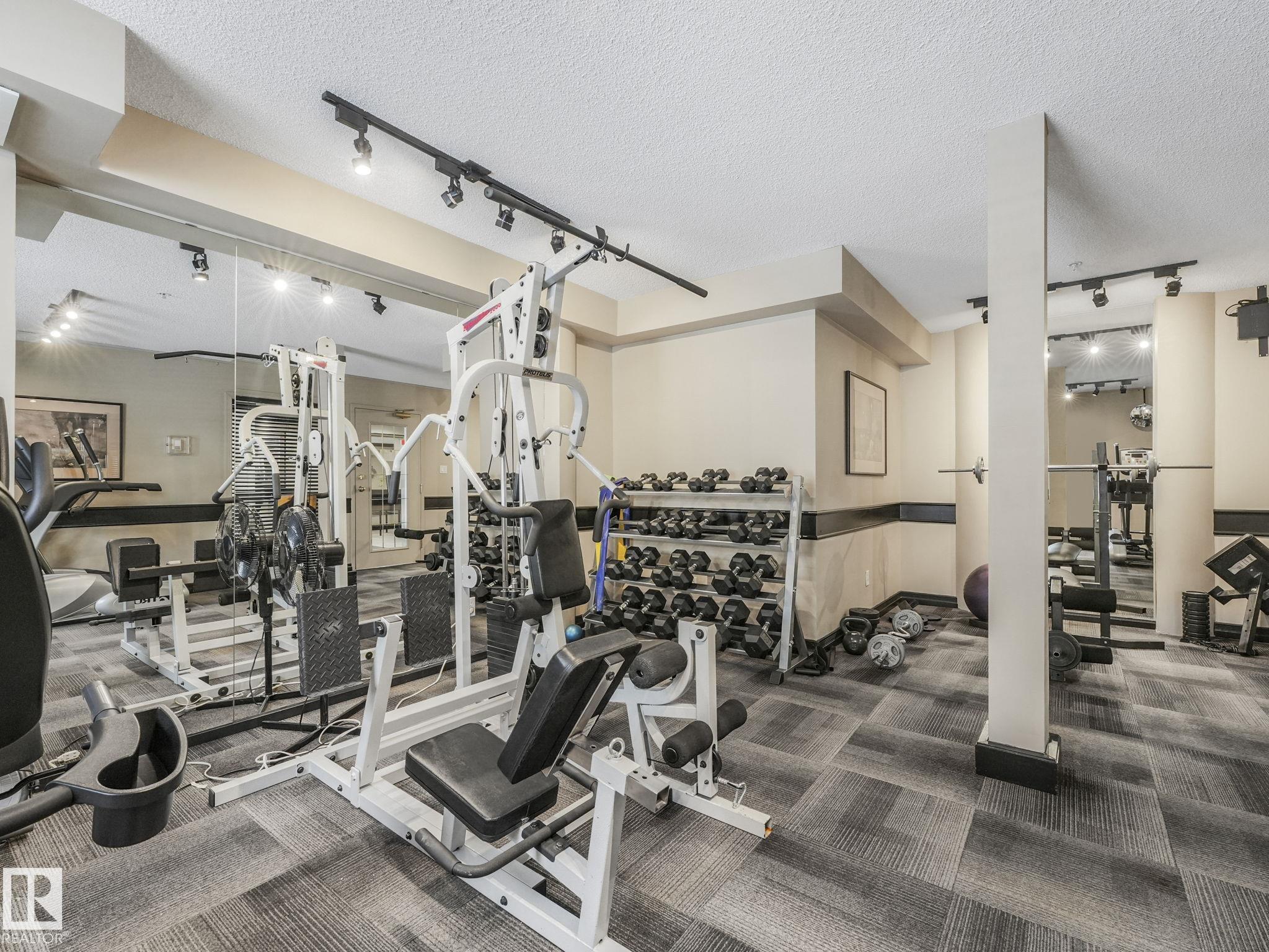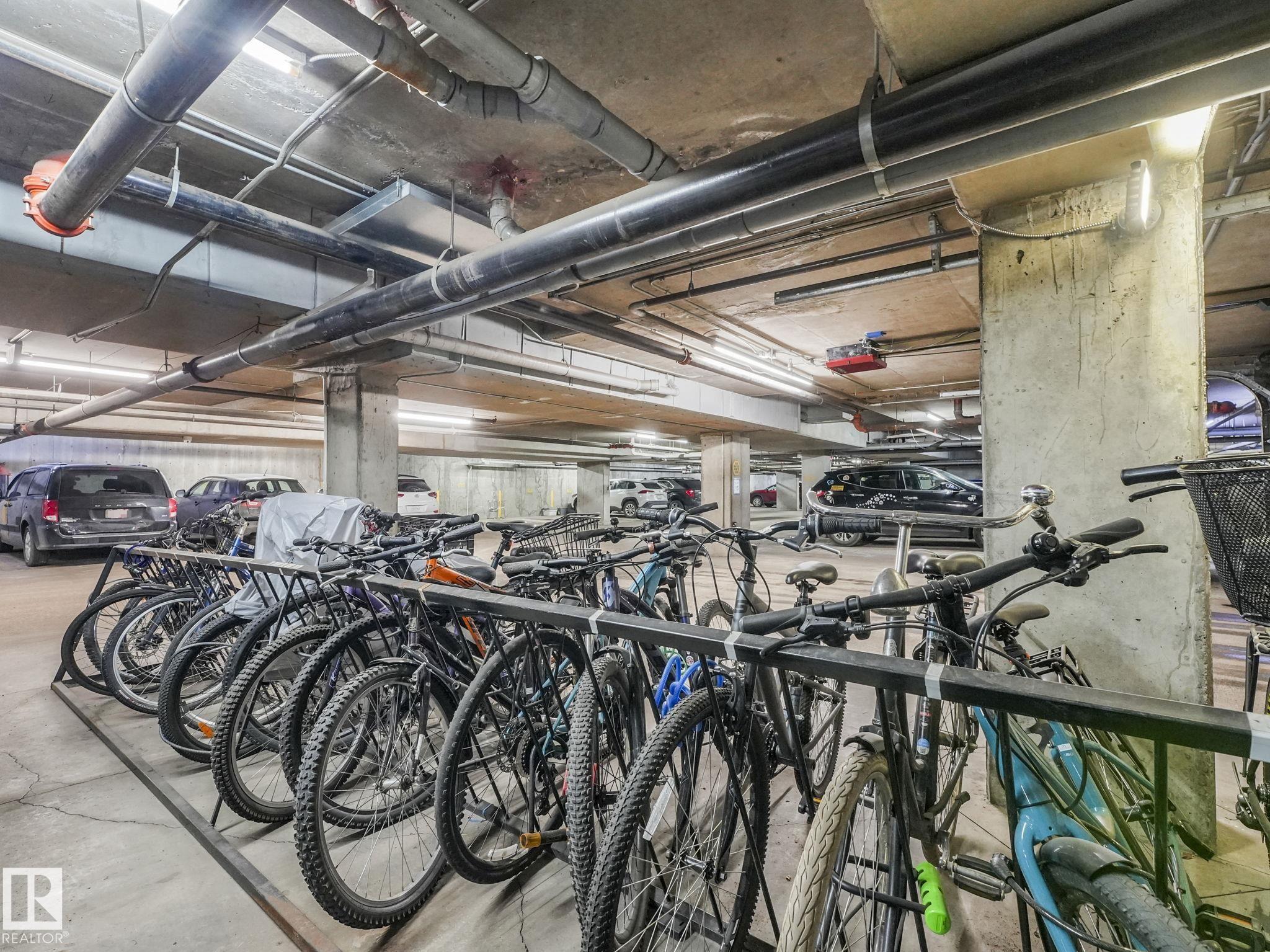 MODERN, BRIGHT, 14' CEILINGS, CORNER PENTHOUSE in St. Lawrence Court in sought-after Westmount. Enjoy over 1000+ square feet in this top floor, 2 bedroom, 2 bathroom condo with open living area, 14' ceilings, great views, gorgeous SW exposure, tons of natural light and air conditioning. Dark floors throughout, mostly NEW stainless steel appliances, fireplace, and in-suite laundry are just a few more features. Take the party outside on the massive wrap around balcony with city views and then relax in one of two spacious bedrooms. The unit also comes with 2 titled underground parking stalls & storage cage. Amenities include the gated, courtyard, social room, fitness rooms & secured underground parking with car wash. Pet friendly building, max 2 animals per unit with board approval. No size limits! Is Centrally located on 124 St, walk to Tiramisu, the Westmount Farmers Market, The Viking, art galleries, right beside Massage, Chiropractor, Physiotherapy, Acupuncture and more! Enjoy an upscale, walkable lifest