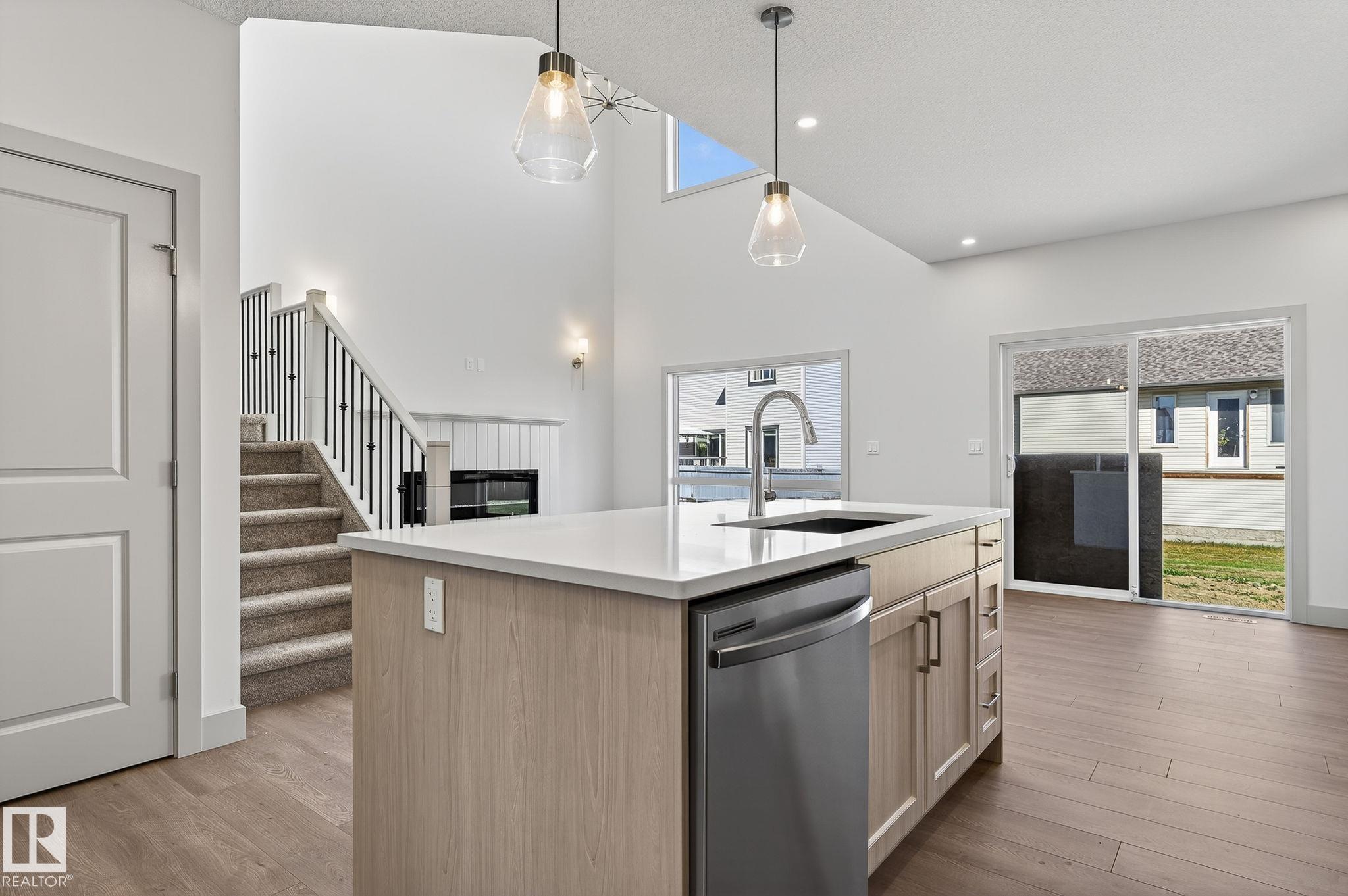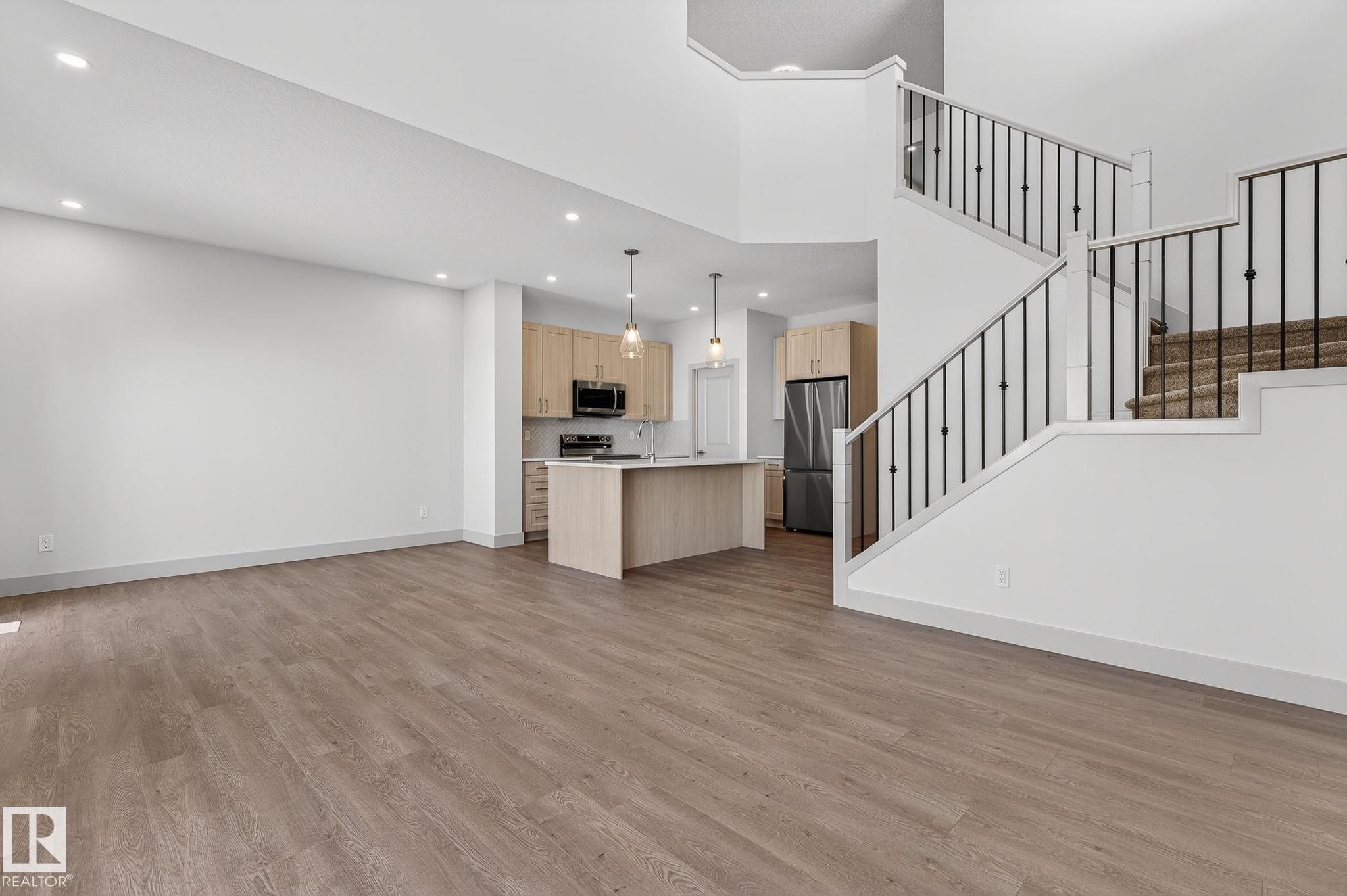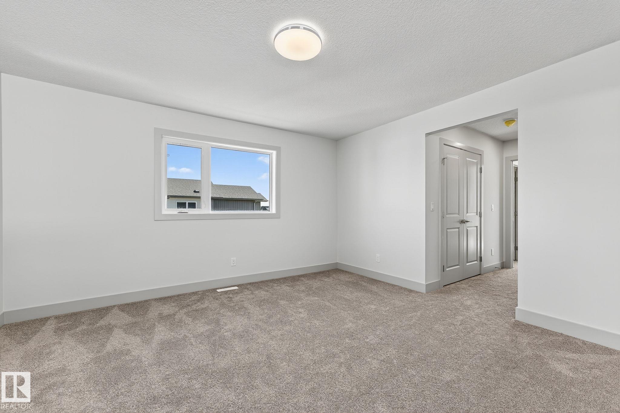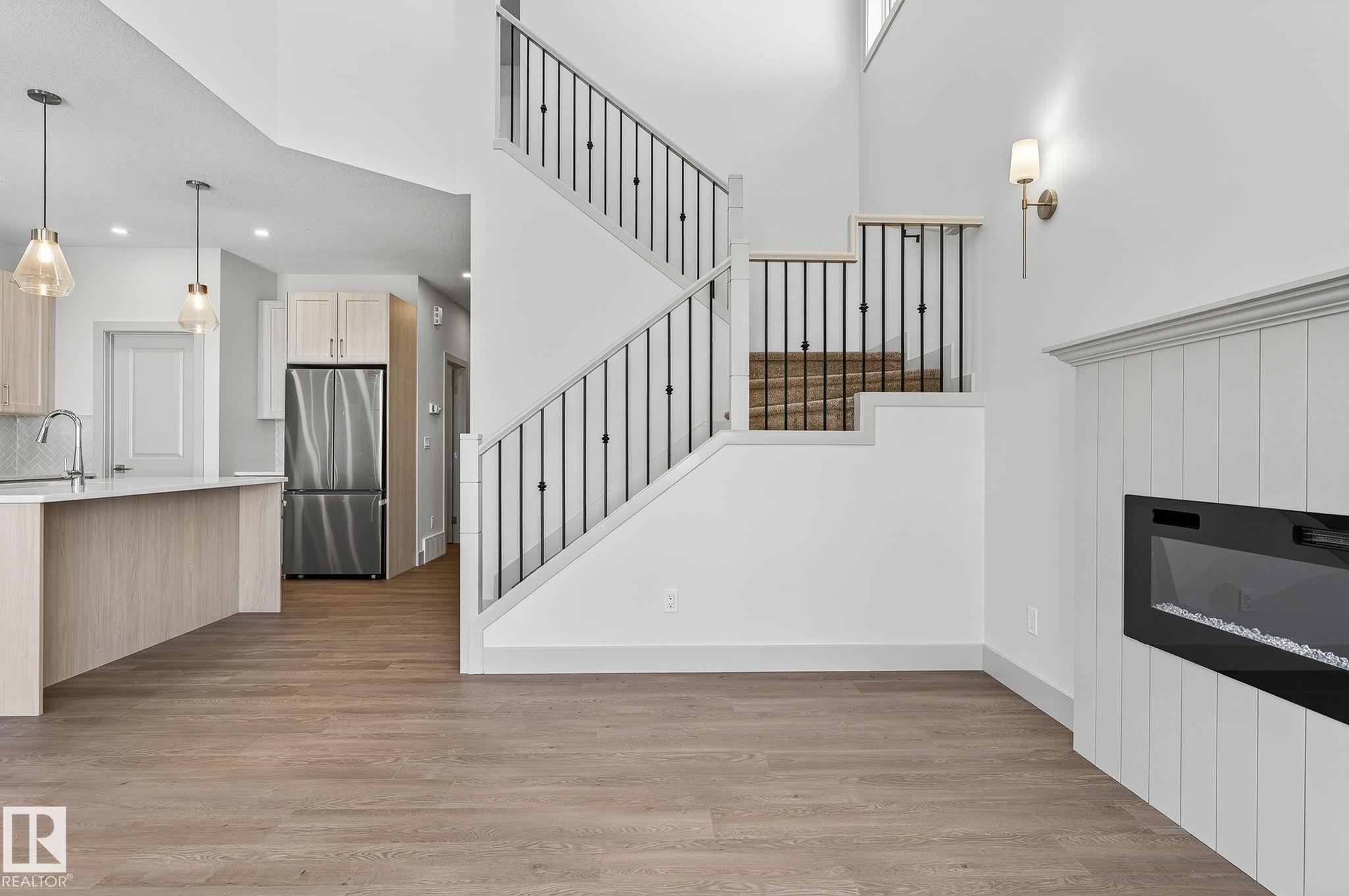 Experience this stunning two-storey home with over 1900 sq ft of living space in Southbridge, Calmar's emerging community! Captivating OPEN-TO-BELOW living room ceilings provide a grand and bright atmosphere. 9' KITCHEN CEILINGS, chic QUARTZ countertops, STAINLESS STEEL APPLIANCES, timeless SHAKER cabinets, and a WALK-THROUGH PANTRY are also sure to impress. Unwind by a cozy fireplace or enjoy the versatility of a main-floor flex room - an ideal spot for a formal sitting area or studio. The upper floor offers a BONUS ROOM and 3 generously sized bedrooms. The luxurious primary retreat is complete with a walk-in closet and a beautifully designed ensuite featuring a 4-PIECE bath and modern shower. A second full bathroom and laundry room upstairs adds day-to-day practicality where needed most. The EXTENDED DOUBLE GARAGE includes a rough-in for a future garage heater and a hose bib maximizing functionality. Perfectly located near the airport, Leduc, Devon and is in walking distance to local sport fields!