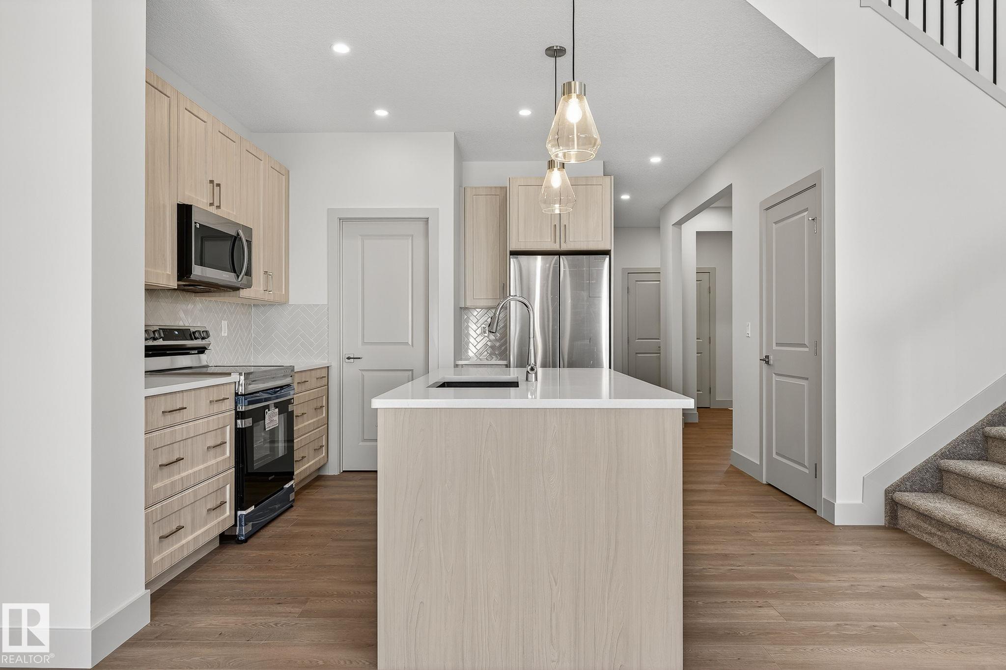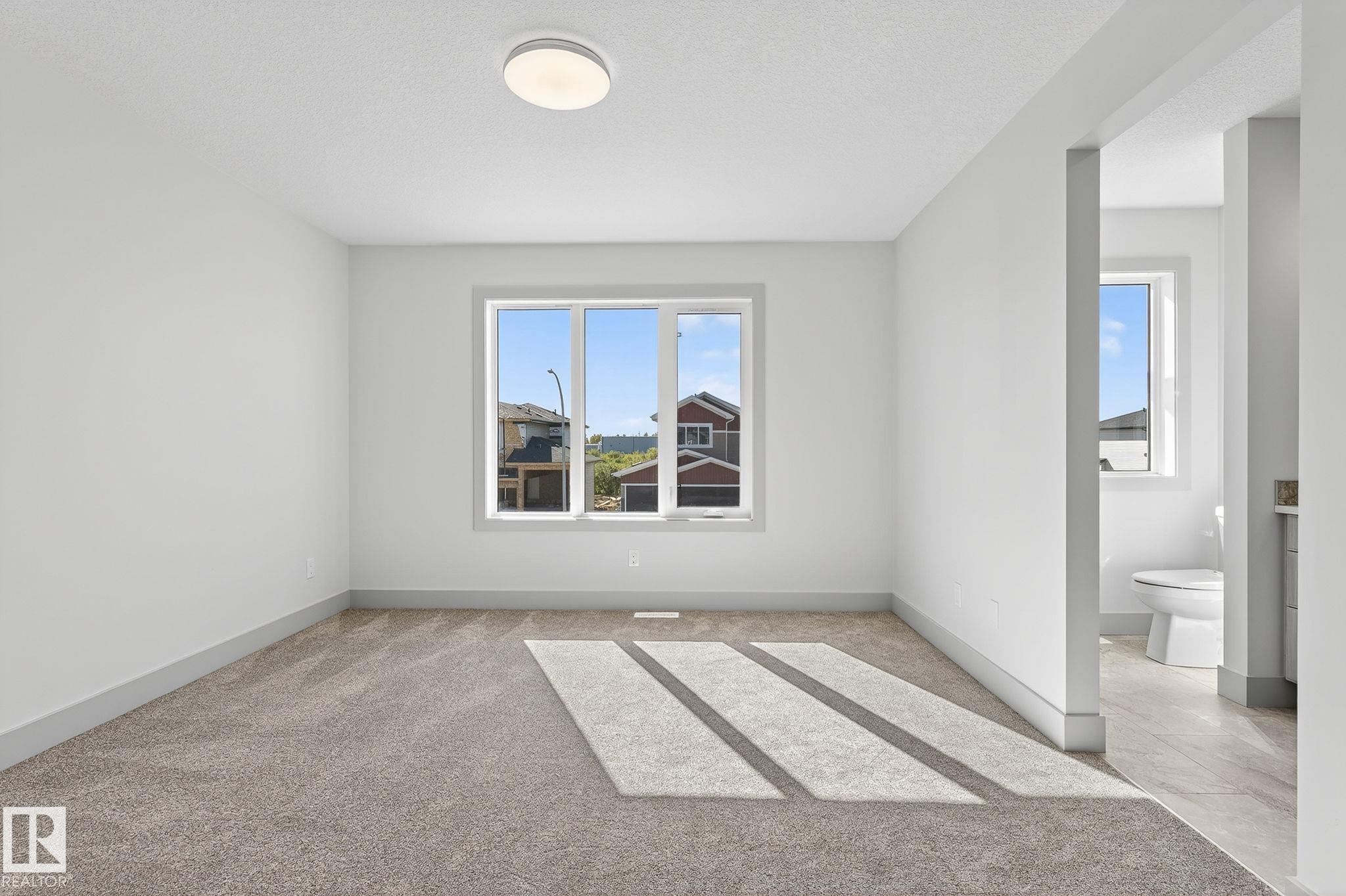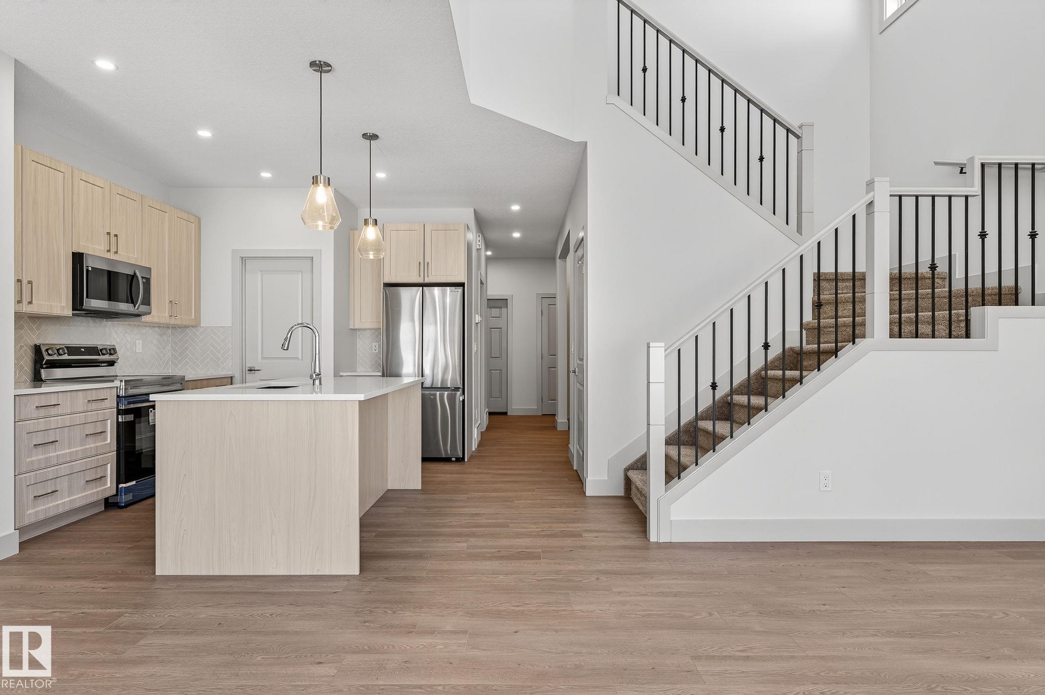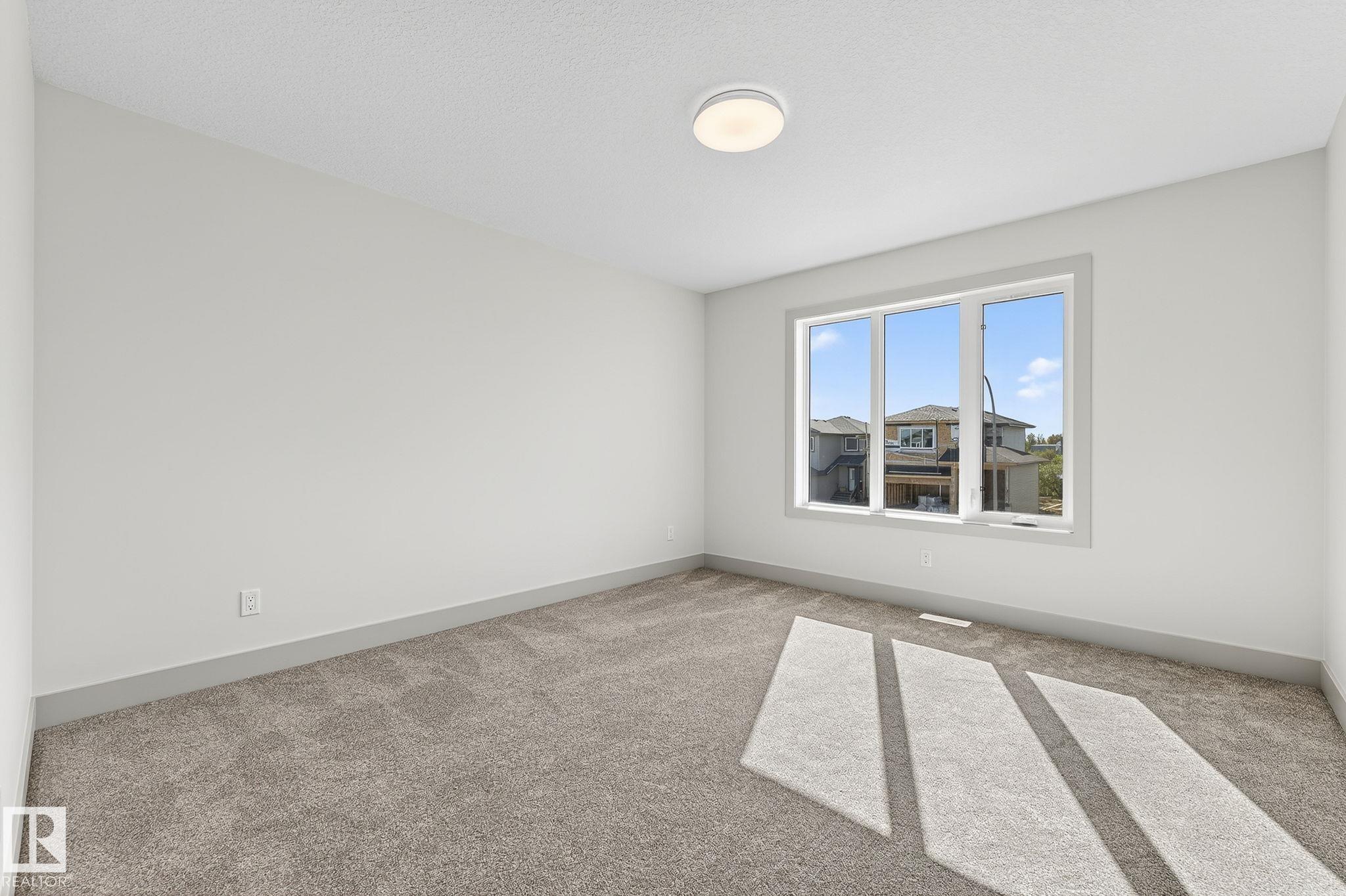 Experience this stunning two-storey home with over 1900 sq ft of living space in Southbridge, Calmar's emerging community! Captivating OPEN-TO-BELOW living room ceilings provide a grand and bright atmosphere. 9' KITCHEN CEILINGS, chic QUARTZ countertops, STAINLESS STEEL APPLIANCES, timeless SHAKER cabinets, and a WALK-THROUGH PANTRY are also sure to impress. Unwind by a cozy fireplace or enjoy the versatility of a main-floor flex room - an ideal spot for a formal sitting area or studio. The upper floor offers a BONUS ROOM and 3 generously sized bedrooms. The luxurious primary retreat is complete with a walk-in closet and a beautifully designed ensuite featuring a 4-PIECE bath and modern shower. A second full bathroom and laundry room upstairs adds day-to-day practicality where needed most. The EXTENDED DOUBLE GARAGE includes a rough-in for a future garage heater and a hose bib maximizing functionality. Perfectly located near the airport, Leduc, Devon and is in walking distance to local sport fields!