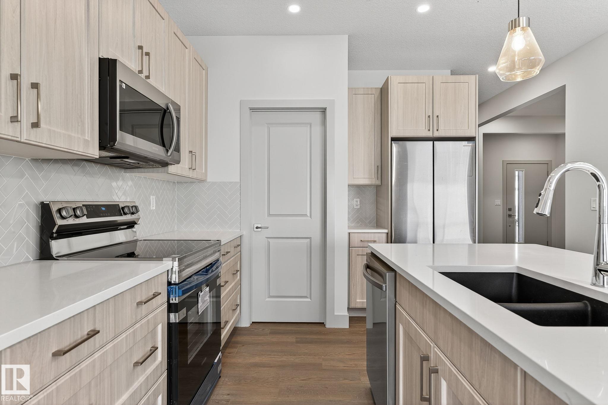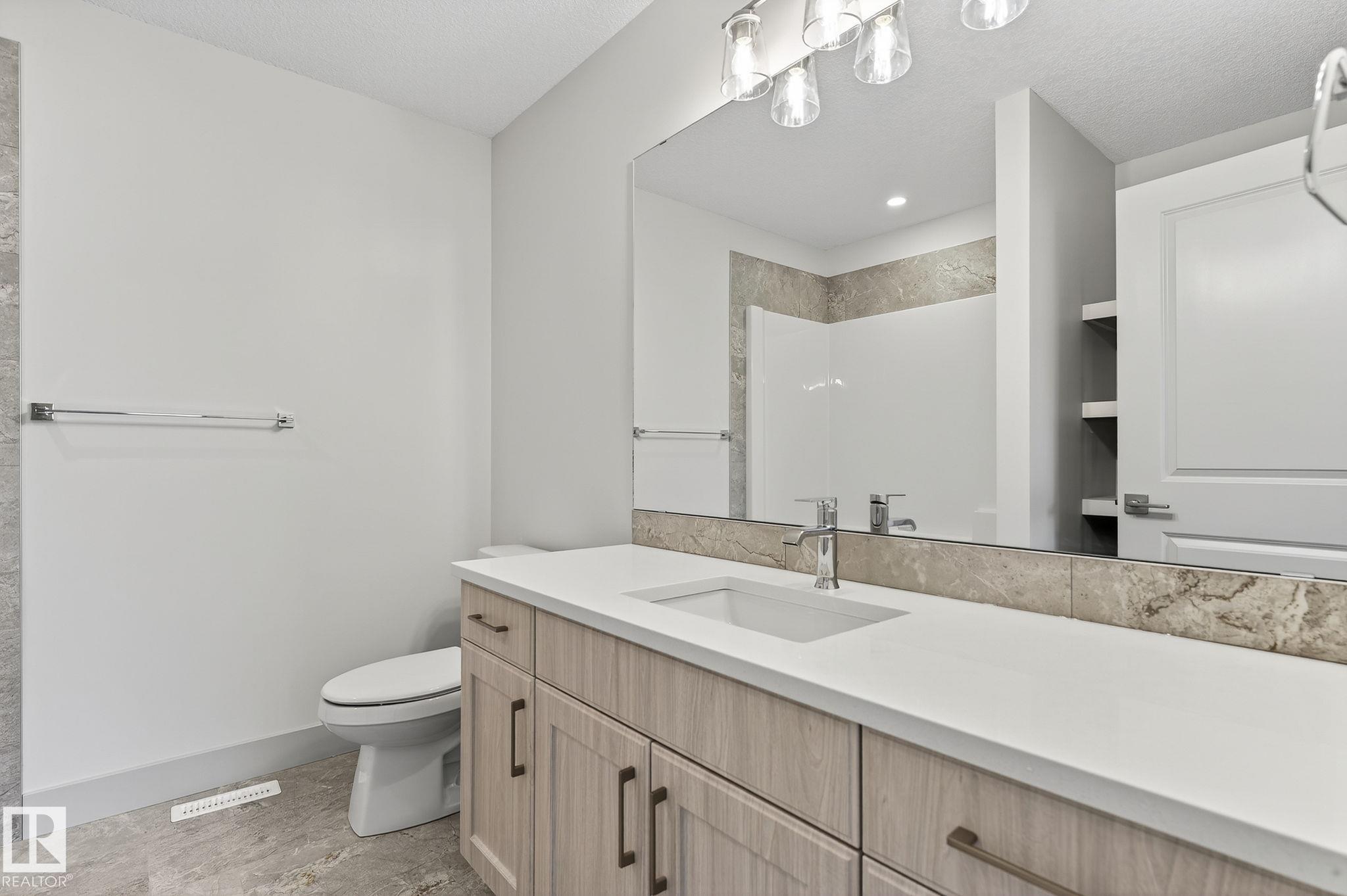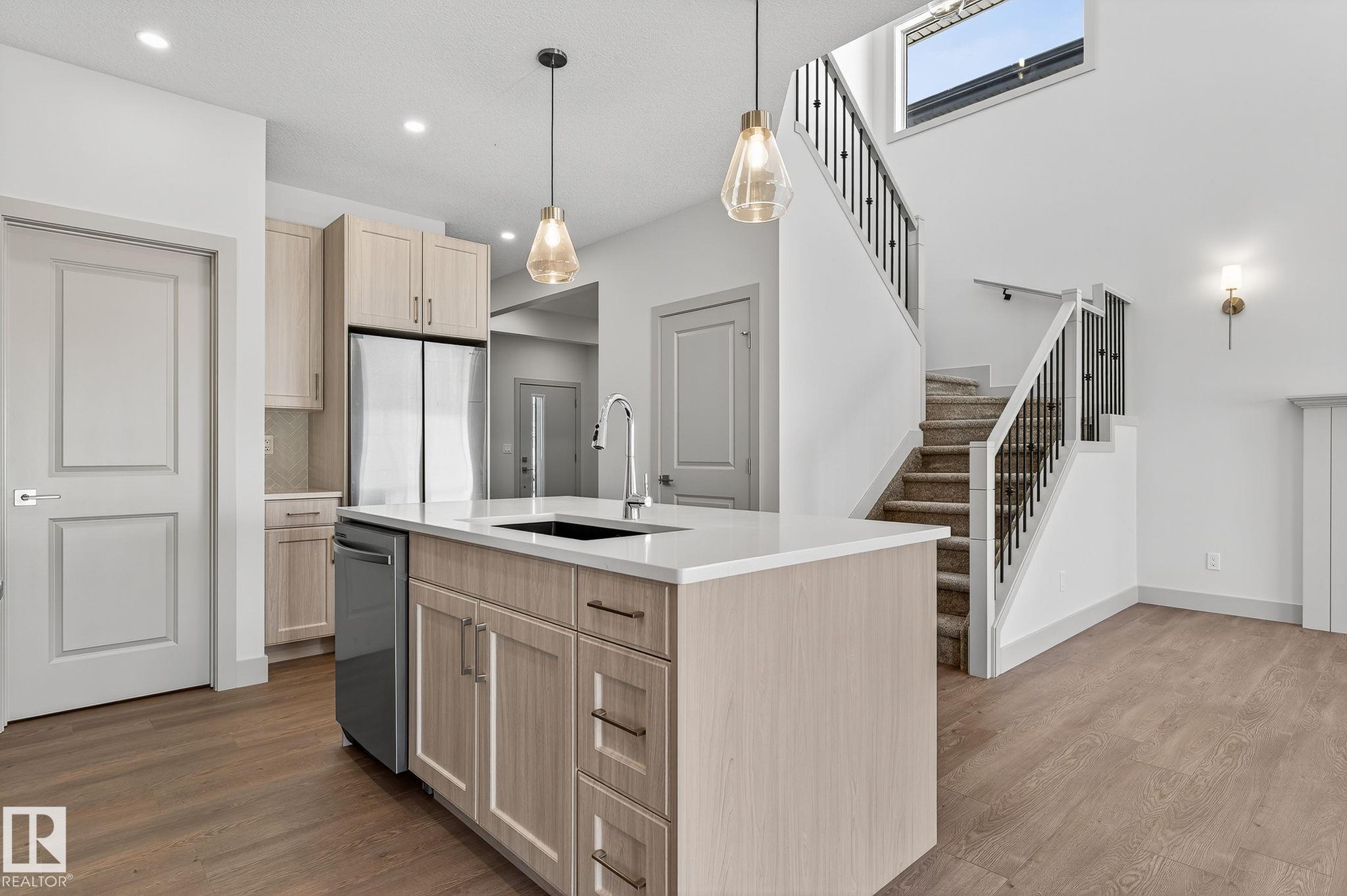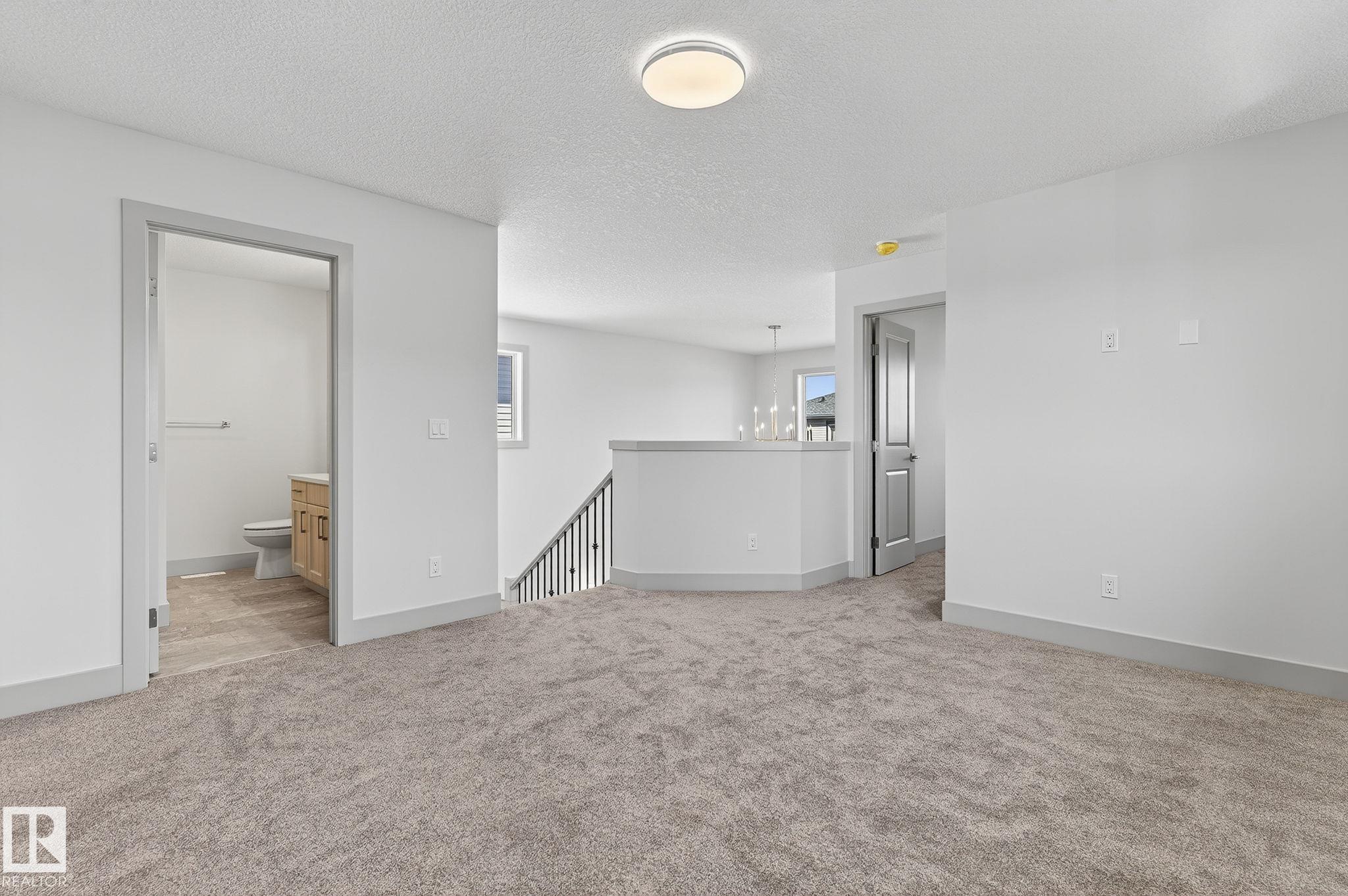 Experience this stunning two-storey home with over 1900 sq ft of living space in Southbridge, Calmar's emerging community! Captivating OPEN-TO-BELOW living room ceilings provide a grand and bright atmosphere. 9' KITCHEN CEILINGS, chic QUARTZ countertops, STAINLESS STEEL APPLIANCES, timeless SHAKER cabinets, and a WALK-THROUGH PANTRY are also sure to impress. Unwind by a cozy fireplace or enjoy the versatility of a main-floor flex room - an ideal spot for a formal sitting area or studio. The upper floor offers a BONUS ROOM and 3 generously sized bedrooms. The luxurious primary retreat is complete with a walk-in closet and a beautifully designed ensuite featuring a 4-PIECE bath and modern shower. A second full bathroom and laundry room upstairs adds day-to-day practicality where needed most. The EXTENDED DOUBLE GARAGE includes a rough-in for a future garage heater and a hose bib maximizing functionality. Perfectly located near the airport, Leduc, Devon and is in walking distance to local sport fields!
