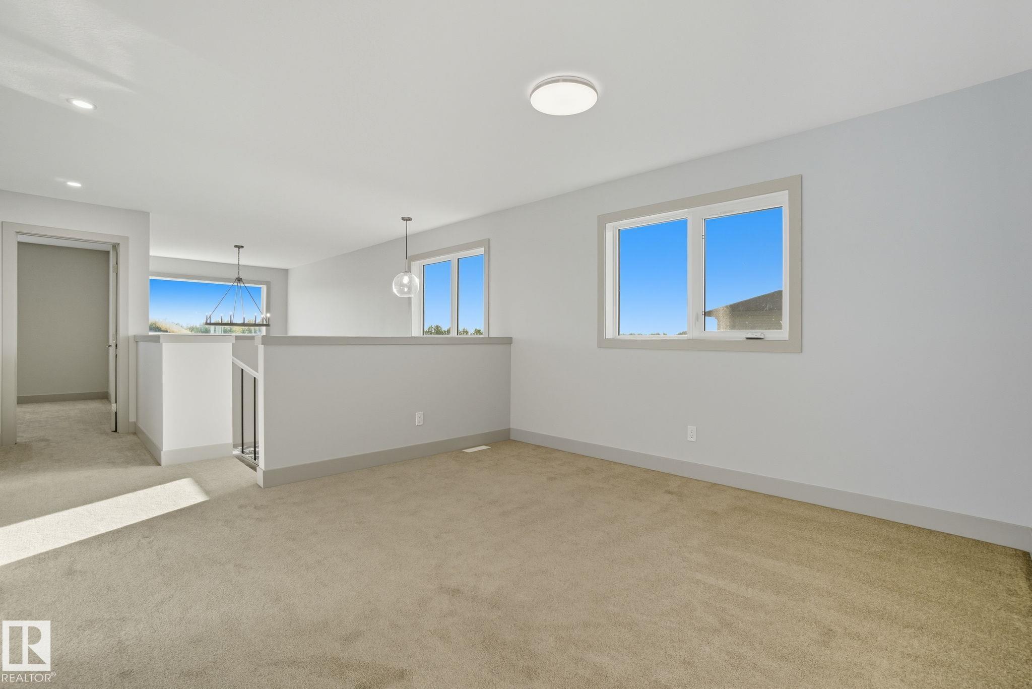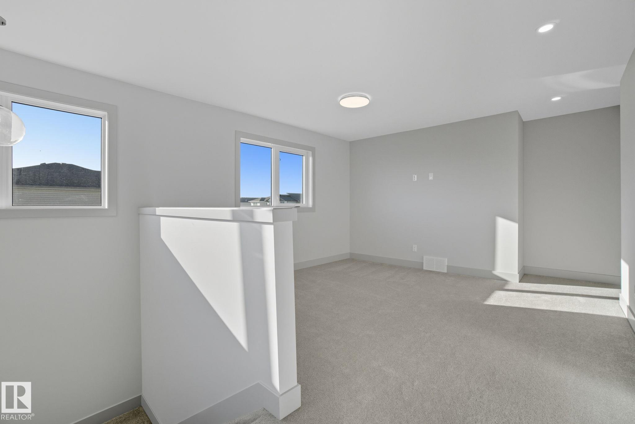 Welcome to this magnificent SOUTH BACKING home in the upcoming Community of Soubridge Crossing in Calmar with over 1800sqft of living space and UPGRADED finishes. As you enter, you will be greeted by a DEN/FLEX room that leads you to a bright OPEN TO BELOW living room abundant with natural light. The kitchen layout boasts elegant QUARTZ COUNTERTOPS, ample cabinet space, STAINLESS STEEL appliances which leads you to a WALKTHOUGH PANTRY. Relax by the electric FIREPLACE and entertain guests in this open concept layout. The 2 piece bathroom compliments the main floor. On the 2nd floor, you will be greeted by the CENTRAL BONUS ROOM, 3 large bedrooms, one 5-PC ENSUITE BATHROOM, additional 4-PC bathroom and laundry room. The MASTER BEDROOOM features a 5-pc ENSUITE including a tub, shower and a WALK-IN CLOSET. Enjoy an EXTENDED DOUBLE GARAGE featuring a 16x8 GARAGE DOOR to fit a larger car and RV outside. The basement is waiting for your creative touch. This home is walking distance to the baseball diamonds!