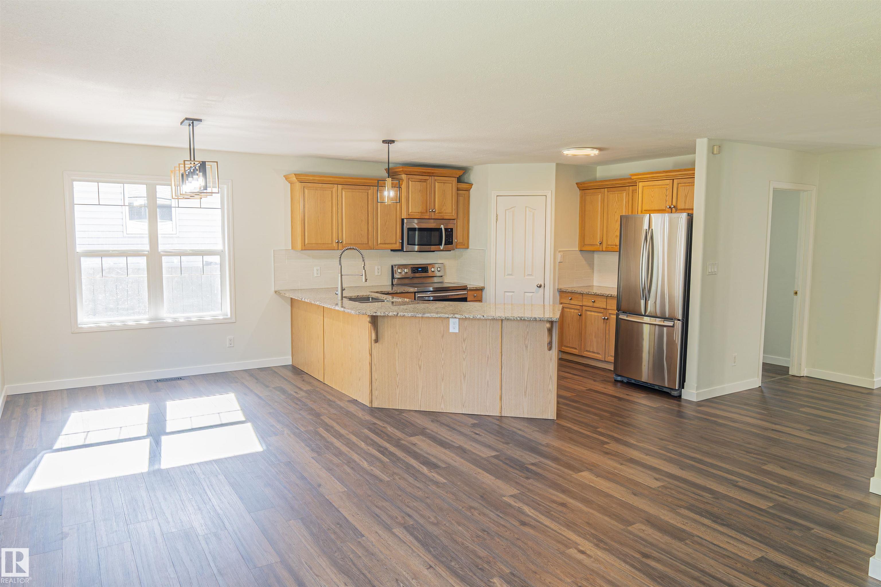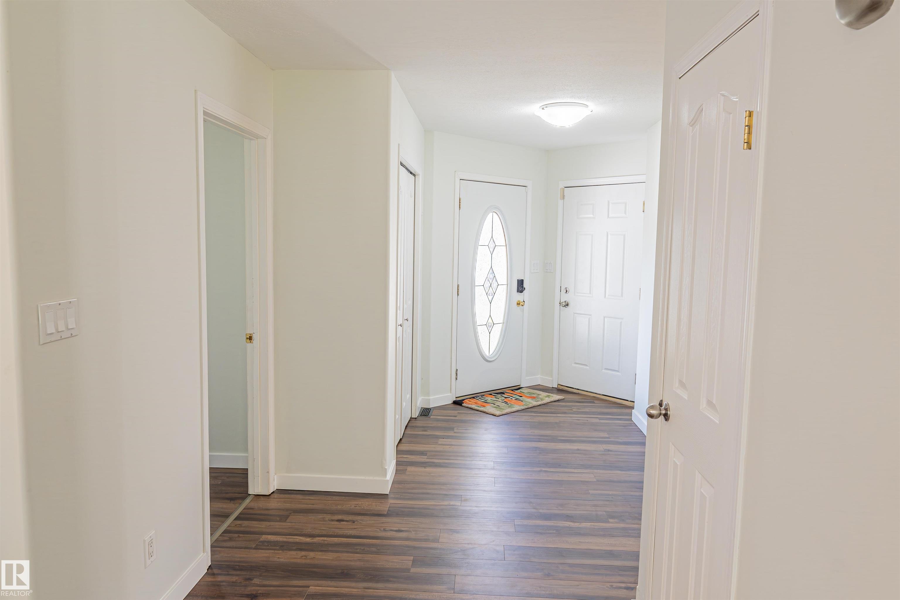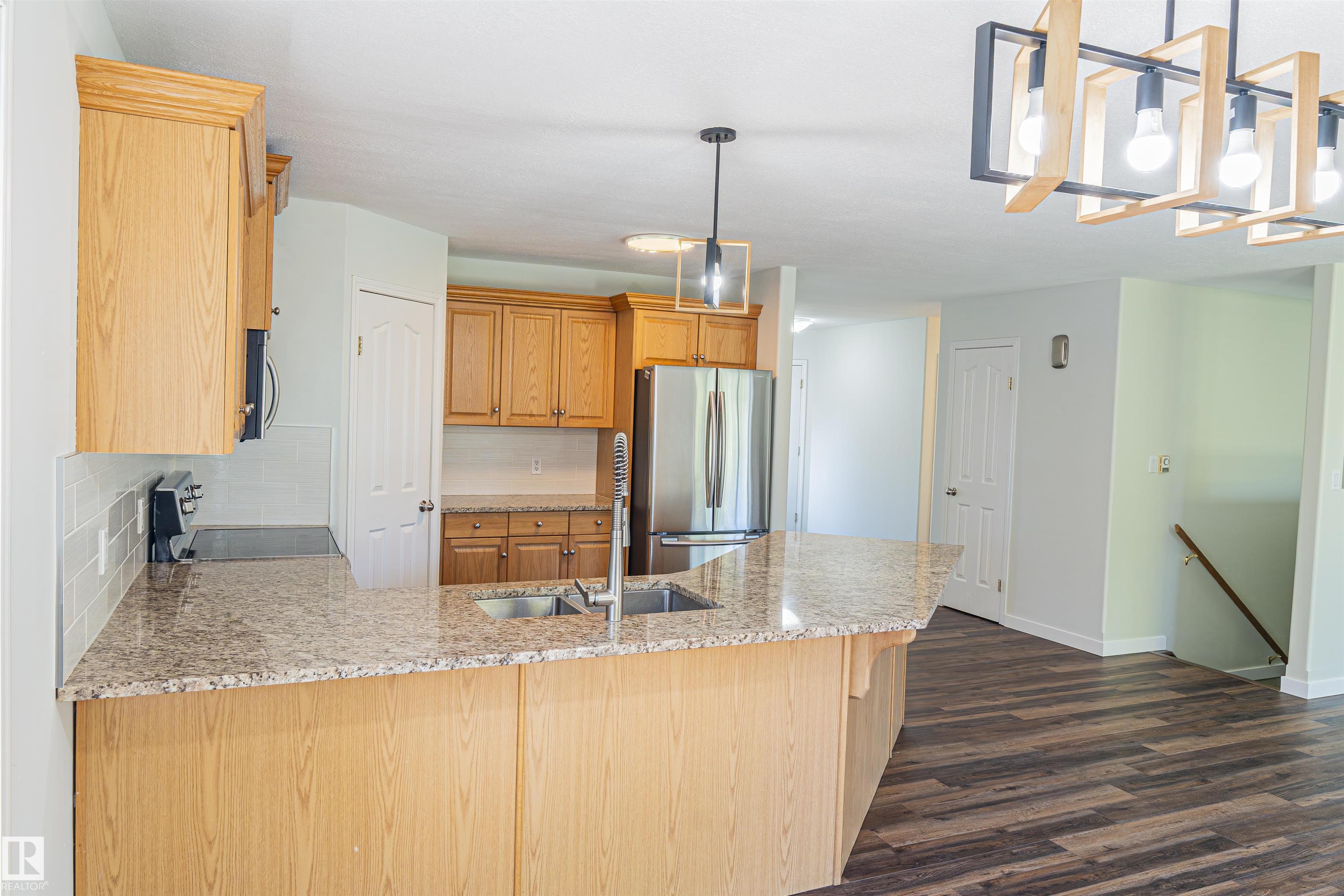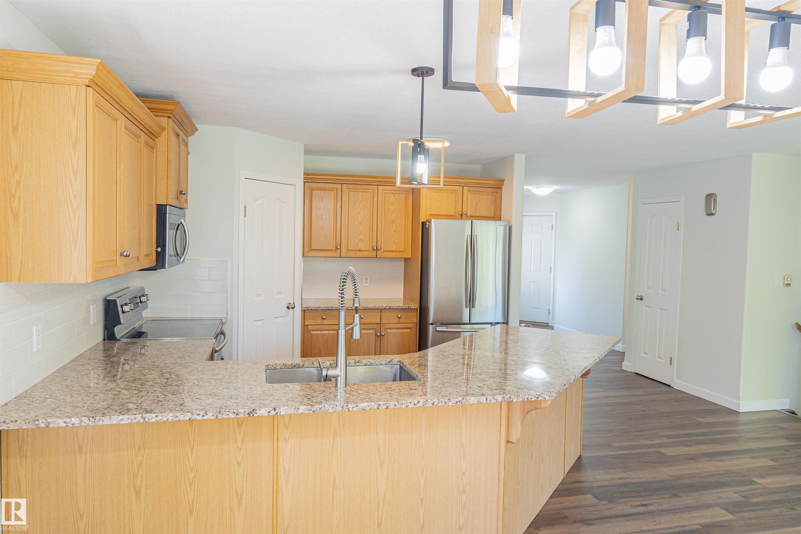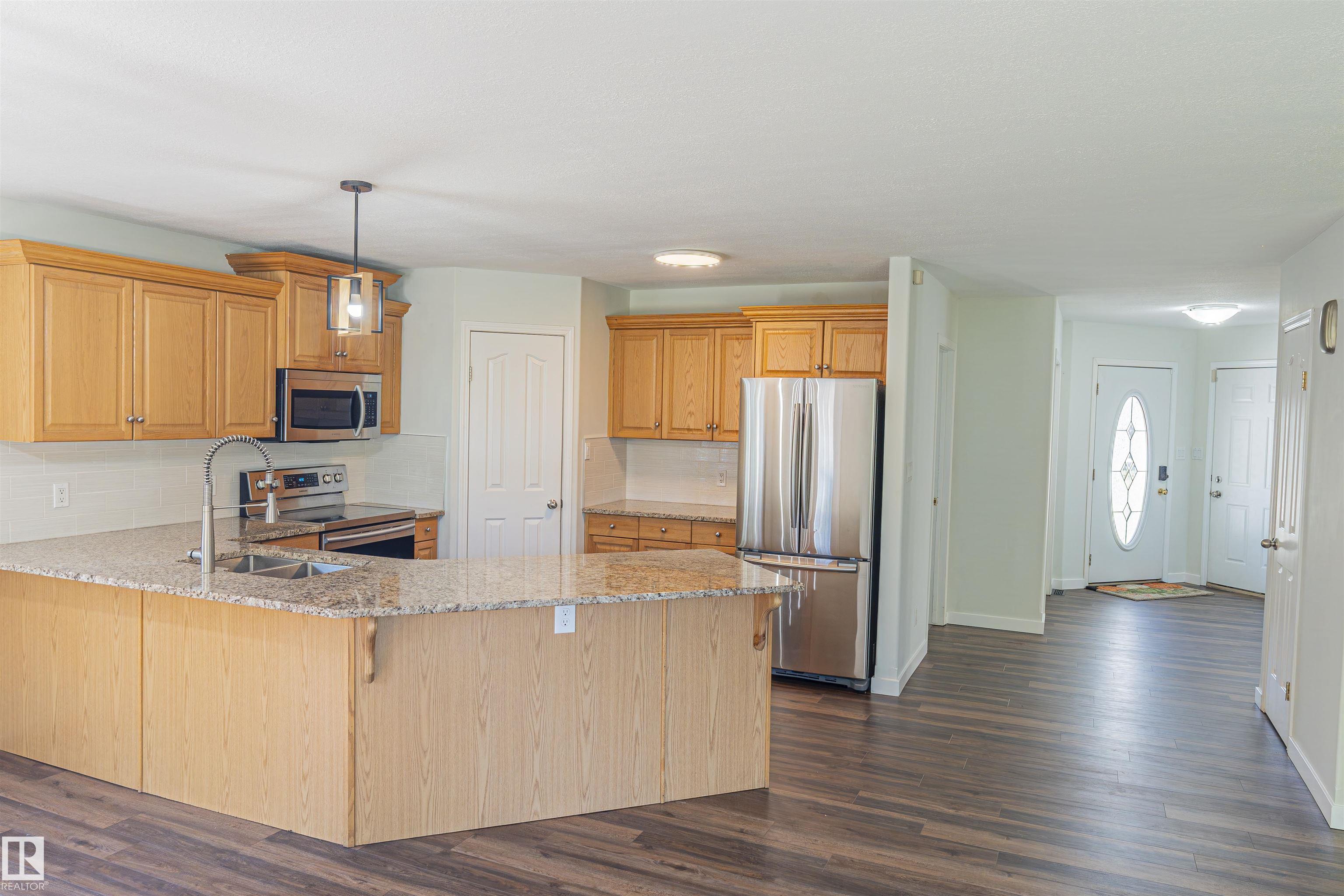 Welcome to this beautifully updated 5-bedroom, 3-bathroom bungalow, perfectly located close to schools, parks, and shopping. This home features a spacious open-concept layout with gleaming granite countertops and modern finishes throughout. Stay comfortable year-round with central air conditioning and enjoy the convenience of a double attached heated garage. The fully finished basement offers extra living space, perfect for a rec room, home gym, or media area. Outside, you'll find a fully fenced and landscaped yard--ideal for families, pets, and entertaining. A perfect blend of comfort, style, and location--this move-in ready home has it all! Calmar is a growing community only 15 mins from the Edmonton international Airport and Leduc. Featuring great schools and local shopping.