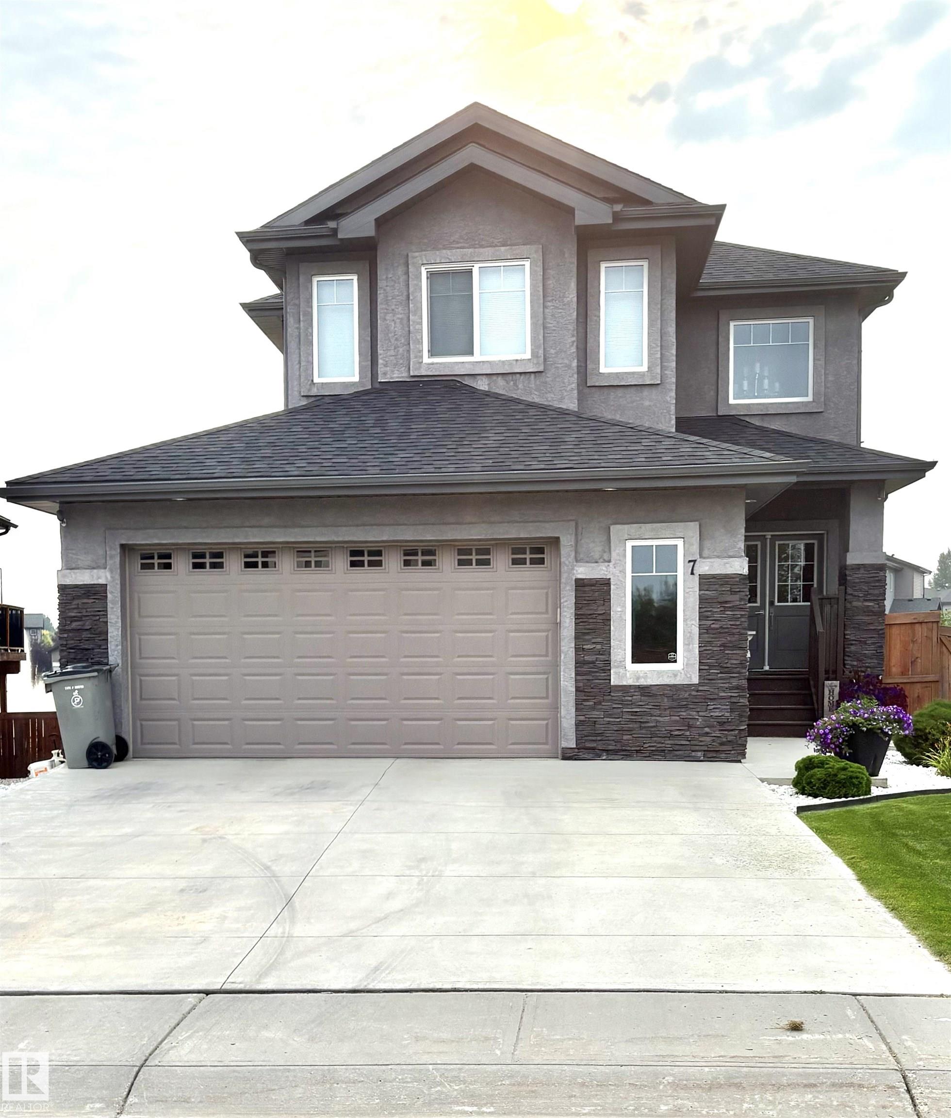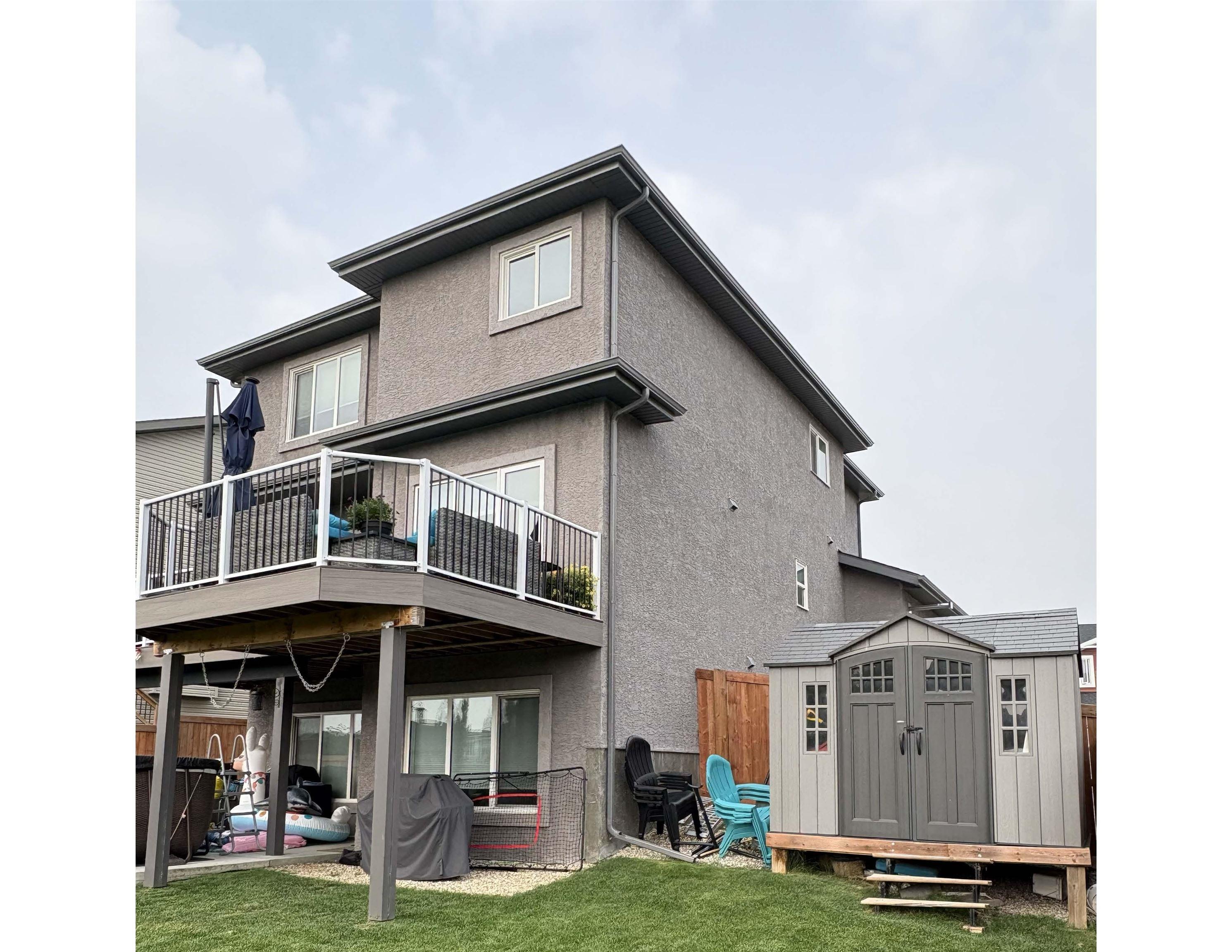 Tranquillity! Enjoy small-town living with big-city access in this beautiful 2-storey WALKOUT & POND BACKING home in Calmar. The main level offers a bright open-concept layout perfect for entertaining, highlighted by stunning full-picture views of the pond fountains. Step right off the dining area onto your NEW COMPOSITE DECK complete with a BBQ GAS LINE. The double attached HEATED GARAGE connects through a convenient LAUNDRY/MUDROOM and there's an oversized TRIPLE PARKING PAD for extra vehicles & RV 30 AMP POWER. Upstairs you'll find even more space to unwind in the front-facing bonus room. The upper level also features three bedrooms, a 4-piece bathroom and a spacious primary retreat with DOUBLE SINKS and a luxurious FREESTANDING TUB. The fully finished walkout basement adds even more living space with an additional bedroom, another 4-piece bath and a large rec room that opens directly to the backyard with beautiful landscaping throughout the front and back of the home. Bussing to all 3 schools avail!