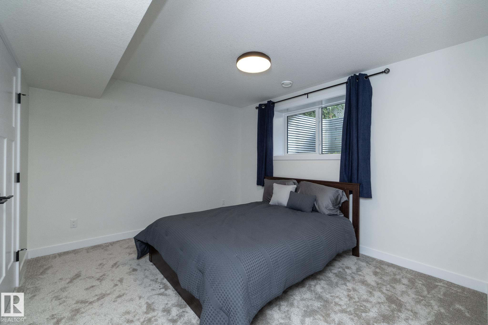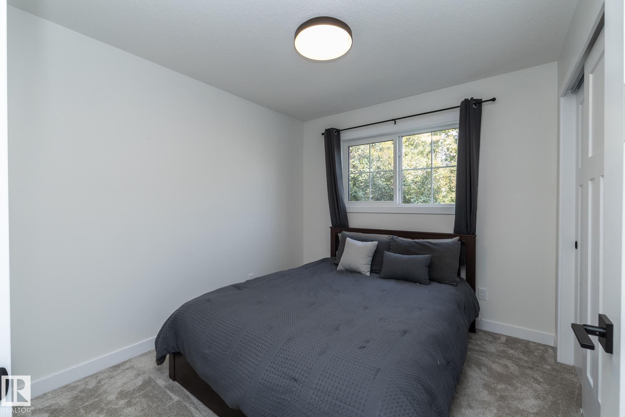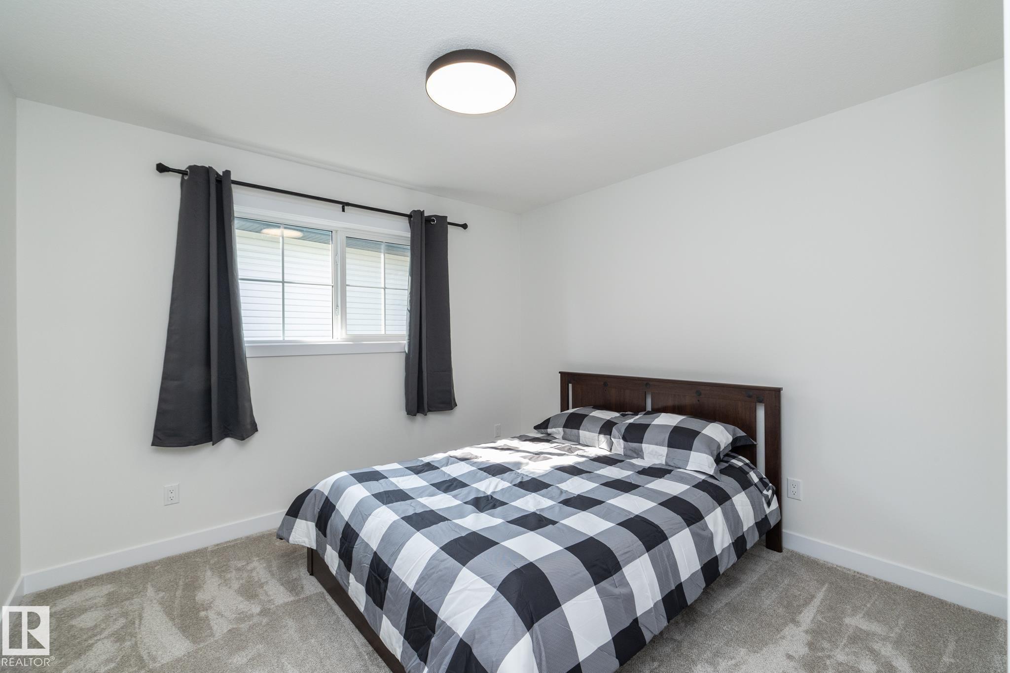 Ready to simplify without sacrificing comfort? This almost new bungalow offers the perfect next chapter. Designed with downsizers in mind, this home delivers approximately 2,200 sq ft of living space in a layout that's easy to live in, easy to maintain, & beautifully finished throughout.The open-concept main floor feels bright & welcoming, w/wide sightlines, main-floor laundry, & thoughtful flow for everyday living. The kitchen is both stylish & practical, featuring quartz countertops, granite sink, & plenty of workspace--ideal for quiet mornings or hosting family without feeling overwhelmed by space. With 2 bedrooms up plus a 3rd in the finished basement, there's room for guests, hobbies, or a home office. Step outside to a huge WEST-FACING yard, offering endless possibilities--including space for a future triple garage. Alley access, a double garage, & RV parking add everyday convenience. Enjoy river valley trails, walking paths, while being minutes from the city & Edmonton.