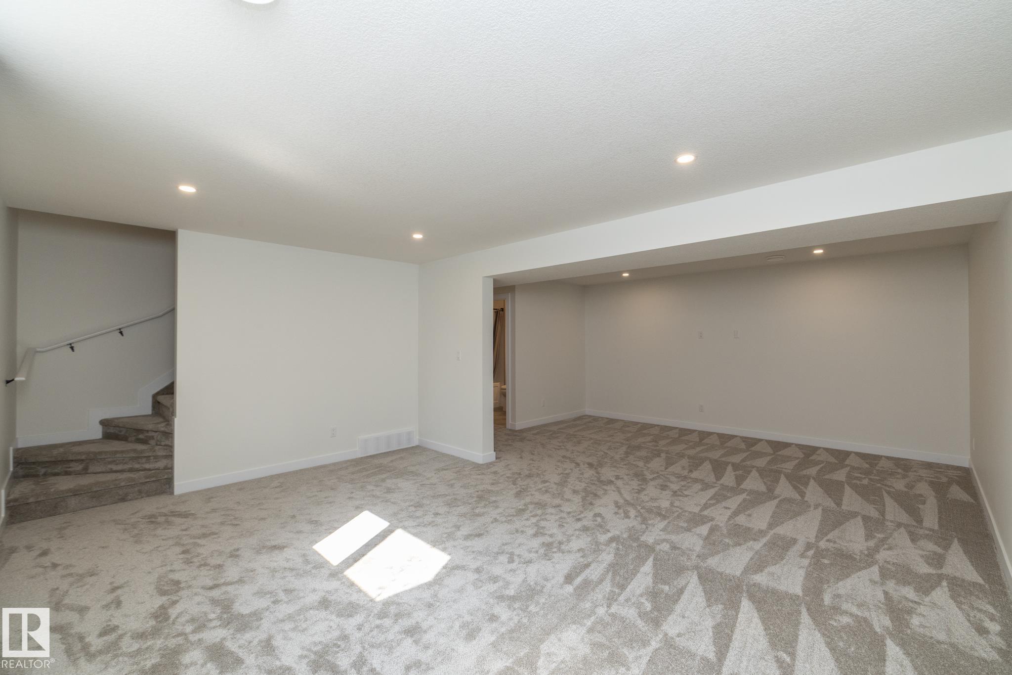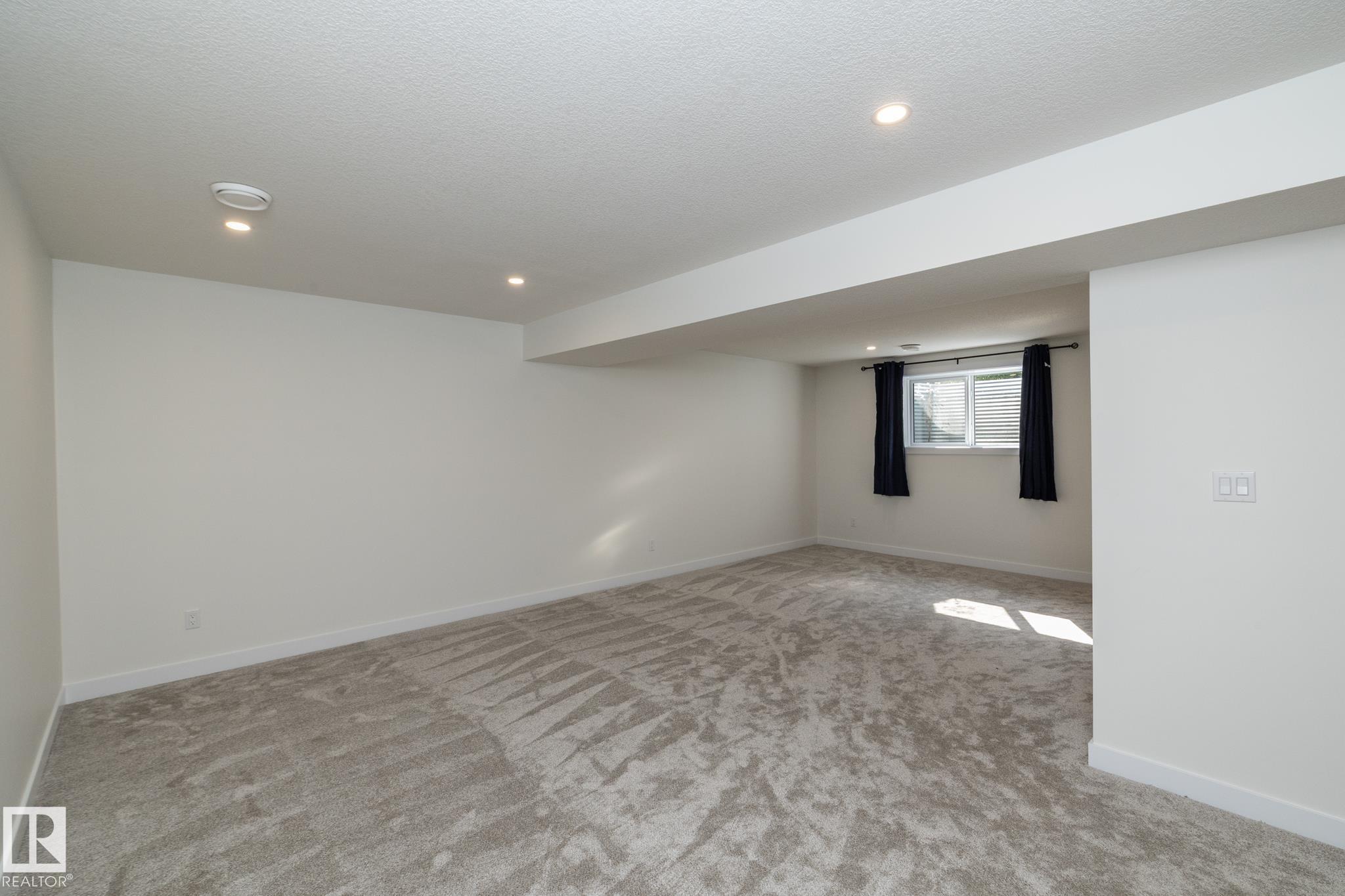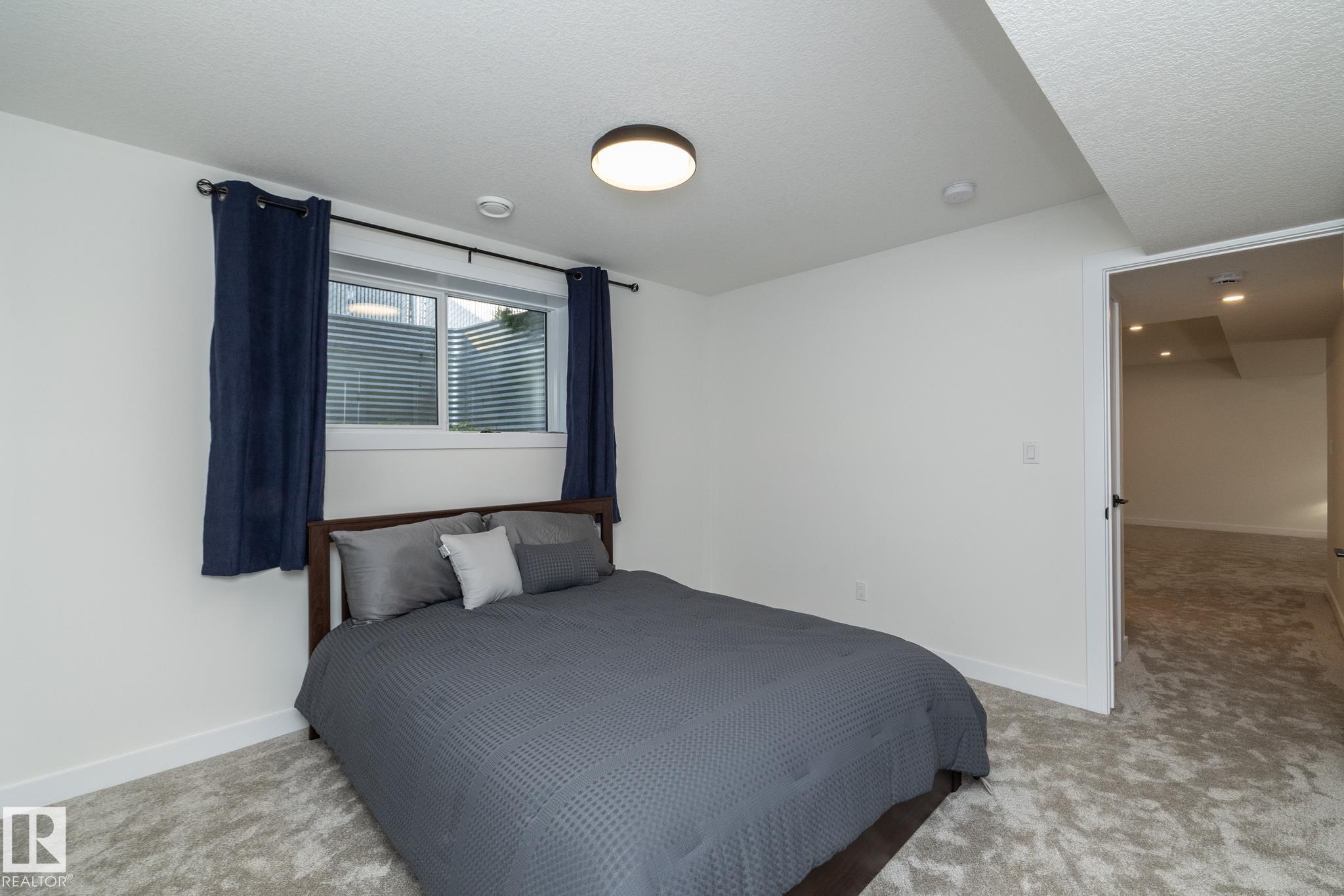 Ready to simplify without sacrificing comfort? This almost new bungalow offers the perfect next chapter. Designed with downsizers in mind, this home delivers approximately 2,200 sq ft of living space in a layout that's easy to live in, easy to maintain, & beautifully finished throughout.The open-concept main floor feels bright & welcoming, w/wide sightlines, main-floor laundry, & thoughtful flow for everyday living. The kitchen is both stylish & practical, featuring quartz countertops, granite sink, & plenty of workspace--ideal for quiet mornings or hosting family without feeling overwhelmed by space. With 2 bedrooms up plus a 3rd in the finished basement, there's room for guests, hobbies, or a home office. Step outside to a huge WEST-FACING yard, offering endless possibilities--including space for a future triple garage. Alley access, a double garage, & RV parking add everyday convenience. Enjoy river valley trails, walking paths, while being minutes from the city & Edmonton.