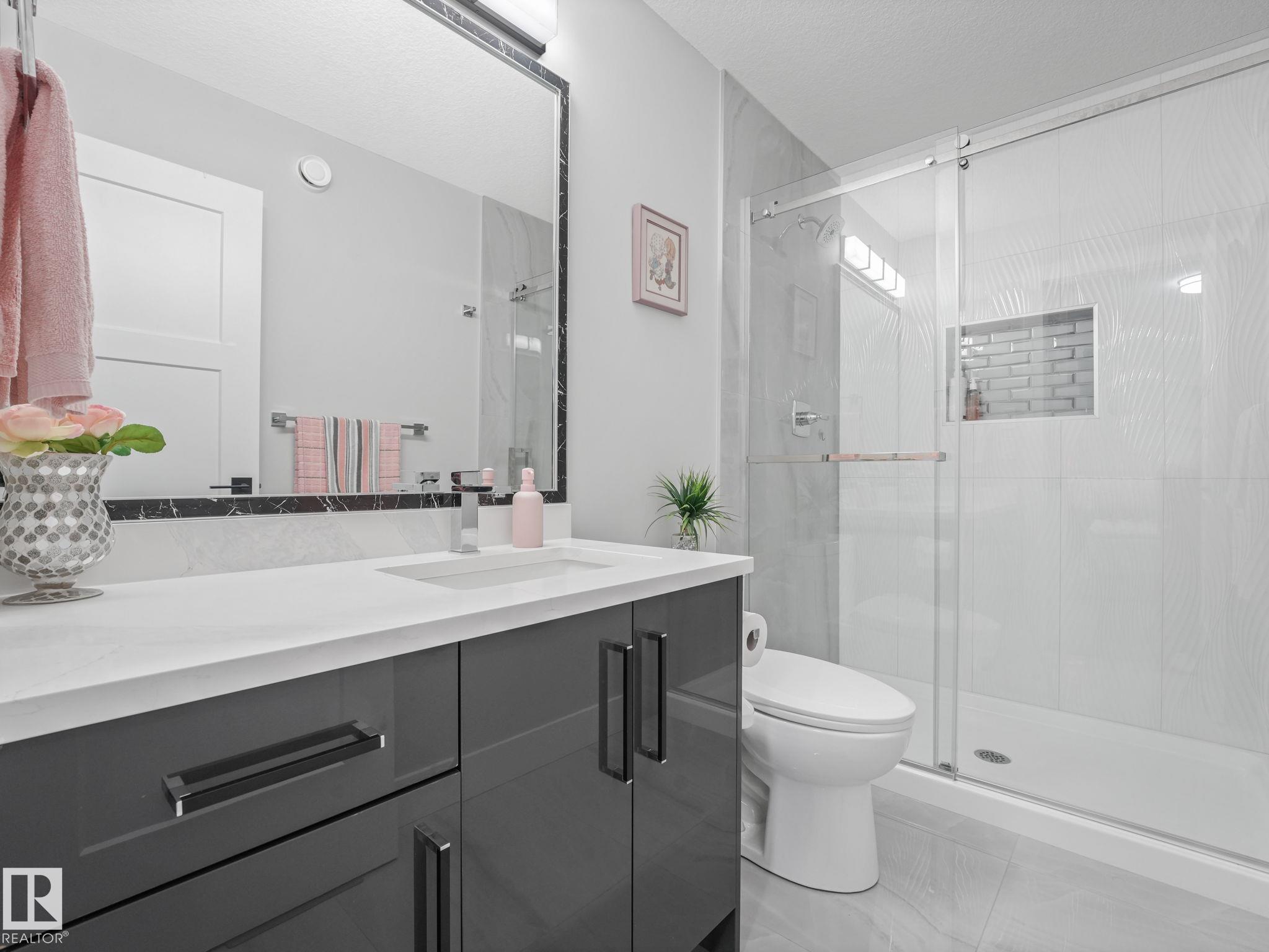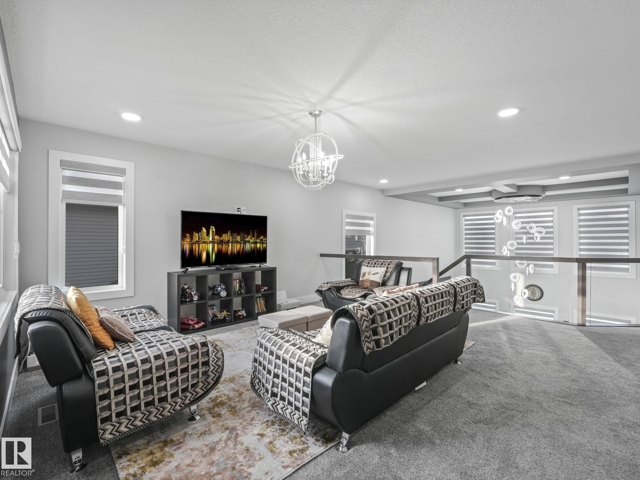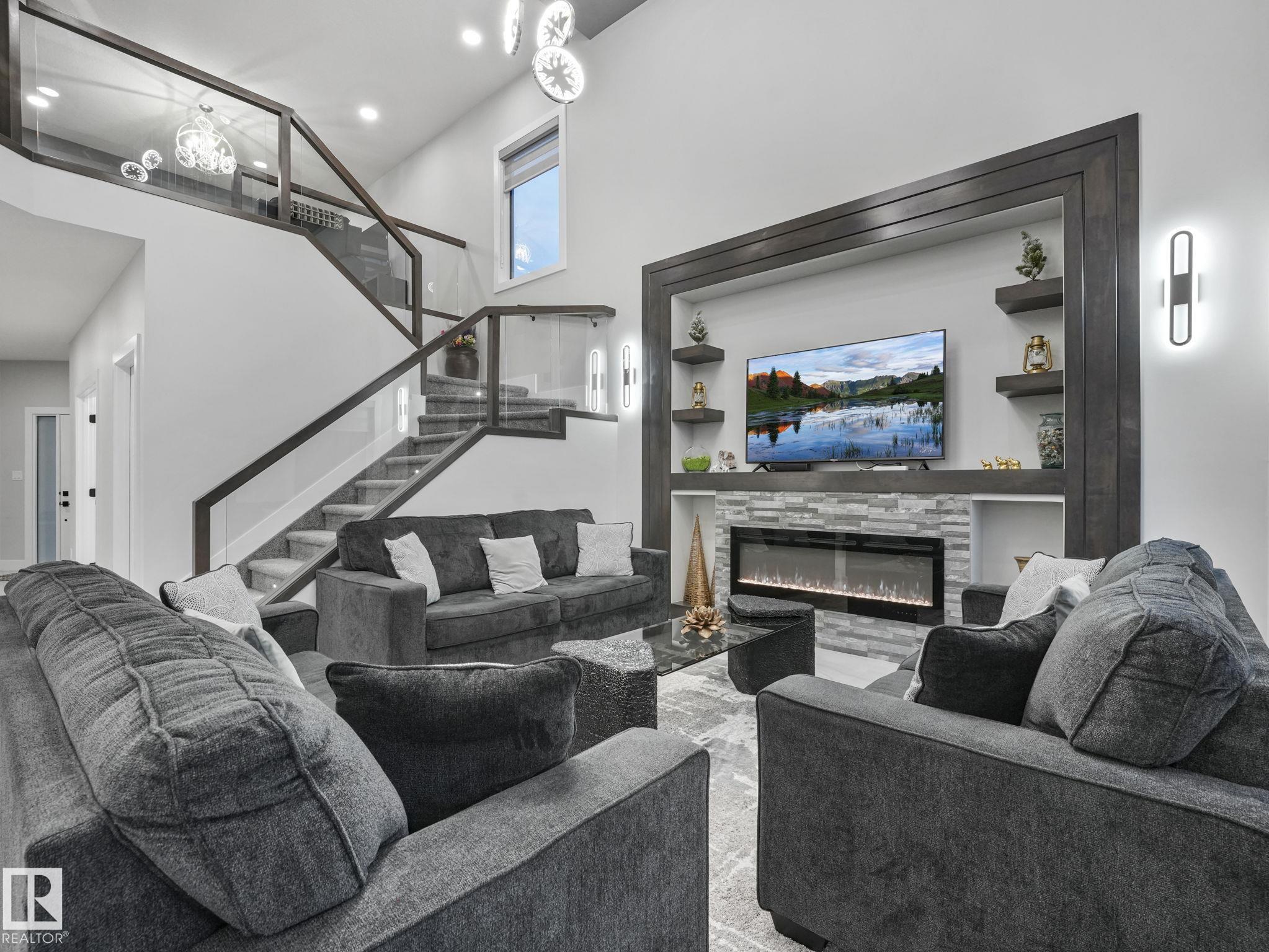 Welcome to your elevated Home2Love in Forest Heights--better than new & beautifully finished on a quiet cul-de-sac. Nearly 3000 sqft of thoughtfully designed space on a large landscaped lot, featuring a stunning open-to-above concept that fills the home with natural light. Built for everyday living & entertaining, enjoy a chef-inspired kitchen with oversized spice kitchen & pantry, quartz countertops, plus bar & wine cooler. The impressive 2-storey living room showcases an electric fireplace, wall of windows & porcelain tiled floors. The main floor den or 5th bedroom & full 3pc bath is perfect for guests or multi-generational living. Upstairs offers a king-sized primary retreat with spa-like ensuite, jetted tub, glass shower & walk-in closet. 3 generous bedrooms with walk-in closets & 2 additional full bath ensuites, spacious bonus room & convenient laundry complete the upper level. Oversized 3-car garage, separate entrance to the basement, dual zoned furnace, designer blinds & golf nearby all add value.