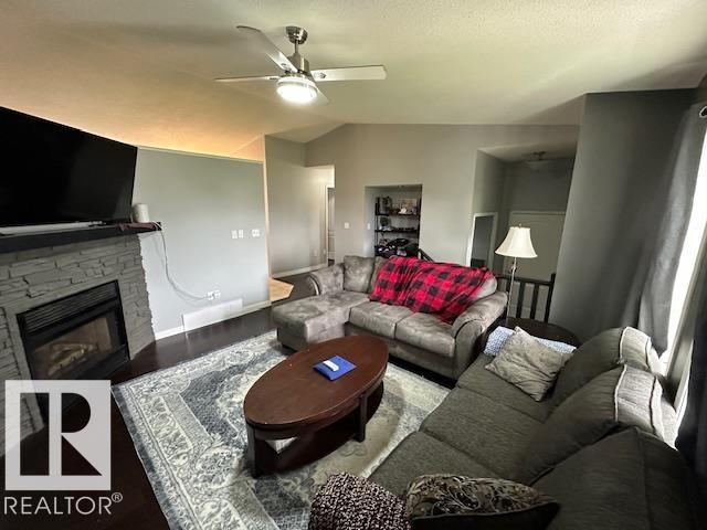 Very nice 1150 sq/ft 3 bedroom 2 bathroom Bungalow with front veranda and a 21' x 21' double attached garage w/ long driveway for an RV! Al in a quiet cul-de-sac in Wonderful Thorsby. Vaulted ceilings in the spacious living room surrounded by lots of windows. Gas fireplace with mantle. Spacious Country style kitchen w/ real oak cabinets, corner pantry. Three main floor bedrooms with a 4 piece main bathroom with separate shower. Convenient main floor laundry. The massive basement is partially developed with a huge recreation room, and room for a 4th bedroom. 3 piece bathroom and mechanical room, hot Water Tank and High Efficient Furnace and shingles replaced in 2019. Fiber optic internet. 8x10 shed. All located on a beautiful 60 x 120 lot. Embrace country living in Thorsby offering a peaceful change from city life while remaining conveniently close to town amenities in town with this exceptional property. Just 25 minutes West of Leduc and 40 minutes to Edmonton. Easy access to Pigeon Lake, Calmar, Devon.