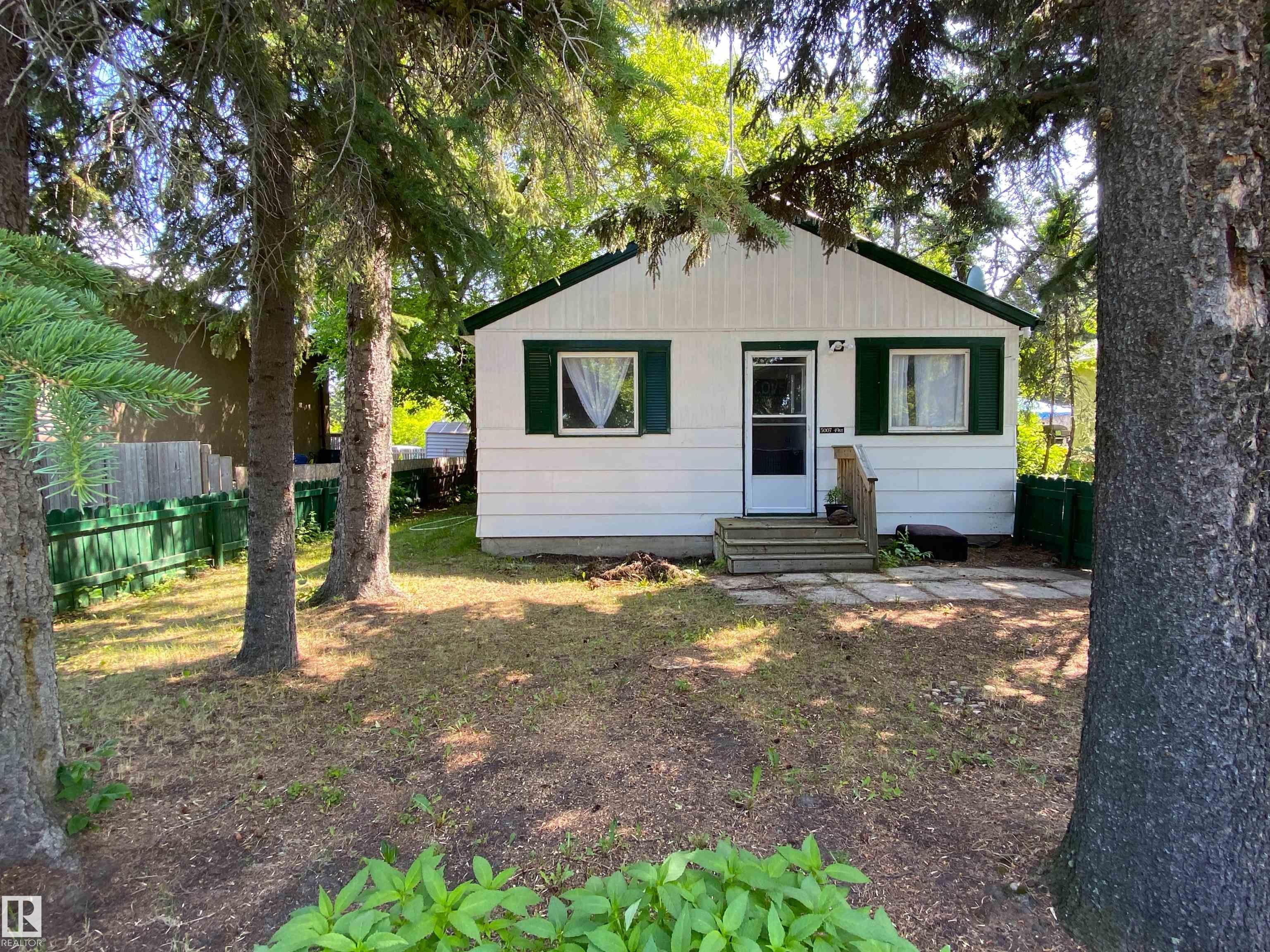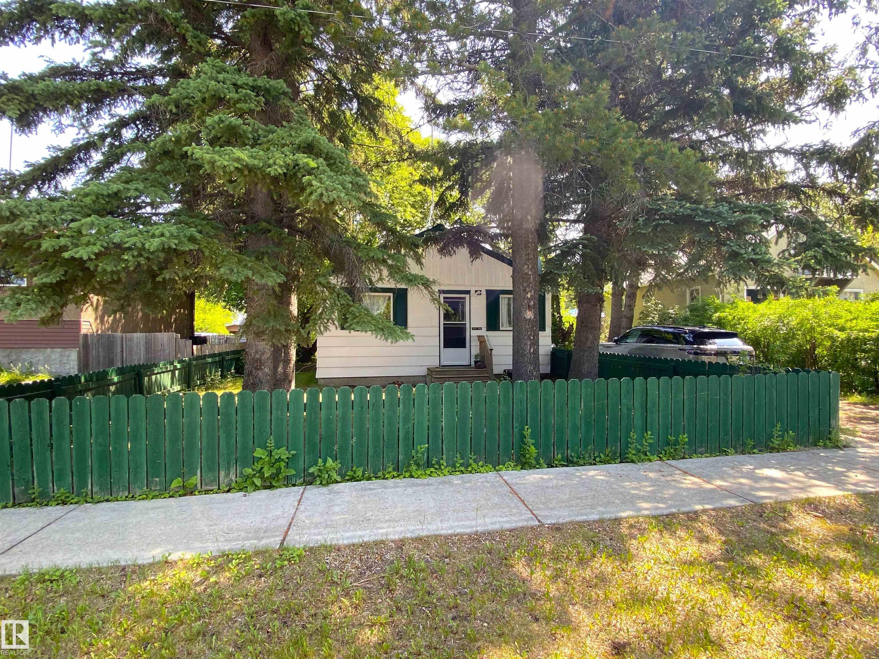 Cozy 2 bungalow on a large 50x150 foot lot fenced with back alley and mature trees. Plenty of parking with front drive access. Home features a small entry porch, newer kitchen, large living room with built ins, 2 bedrooms, 3 piece bathroom and a large front bonus room and a metal roof. Recent upgrades in last 6 years also include heater, hot water tank and most appliances.