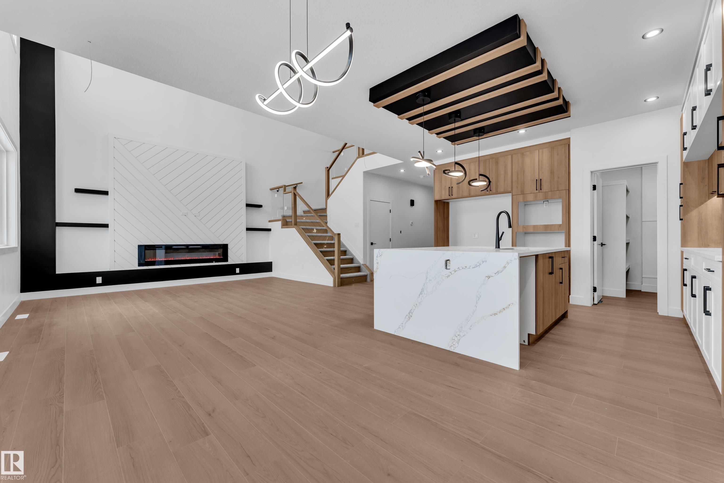 TRIPLE-CAR GARAGE | RV Parking | FULLY UPGRADED | WALKOUT BACKING TO POND || CUSTOM-BUILT SHOWSTOPPER. Step into a home that actually delivers. This stunning, fully upgraded custom residence features a versatile main-floor den/office that easily doubles as an extra bedroom, paired with a convenient full bath. The kitchen? Absolute art. A chef's dream with premium finishes, a sleek design, and a walk-in pantry for serious storage. The living room features a custom statement wall that anchors the entire space, while the dining area opens directly onto the deck, perfect for hosting or just vibing on a calm evening.Head upstairs to a bright bonus room, ideal for family hangouts or a cozy entertainment zone. The primary bedroom is massive, highlighted by a designer feature wall, a truly luxurious 5-piece custom ensuite, and a walk-in closet made for someone who loves organization. Two additional generous bedrooms share a well-appointed full bath, and the second-floor laundry adds next-level convenience.