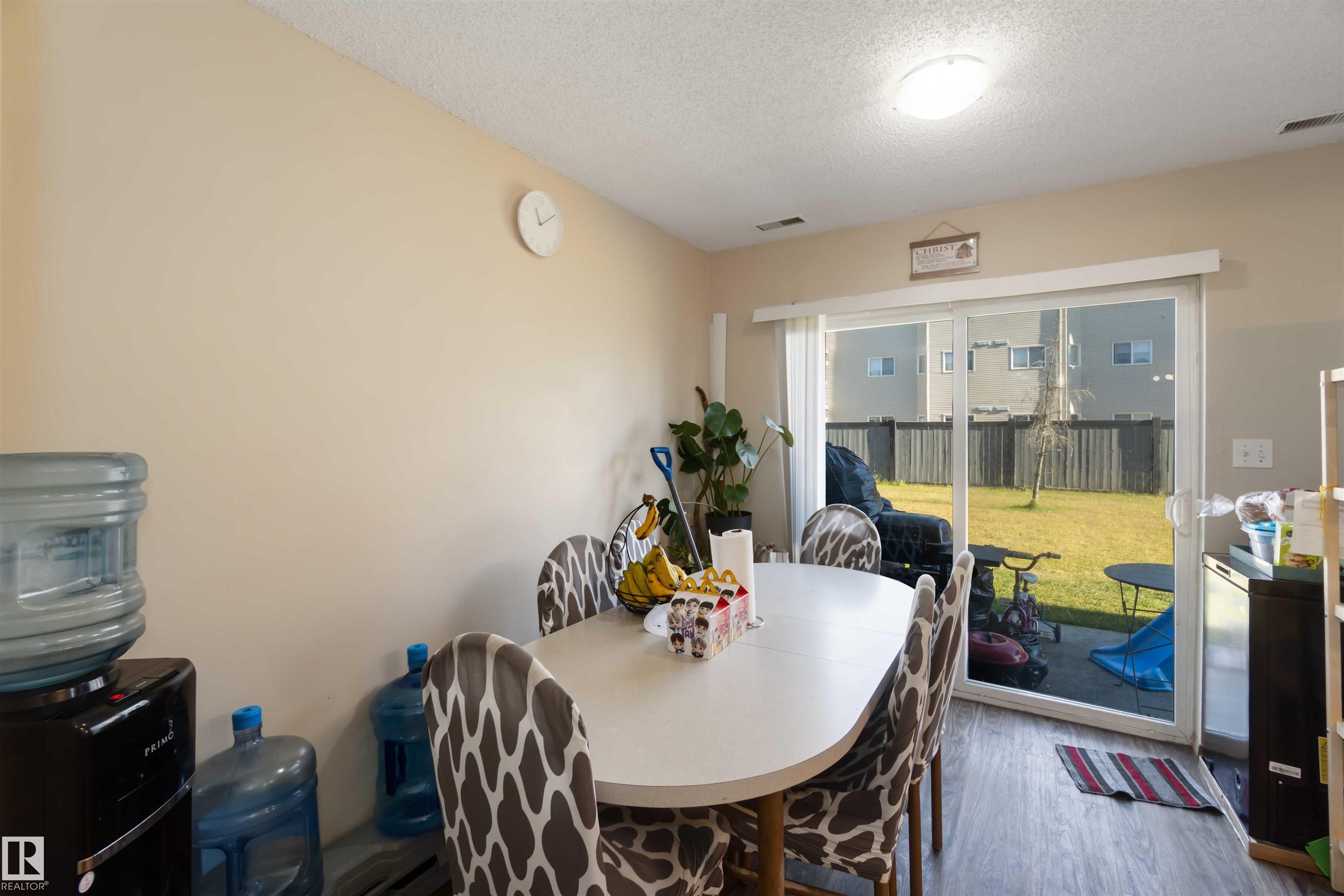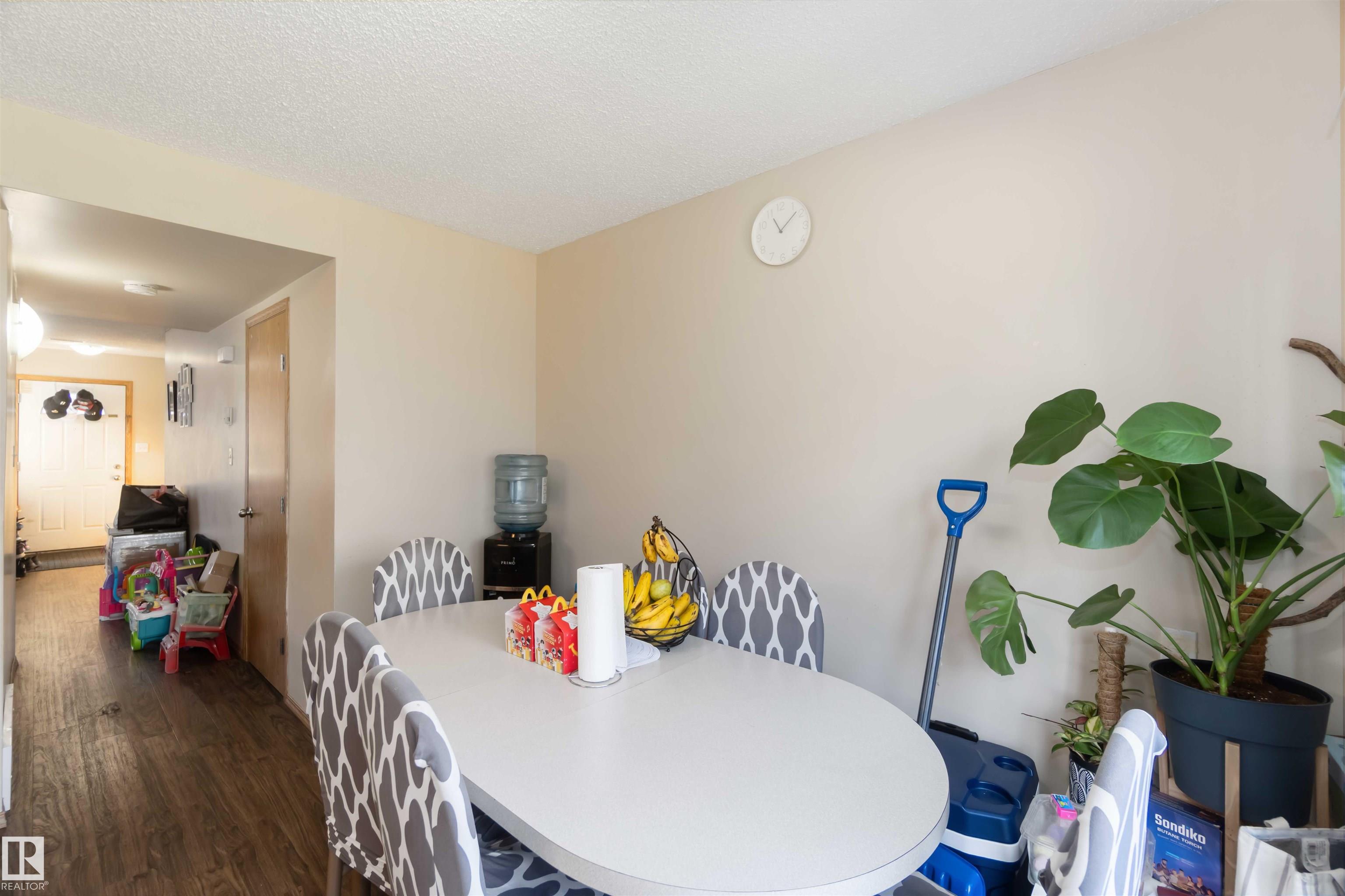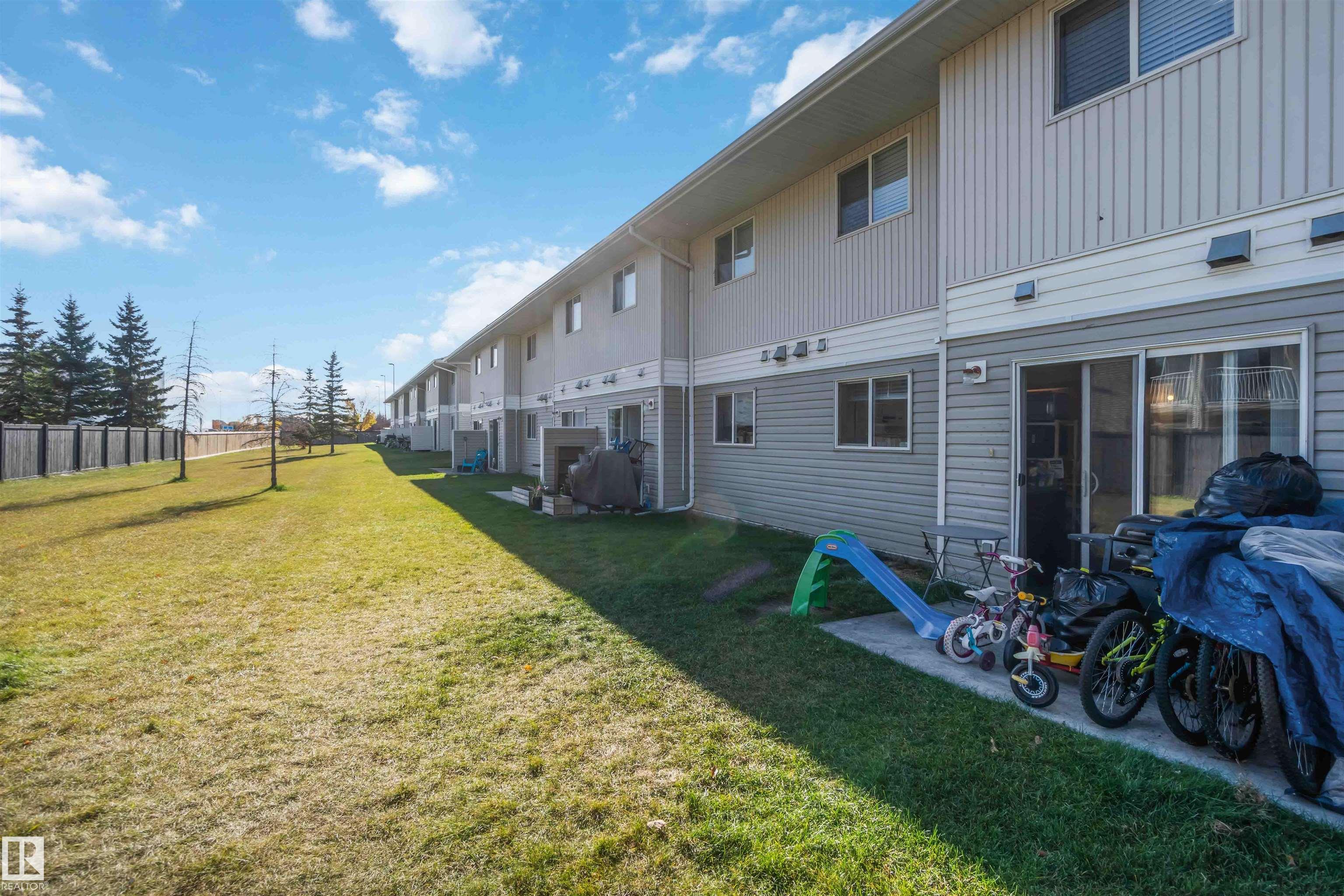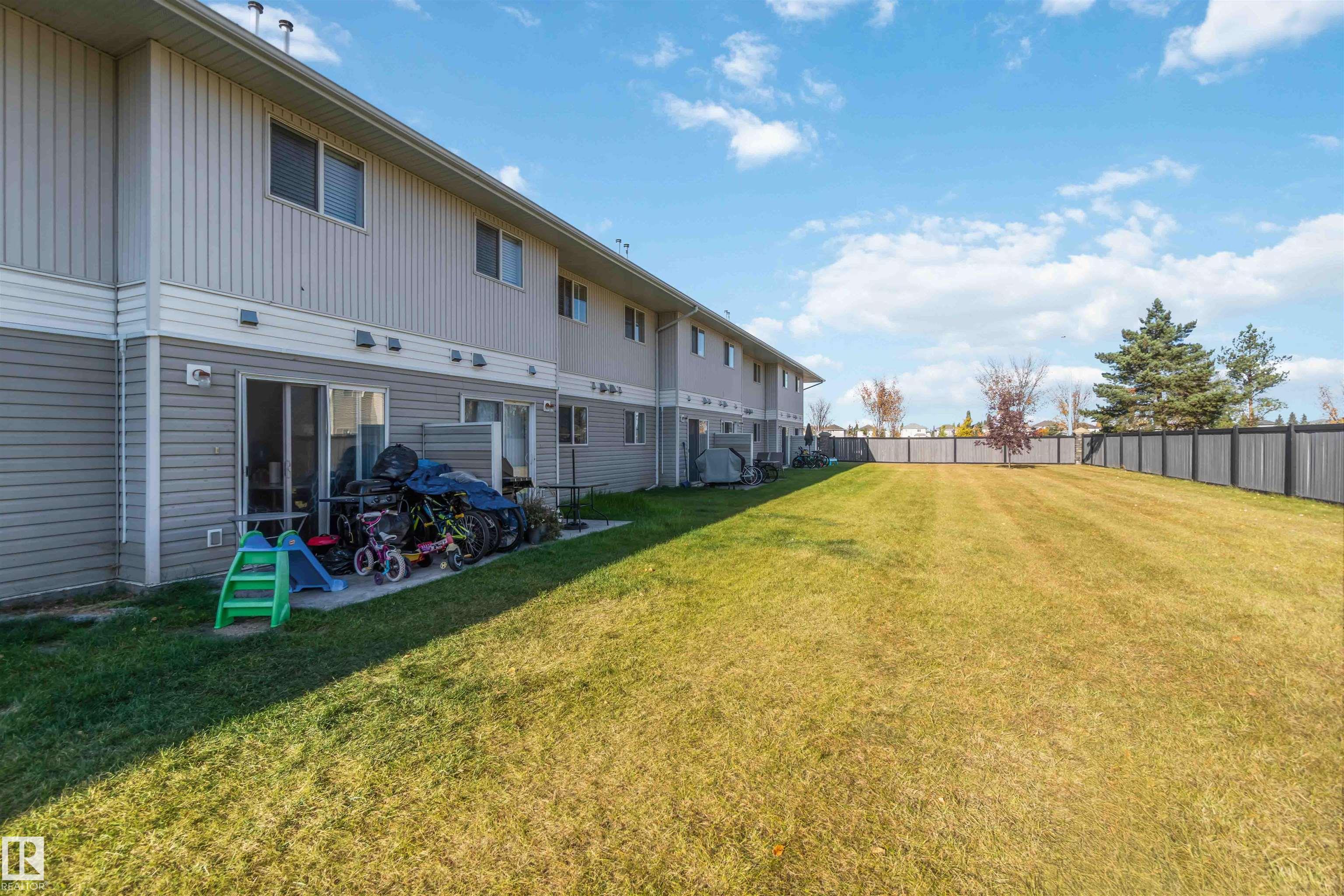 Perfect starter home or investment opportunity in desirable Bridgeport! This bright and welcoming 3 bed, 1.5 bath townhouse condo offers a spacious living room with large windows and a patio door that fills the space with natural light. The open-concept kitchen is well laid out with plenty of cabinet space and flows into a generously sized dining area. The main floor also features a convenient half bath and in-suite laundry. Upstairs, you'll find three comfortably sized bedrooms, a full 4-piece bath, and a walk-in closet in the primary bedroom. Enjoy outdoor living with your private patio backing onto green space--perfect for relaxing and entertaining. This unit also includes a powered parking stall right at your doorstep. Ideally situated just minutes from Leduc Common, schools, golf courses, the recreation centre, and the Edmonton International Airport. Quick access to Hwy 2 and 50th Street makes commuting a breeze! All this home needs is YOU!