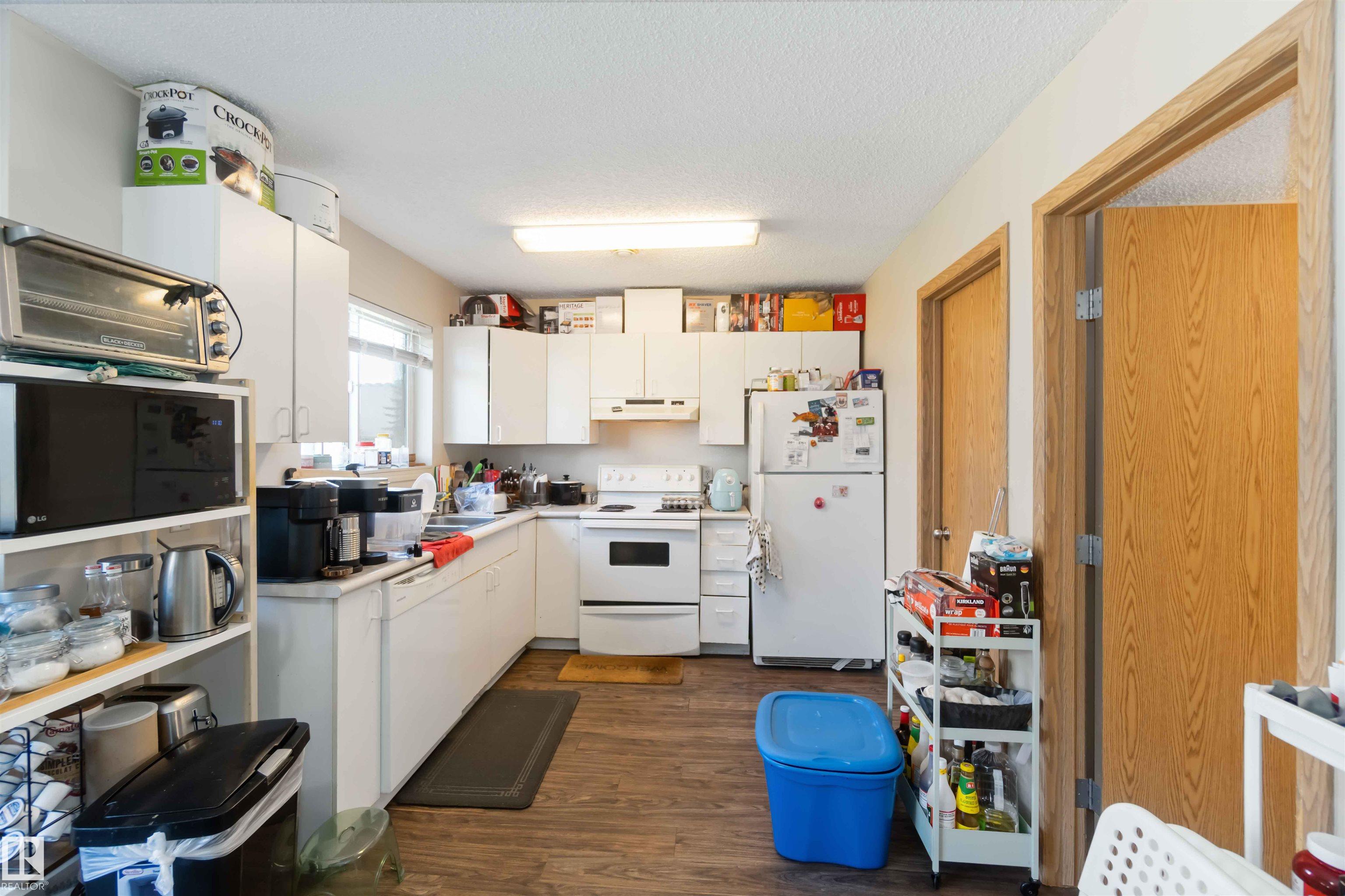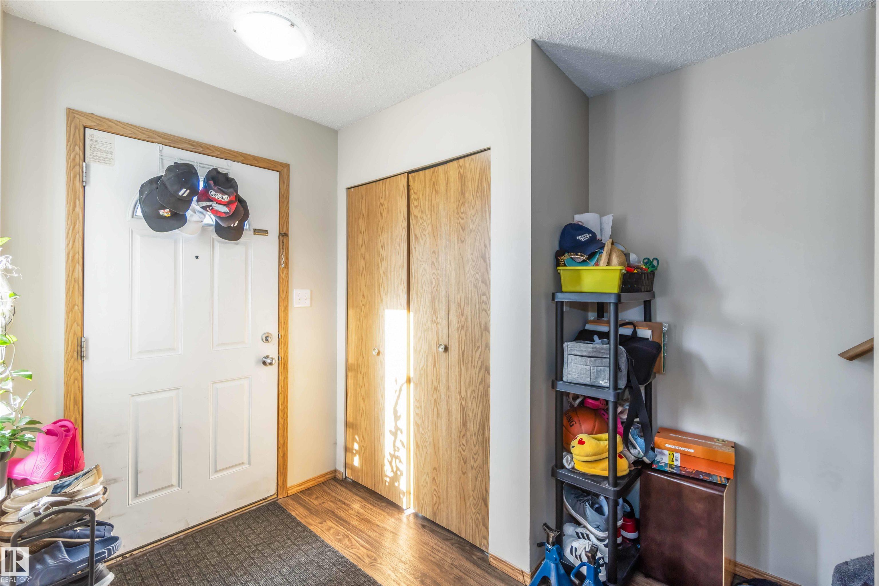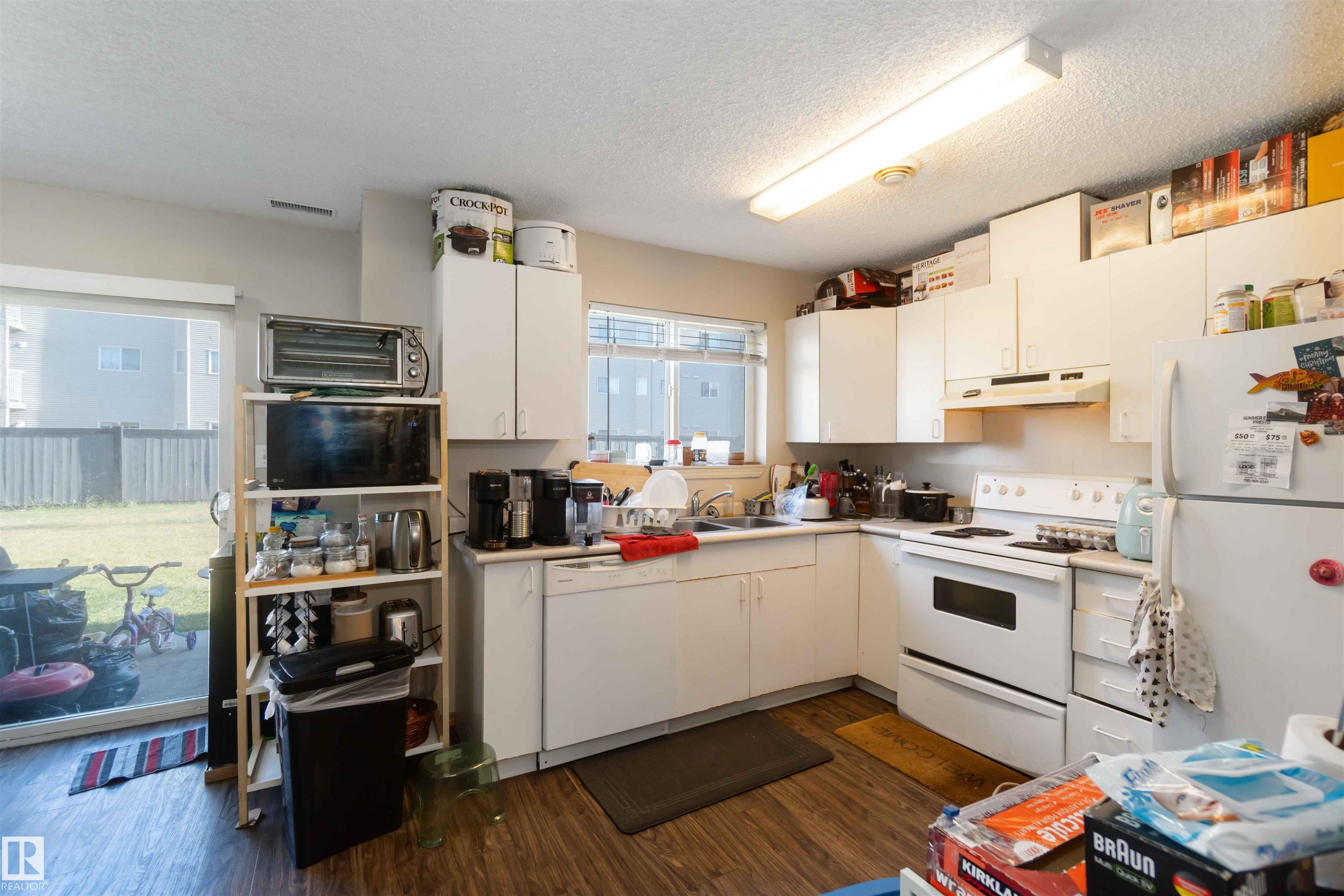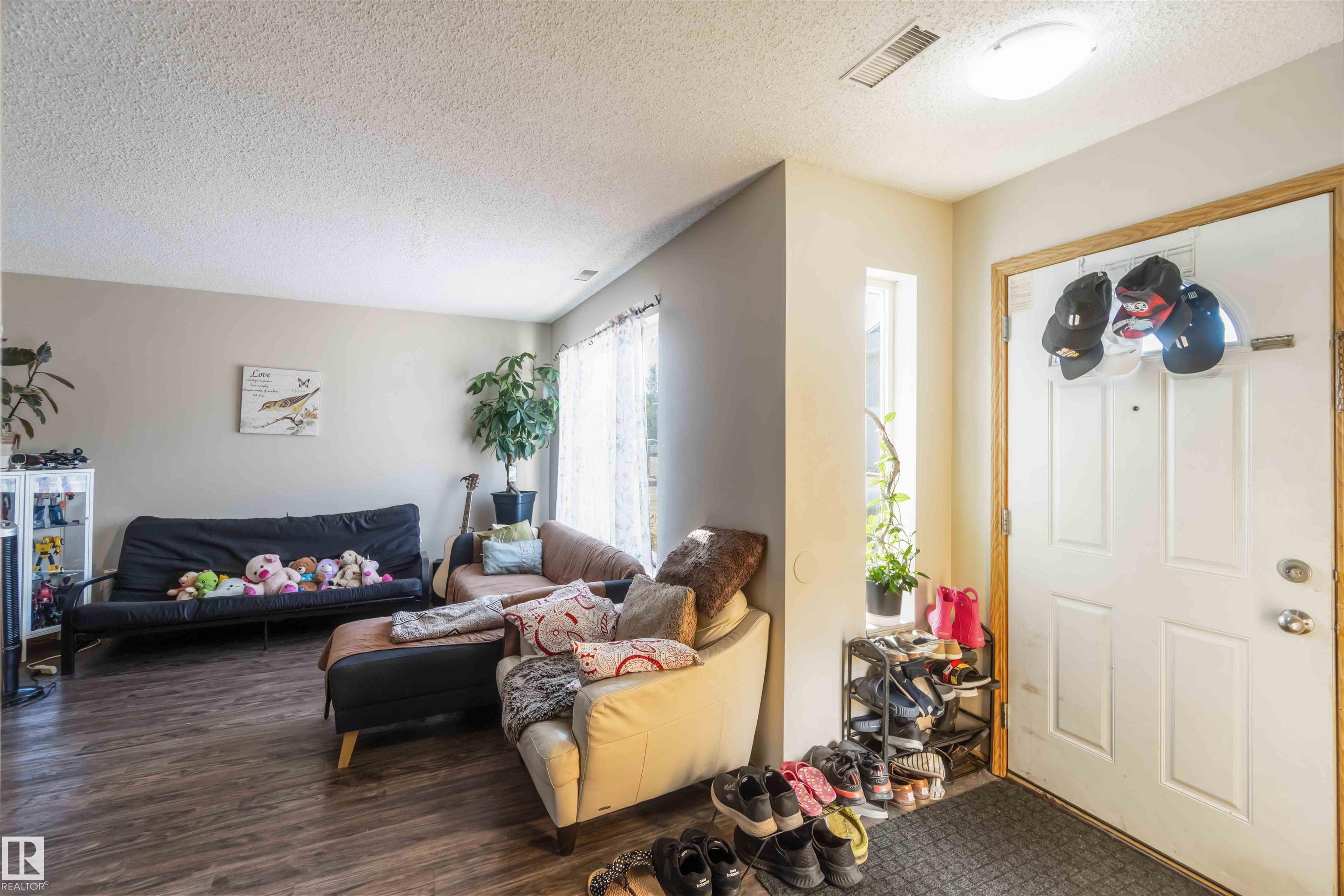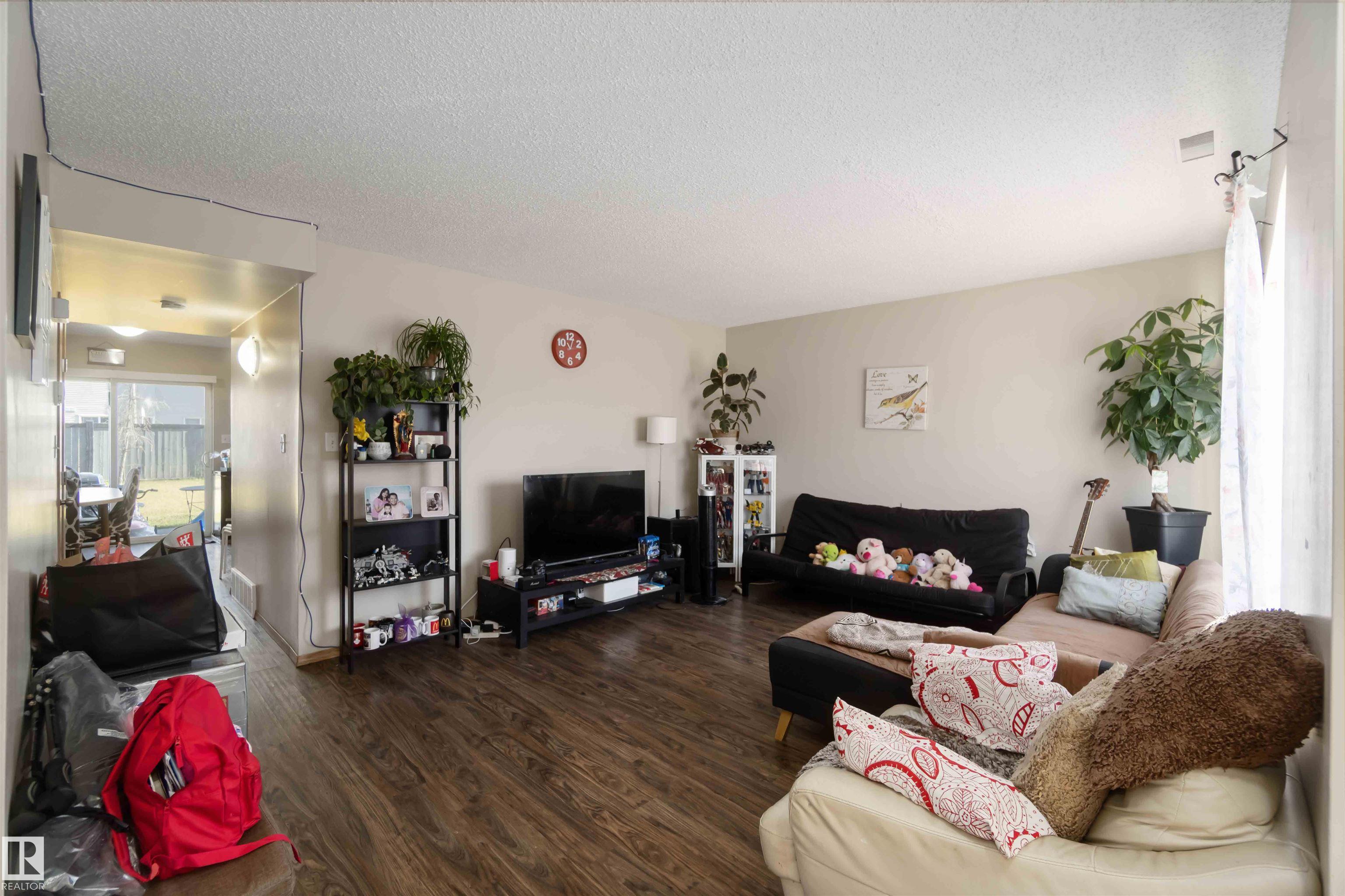 Perfect starter home or investment opportunity in desirable Bridgeport! This bright and welcoming 3 bed, 1.5 bath townhouse condo offers a spacious living room with large windows and a patio door that fills the space with natural light. The open-concept kitchen is well laid out with plenty of cabinet space and flows into a generously sized dining area. The main floor also features a convenient half bath and in-suite laundry. Upstairs, you'll find three comfortably sized bedrooms, a full 4-piece bath, and a walk-in closet in the primary bedroom. Enjoy outdoor living with your private patio backing onto green space--perfect for relaxing and entertaining. This unit also includes a powered parking stall right at your doorstep. Ideally situated just minutes from Leduc Common, schools, golf courses, the recreation centre, and the Edmonton International Airport. Quick access to Hwy 2 and 50th Street makes commuting a breeze! All this home needs is YOU!