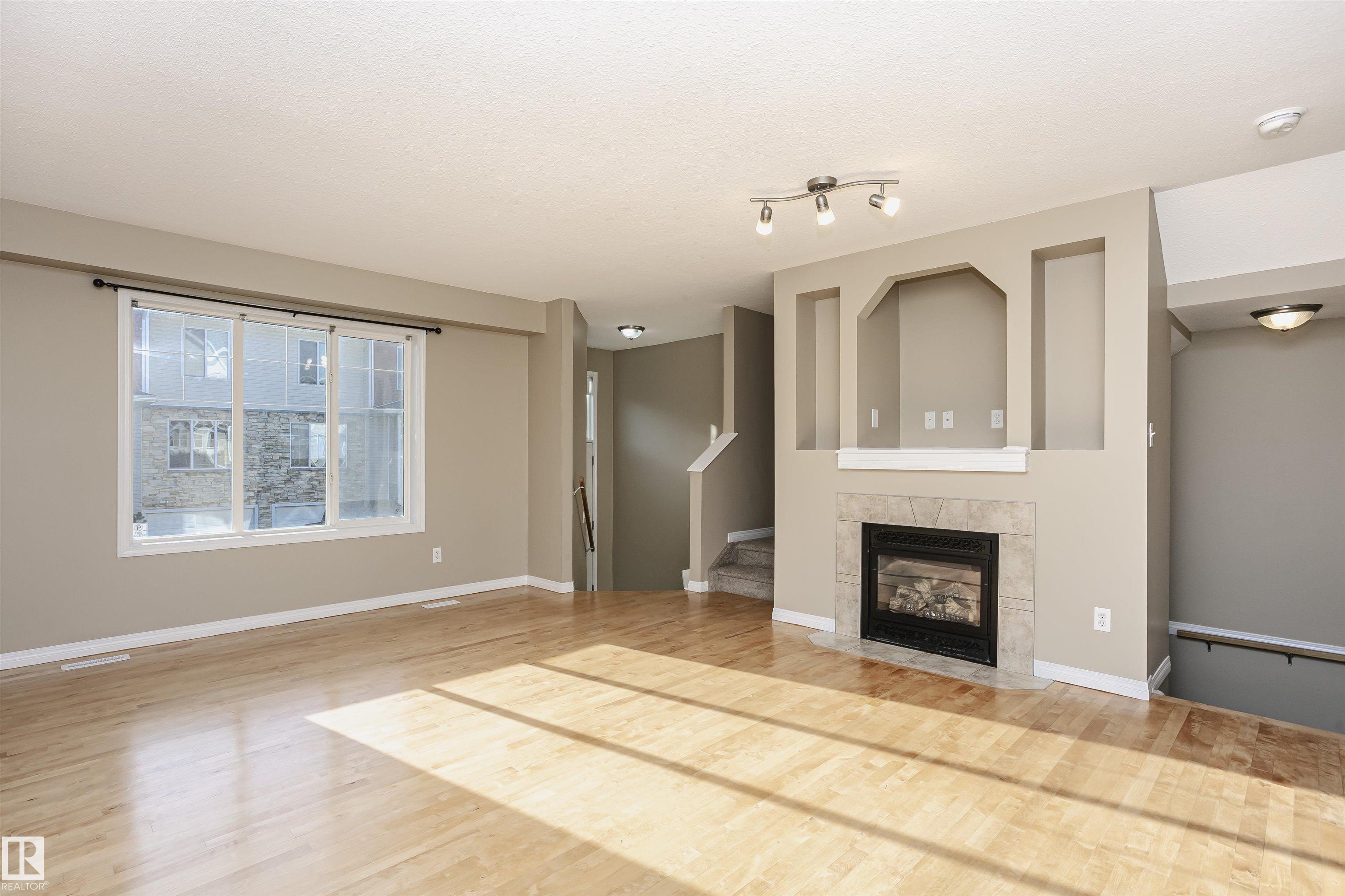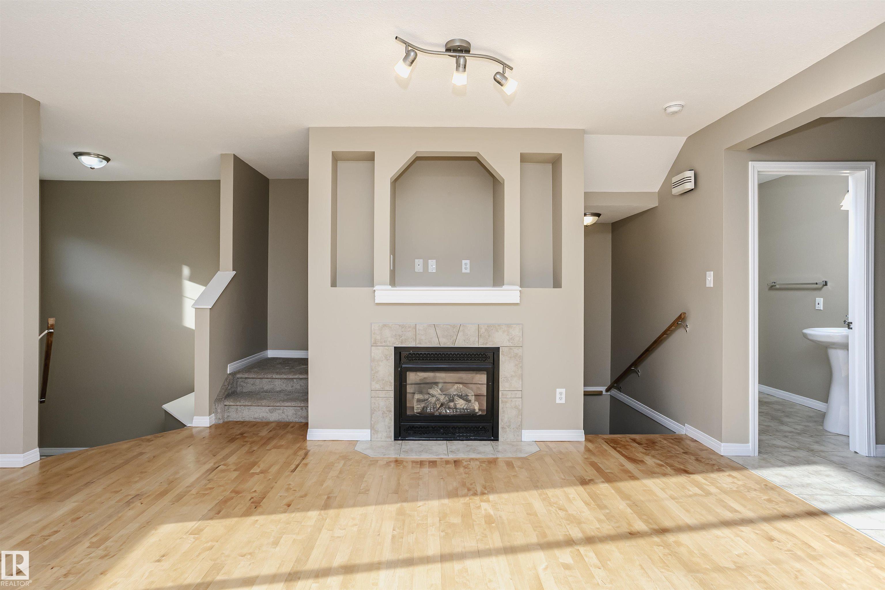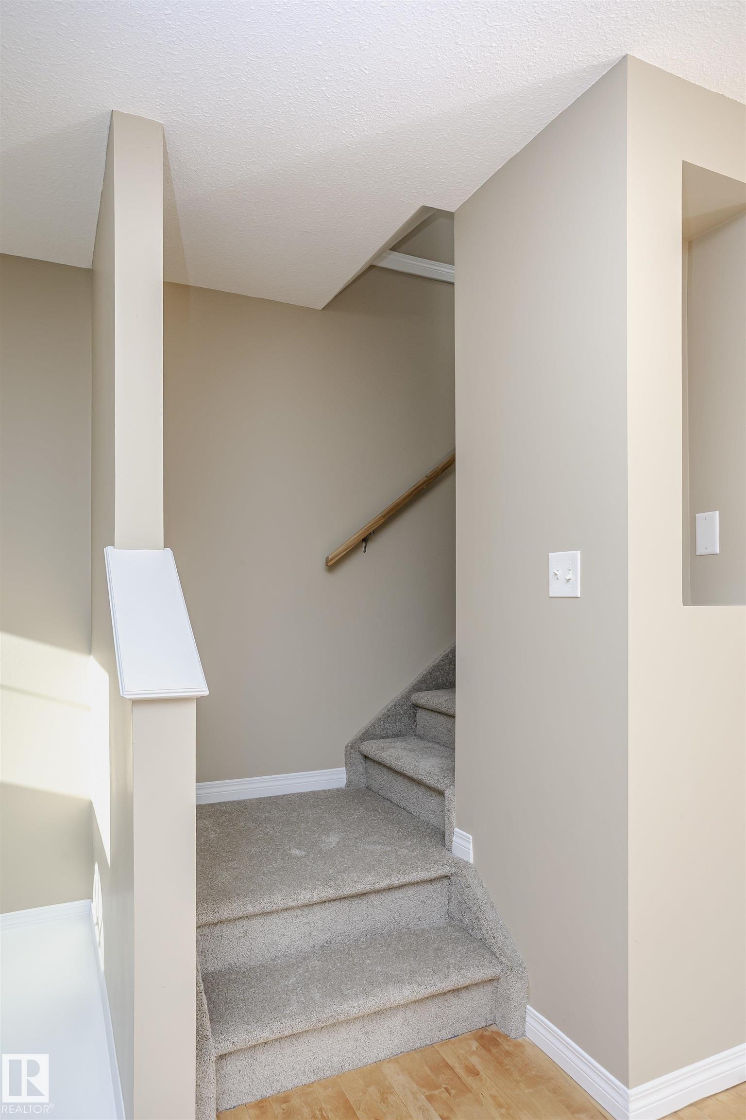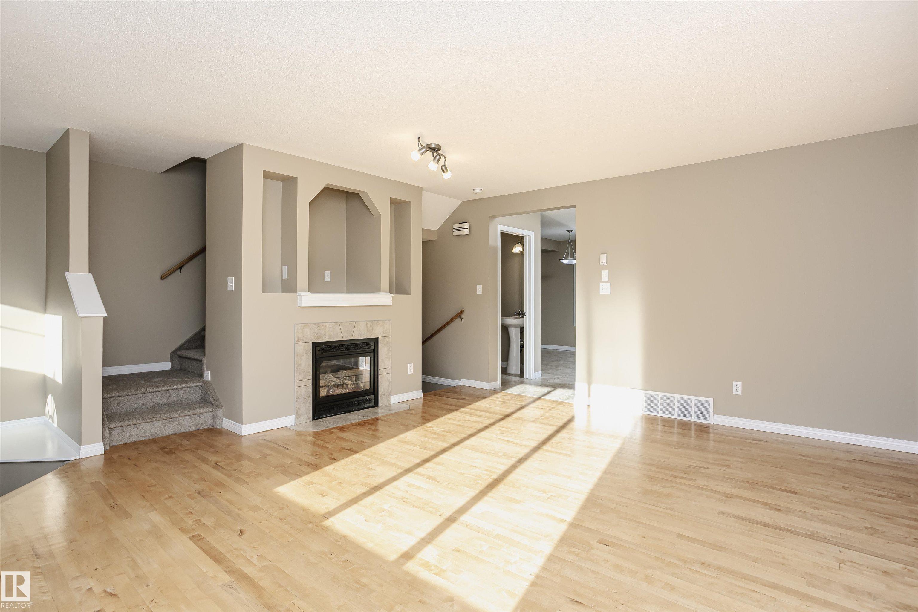 Don't miss this bright, updated 4-bed, 3-bath townhome just steps from Leduc Common and Harry Bienert Park! Your plants will love the sun filled south-facing living room, with freshly refinished hardwood floors and a cozy gas fireplace. The centrally located 2-piece bath on the main makes hosting a breeze. The kitchen features stainless steel appliances and ceramic tile flooring, with the dining area opening to a north-facing deck and treed green space - giving you plenty of privacy. Upstairs, the NORTH-FACING primary bedroom offers a walk-in closet and 3-piece ensuite with a roomy step-in shower, plus two more bedrooms and laundry. The lower level includes a fourth bedroom, storage, and access to your OVERSIZED TANDEM GARAGE with room for two vehicles plus a workshop! UPDATES INCLUDE: refinished hardwood, new carpet upstairs and in all bedrooms, new basement LVP, and fresh paint throughout. Move-in ready and just minutes to schools, parks, golf, shopping, the QE II, and EIA.
