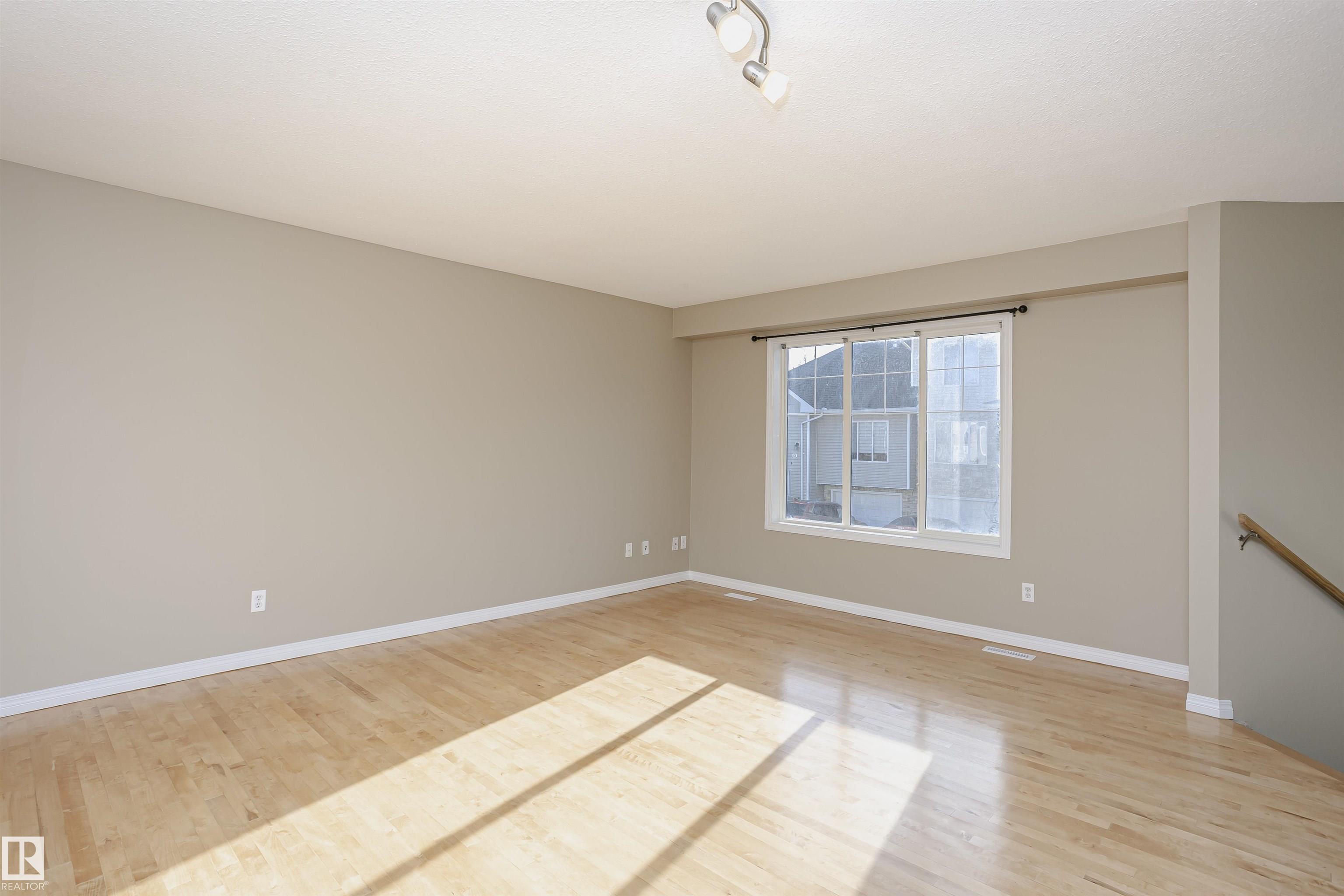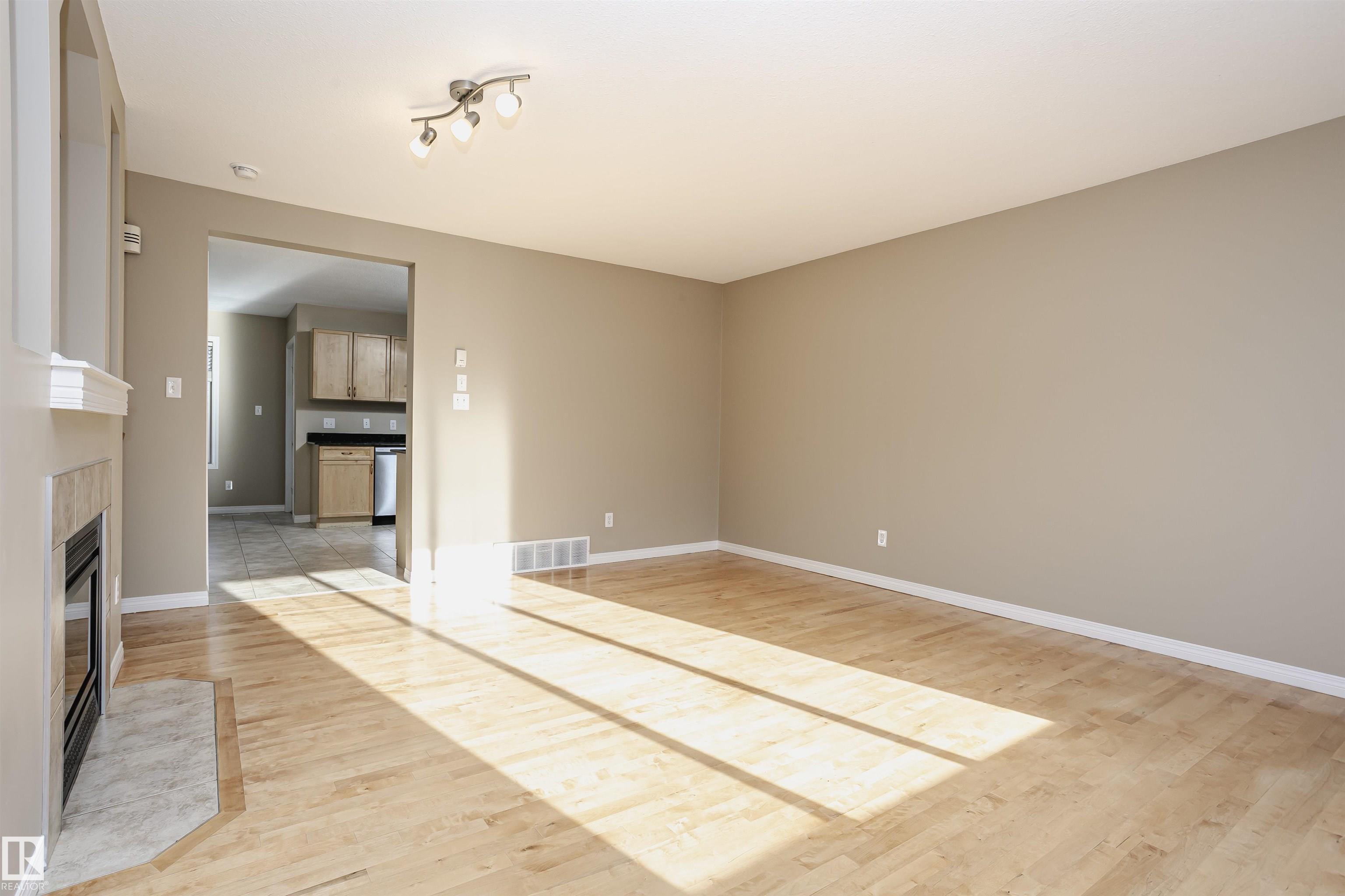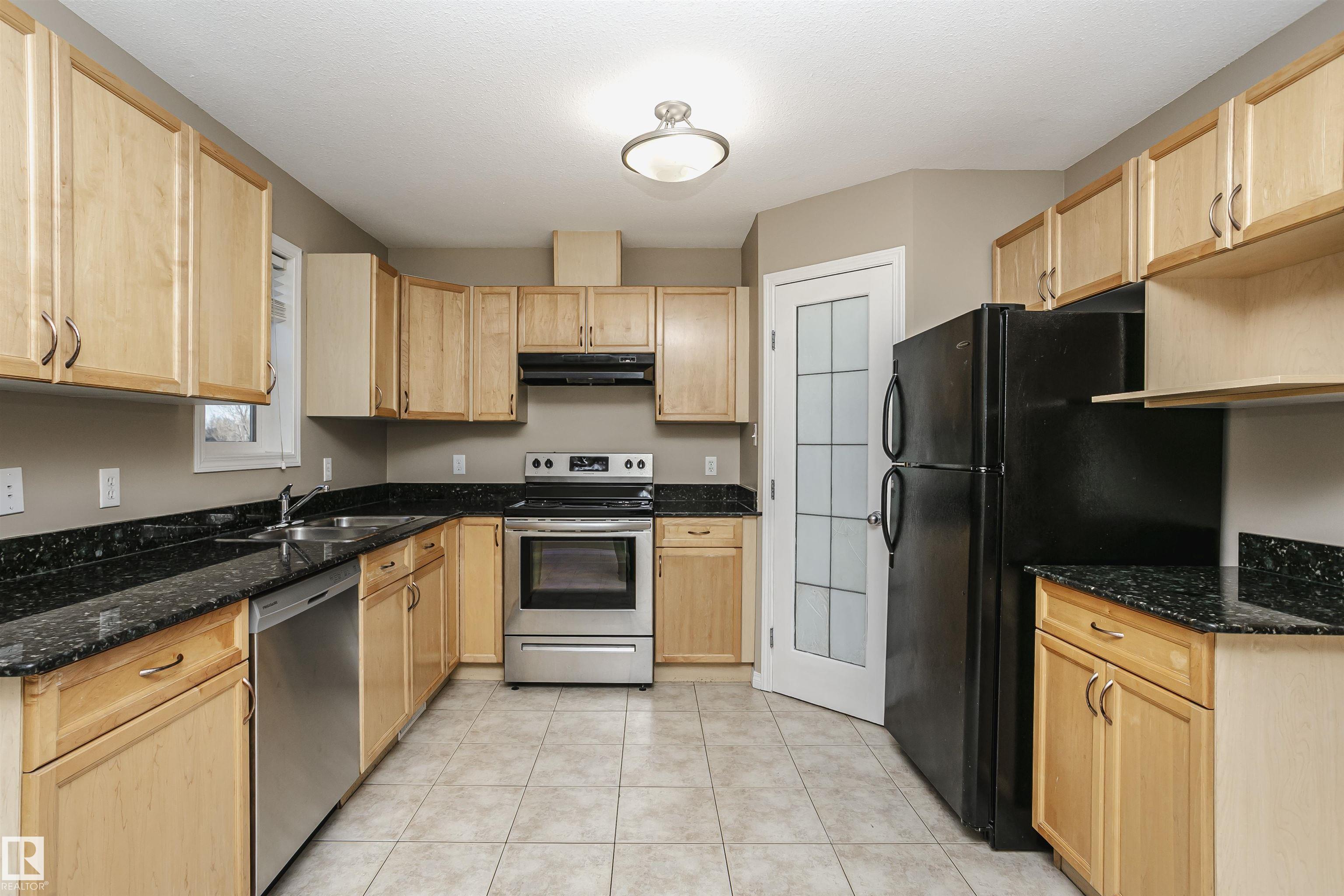 Don't miss this bright, updated 4-bed, 3-bath townhome just steps from Leduc Common and Harry Bienert Park! Your plants will love the sun filled south-facing living room, with freshly refinished hardwood floors and a cozy gas fireplace. The centrally located 2-piece bath on the main makes hosting a breeze. The kitchen features stainless steel appliances and ceramic tile flooring, with the dining area opening to a north-facing deck and treed green space - giving you plenty of privacy. Upstairs, the NORTH-FACING primary bedroom offers a walk-in closet and 3-piece ensuite with a roomy step-in shower, plus two more bedrooms and laundry. The lower level includes a fourth bedroom, storage, and access to your OVERSIZED TANDEM GARAGE with room for two vehicles plus a workshop! UPDATES INCLUDE: refinished hardwood, new carpet upstairs and in all bedrooms, new basement LVP, and fresh paint throughout. Move-in ready and just minutes to schools, parks, golf, shopping, the QE II, and EIA.