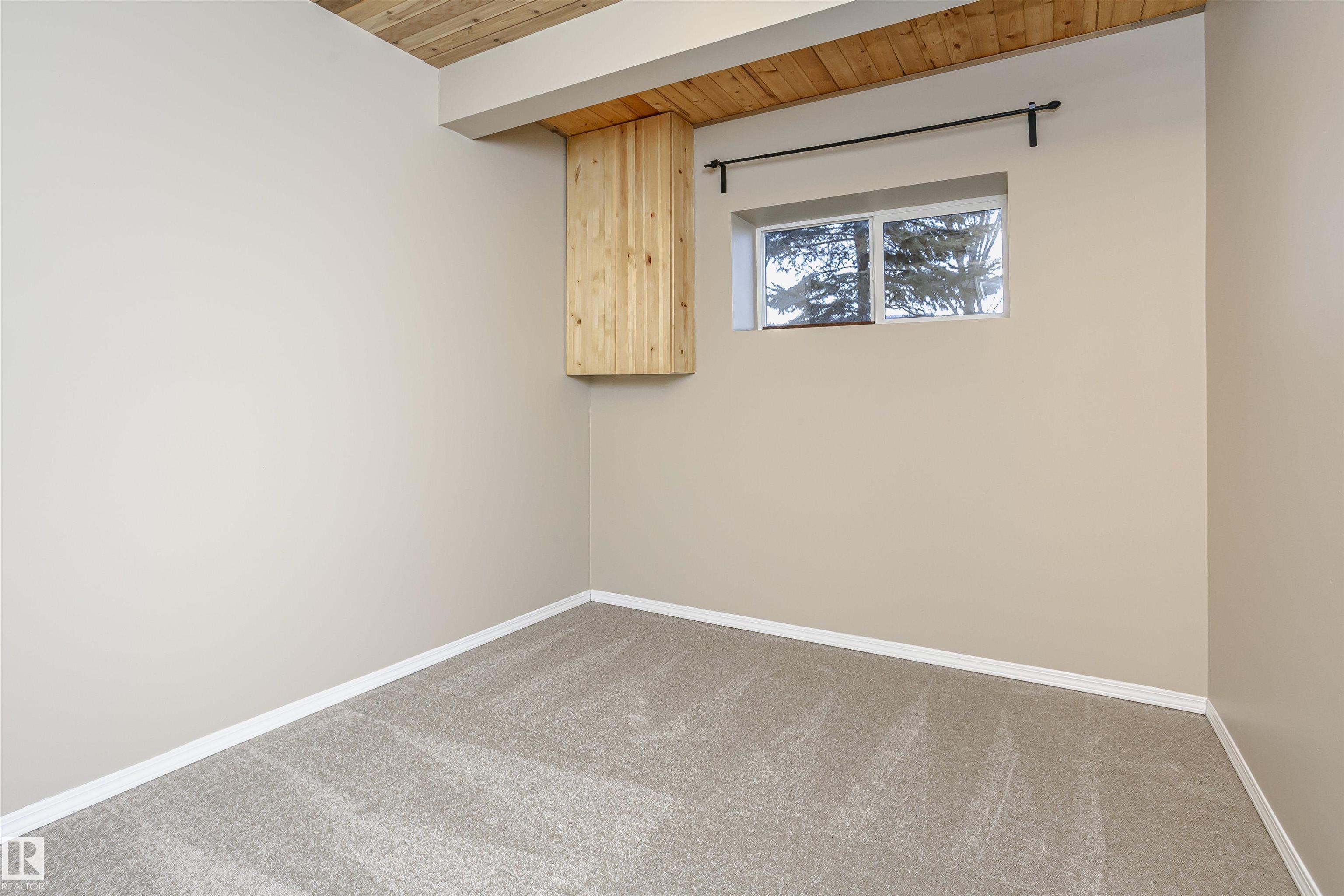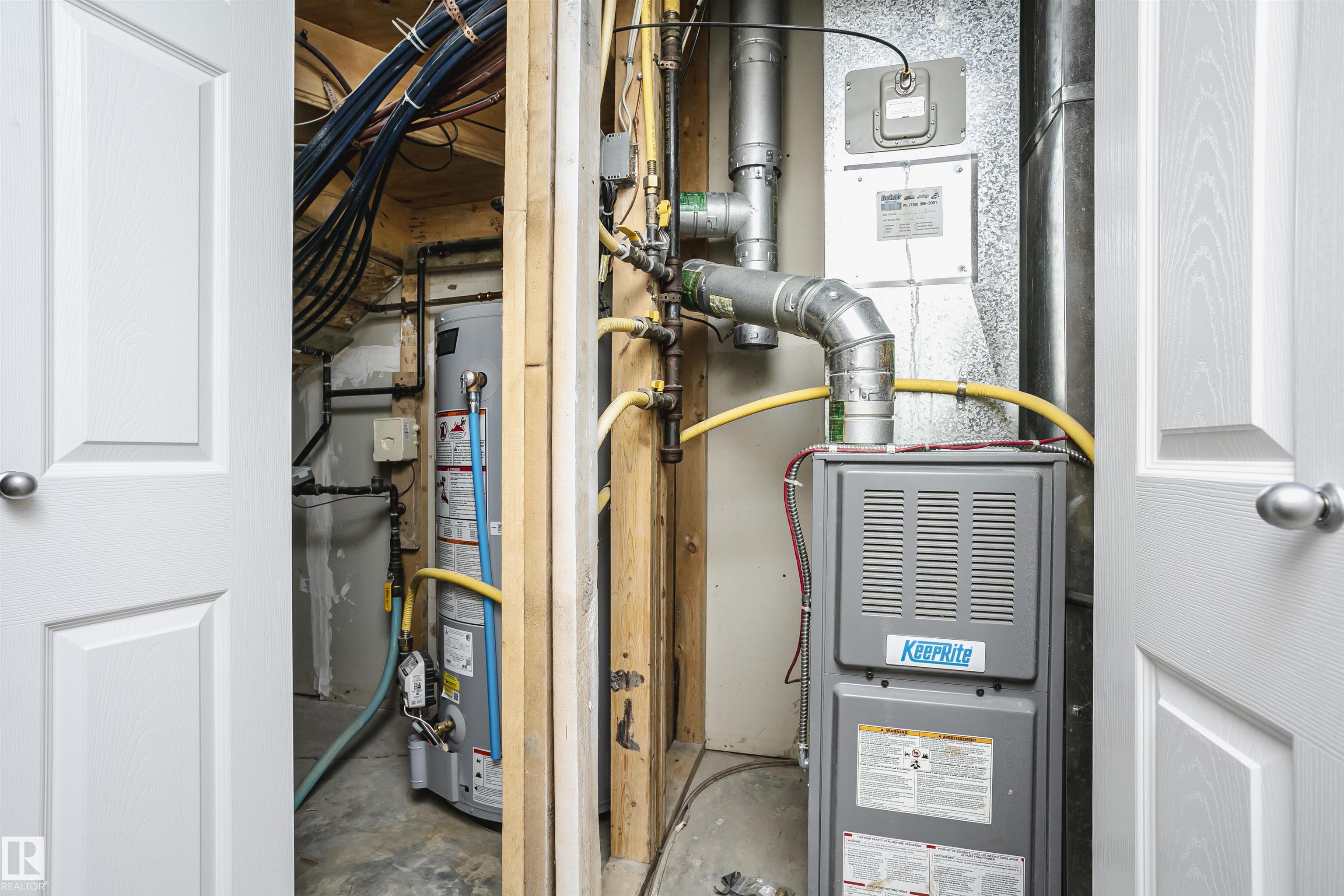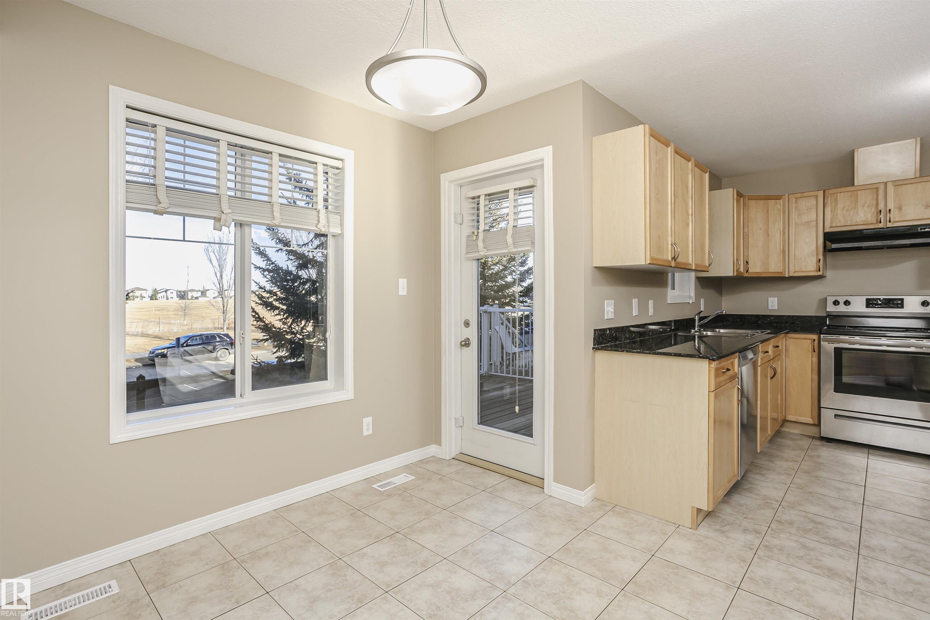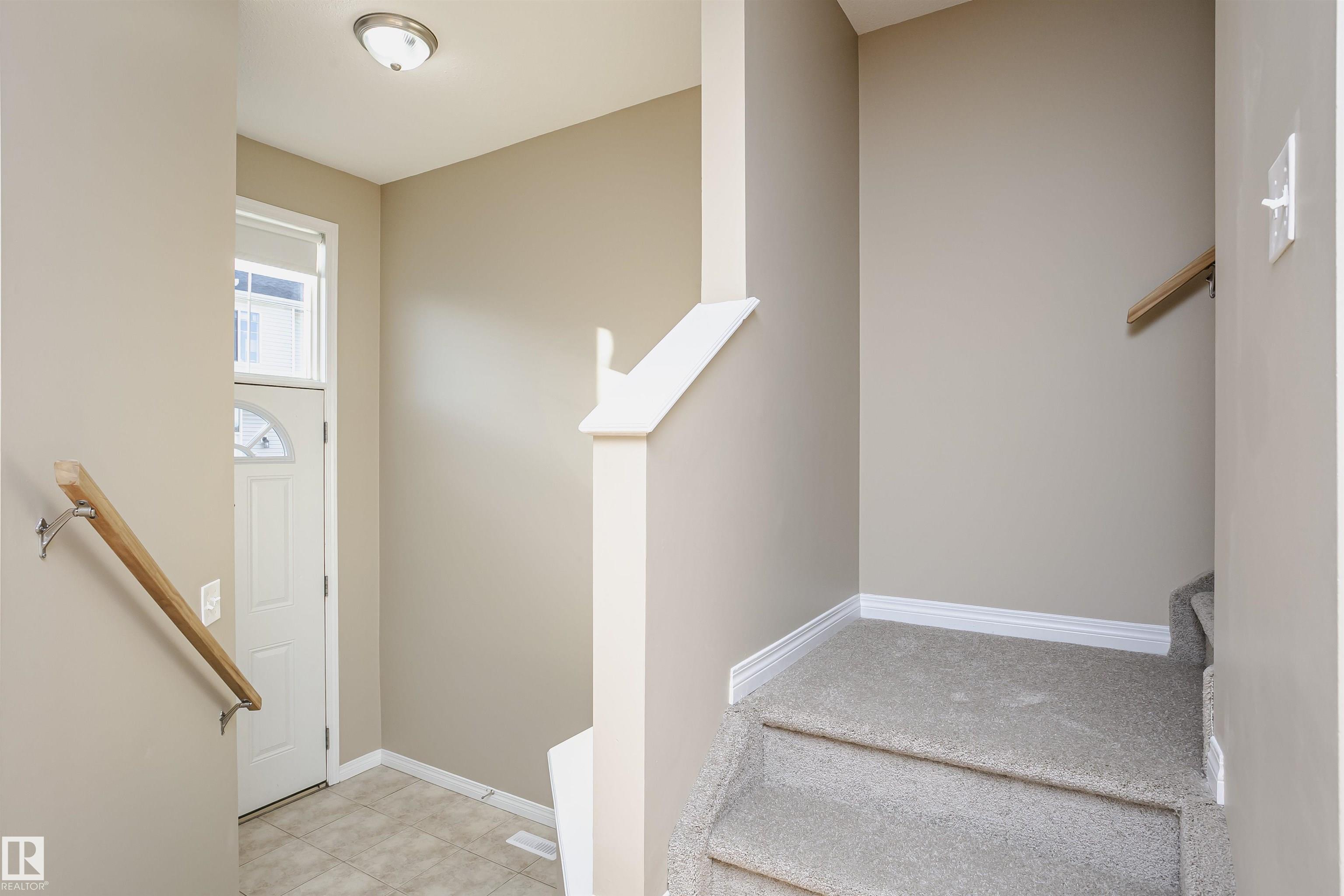 Don't miss this bright, updated 4-bed, 3-bath townhome just steps from Leduc Common and Harry Bienert Park! Your plants will love the sun filled south-facing living room, with freshly refinished hardwood floors and a cozy gas fireplace. The centrally located 2-piece bath on the main makes hosting a breeze. The kitchen features stainless steel appliances and ceramic tile flooring, with the dining area opening to a north-facing deck and treed green space - giving you plenty of privacy. Upstairs, the NORTH-FACING primary bedroom offers a walk-in closet and 3-piece ensuite with a roomy step-in shower, plus two more bedrooms and laundry. The lower level includes a fourth bedroom, storage, and access to your OVERSIZED TANDEM GARAGE with room for two vehicles plus a workshop! UPDATES INCLUDE: refinished hardwood, new carpet upstairs and in all bedrooms, new basement LVP, and fresh paint throughout. Move-in ready and just minutes to schools, parks, golf, shopping, the QE II, and EIA.