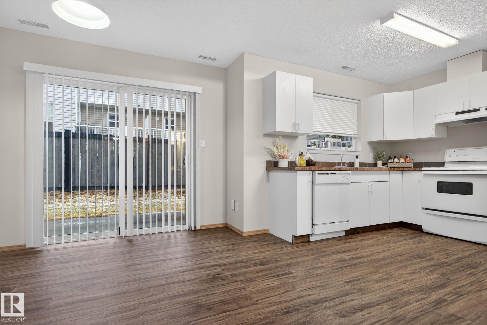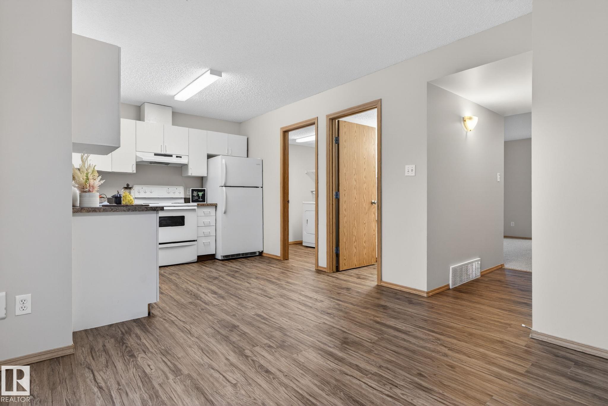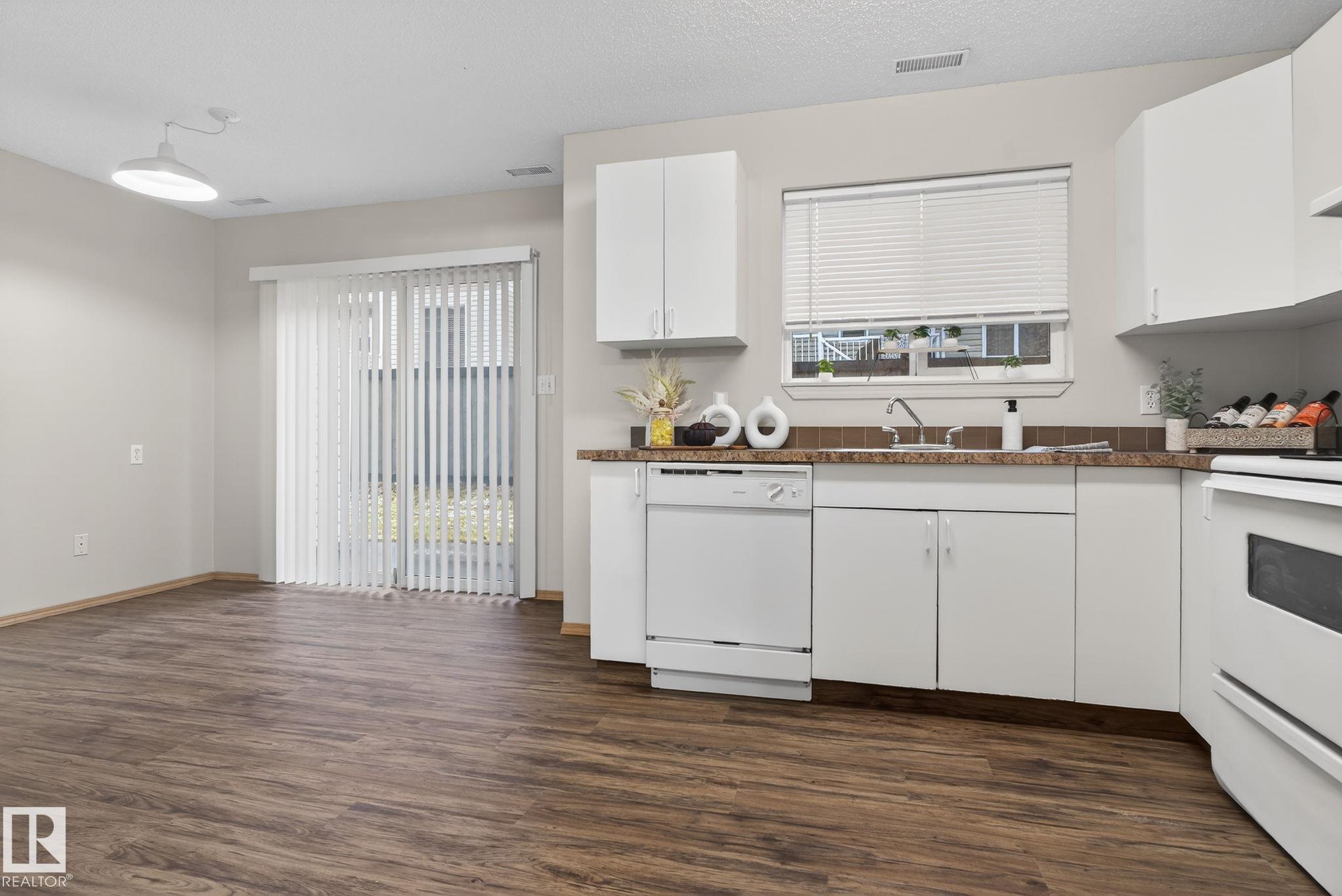 This freshly painted, charming 2-storey townhome offers a wonderful balance of space, comfort, and functionality. As you step inside, you'll be greeted by a spacious living area that invites you to relax, host, and make lasting memories. The bright white kitchen flows seamlessly into a large laundry room with bonus storage, and both areas, along with the bathrooms, feature new vinyl plank flooring for a clean, modern touch. Large patio doors fill the main floor with natural light and open onto your outdoor space. A convenient 2-piece bathroom completes this level. Upstairs, you'll find three generously sized bedrooms, each with ample closet space, including a primary bedroom with a walk-in closet--and a well-appointed 4-piece bathroom designed to meet the needs of a busy household. Nestled in a welcoming, family-friendly complex, this home places you close to schools, parks, shopping, and transit.