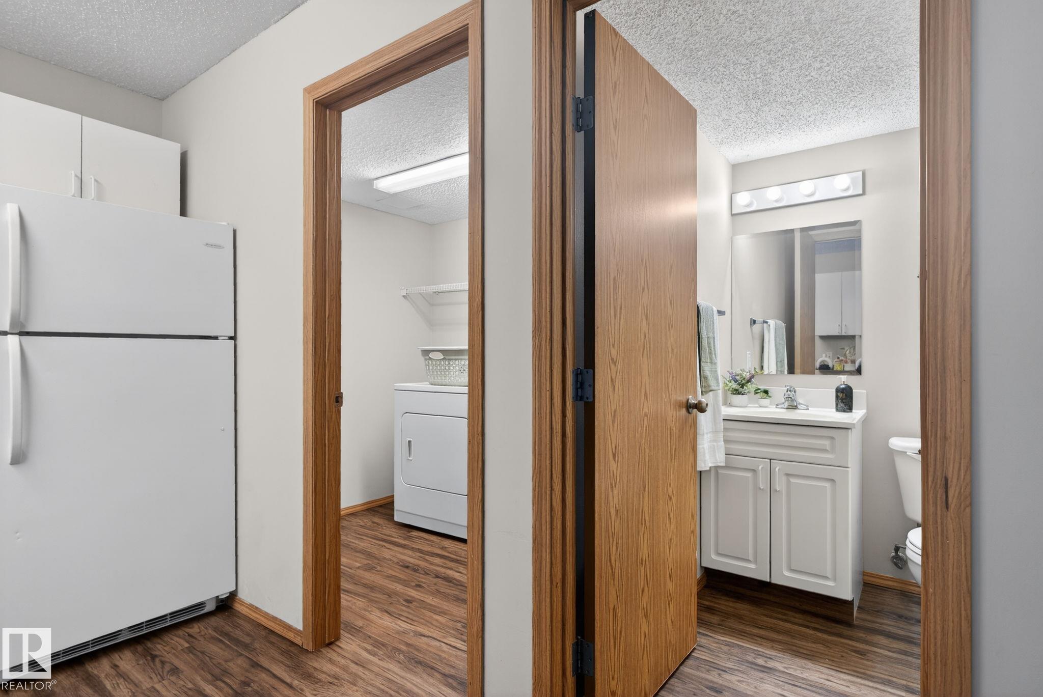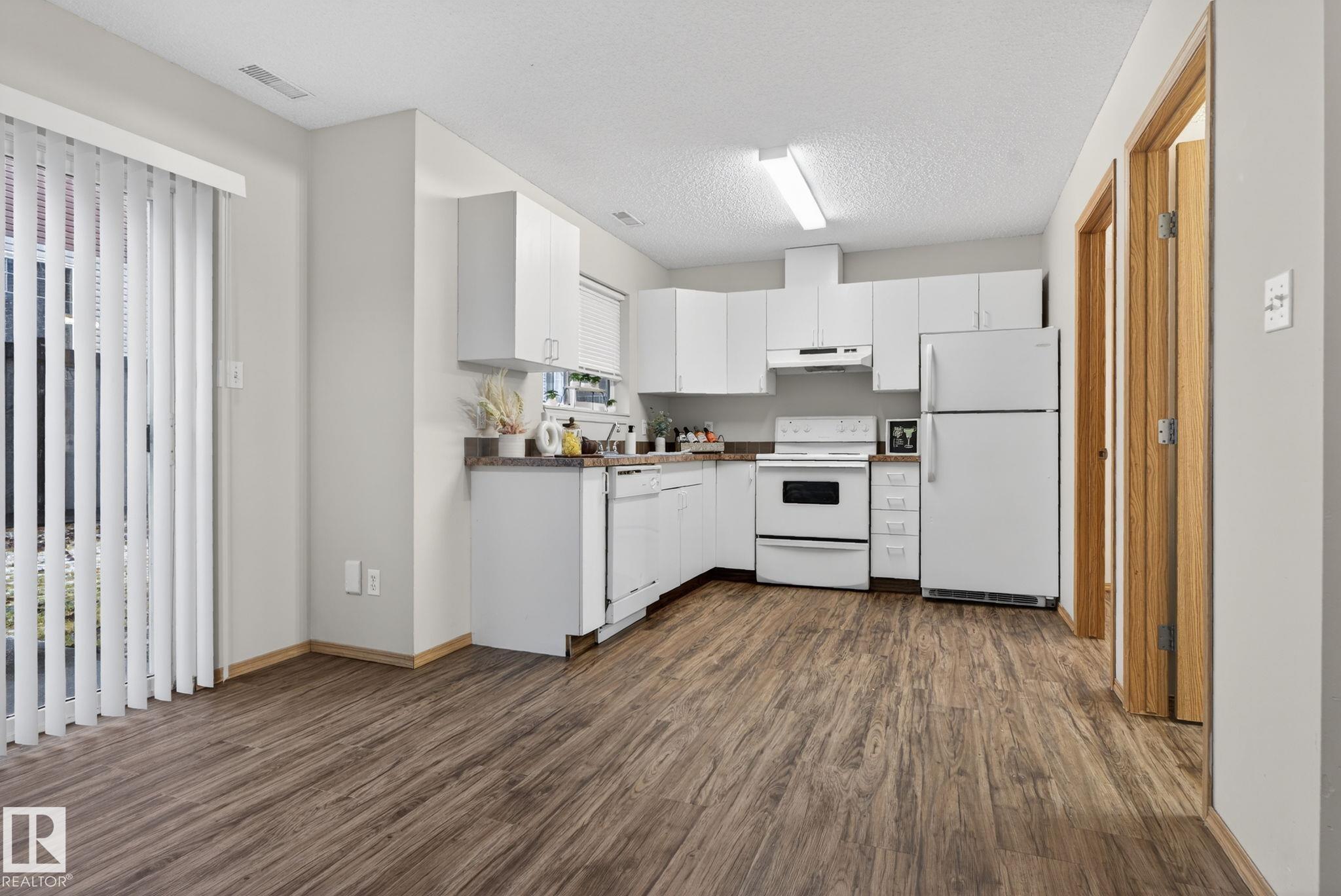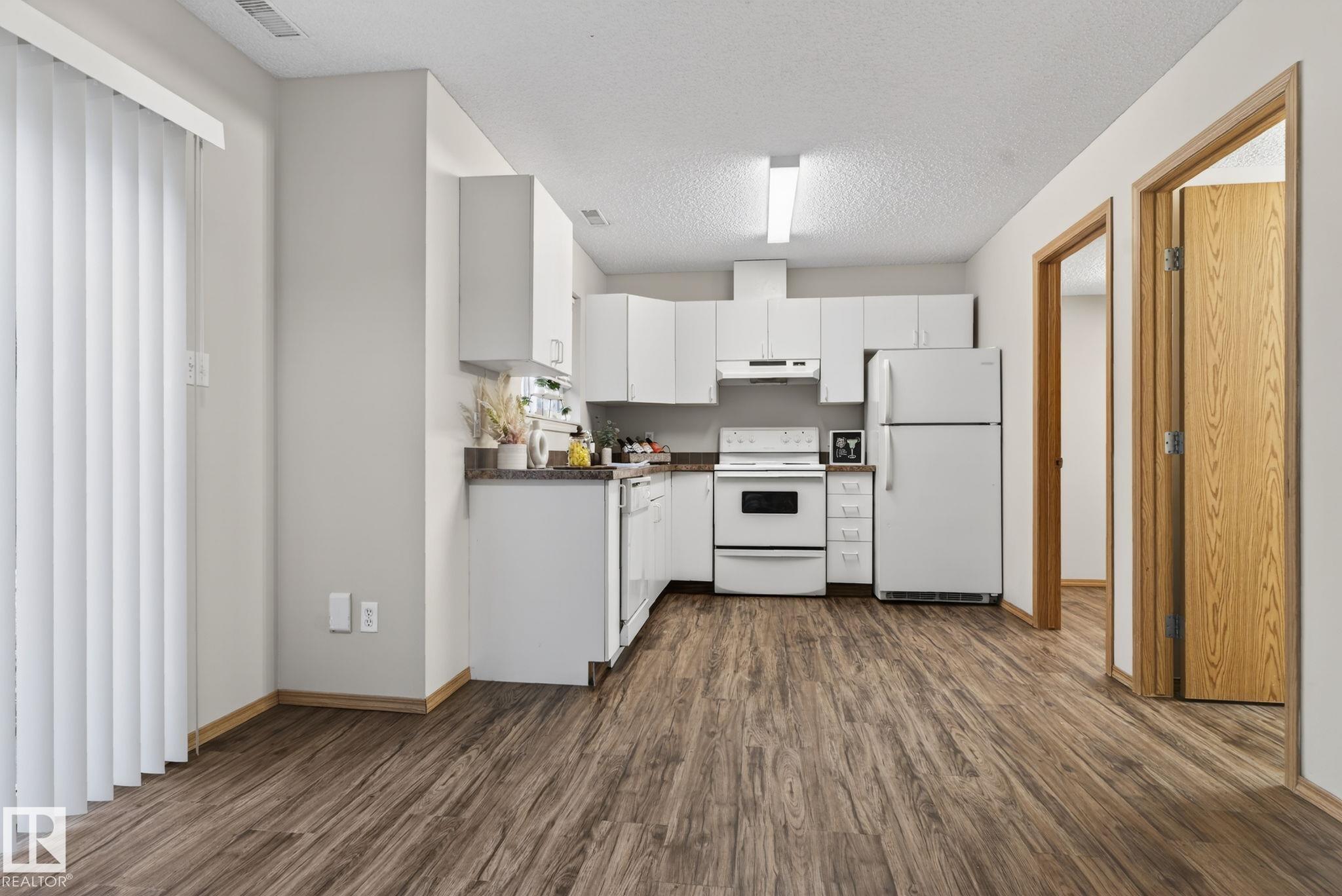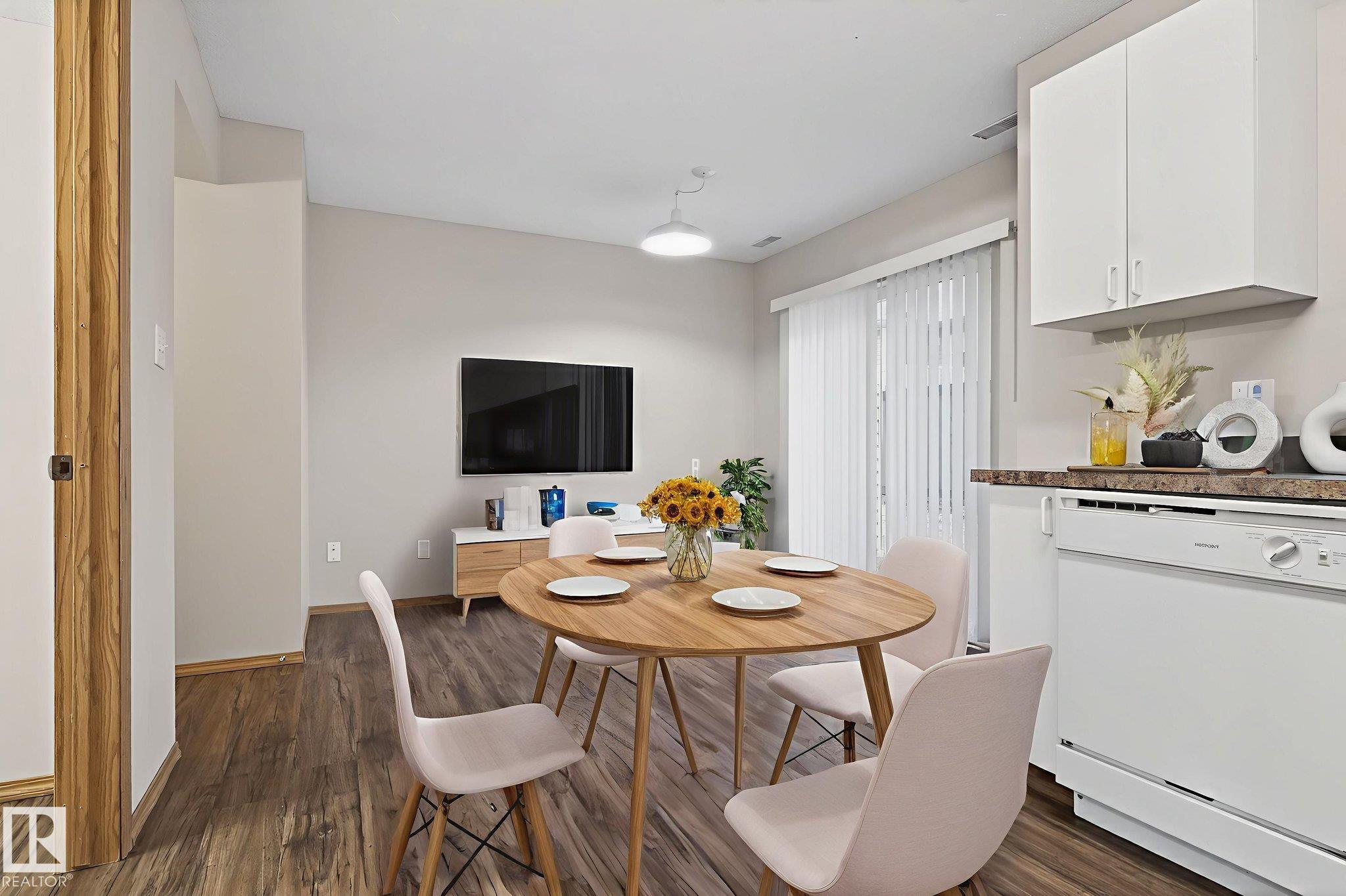 This freshly painted, charming 2-storey townhome offers a wonderful balance of space, comfort, and functionality. As you step inside, you'll be greeted by a spacious living area that invites you to relax, host, and make lasting memories. The bright white kitchen flows seamlessly into a large laundry room with bonus storage, and both areas, along with the bathrooms, feature new vinyl plank flooring for a clean, modern touch. Large patio doors fill the main floor with natural light and open onto your outdoor space. A convenient 2-piece bathroom completes this level. Upstairs, you'll find three generously sized bedrooms, each with ample closet space, including a primary bedroom with a walk-in closet--and a well-appointed 4-piece bathroom designed to meet the needs of a busy household. Nestled in a welcoming, family-friendly complex, this home places you close to schools, parks, shopping, and transit.