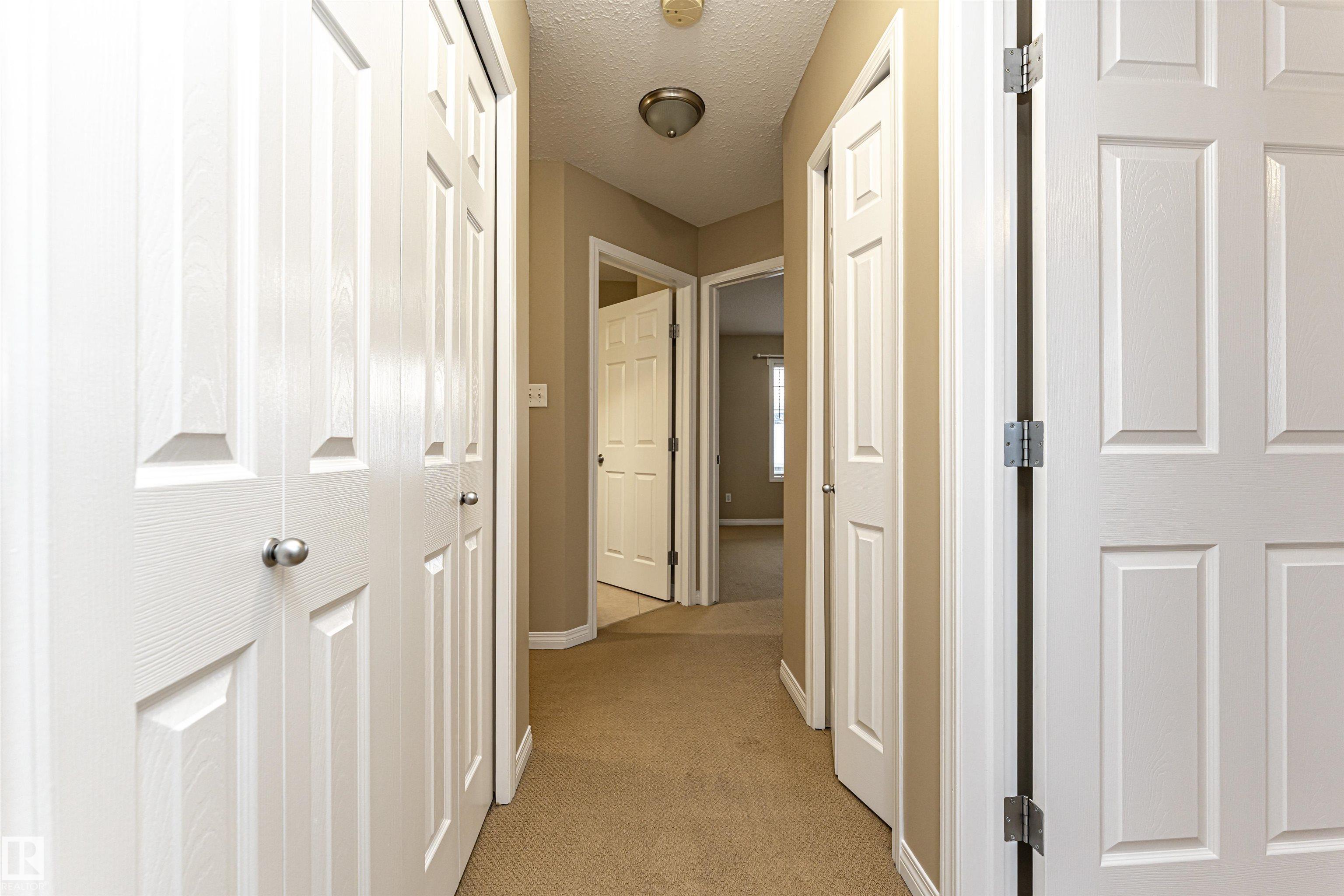 This beautifully maintained and updated 4-bed, 3-bath townhome is just steps from Leduc Common and Harry Bienert Park! Featuring a bright and spacious living room with hardwood flooring and a cozy gas fireplace with a 2-piece powder room. The kitchen features black and stainless steel appliances and ceramic tile flooring. Past the dining room find your east-facing deck where you can enjoy the sunrise with your morning coffee! Upstairs, the primary bedroom offers a walk-in closet with organizers and 4-piece ensuite with a full sized tub! On the upper you will find two more bedrooms and a conveniently located laundry space. The lower level includes a fourth bedroom, storage, and access to your OVERSIZED TANDEM GARAGE with room for two vehicles plus a workshop! Freshly painted throughout and move-in ready! Only minutes to schools, parks, golf, shopping, the QE II, and EIA. This home has everything!