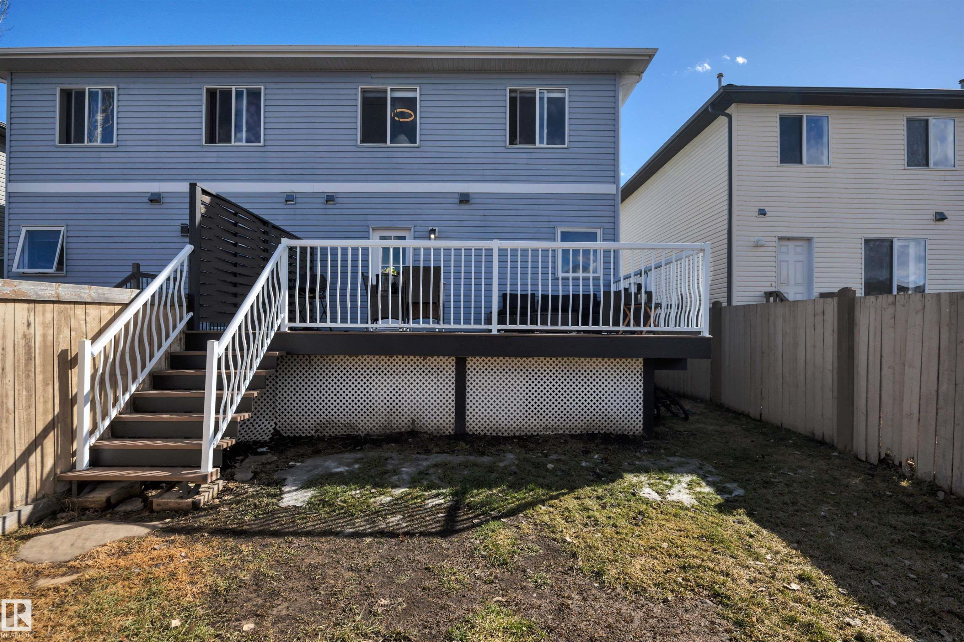 Finally, a place to call your own! NO CONDO FEES! This affordable, move-in-ready 3 bed, 2.5 bath half duplex is perfect for first-time buyers ready to step into homeownership. Painted in a modern neutral palette, it feels bright and welcoming from the moment you arrive. Inside, the sun-filled living room offers a cozy space to relax or host, while vinyl plank, plush carpet, updated baseboards, updated lighting and newer appliances mean no immediate work or expense. The functional kitchen provides ample prep space and flows into a spacious dining area--perfect for everyday living or entertaining. A convenient half bath sits off the back entry. Outside, enjoy a large deck for summer BBQs, a fully fenced yard for kids or pets, and off-street parking with room to build a future garage. Upstairs features a private primary suite with ensuite, plus two additional bedrooms and a full bath. The unfinished basement offers room to grow and build equity. Located on a quiet street near parks, schools, and amenities.