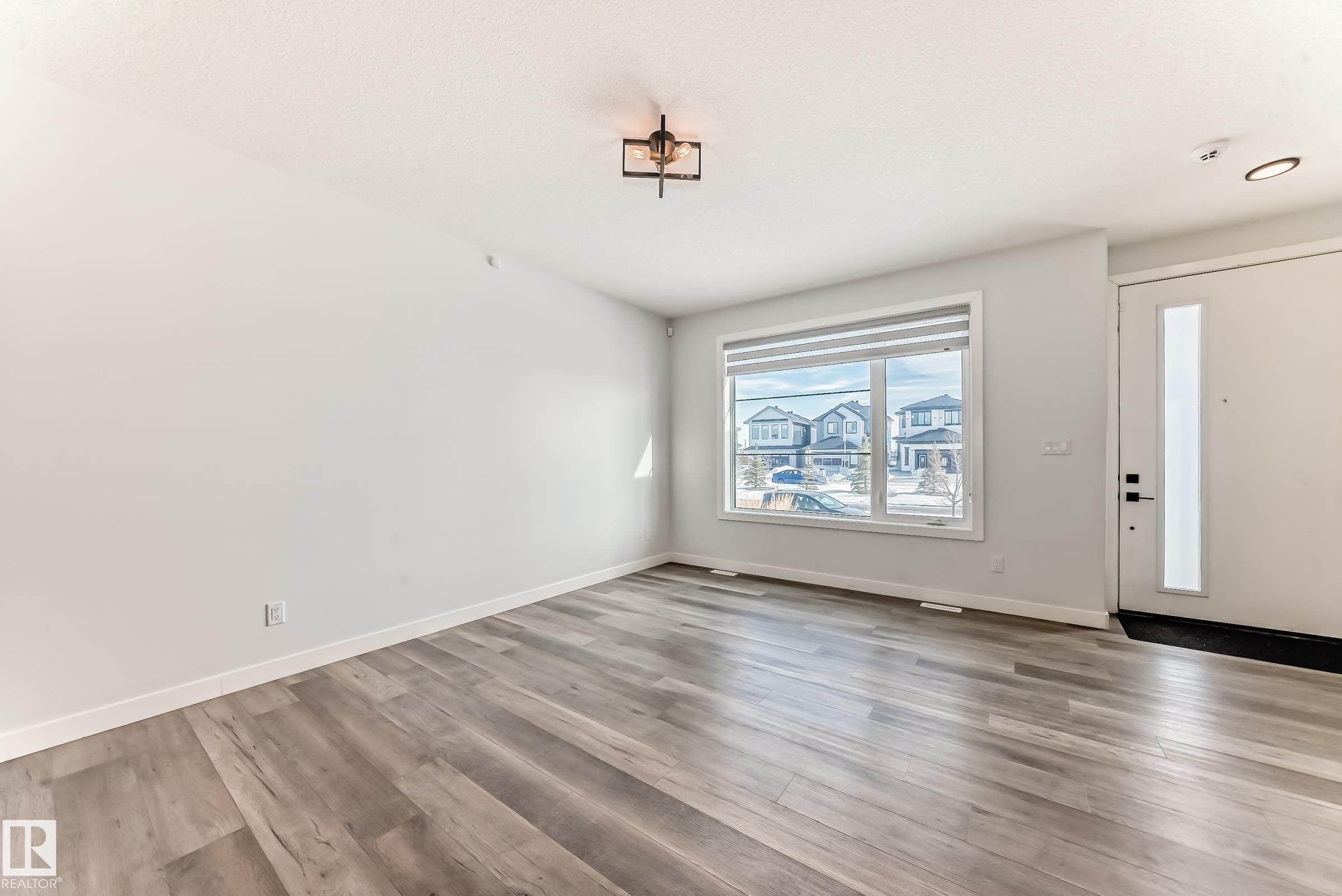 This well-designed 4-bedroom, 3 full bathroom home combines modern style with practical living. The spacious open-concept main floor features a large living room with 9-foot ceilings and large windows that bring in plenty of natural light. The kitchen offers generous counter space and a convenient corner pantry, ideal for everyday living and entertaining. A main-floor bedroom and full bathroom provide excellent flexibility, perfect for guests, extended family, or use as a home office. Upstairs features three bedrooms, including the primary suite with a vaulted ceiling, walk-in closet, and a private 3-piece ensuite. Two additional good-sized bedrooms, a full 4-piece bathroom, and the convenience of upstairs laundry complete the upper level. The unfinished basement includes a separate side entrance and offers great potential for a future in-law suite or additional living space. A thoughtfully designed open-concept home that is move-in ready and offers strong future potential.