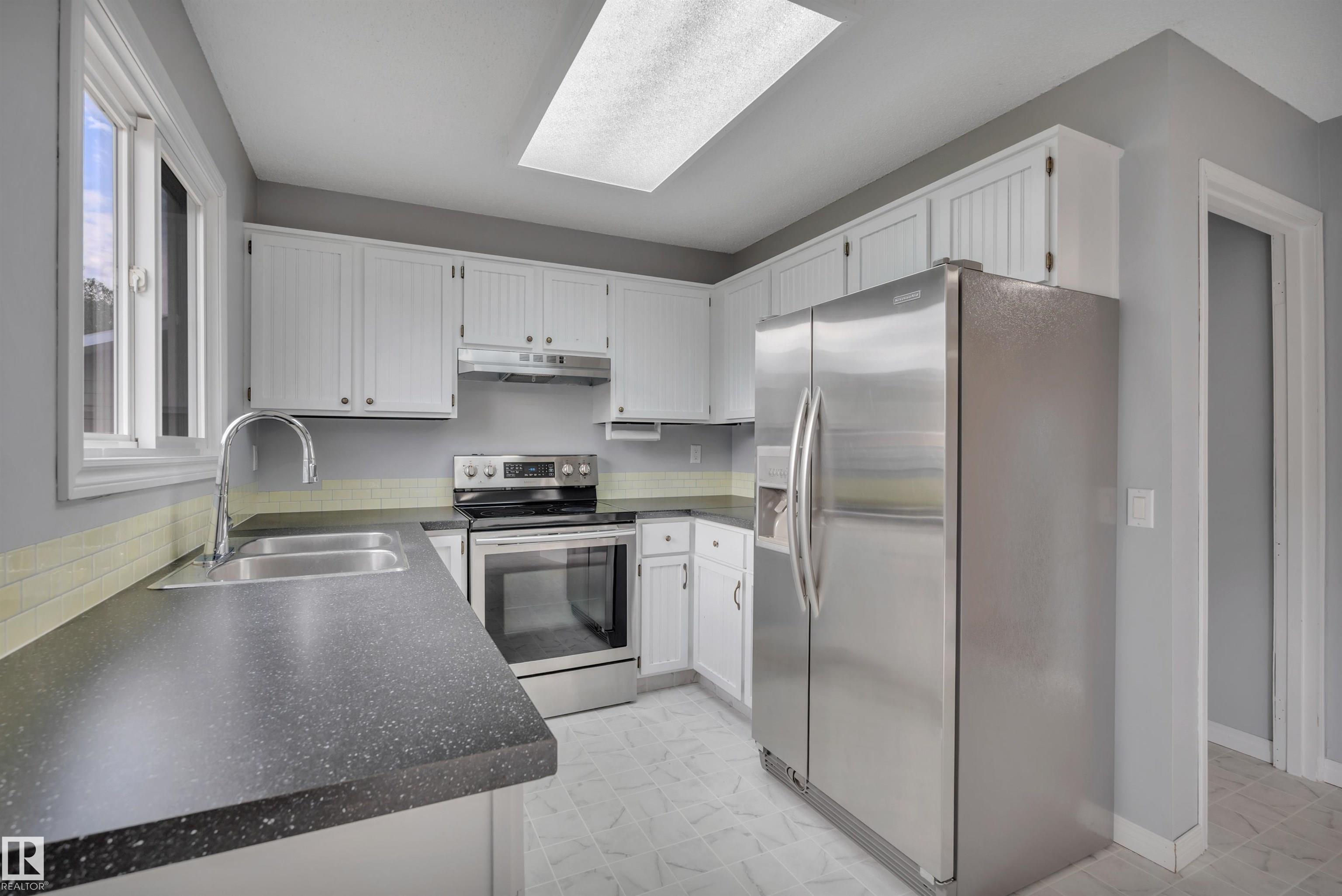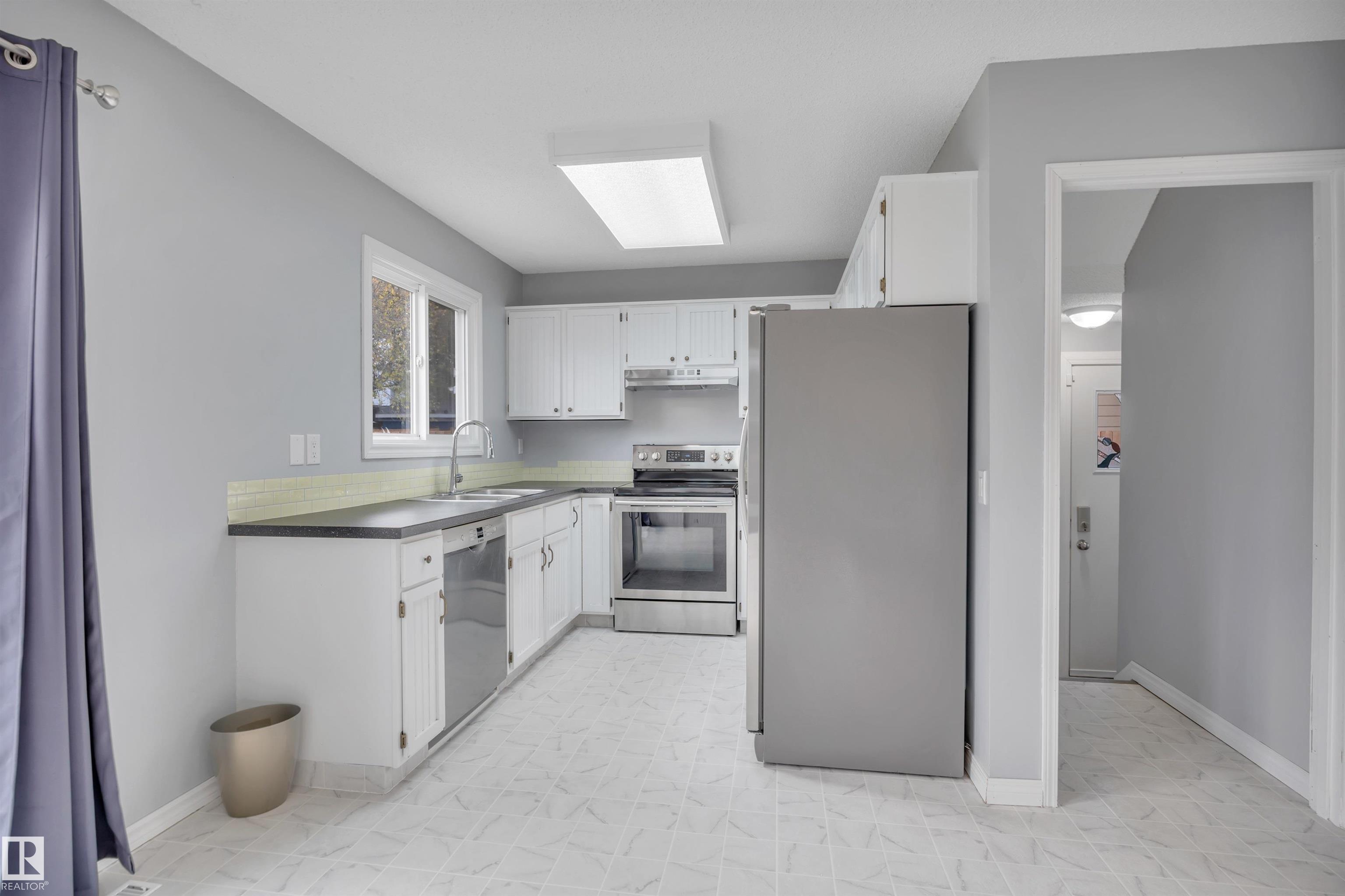 PERFECT STARTER HOME! FINISHED BASEMENT! RV PARKING! IMMEDIATE POSSESSION! Searching for an affordable move in ready home without condo fees? This 1117 sq ft 3 bed, 1.5 bath duplex has several upgrades & cute as a button! Feat: A/C, vinyl windows, newer carpet & laminate flooring, shingles (2020), vinyl siding, asphalt driveway, fully fenced & landscaped, high efficient furnace, & more! Large living room w/ adjacent 2 pce bath creates the ideal space for family visits. Eat in dining nook w/ built in bench seating, U shaped kitchen w/ painted cabinets, laminate countertops, & stainless steel appliances for preparing dinner! Upstairs brings 3 bedrooms including the large primary bedroom & large closet, 4 pce bathroom & linen storage. Your basement is fully finished w/ carpet, updated paint, laundry, freezer & storage space. Outside is the perfect spot for the kids to play or dogs to roam, as its fully fenced w/ planter boxes & room to add a garden. Only steps the LRC & parks; a great option; shows well!