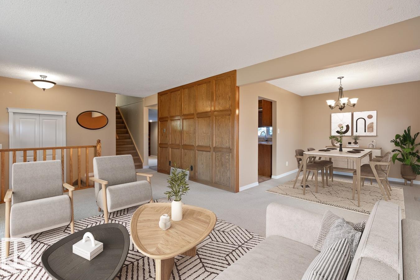 Spacious Family Home with Large Backyard, Backing onto Greenspace! 1,725 sqft 2 storey w/ unique layout, perfectly located in a family-friendly neighbourhood -- just steps from the rec center, ball diamonds, school, dog park, & more! Inside, you'll find a bright and welcoming layout w/ formal living & dining rooms, kitchen featuring plenty of cabinetry & gleaming granite countertops, & a spacious family room w/ wood-burning FP & access to the backyard. With 5 total bedrooms -- 3 upstairs, 1 main, & 1 lower level -- there's space for everyone. The recreation room downstairs offers plenty of room to play, plus there are huge storage areas for all your extras. Enjoy the convenience of main floor laundry & an attached double garage. Step outside to a large fenced yard backing onto a playground -- perfect for families & pets alike! Updates include newer vinyl windows, & shingles. Copper plumbing. A well-maintained, move-in ready home in a prime family location -- this one has it all!
