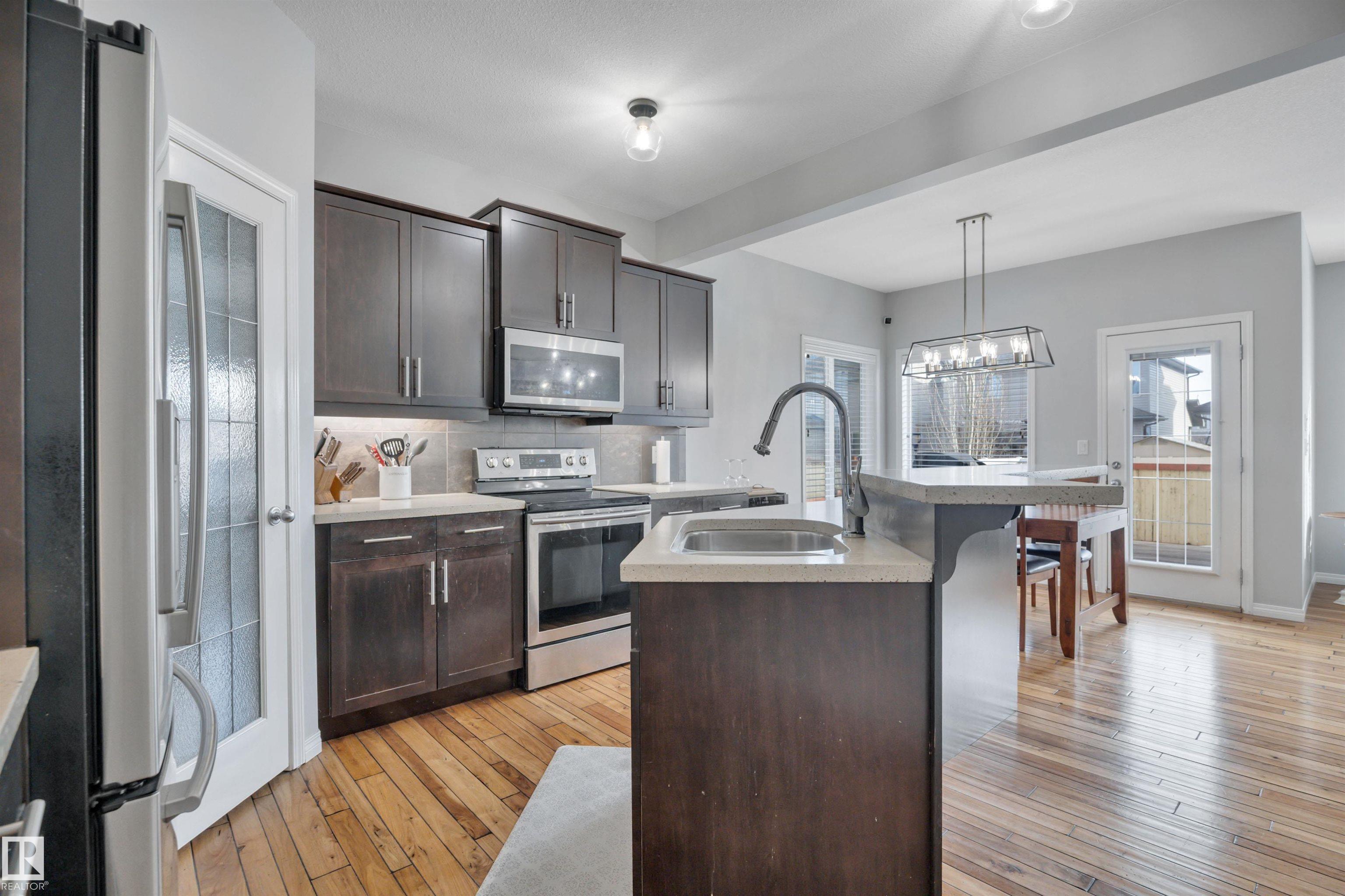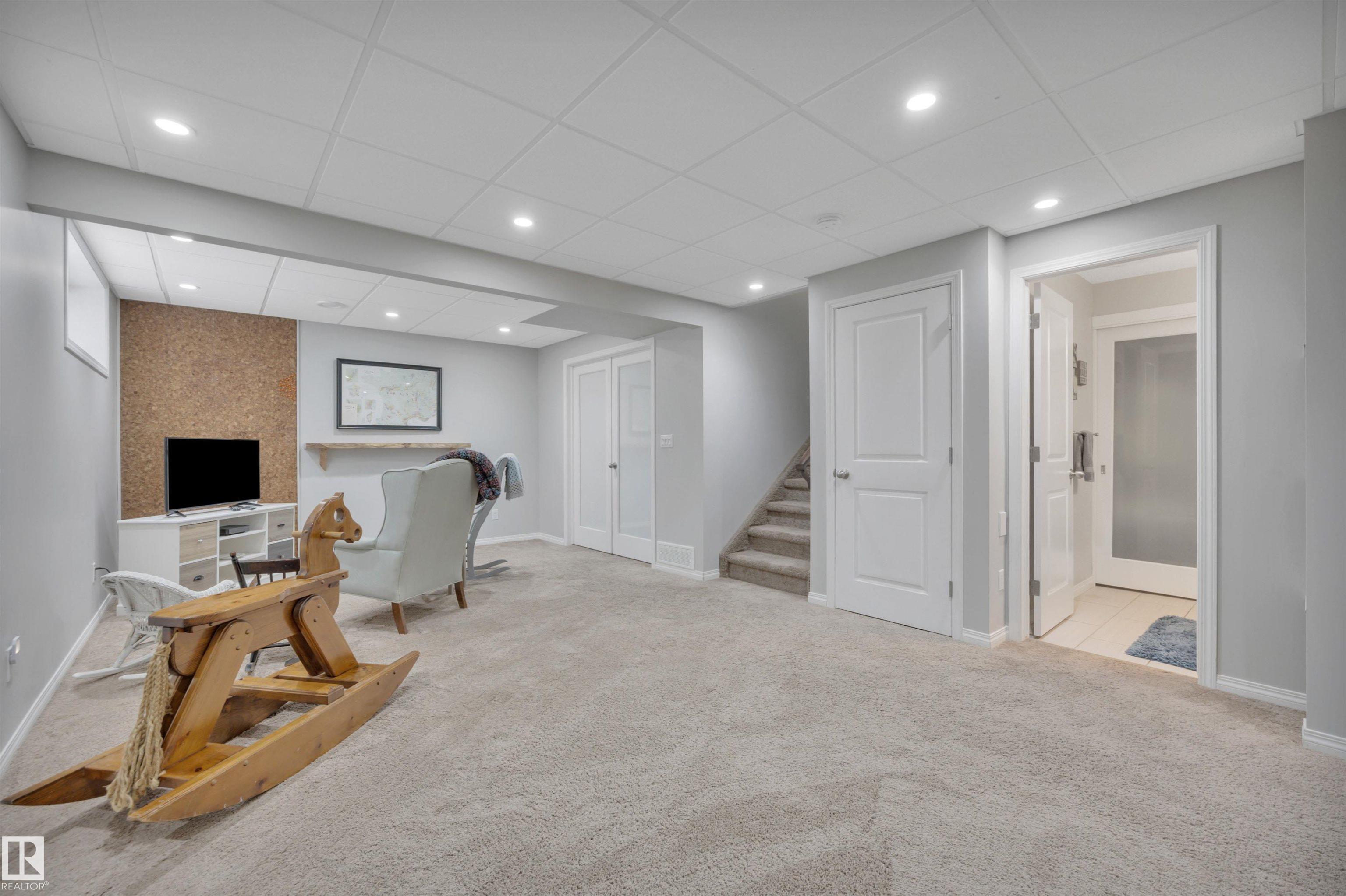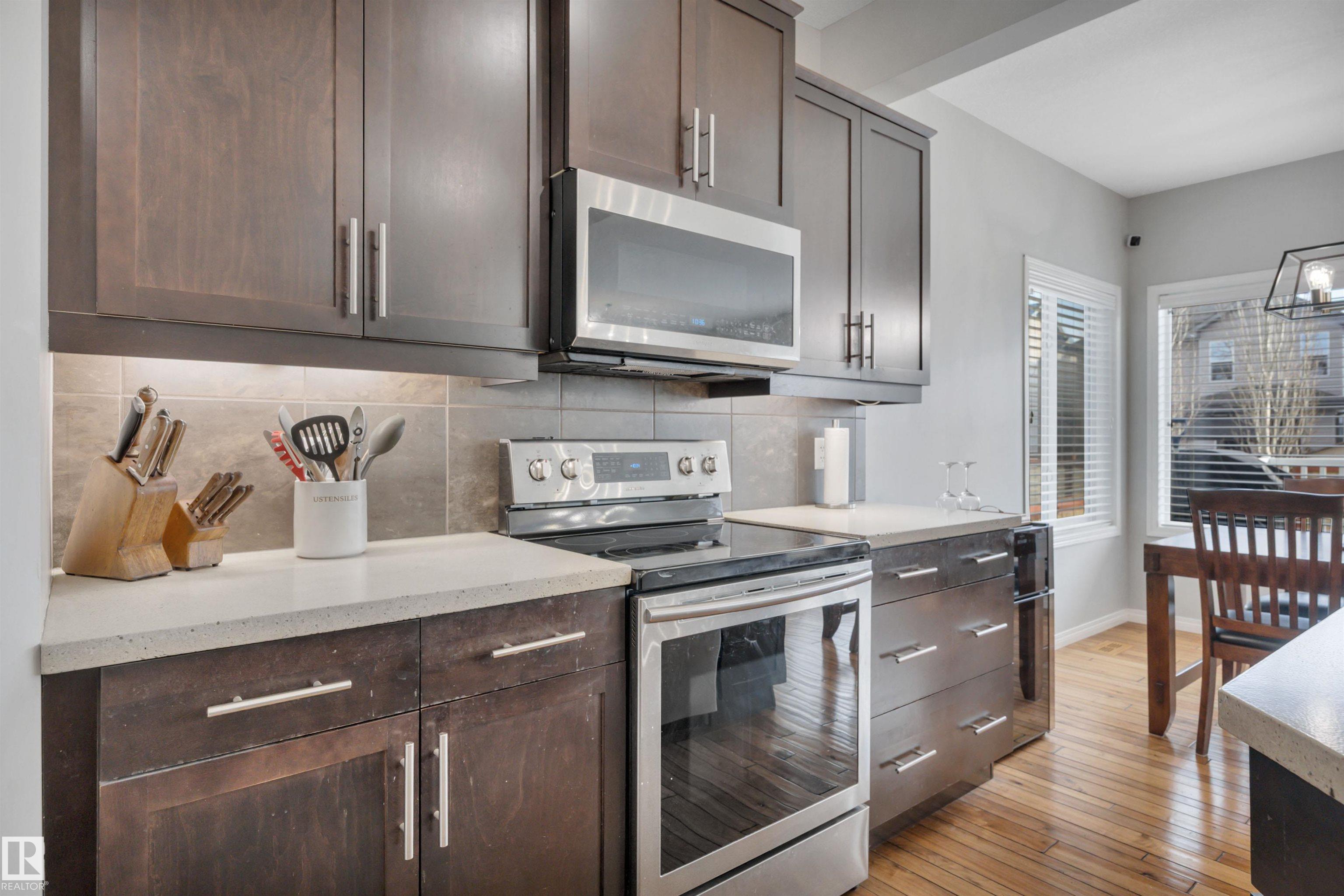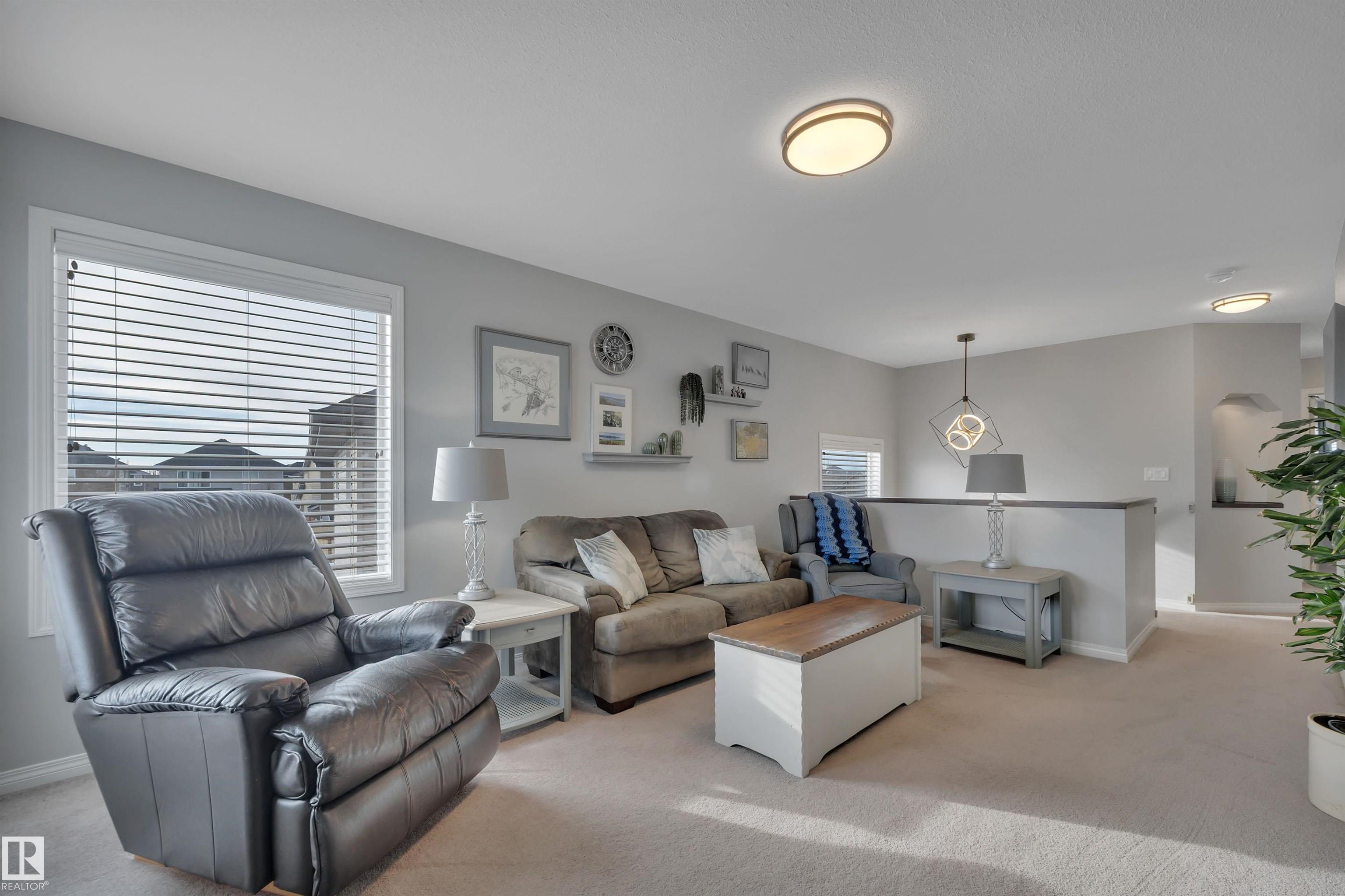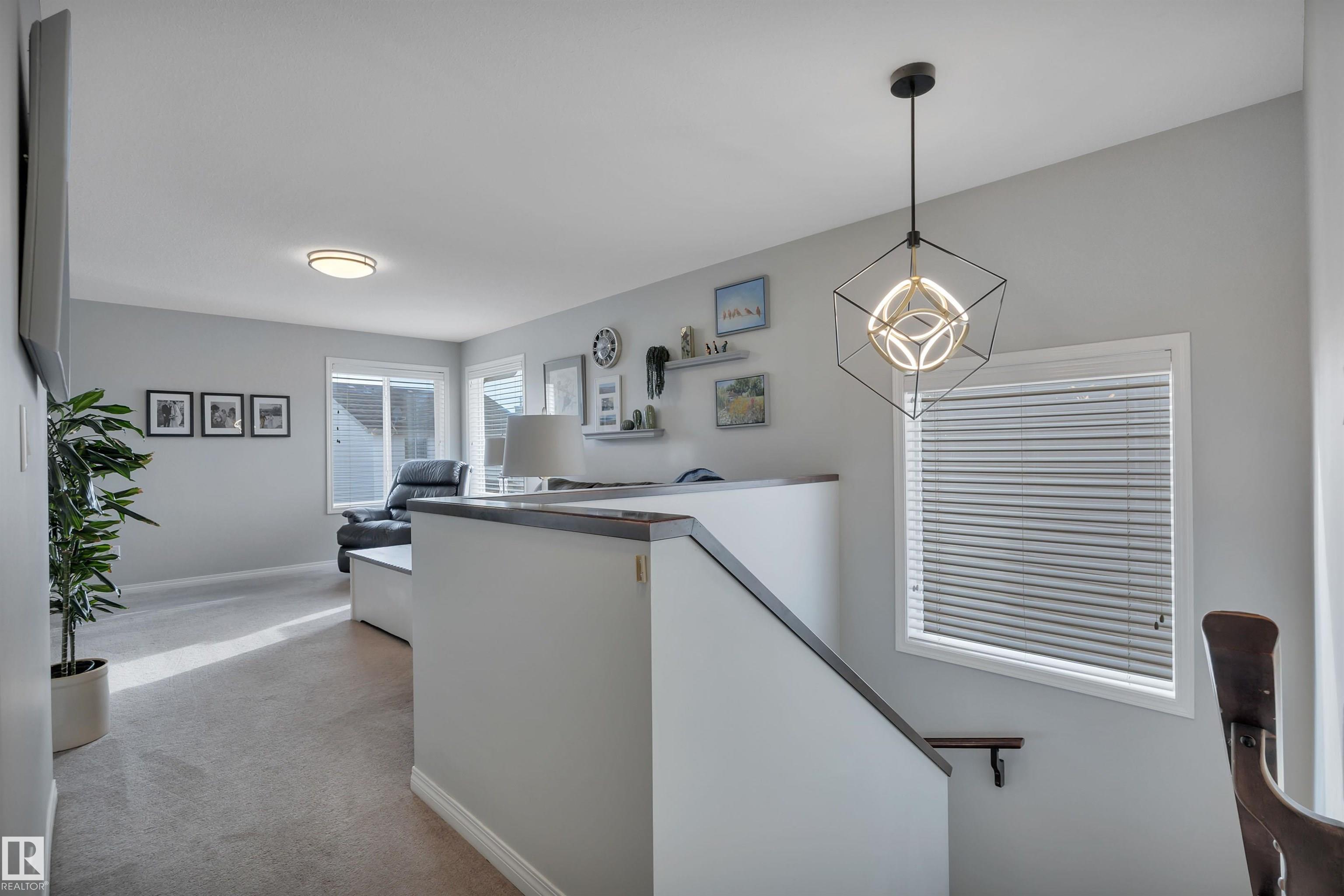 This Beautifully finished Southfork Home full of natural light is located in a quiet cul-de-sac near parks & walking trails. Lovely alcoves throughout to display your special mementos. Walnut hardwood flooring through the open concept living room, dining room & kitchen. Kitchen features concrete countertop & angled eating bar. Stainless steel appliances & cabinets with under cabinet lighting. Gas fireplace in the spacious living room Easy access to the large composite deck & backyard. Half bath & laundry room also on main floor. Head upstairs to the Bonus Room, Primary Suite with Ensuite, including 2 sinks, separate soaker tub & full size walk in shower with seat. Two more bedrooms & a full bathroom complete the upstairs. Lower level has nicely finished rec room, storage & another half bathroom! Frosted doors lead to the 4th bedroom or office. Oversized Garage is heated & features built-in work bench & storage loft.