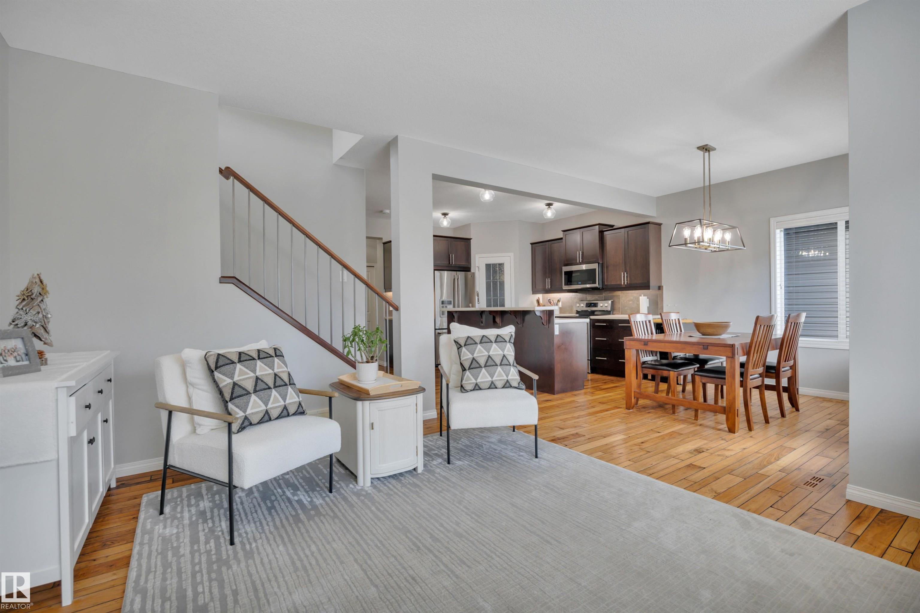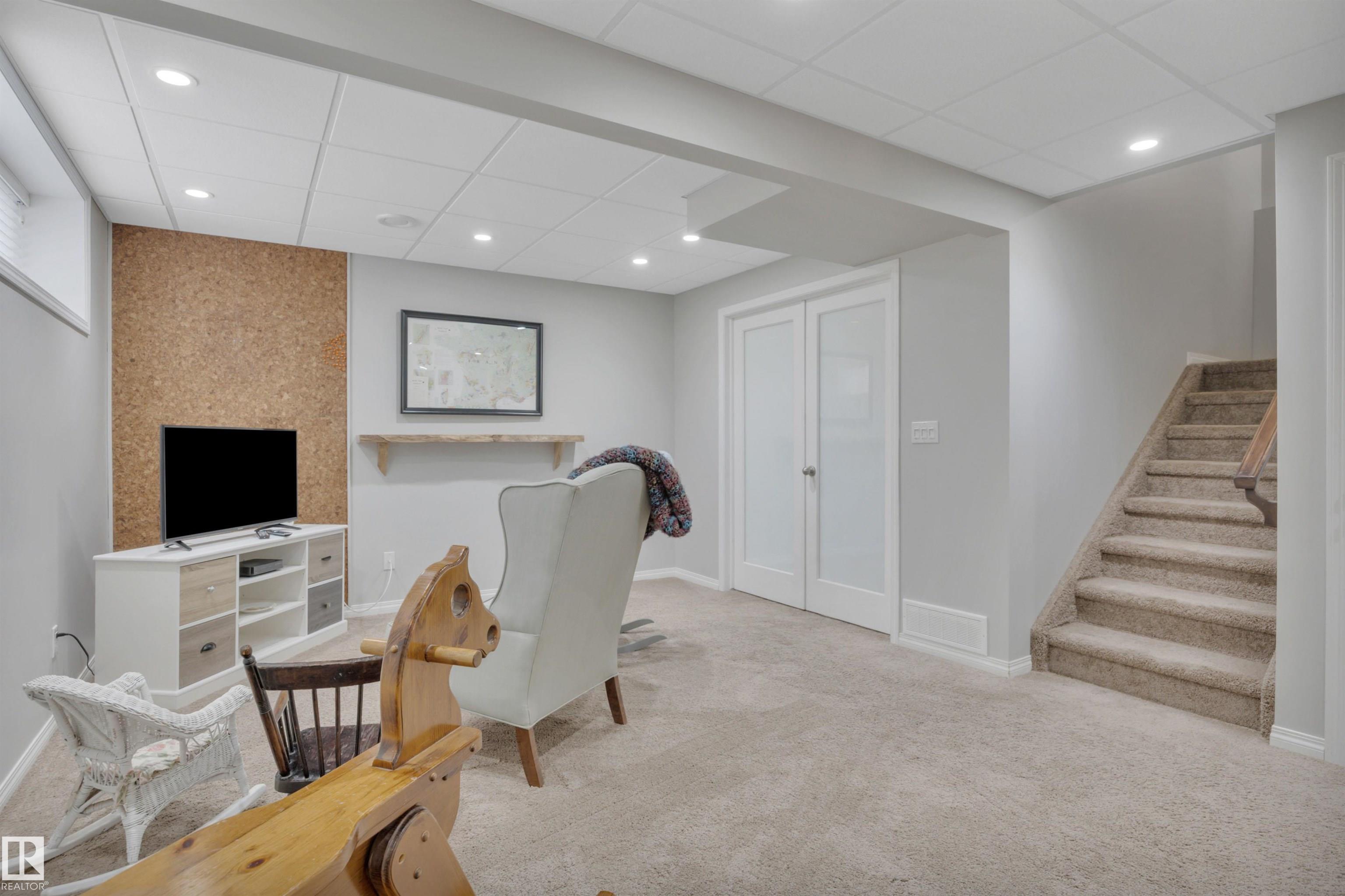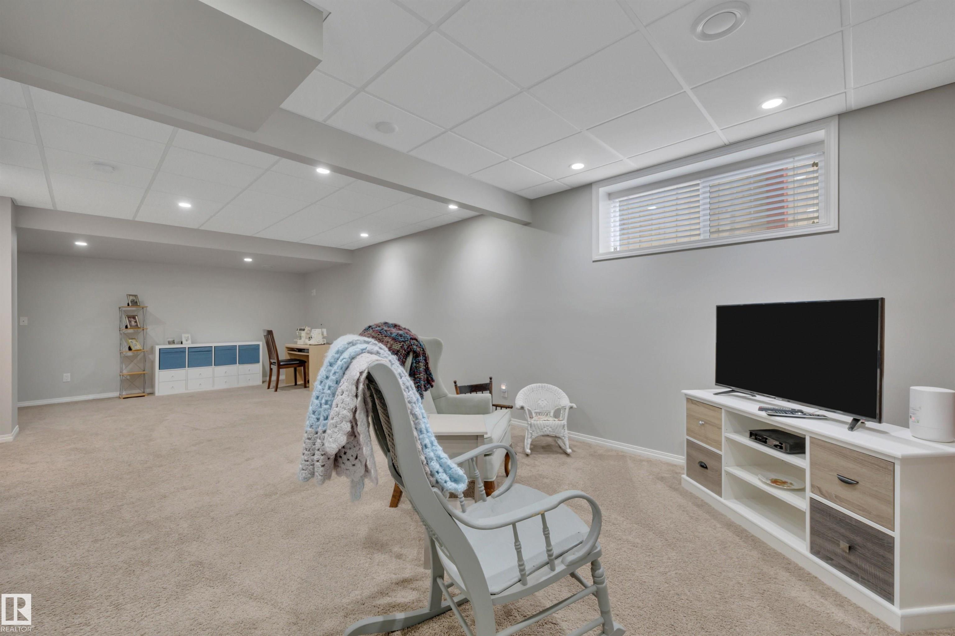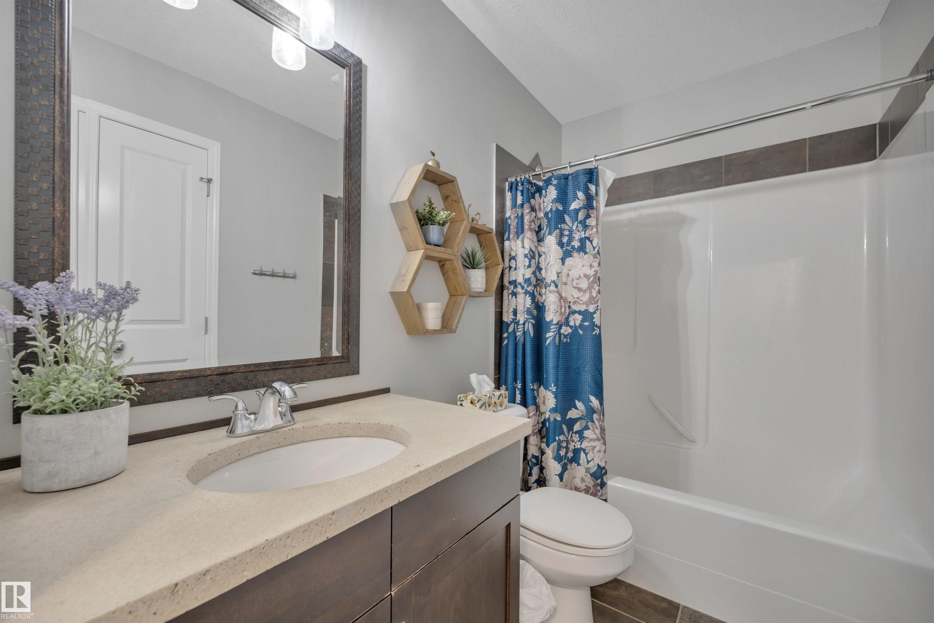 This Beautifully finished Southfork Home full of natural light is located in a quiet cul-de-sac near parks & walking trails. Lovely alcoves throughout to display your special mementos. Walnut hardwood flooring through the open concept living room, dining room & kitchen. Kitchen features concrete countertop & angled eating bar. Stainless steel appliances & cabinets with under cabinet lighting. Gas fireplace in the spacious living room Easy access to the large composite deck & backyard. Half bath & laundry room also on main floor. Head upstairs to the Bonus Room, Primary Suite with Ensuite, including 2 sinks, separate soaker tub & full size walk in shower with seat. Two more bedrooms & a full bathroom complete the upstairs. Lower level has nicely finished rec room, storage & another half bathroom! Frosted doors lead to the 4th bedroom or office. Oversized Garage is heated & features built-in work bench & storage loft.