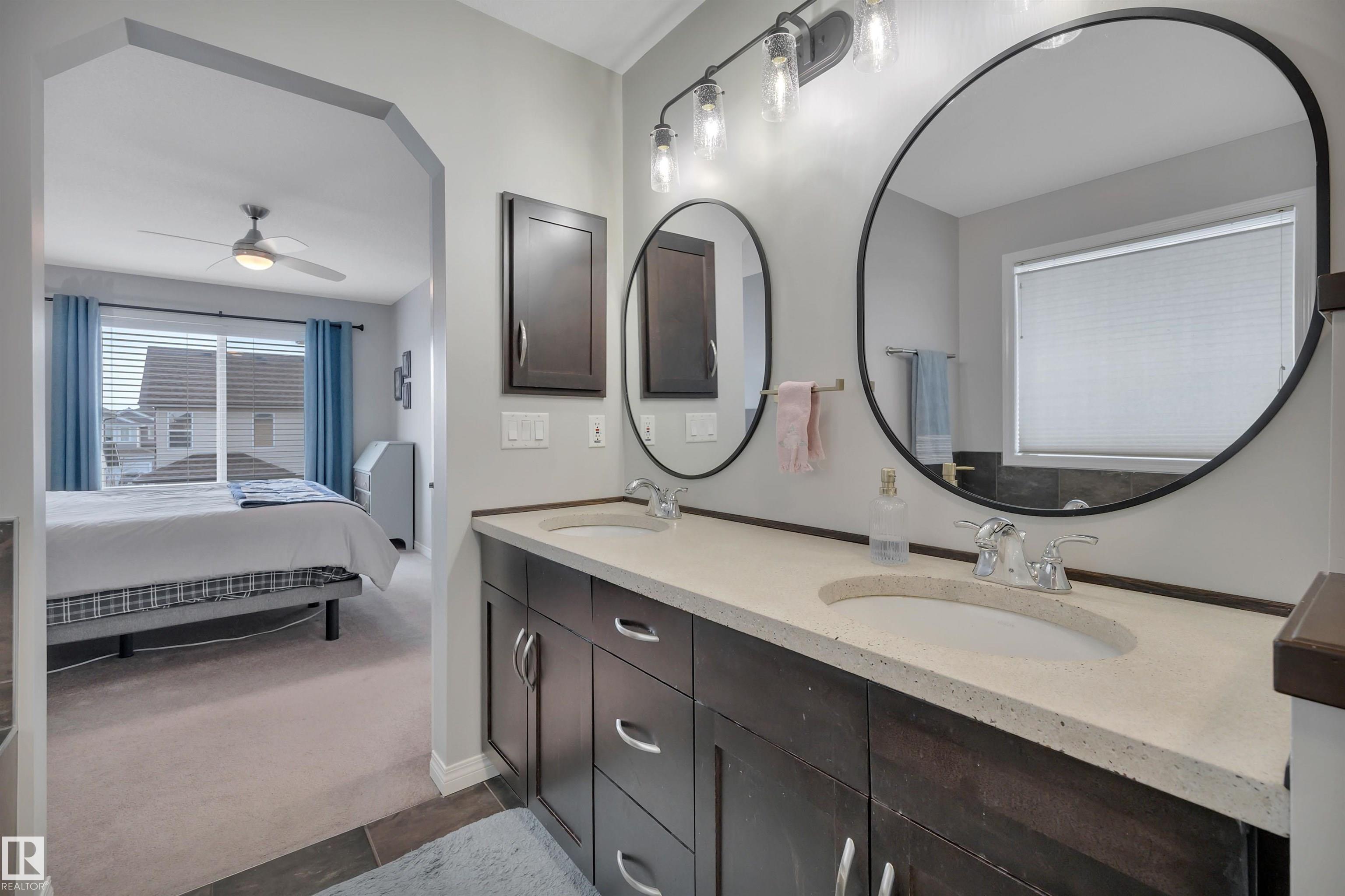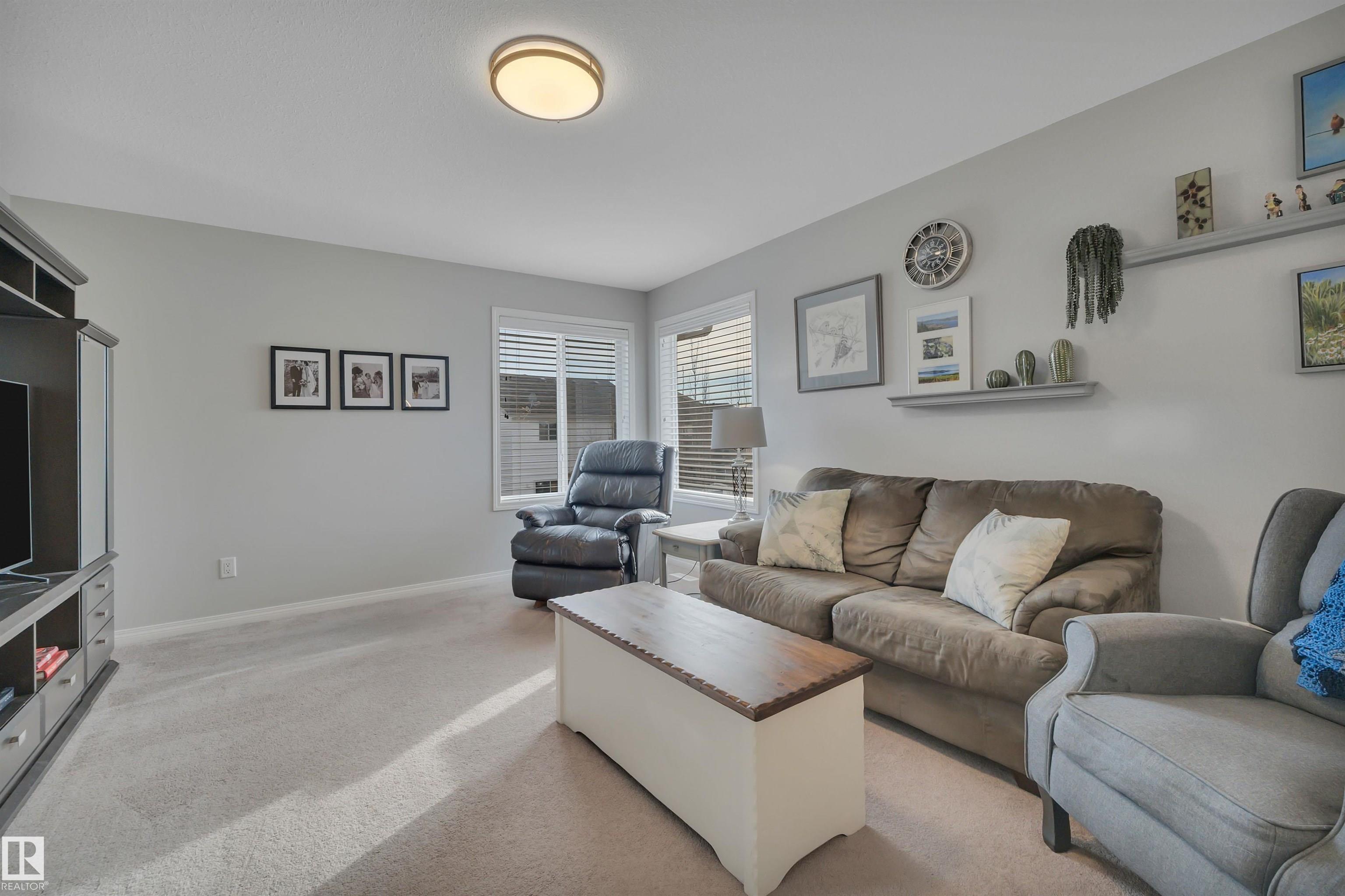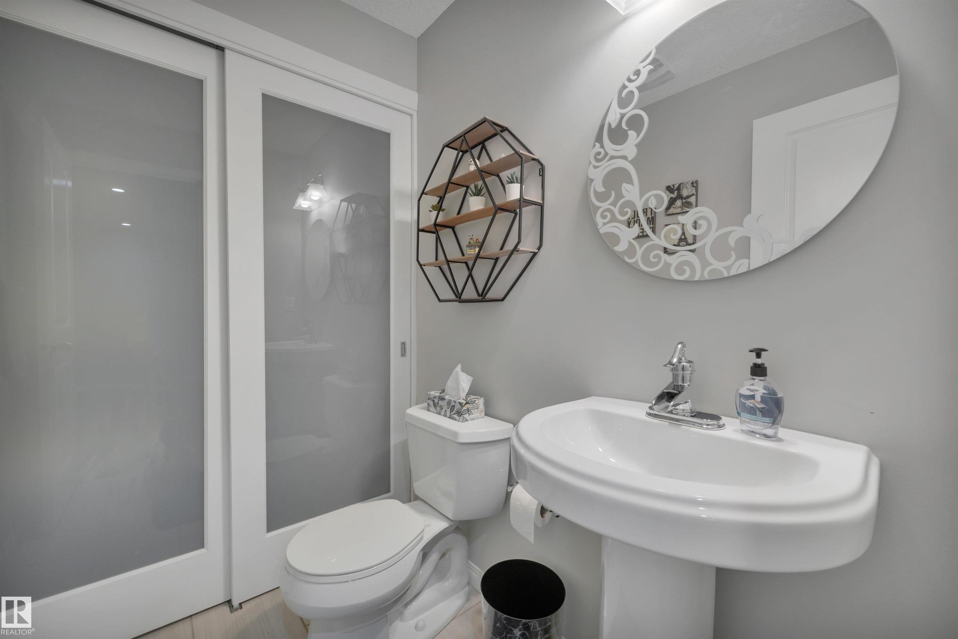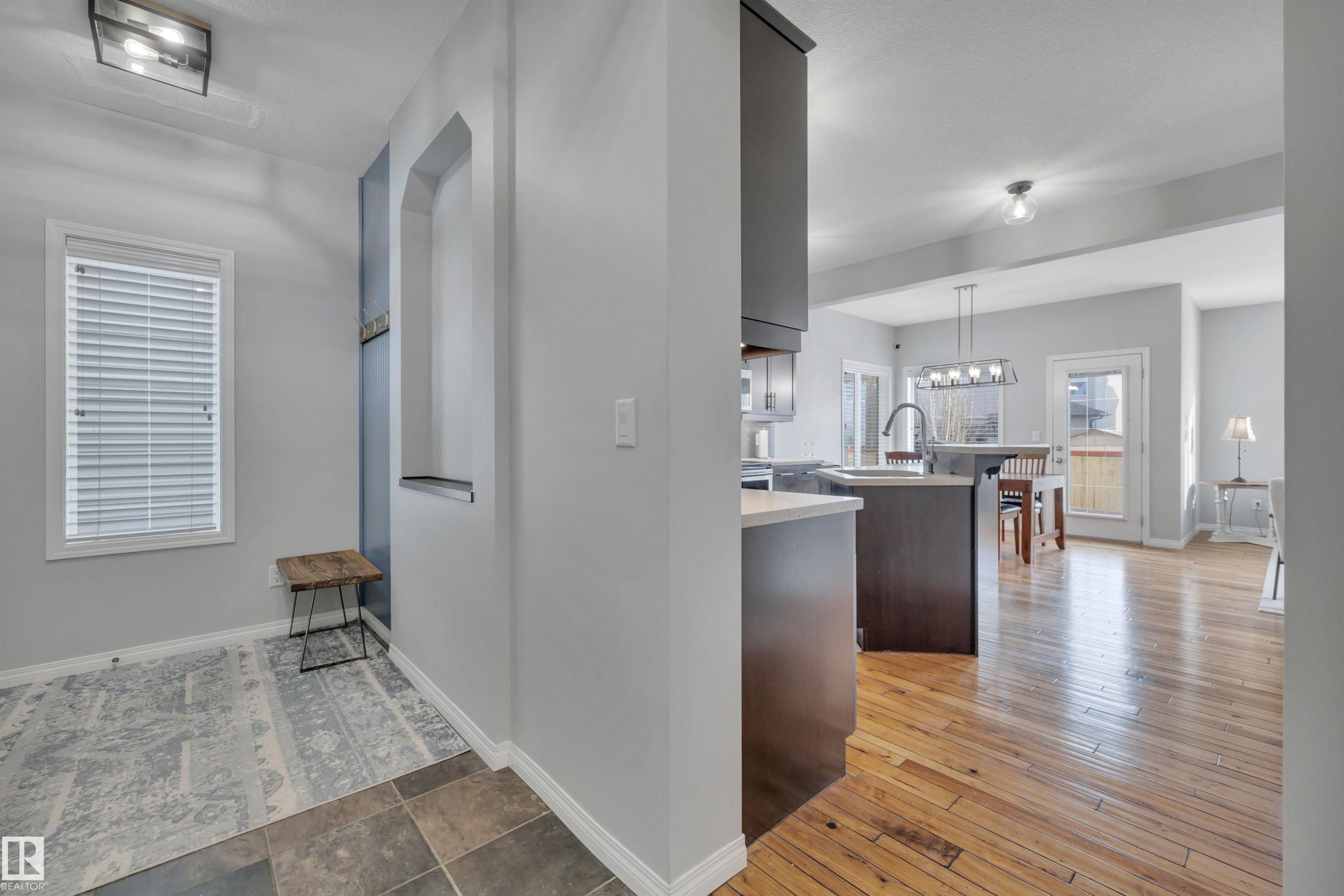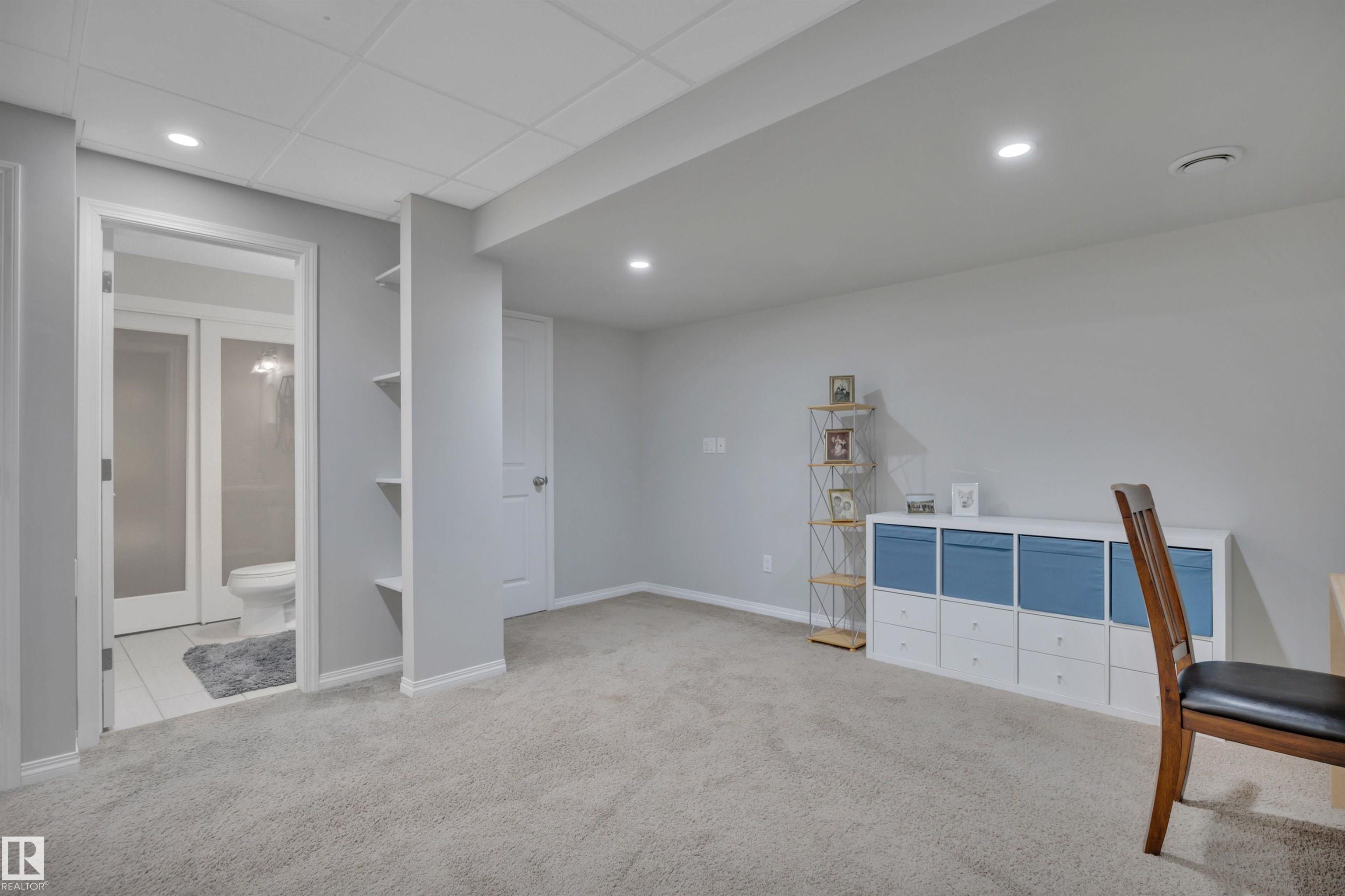 This Beautifully finished Southfork Home full of natural light is located in a quiet cul-de-sac near parks & walking trails. Lovely alcoves throughout to display your special mementos. Walnut hardwood flooring through the open concept living room, dining room & kitchen. Kitchen features concrete countertop & angled eating bar. Stainless steel appliances & cabinets with under cabinet lighting. Gas fireplace in the spacious living room Easy access to the large composite deck & backyard. Half bath & laundry room also on main floor. Head upstairs to the Bonus Room, Primary Suite with Ensuite, including 2 sinks, separate soaker tub & full size walk in shower with seat. Two more bedrooms & a full bathroom complete the upstairs. Lower level has nicely finished rec room, storage & another half bathroom! Frosted doors lead to the 4th bedroom or office. Oversized Garage is heated & features built-in work bench & storage loft.