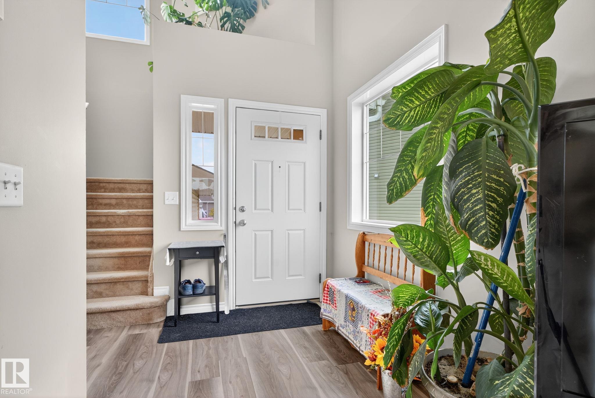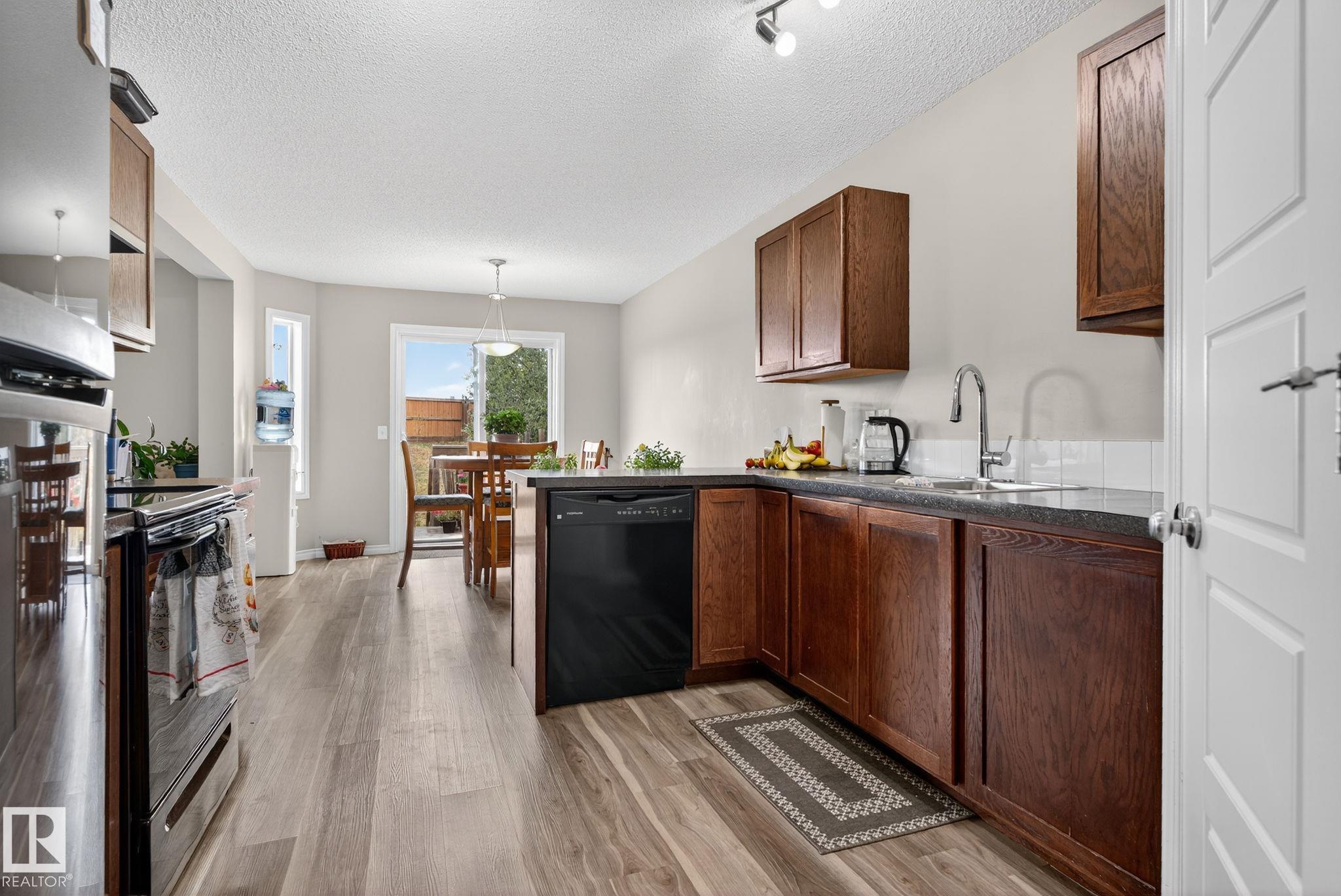Bright and cheerful half duplex sitting on a massive lot in Tribute with no back neighbors. The property is ideal if you have pets or kids and comes fully fenced with a deck, toboggan hill and a west facing yard! The main level is spacious complete with all hard surface flooring and provides great functional spaces for living and cooking. Upstairs the home offers 3 good sized bedrooms including a 4pc bathroom. The primary suite comes complete with a walk-in closet and 3pc ensuite. Unfinished basement is excellent for storage, and more kid play space. Front drive with a double attached garage to top it all off for this property's features. Close to schools, parks, shopping and EIA.