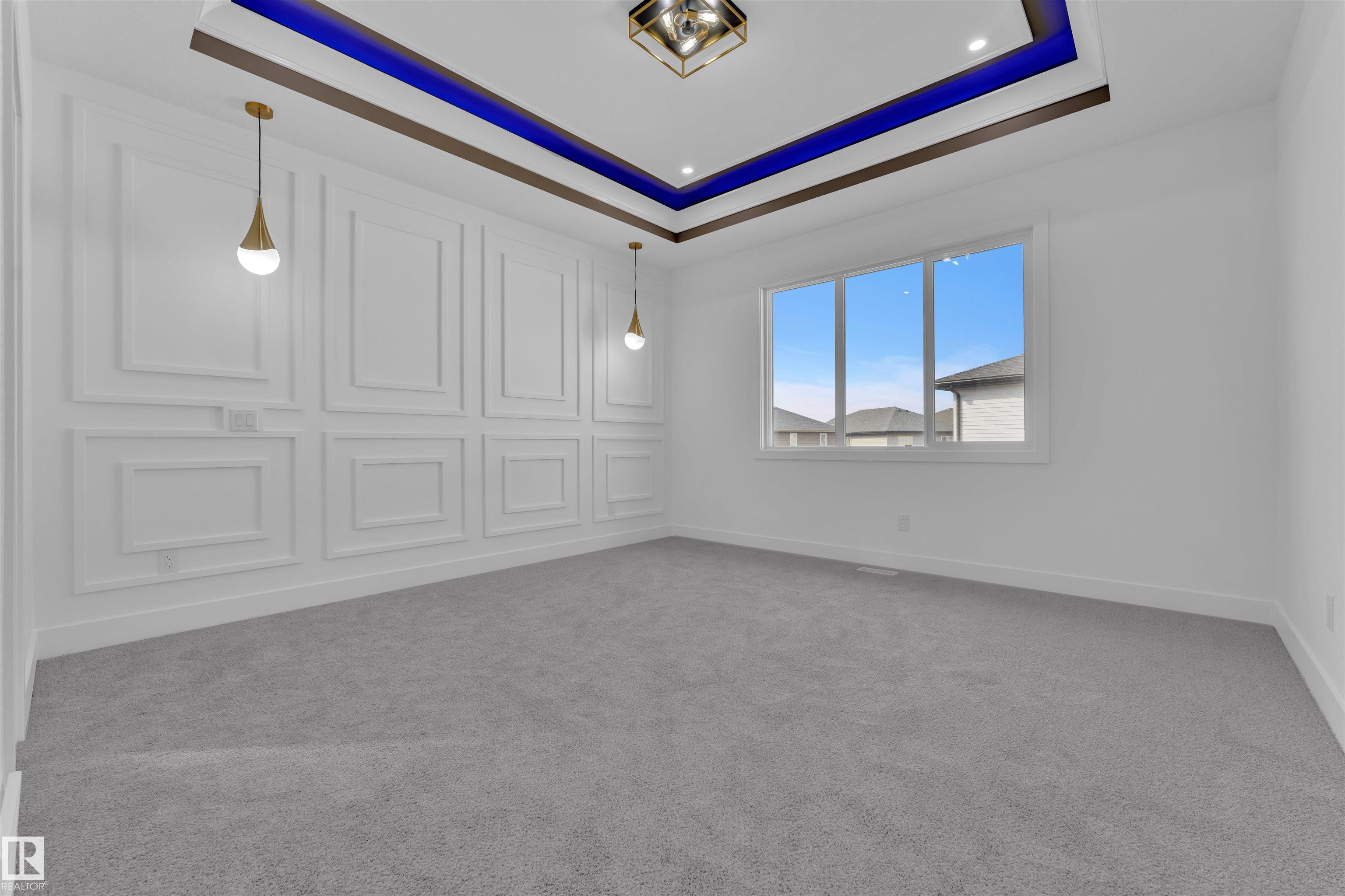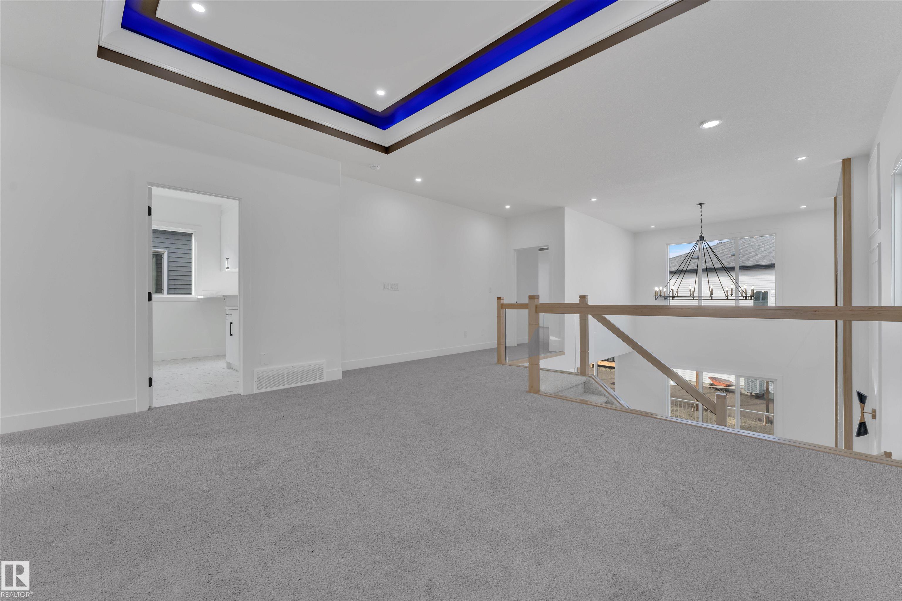 This well-appointed 4 bedroom home offers a perfect blend of style and everyday functionality. On the main floor, you'll find a versatile BED and a FULL BATH, ideal for guests or a home office. The heart of the home is the bright living area highlighted by a tiled fireplace and upgraded lighting, flowing seamlessly into the EXTENDED MAIN KITCHEN and separate SPICE KITCHEN--perfect for families who love to cook. The upper level features a comfortable BONUS ROOM with a fireplace and elegant rope lighting, along with two spacious bedrooms, a full laundry room, and a primary suite designed as a private retreat with a 5-piece ensuite, freestanding soaker tub, dual vanity with under-cabinet lighting, and a large walk-in closet. Additional highlights include a built-in desk with custom shelving, a finished deck with durable metal railing, and numerous premium upgrades that enhance the home throughout.