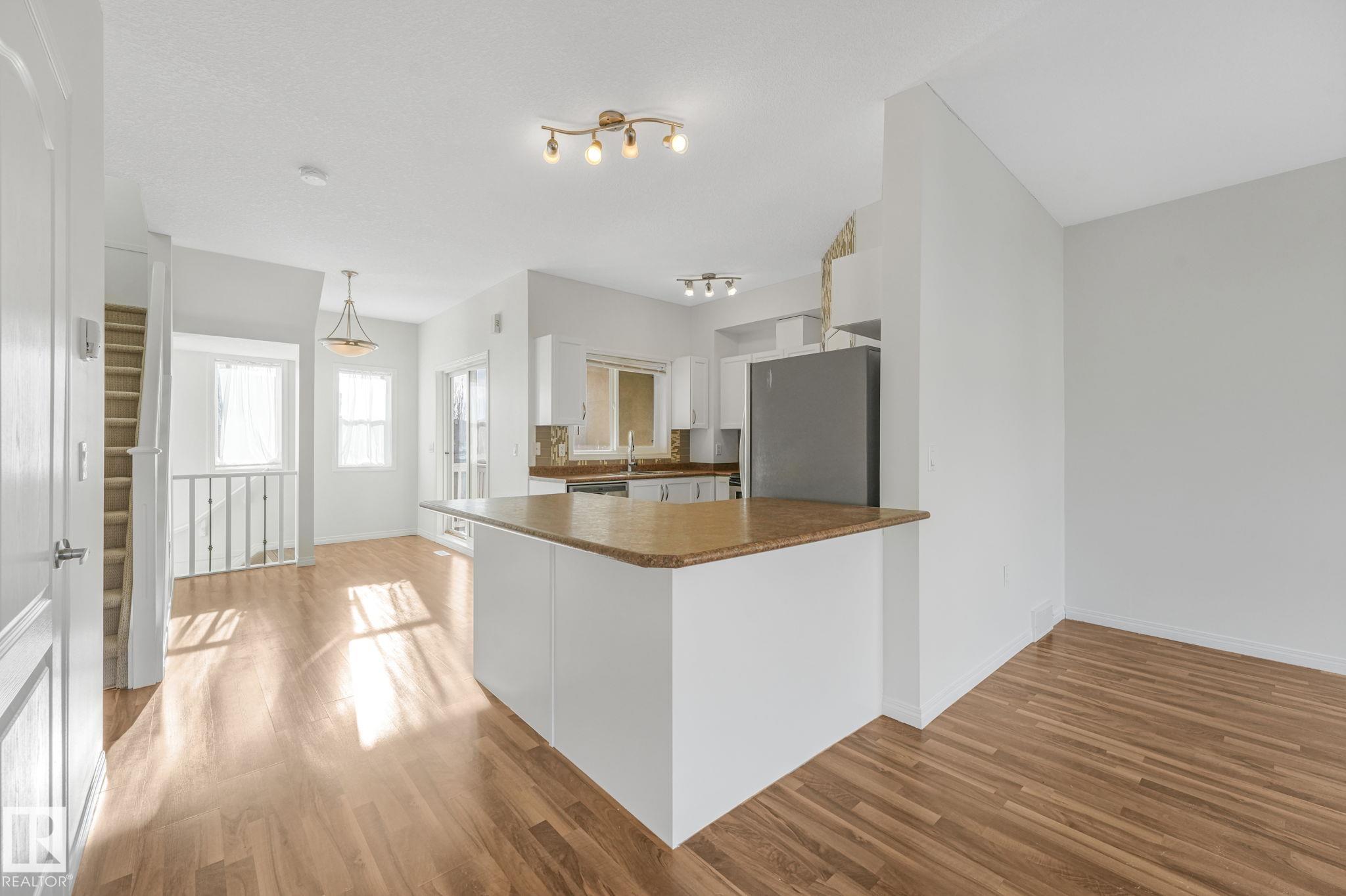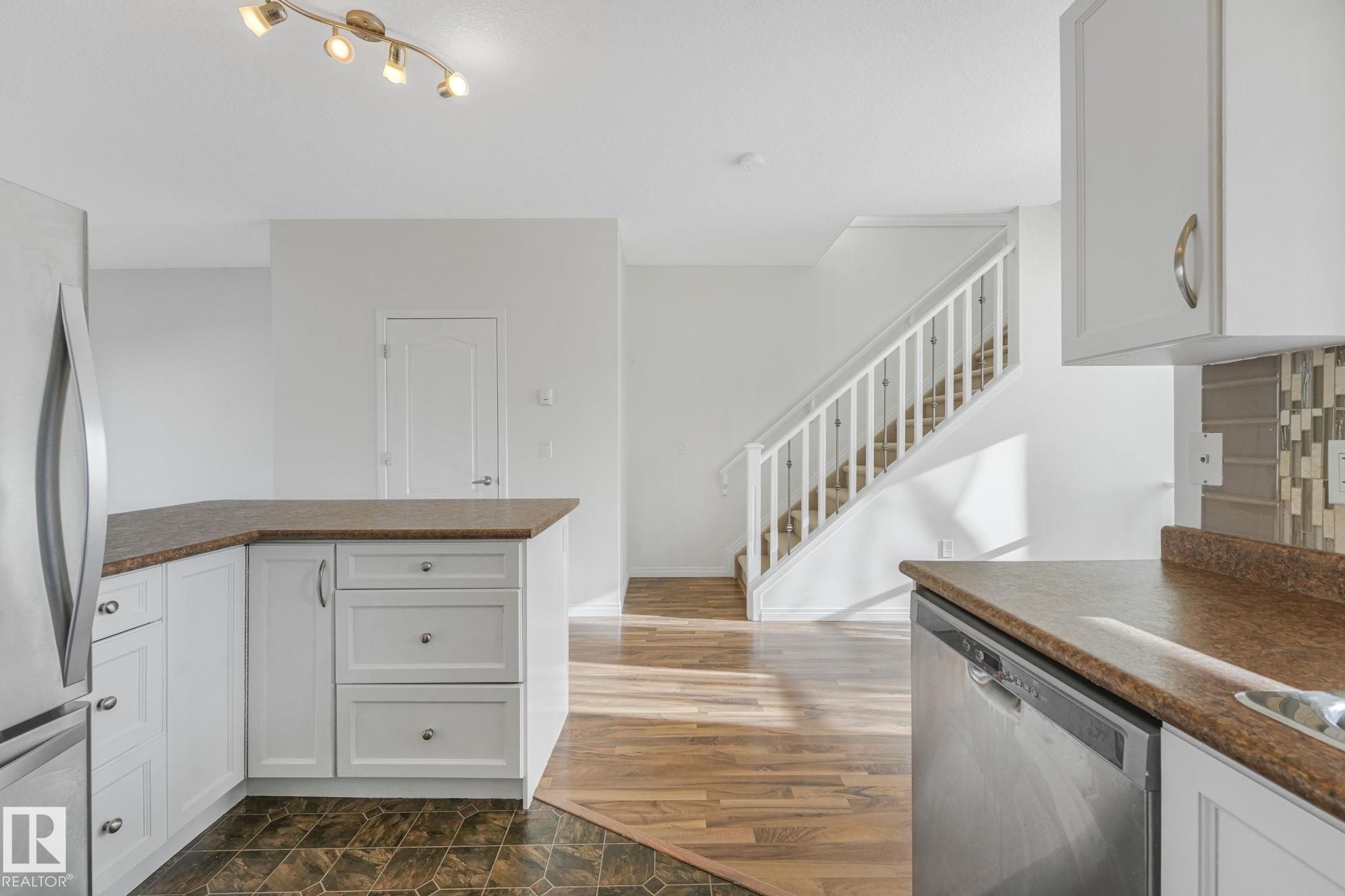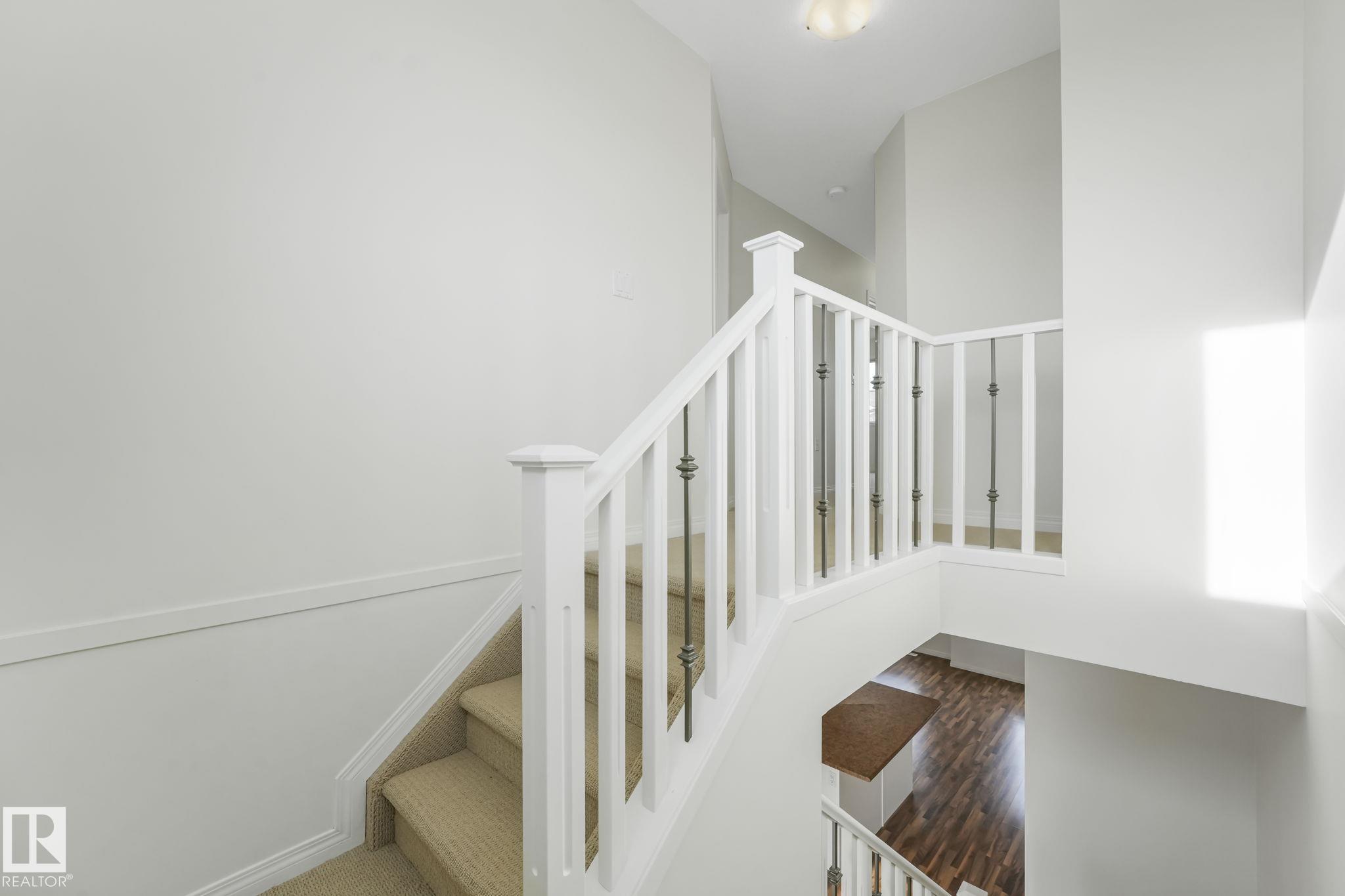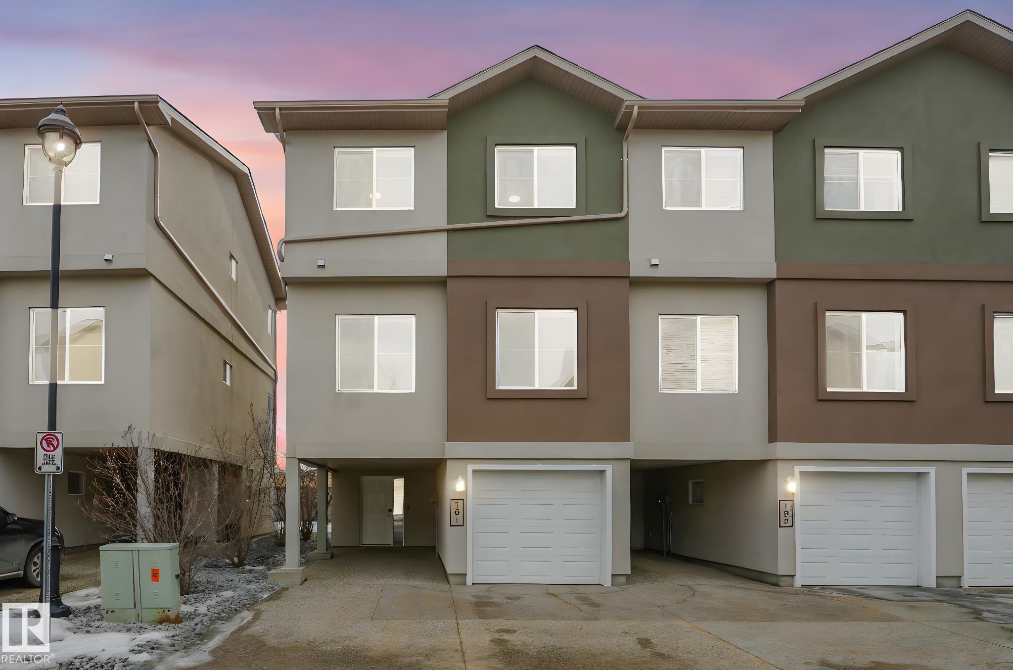 WOW.. Have you ever thought you could live in a 3 bedroom townhouse & have a garage, a carport & a double parking pad? Total of 4 PARKING SPOTS! Check out this beauty. With almost 1590 sq ft of living space this one will check all the boxes. Entering the unit just off the garage is the utility, laundry, storage & access to the back yard. The main level is bright with open concept & lots of room to entertain. The kitchen has an eating nook, stainless steel appliances, pantry & a covered deck for BBQ'S. Just off the kitchen the large living area is great for entertaining, relaxing & Movie nights on the Big Screen. This unit has been completely painted throughout as well as new carpets on the upper level. A two piece bath finishes this level. The upper floor has good size rooms. The master bedroom has plenty of room for a "King Size bed. A large walkin closet provides ample storage & enjoy your 3 piece ensuite. Down the hall there are 2 more bedrooms & a 4 piece bath. Don't miss this one. Plenty of Space!
