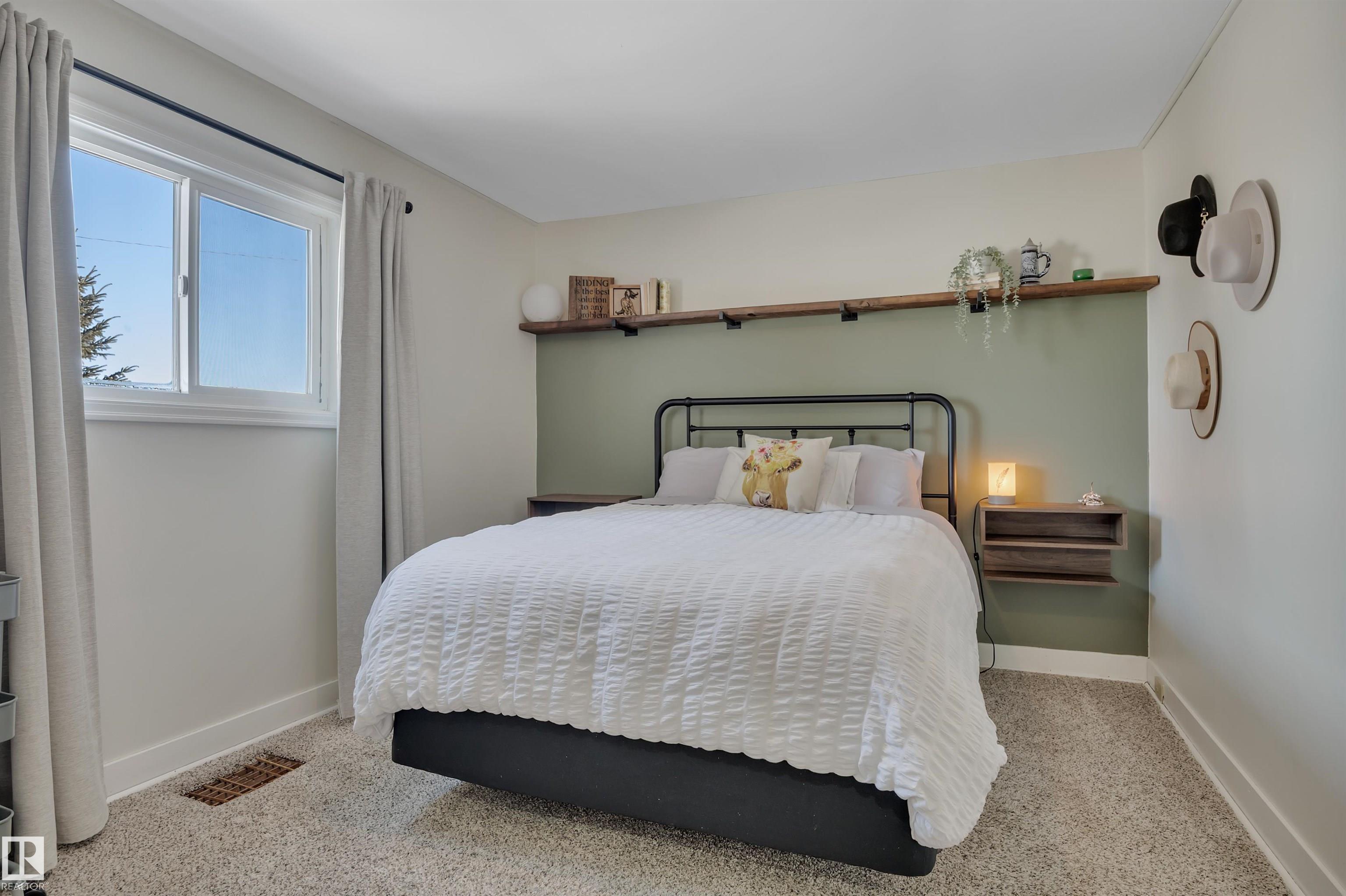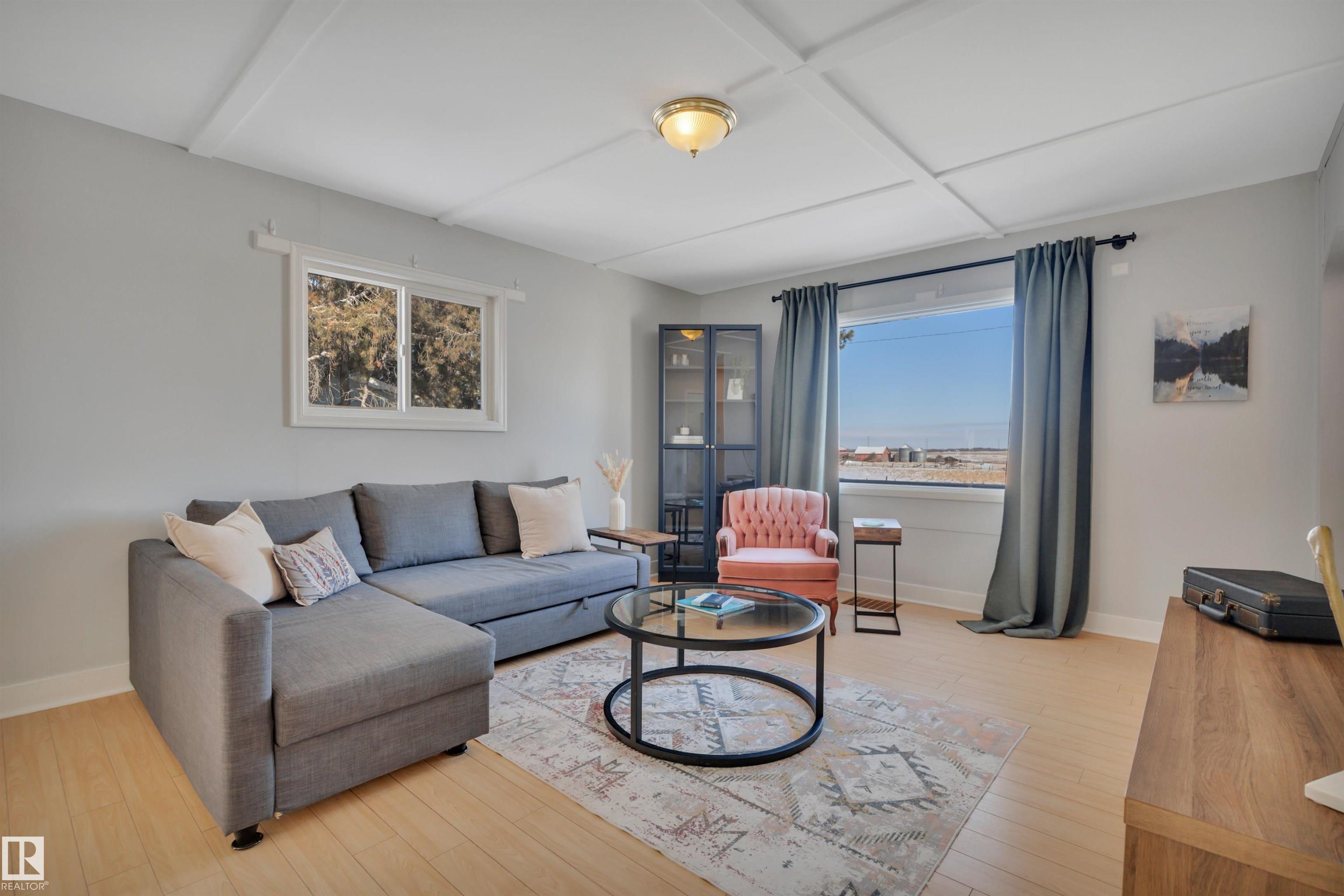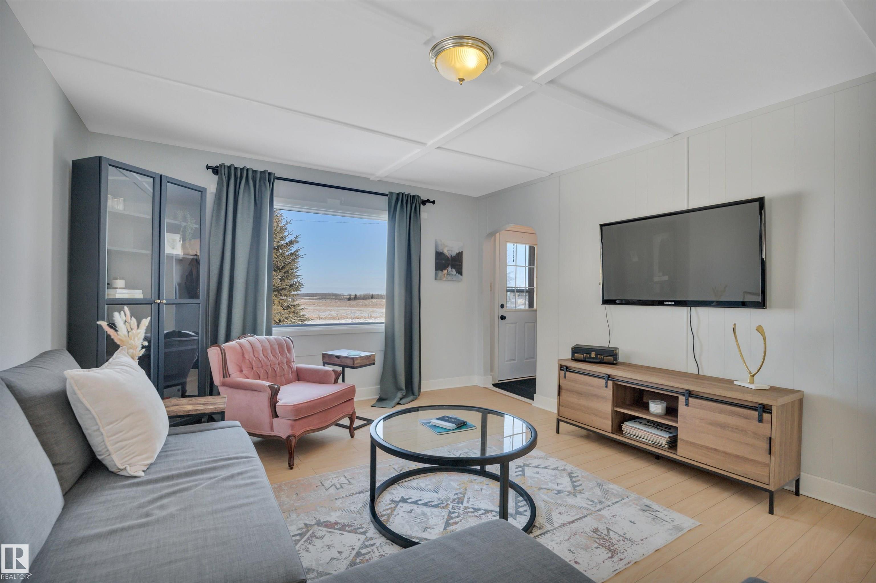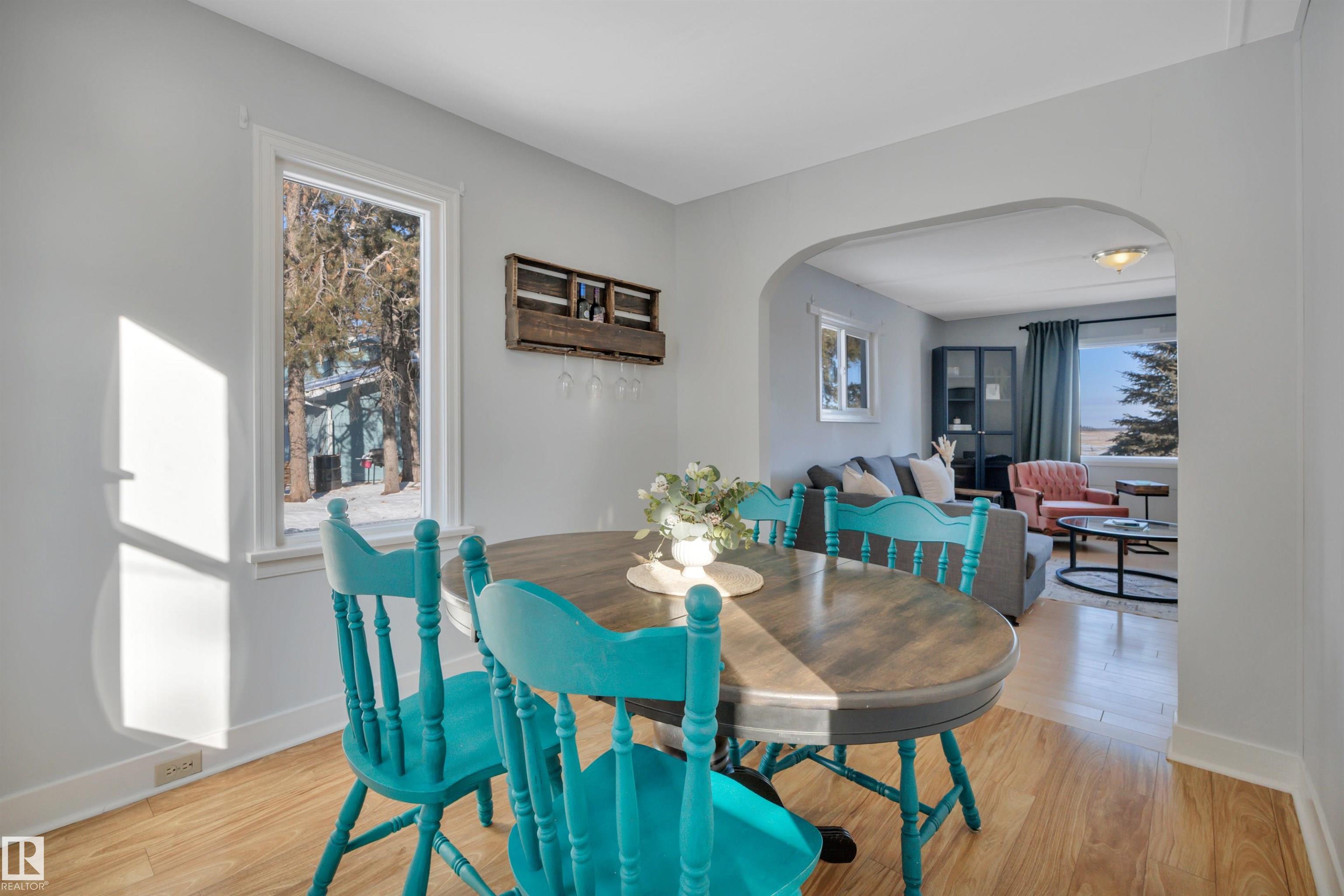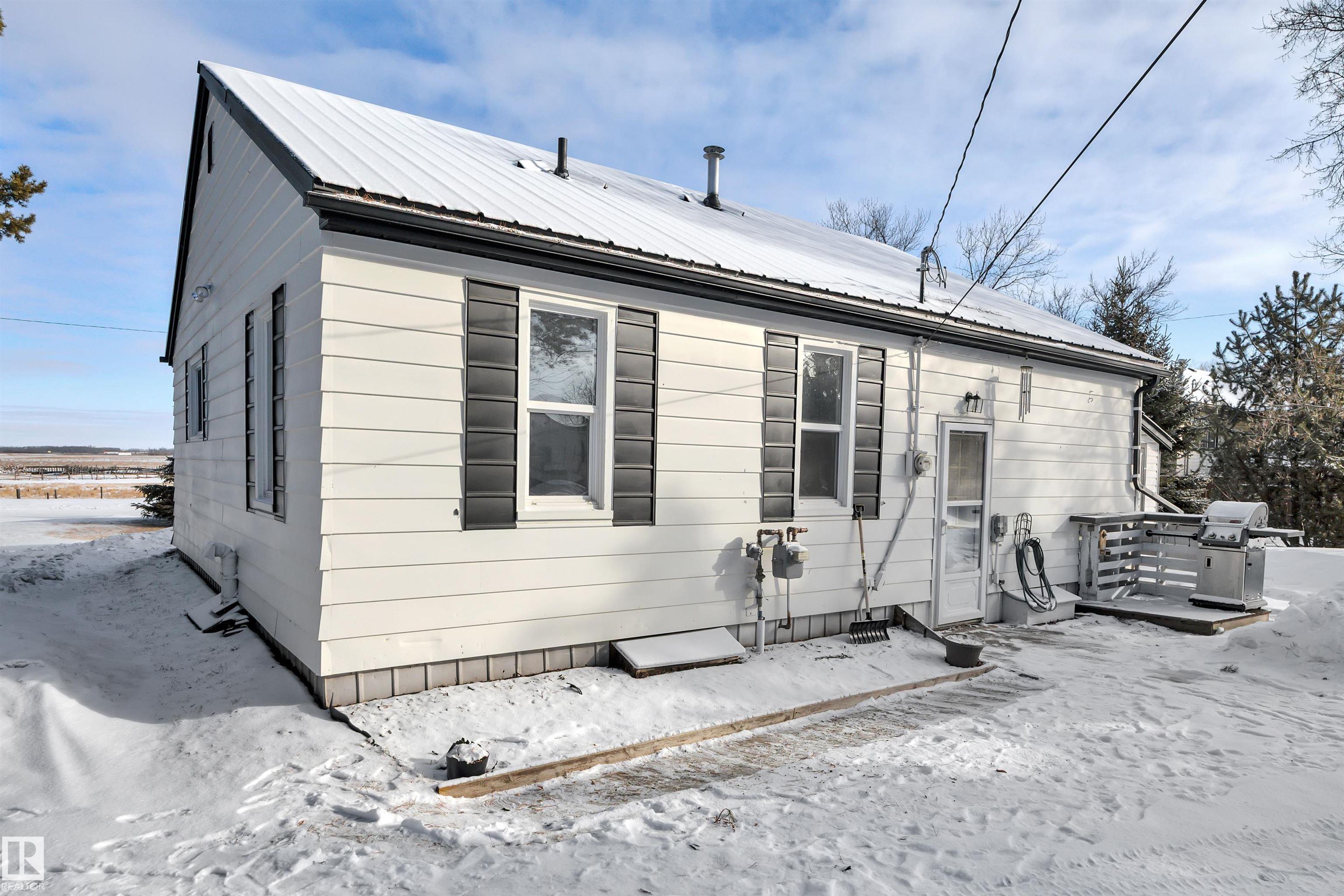 CUTE AS A BUTTON! 125' x 125' FOOT LOT! Searching for a well maintained character home with pinterest worthy updates? Massive yard to add your dream garage or workshop? Buy and hold for future development? This 893 sq ft 2 bed, 1 bath shows exceptionally well & unites modern touches with farmhouse vibes! Feat: renovated bathroom, refreshed kitchen, paint, laminate flooring, plush carpet, vinyl windows, tin roof, painted siding, newer front porch, newer hot water tank, & more! Classic separated main floor plan w/ large living room & window for ample natural light. Cozy dining room, galley style kitchen w/ gas stove, subway tile backsplash & laminate countertop. 2 spacious bedrooms, gorgeous 4 pce bathroom & storage. The basement is unfinished, but home to laundry & storage, & room for additional bedroom / rec room & bath! Rear lane access with amazing DOUBLE LOT! RV parking, and tree lined for your garden, summer BBQs and bonfires. Steps to groceries & 2A; pastures views from the porch. A must see!