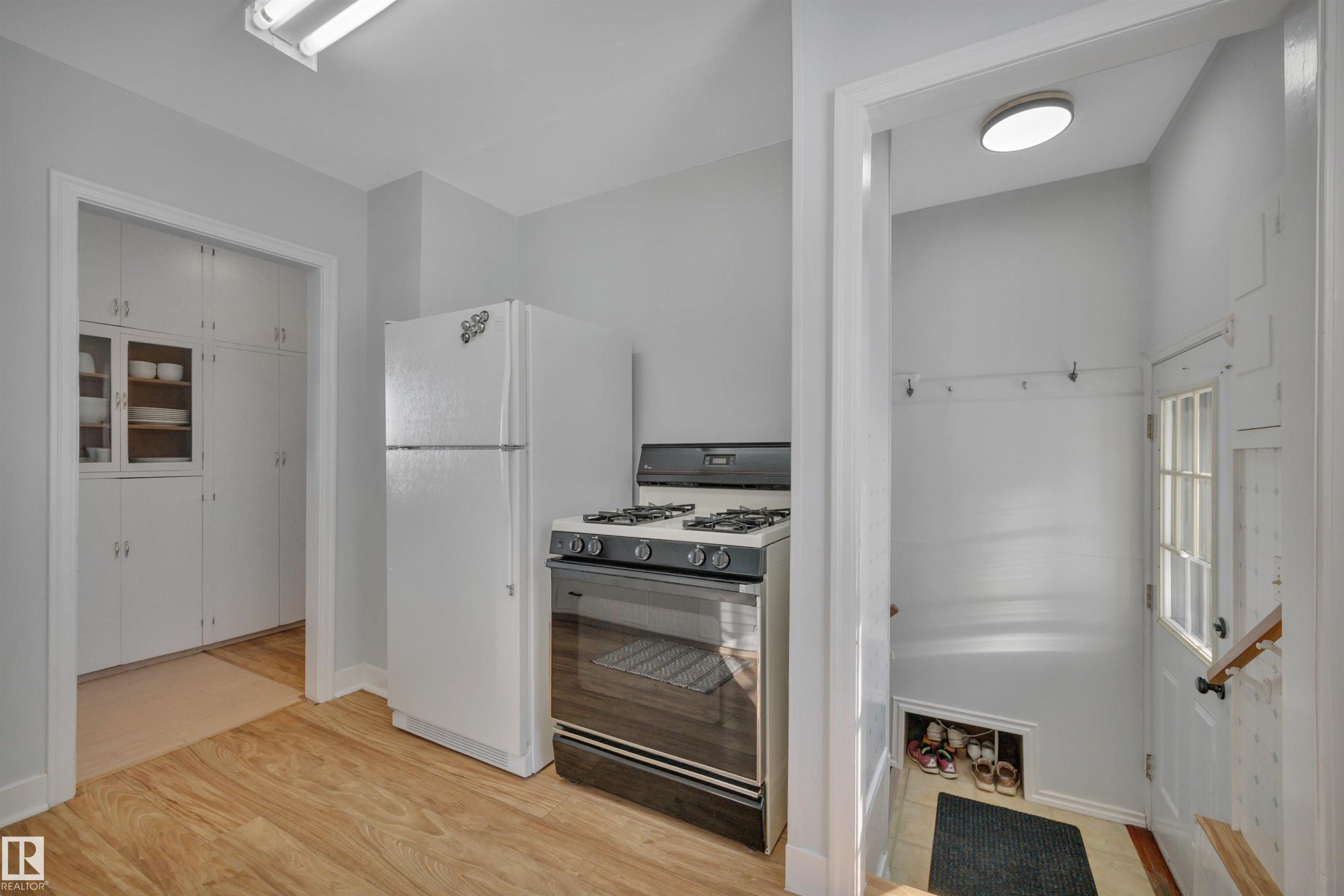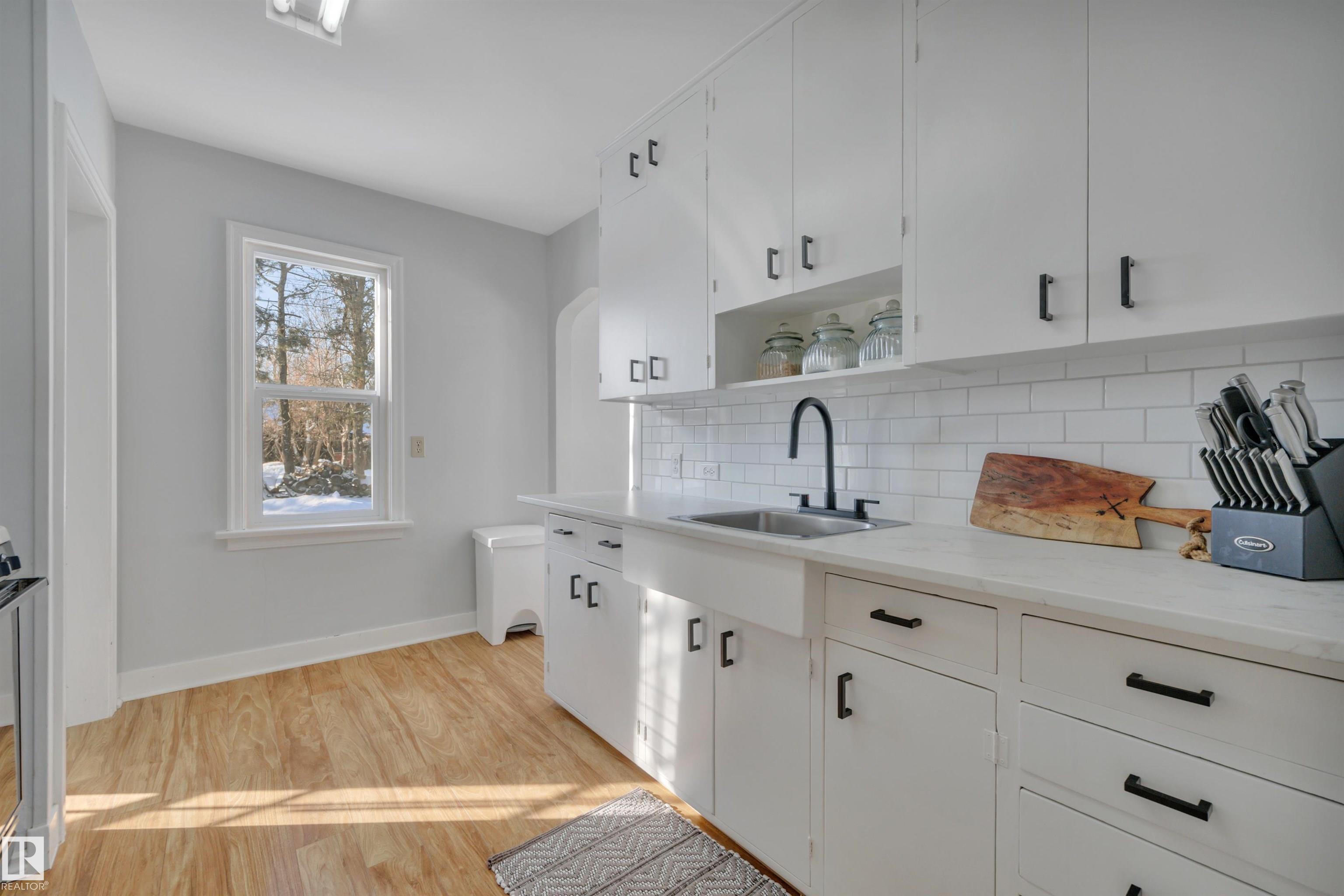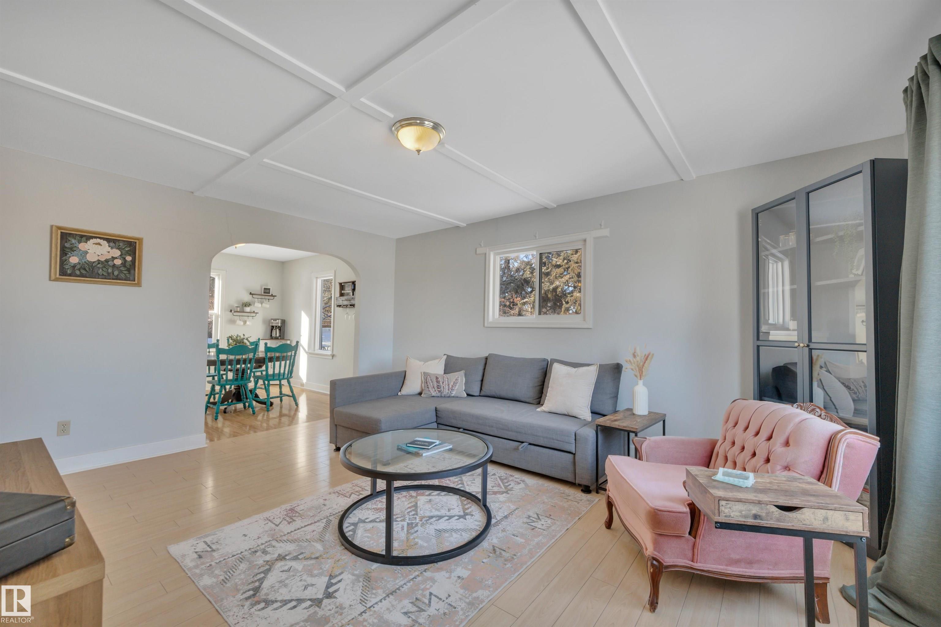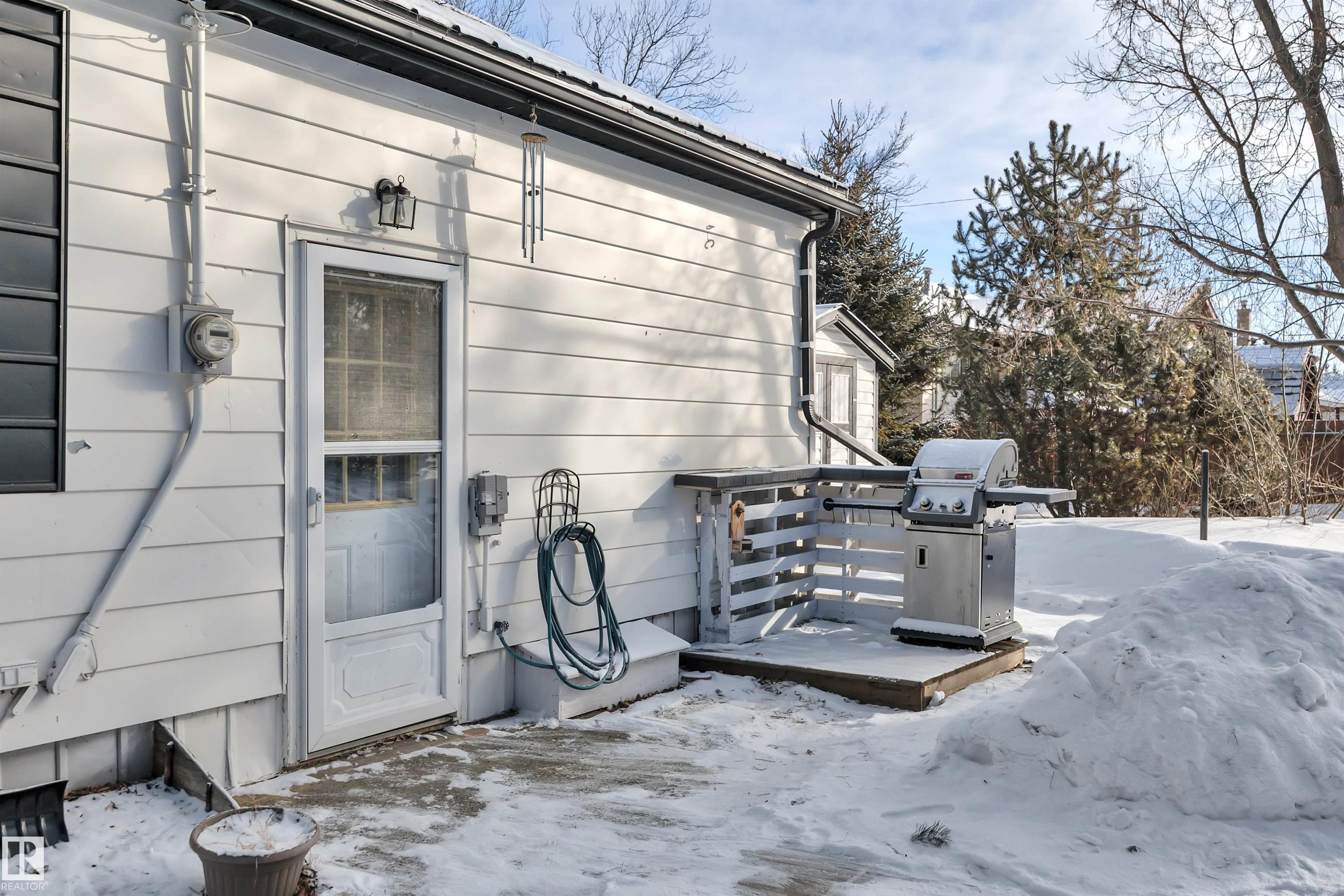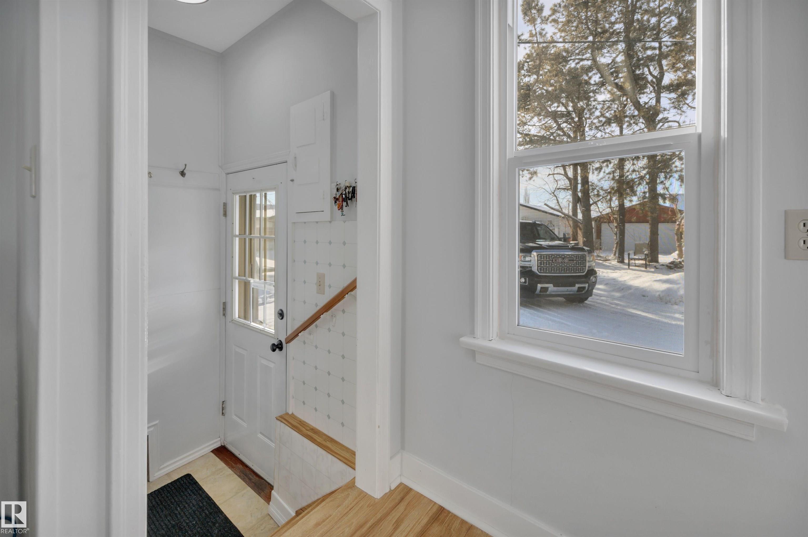 CUTE AS A BUTTON! 125' x 125' FOOT LOT! Searching for a well maintained character home with pinterest worthy updates? Massive yard to add your dream garage or workshop? Buy and hold for future development? This 893 sq ft 2 bed, 1 bath shows exceptionally well & unites modern touches with farmhouse vibes! Feat: renovated bathroom, refreshed kitchen, paint, laminate flooring, plush carpet, vinyl windows, tin roof, painted siding, newer front porch, newer hot water tank, & more! Classic separated main floor plan w/ large living room & window for ample natural light. Cozy dining room, galley style kitchen w/ gas stove, subway tile backsplash & laminate countertop. 2 spacious bedrooms, gorgeous 4 pce bathroom & storage. The basement is unfinished, but home to laundry & storage, & room for additional bedroom / rec room & bath! Rear lane access with amazing DOUBLE LOT! RV parking, and tree lined for your garden, summer BBQs and bonfires. Steps to groceries & 2A; pastures views from the porch. A must see!